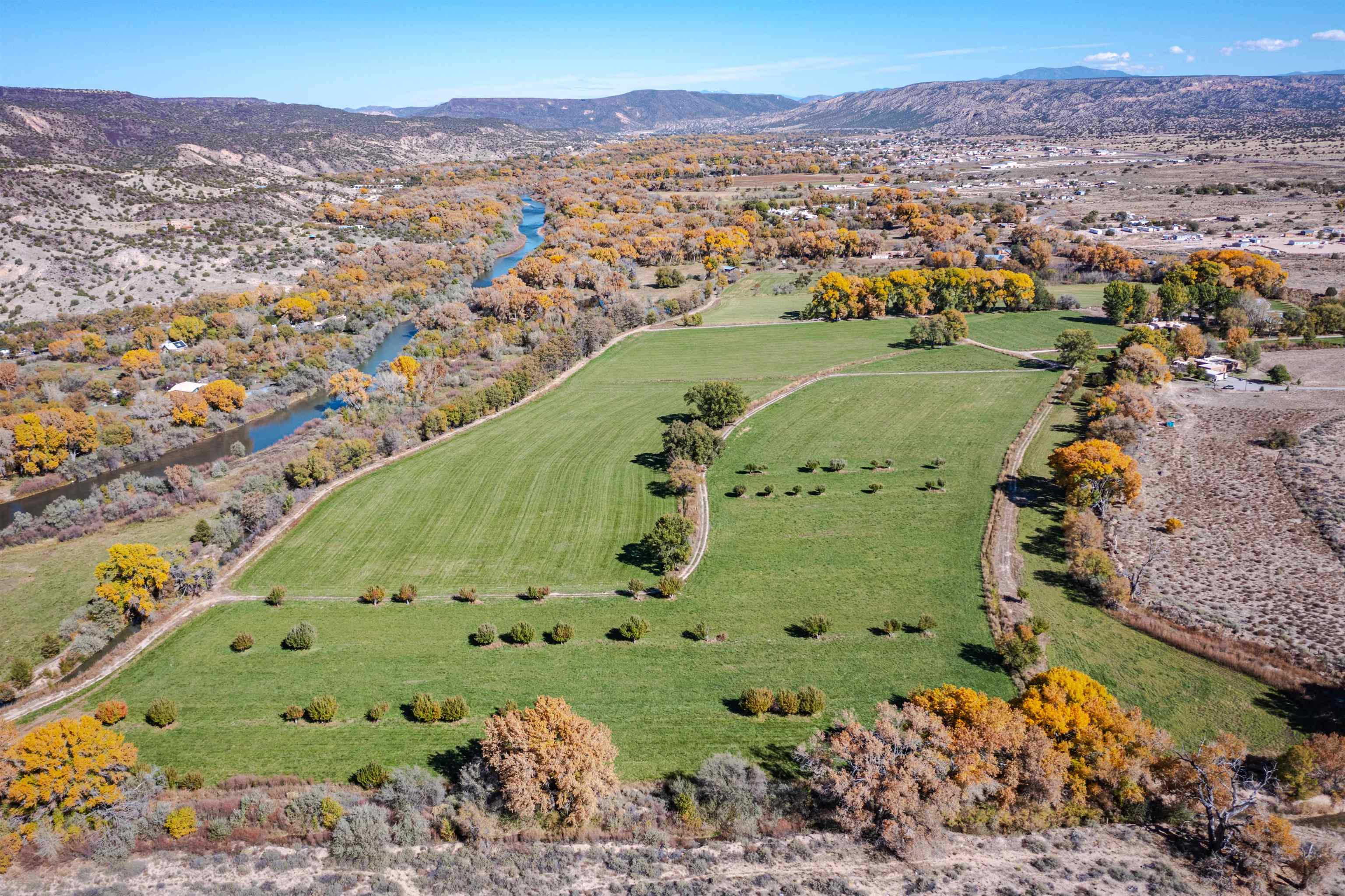 Discover The Cottonwood Ranch, a remarkable investment opportunity encompassing 91 acres of mixed irrigated farmland and a scenic bosque of lush cottonwood trees. This unique property boasts a historic fruit tree orchard and offers substantial annual hay production, providing both agricultural potential and natural beauty. Included with this property are 157.44 acre-feet of pre-1907 senior Rio Grande water rights through the Acequia Madre, ensuring reliable irrigation for crops. With 91 acres of prime riverfront property, the land offers stunning vistas and diverse opportunities for development. Additionally, the property features 25.97 acres of commercial land convenientlylocated adjacent to NM Highway 68, enhancing accessibility and visibility for potential business ventures. All tracts have access via Rio Arriba County Roads 39 and 41, making it easy to navigate the area. This site presents the perfect opportunity to build your hacienda-style ranch or to develop residential homes, capitalizing on the serene landscape and proximity to the historic Los Luceros Historic Site. Conveniently located for easy commuting to Los Alamos, Santa Fe, and Taos, The Cottonwood Ranch offers a blend of rural charm with modern accessibility. Don’t miss your chance to invest in this extraordinary property with limitless potential! SEE VIRTUAL TOUR LINK for drone video.