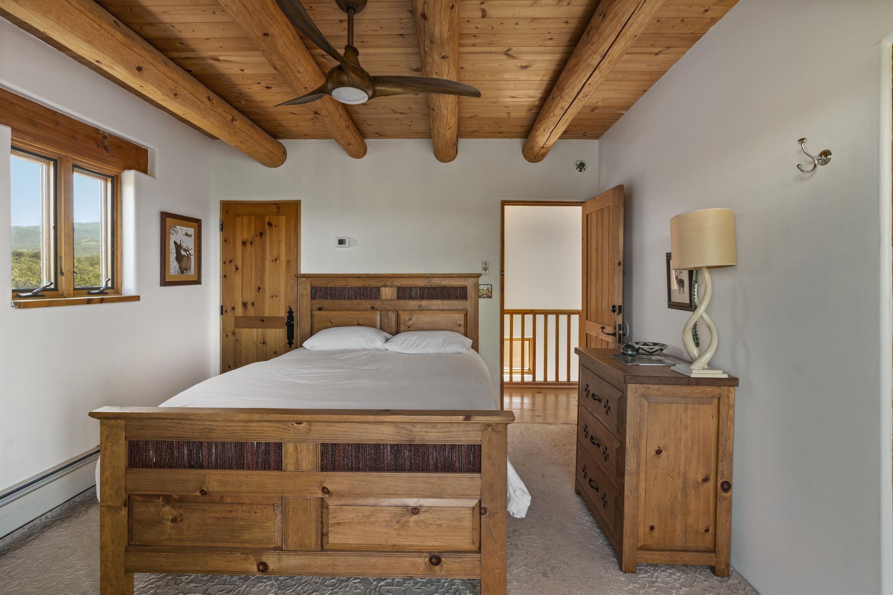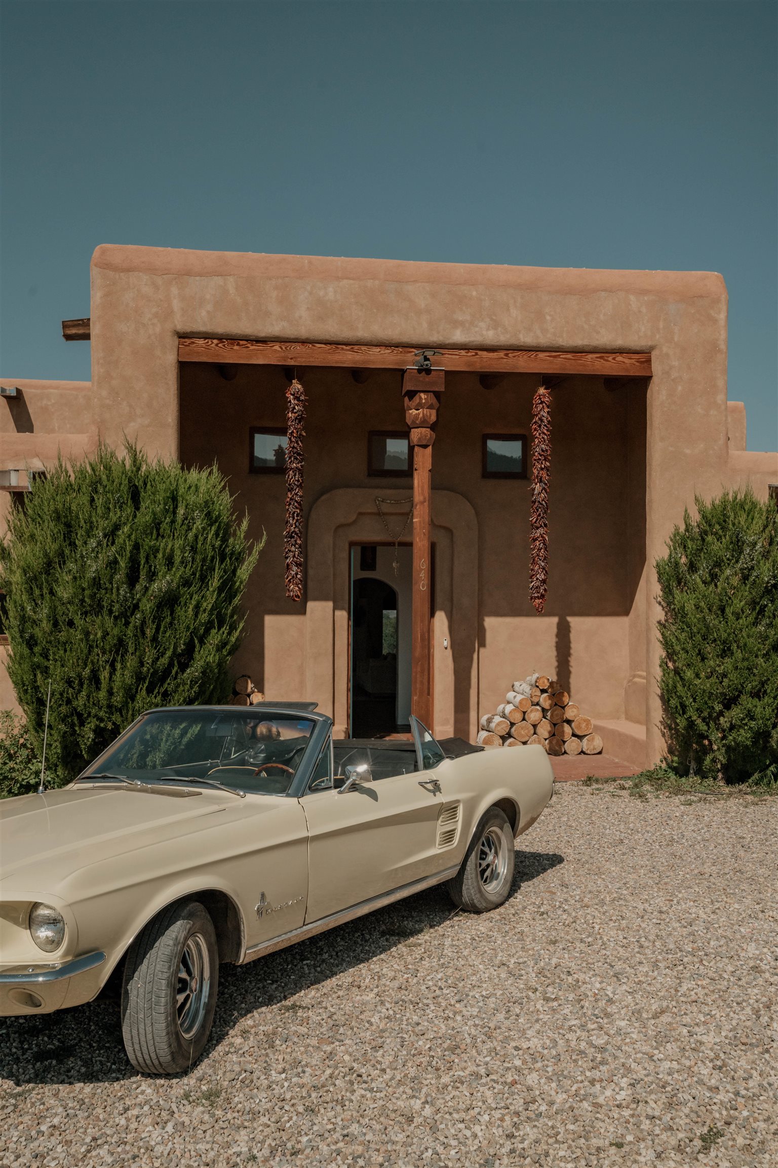 Each room unfolds like a chapter, setting its own distinct scene while creating a harmonious flow that enhances livability and design. A timeless piece of Taos, New Mexico real estate. This 5-bedroom, 5-bathroom estate is like haute couture, a piece of artistry. Bespoke design that marries classic southwest, middle eastern touches, and a modern elegance. The Middle Eastern heritage magnificently compliments timeless southwest traditional architecture. Exquisite woodwork, one-of-a-kind doors featured throughout the entire estate. A full high-end renovation to the entire upstairs and the lower pool lock-off suite. Impeccable attention to detail, luxurious bathrooms, designed to maximize space and create a sanctuary for guests or family. Effortless entertainment and endless event possibilities with the estate's sophisticated and highly functional chef’s kitchen. The large dining room with a soaring ceiling blends seamlessly into the well-appointed library. Two primary suites, one on the first floor and one on the second. Upstairs porch views of the town of Taos and the profile of El Salto cliffs. This estate was built by Ambassador Bill Eagleton, a career diplomat to numerous Middle Eastern nations. 4,300+ square feet of exquisite design, and 3,100+ square feet of outdoor patios, portals and porches. The epic great room leads you out onto a beautifully maintained patio with a 45-foot inground heated lap pool. The pool and in ground hot tub patio are surrounded by gardens on drip irrigation that envelopes residents and visitors in a paradise of blossoms, outdoor lounging and beauty. On this 3-acre lot in the town of Taos, enjoy peaches from your orchard on drip irrigation, blackberries and raspberries in the berry patch just off the kitchen patio. Six fireplaces, and a breathtaking entrance with vaulted ceilings that leads you into an expansive great room. The design of your dreams featuring opulent wall space for art, as well as crafted cozy seating nooks. Event rental, Air B & B, and VRBO history on this property, a primary residence and investment opportunity. This property is unmatched and such a unique oasis in all seasons in the town of magical Taos.