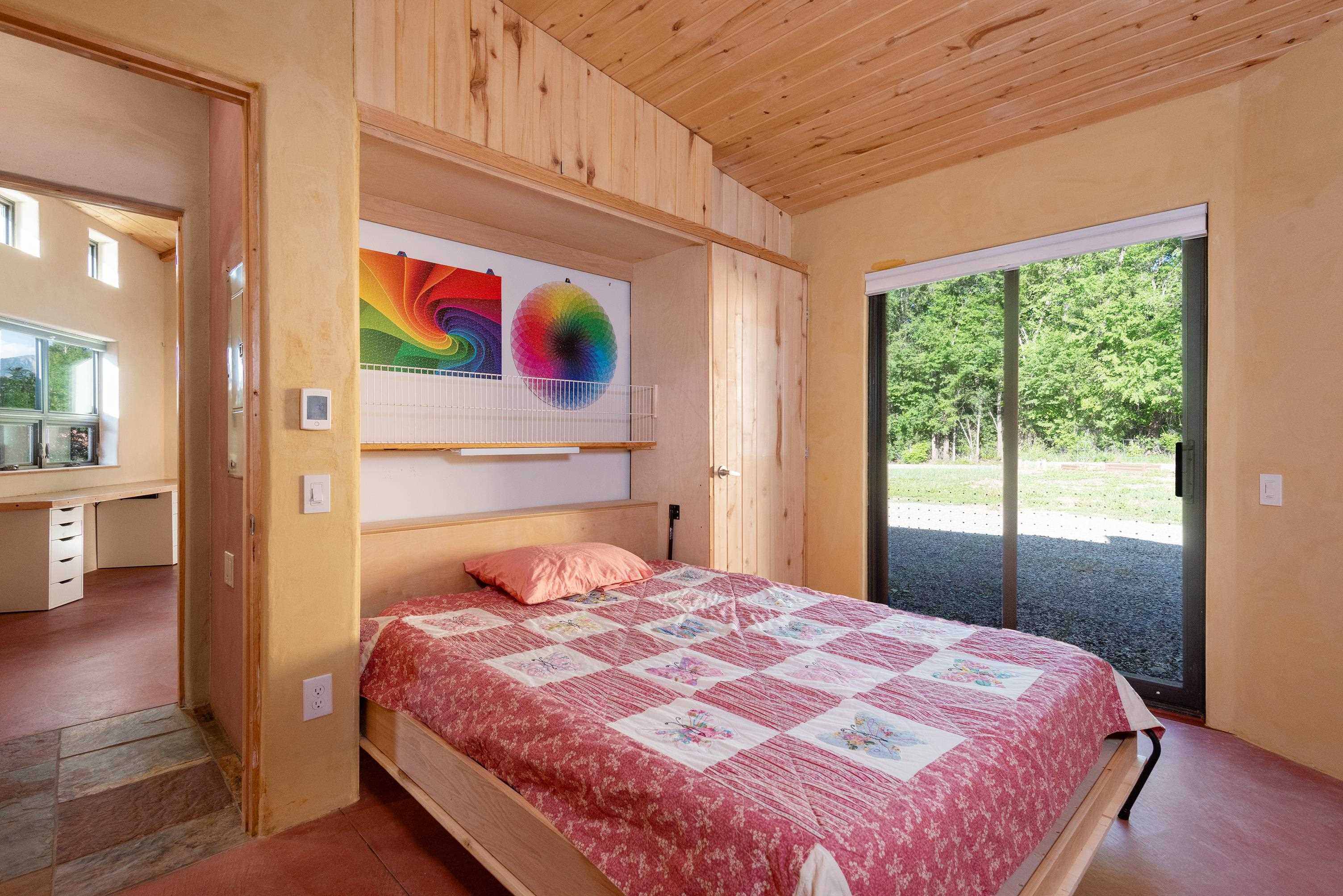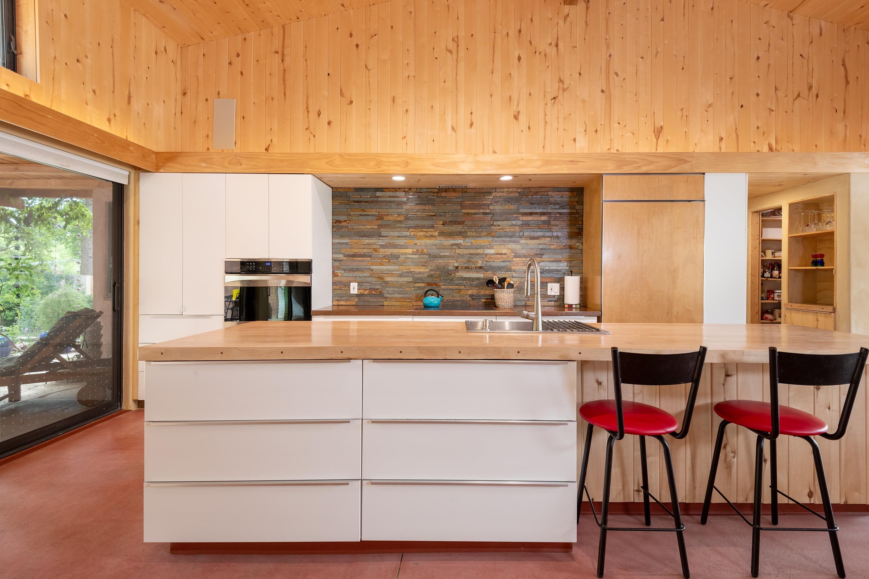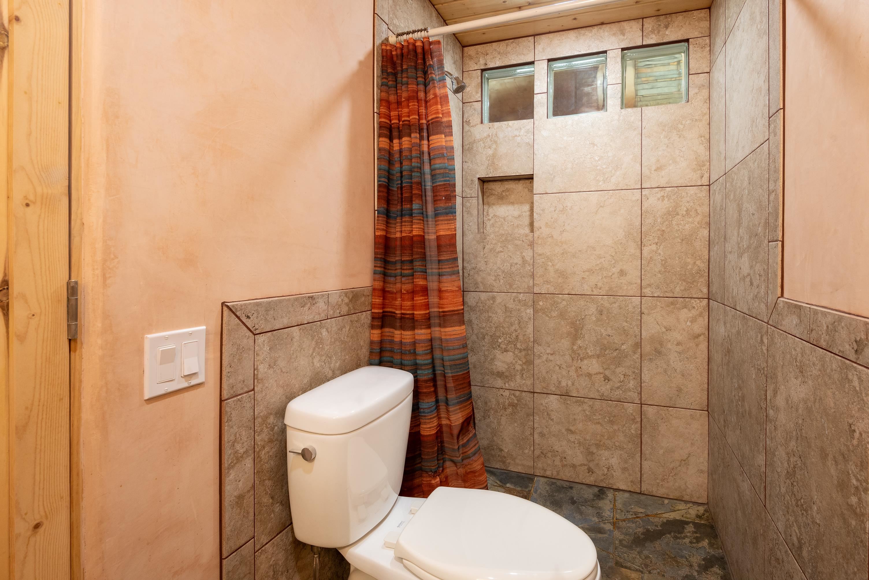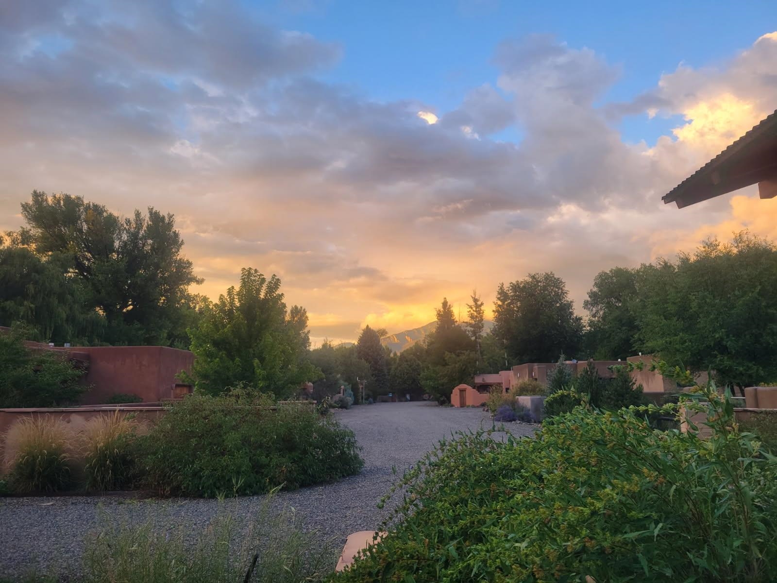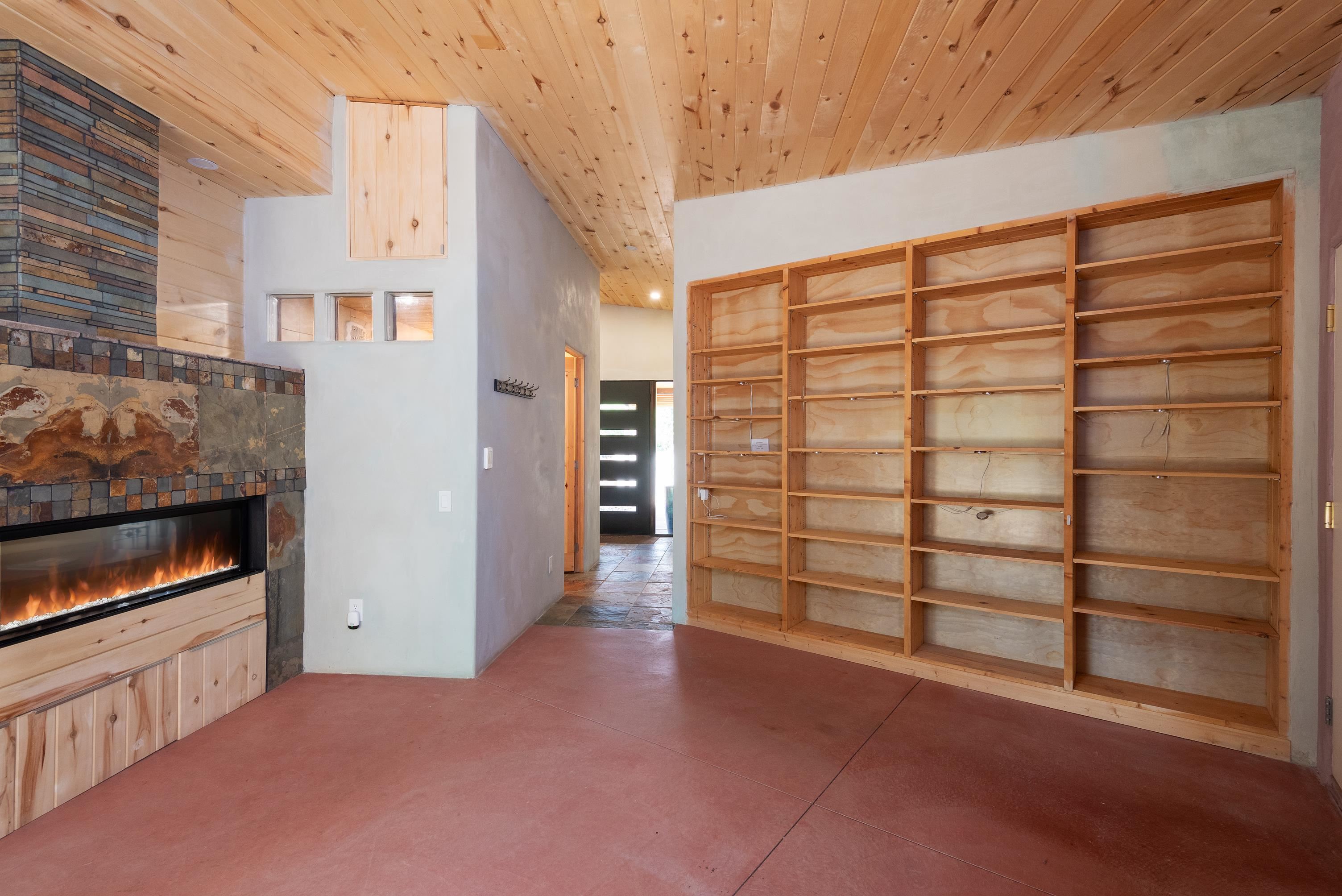 This Beautiful and unique home has great views, and a great location with many wonderful custom features. No monthly gas bills and very low electric bills. Everything needed to make for a wonderful home on an approximate ½ acre fee simple lot in the heart of Taos. This architecturally designed home is exceptionally well built, highly energy efficient and is in a perfect location in the heart of Taos. Its quiet location is at the back of a secluded neighborhood cul-de-sac within easy walking distance to Taos Plaza, numerous restaurants, museums, shopping and Kit Carson Park. The home features a magnificent view of Pueblo Peak from all the major rooms. The open floor plan and generous portals provide plenty of opportunities for comfortable living. Located near the historic district, the property is not encumbered by architectural restrictions or any homeowner association. The architect/owner designed the home to exceed LEED Platinum energy efficiency standards. With no connection to the gas line, the all electric house and separate workshop has an array of solar panels that generate enough electricity to balance out all electrical usage annually. With Kit Carson Electric's net metering policy, there is a minimum monthly charge of $ 28 which is basically the price for providing back up power. The air source heat pump provides hot water for both domestic use and for the zoned radiant floor heating. In summer the system can be switched to provide cold water to cool the home while still providing hot water for domestic use. The exterior walls and roof structure were built with Ray-Core insulated panels plus 2" of exterior rigid foam insulation for a total R value of 55. The roof has an R-value of over 66. The tinted concrete floors (R-10 value with underfloor insulation) are integrally colored, making the surface very durable. The very high quality Alpen windows and patio doors are quad glazed - (yes, you read that correctly, 4 layers of glazing) and have fiberglass frames to minimize heat loss. Windows and patio doors have honeycomb insulating blinds, some are motorized. Special care was taken to seal all seams and joints during construction to minimize air intrusion and associated heat loss. A heat recovery ventilator assures high air quality and is timed to operate 2 hours each day. Interior walls are finished with an earthen plaster product from NM based American Clay which gives the house a certain warm, organic feel. All interior wood doors were custom made on site. There is a propane fueled gas fireplace that is see through and can be enjoyed from the den or living room sides of the wall. This is the only nonelectric appliance, depending upon usage, it uses 1 or 2 four gallon tanks of propane per year. While primarily for aesthetic enjoyment it can serve as a heating source during an extended power outage. The open plan KITCHEN features a built-in Sub Zero refrigerator/freezer, induction cooktop, wall oven, dishwasher and oversized stainless steel sink, The large island invites guests to join in with meal preparation and has storage on both sides. The microwave and coffee station are inside cabinets and are hidden from view. Counter tops are copper and hardwood, and a pantry closet is just off to the side. The whole house air ventilation system with intake above the range can be used to remove cooking odors if needed. THE GREAT ROOM with high ceilings has portals on both north and south sides, clerestory windows and Aspen tongue and groove high walls and ceiling for woodsy warmth above the earthen plastered walls. The stereo system will stay with 9 built-in speakers, including 2 subwoofers. The large recessed TV will also remain. Outdoor living is premium with large porches on both north and south sides of the home which are perfect for entertaining and enjoying the unobstructed view of Pueblo Peak. In addition to the oversized 2 car garage, there is a 720 sf heated shop with a small attached greenhouse.