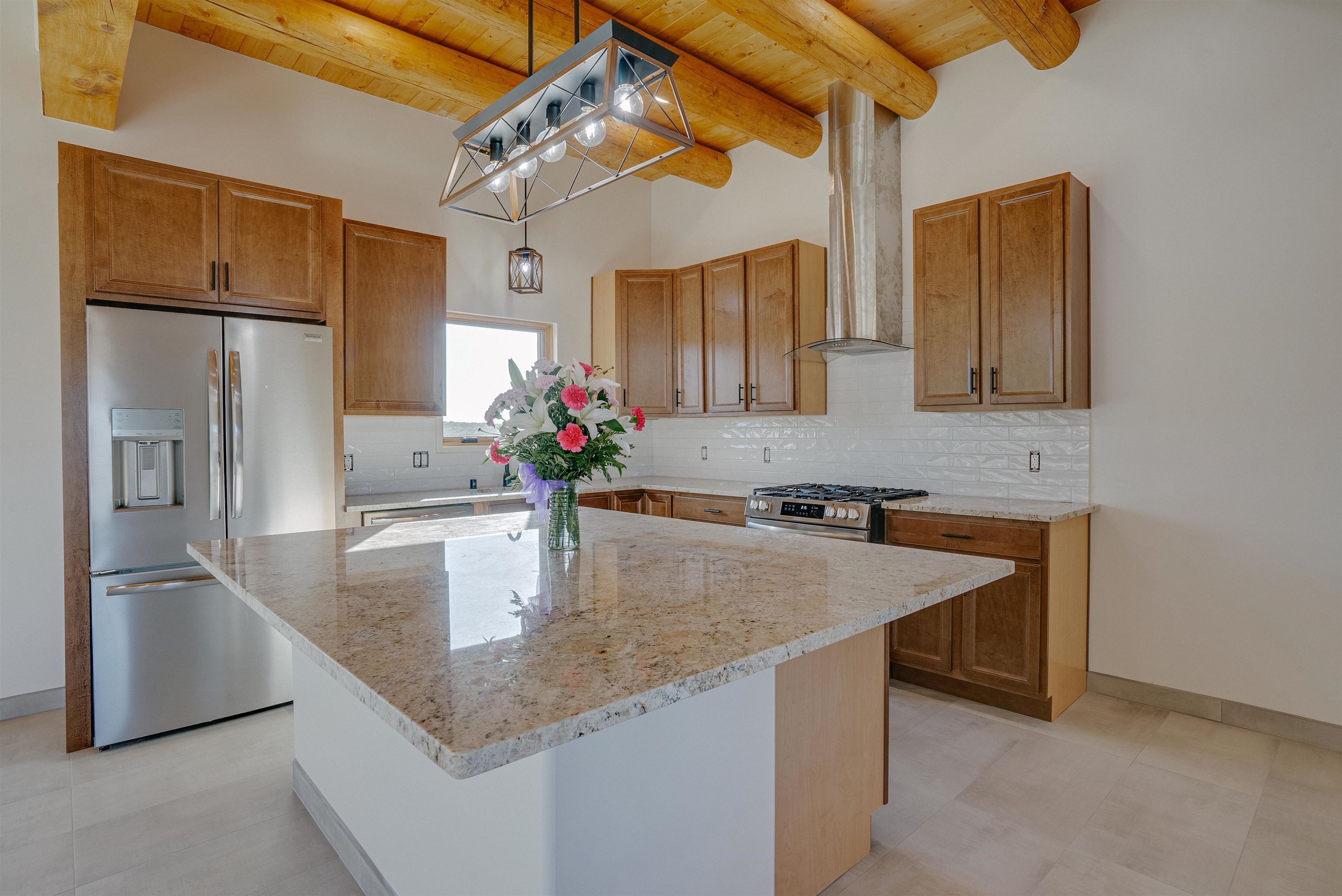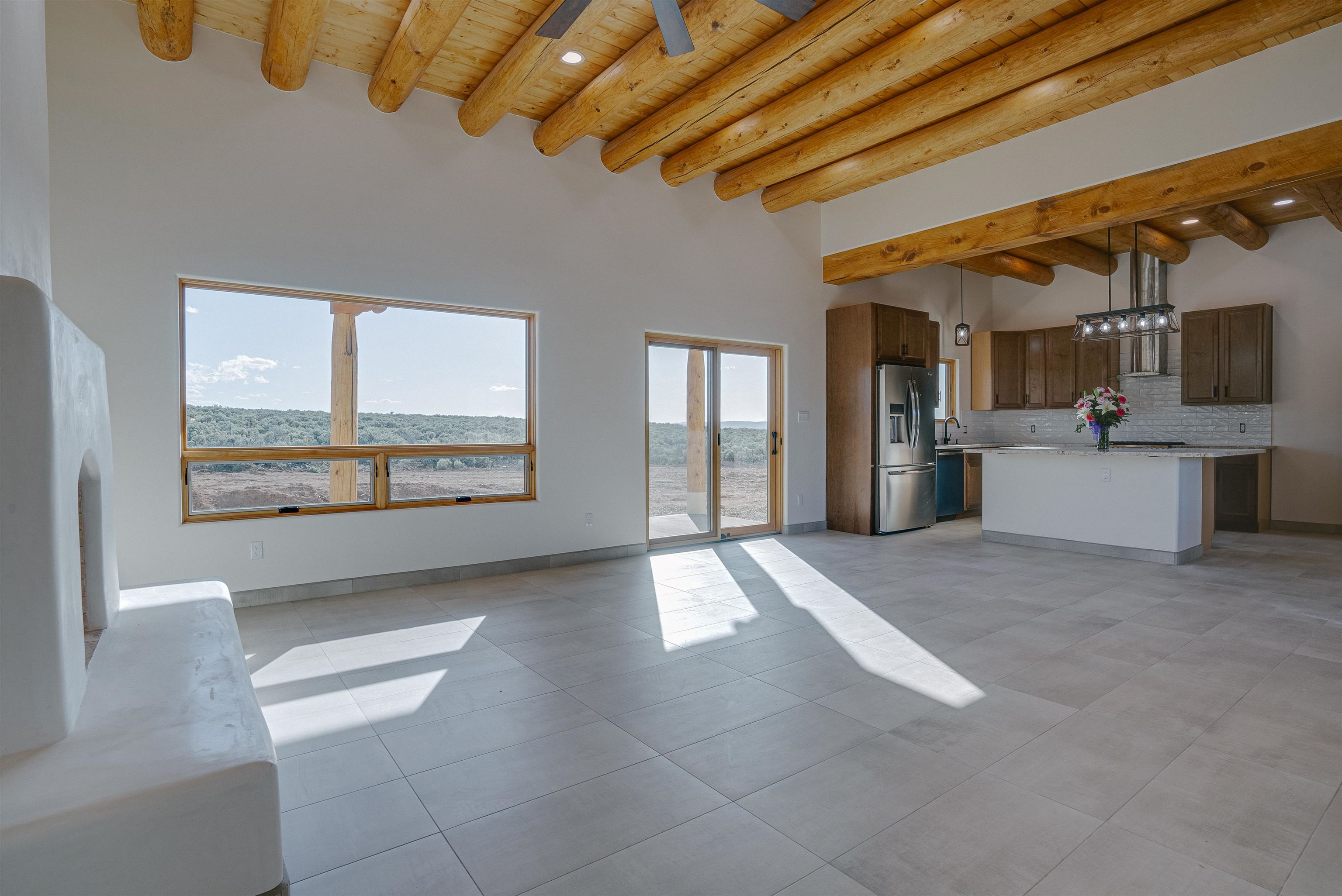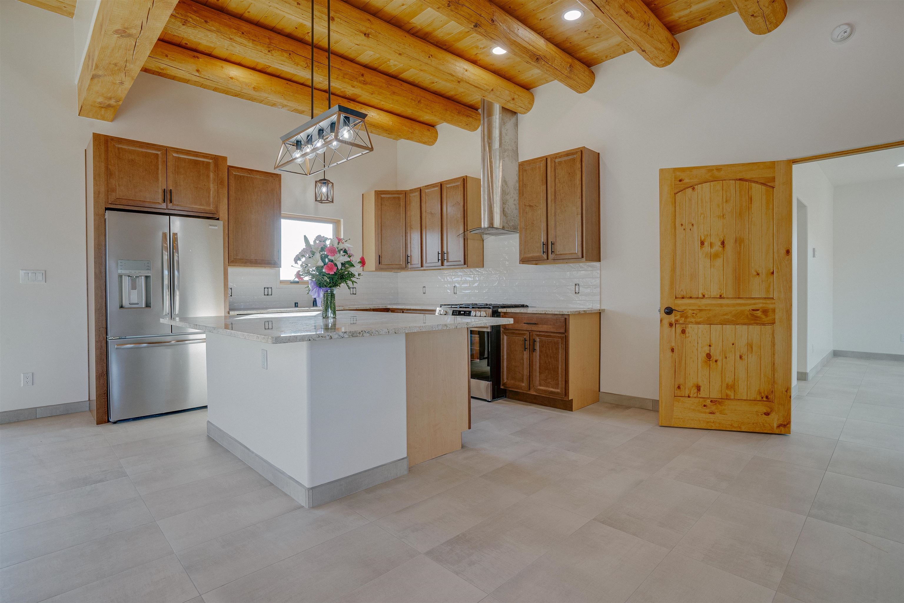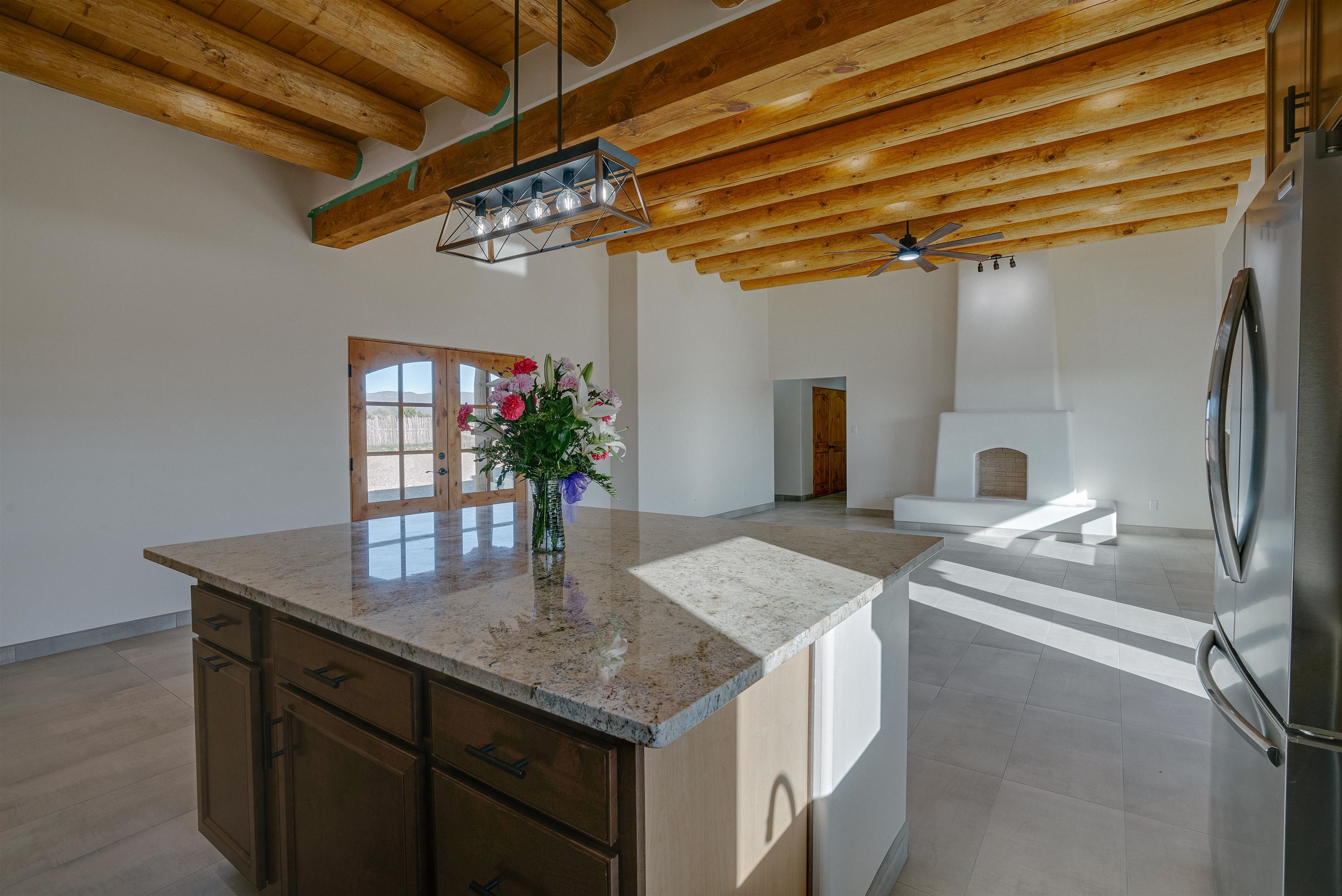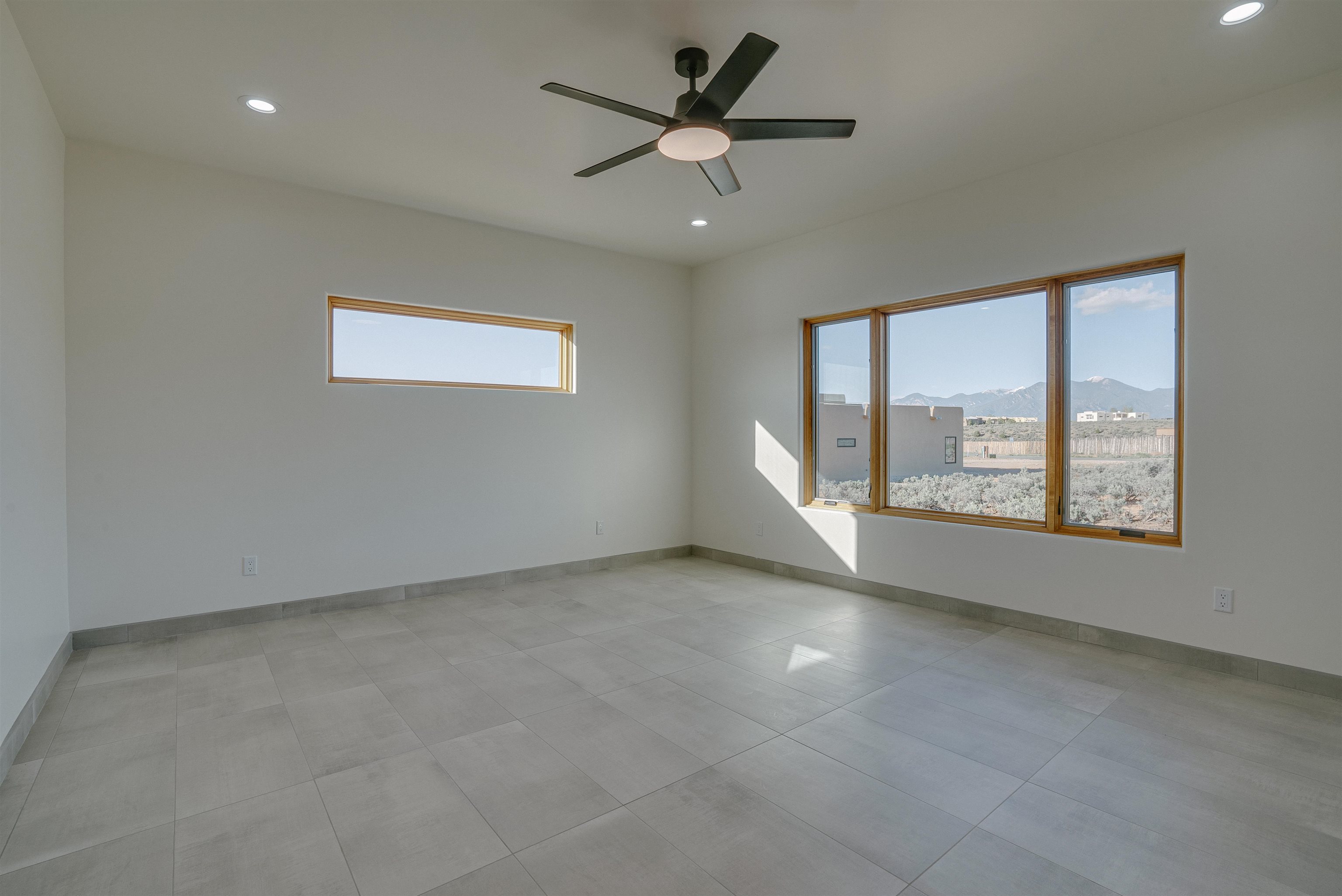 Nestled in a tranquil setting just off the pavement and adjacent to the renowned Taos Country Club, this brand-new 3-bedroom, 2-bathroom home offers the perfect blend of modern luxury and Southwestern charm. With a spacious 2-car garage and expansive floor plan, this residence is designed for both comfort and style. Enjoy the benefits of a newly built home with contemporary finishes and energy-efficient design. The open kitchen boasts sleek granite countertops, complemented by stainless steel appliances and custom cabinetry. Architectural details such as vigas and a cozy fireplace in the living room enhance the home's Southwestern appeal. The primary suite features a generous walk-in shower. Located near the Taos Rift Trail, with easy access to hiking and biking trails, perfect for outdoor enthusiasts. Revel in breathtaking views of the Taos Mountains from various vantage points within the home. This property is ideal for those seeking a serene lifestyle with proximity to recreational activities and the charm of Taos living.