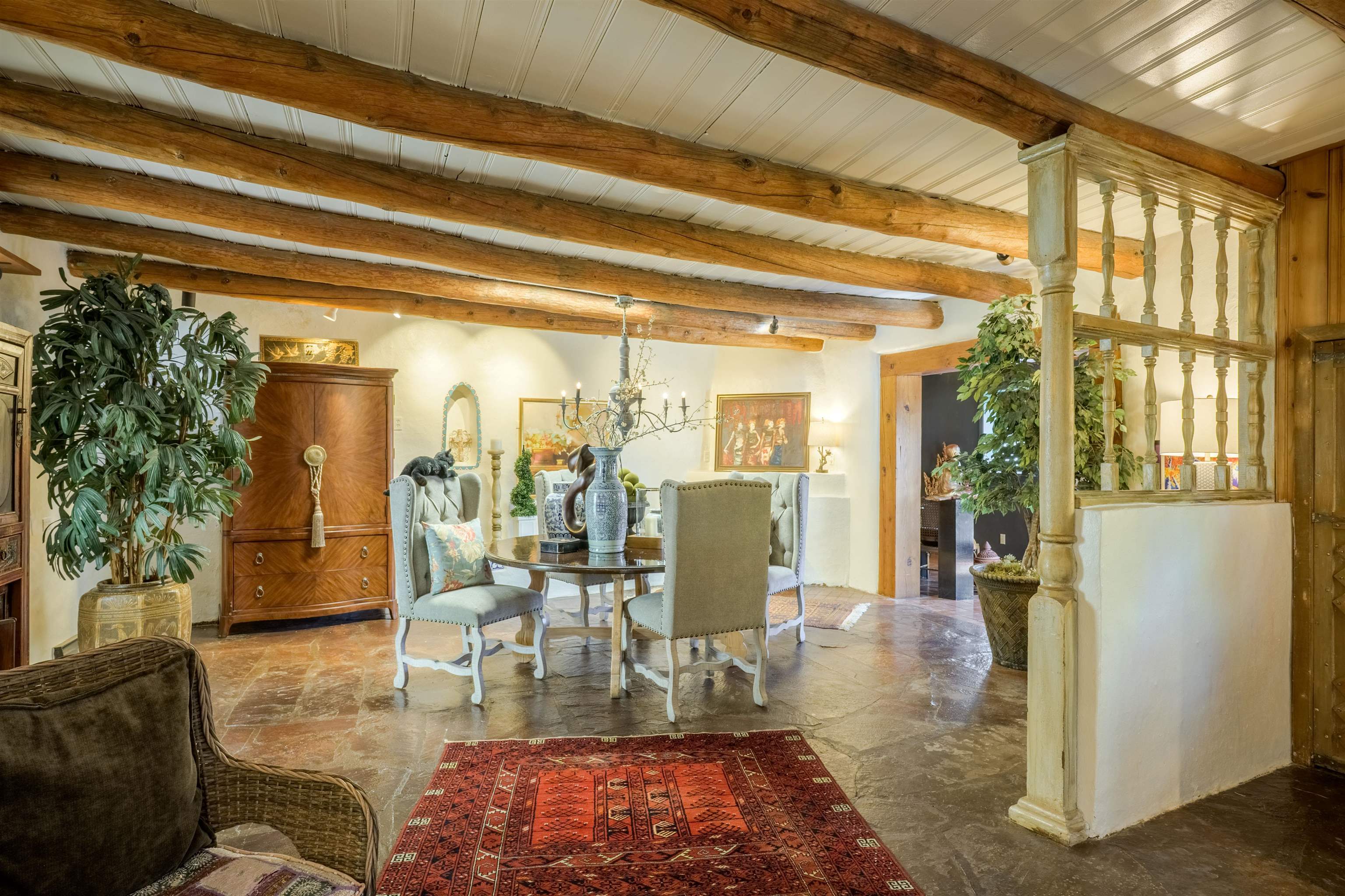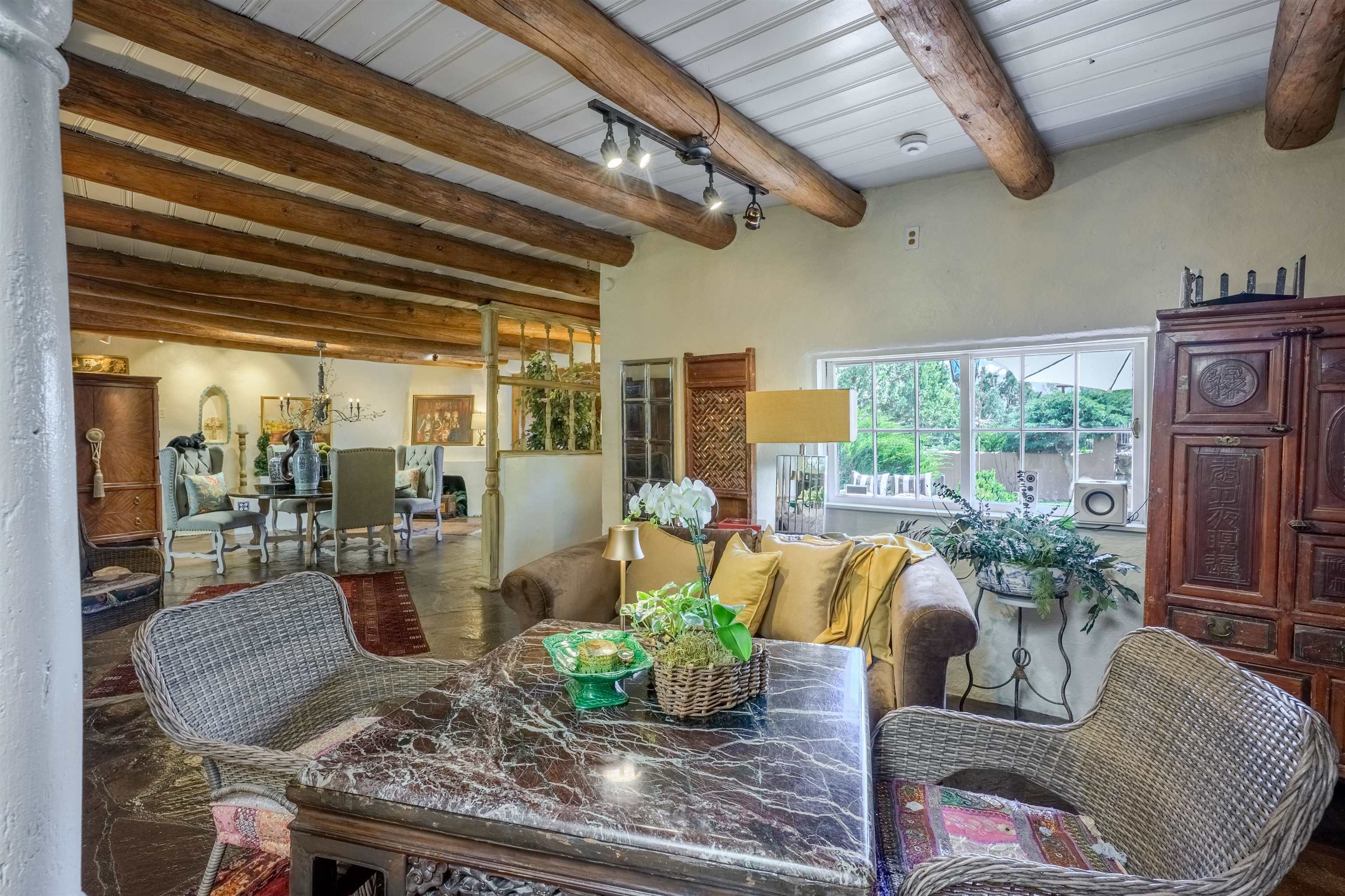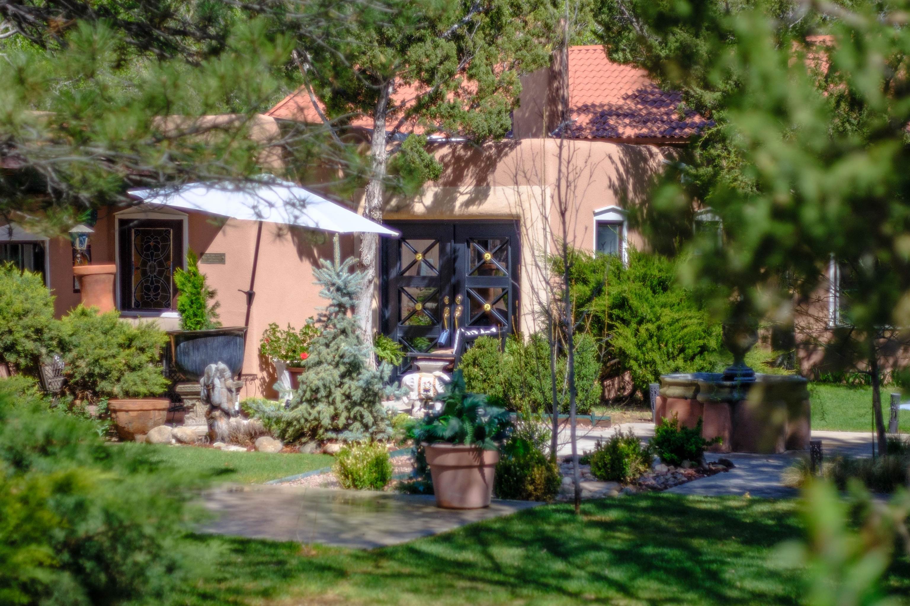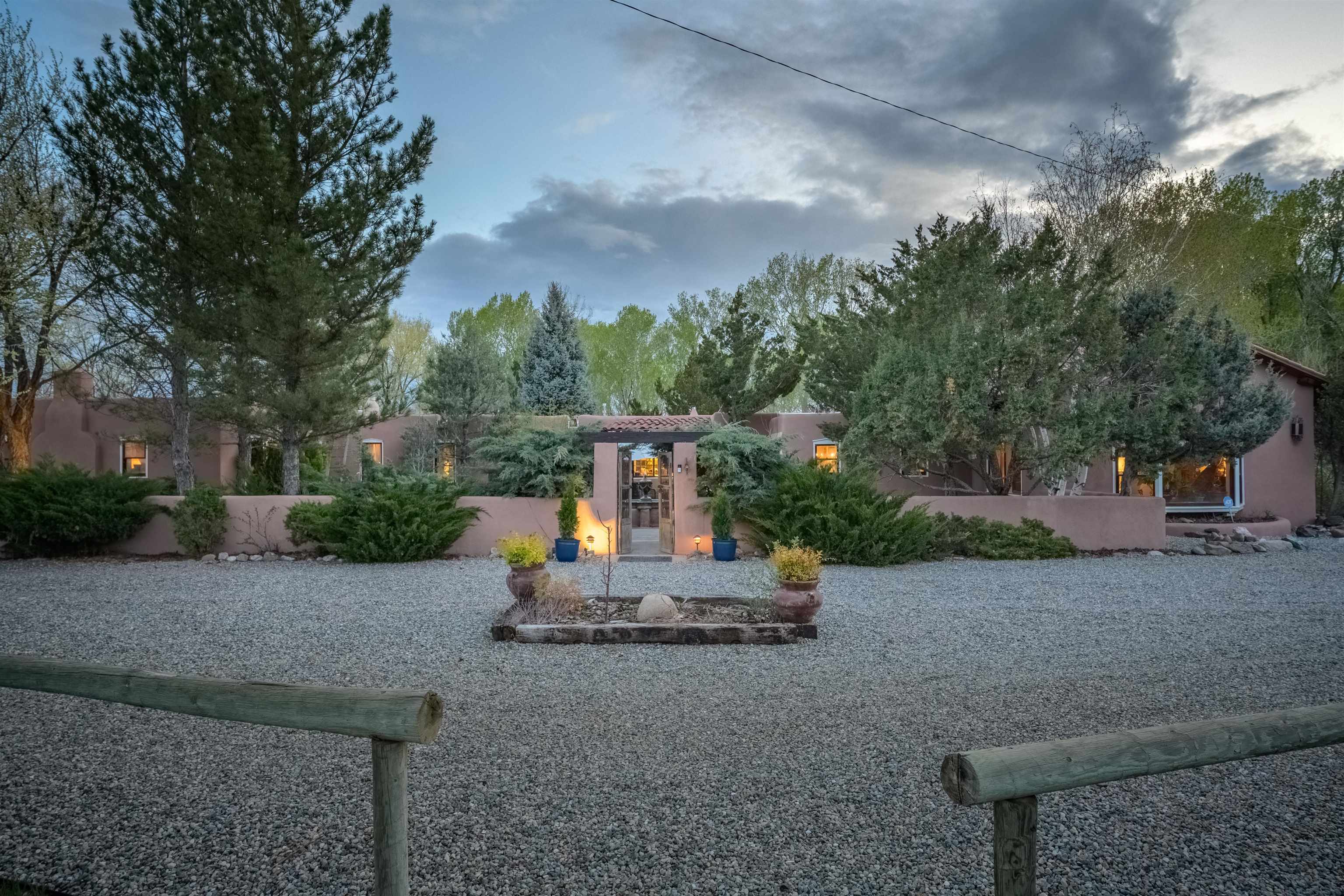 222 Highway 240, Ranchos de Taos – A Timeless Adobe Hacienda formerly home to the Griffin family of Griffin Wax Co. Steeped in history and authentic Southwest charm, this stunning 4,030 sq. ft. adobe hacienda is a rare find in the highly desirable and historic Cordillera area of Ranchos de Taos. Original portion of building is said to have be built in the 1800's several additions have followed, the largest in 1949 and 1977. This 3-bedroom, 3.5-bathroom hacienda sits on 3.34 serene acres, surrounded by mature trees, a traditional low adobe wall, and the natural beauty of the high desert. The acequia flows just near the back porch allowing for the tranquil sound of water to be enjoyed and used to keep the land lush. From the moment you step inside, the home’s character is unmistakable. Thick adobe walls, built-in storage, nichos, and five fireplaces infuse warmth and tradition throughout. The spacious living room features a dramatic pitched ceiling with dark wood beams and a classic kiva fireplace, while the rest of the home boasts lower ceilings with rustic log beams. The primary suite is a true retreat, complete with its own fireplace, an ensuite bathroom with a walk-in shower and separate tub, and an oversized closet with built-in storage. The home has undergone extensive updates while maintaining its historic integrity. A new Navien on-demand hot water system serves the radiant heating in the primary suite, and laundry room, while a brand-new 60-gallon water heater provides hot water to the kitchen and guest baths. The property has also received significant roof improvements, ensuring its longevity and durability. Beyond the main residence, an original studio with electricity that offers endless possibilities as a creative workspace or private office. Additional outbuildings provide storage and functionality, while the sprawling acreage offers ample space for horses or future expansion. With easy access to the heart of Taos and the iconic Ranchos de Taos Plaza, this extraordinary home embodies the essence of New Mexico’s history, craftsmanship, and timeless appeal. If you’ve been searching for an authentic adobe estate with character, history, and modern conveniences, look no further—this is the one.