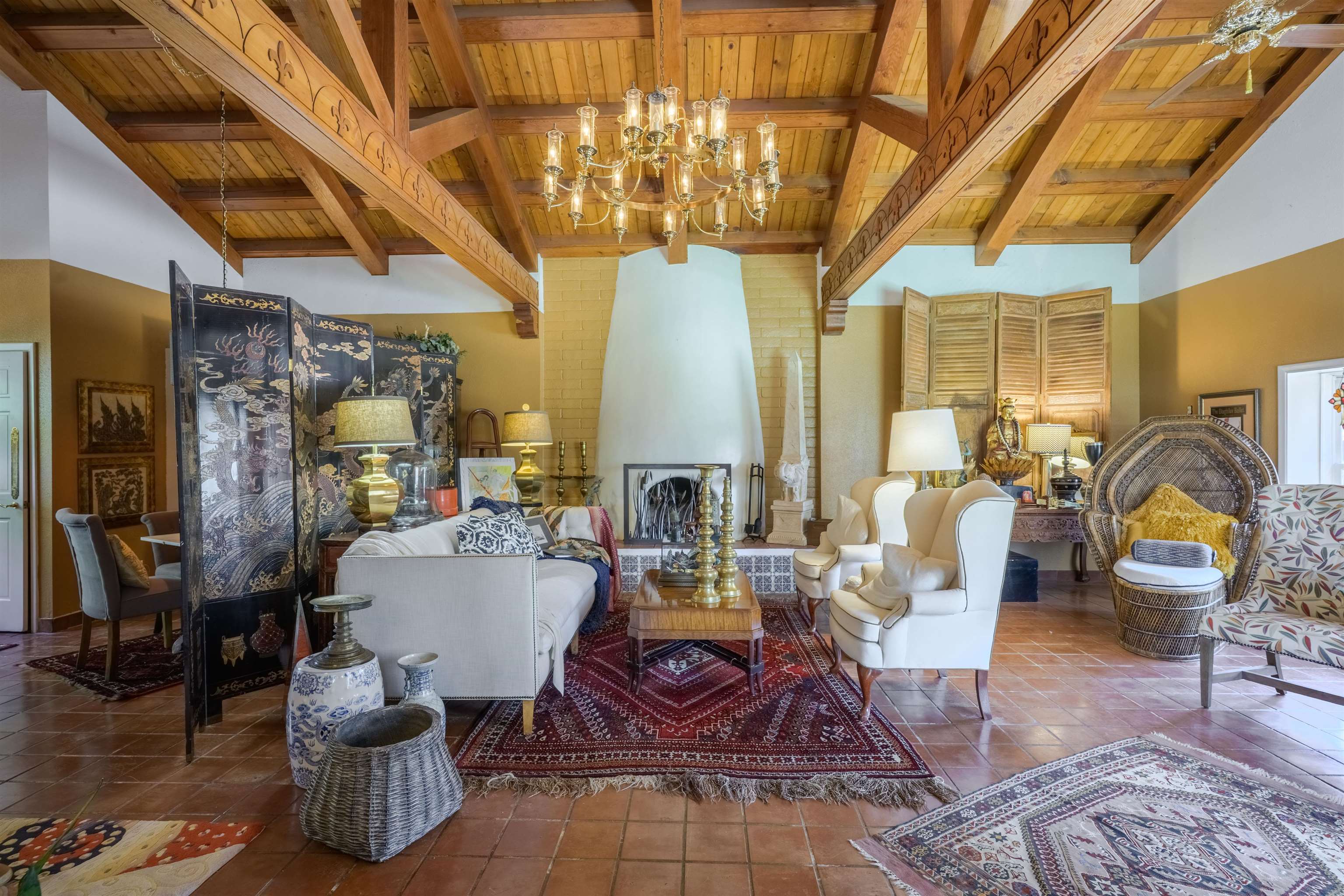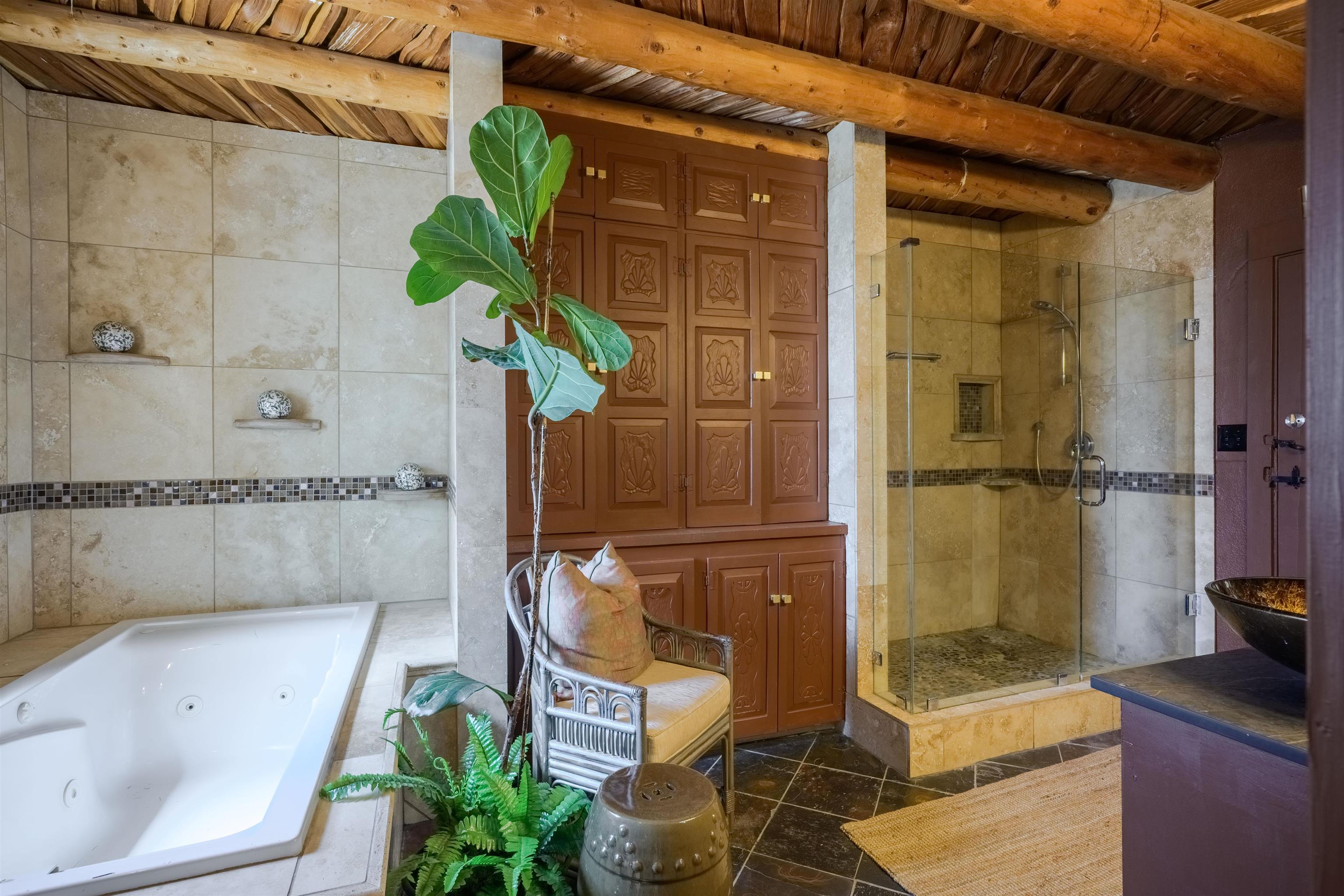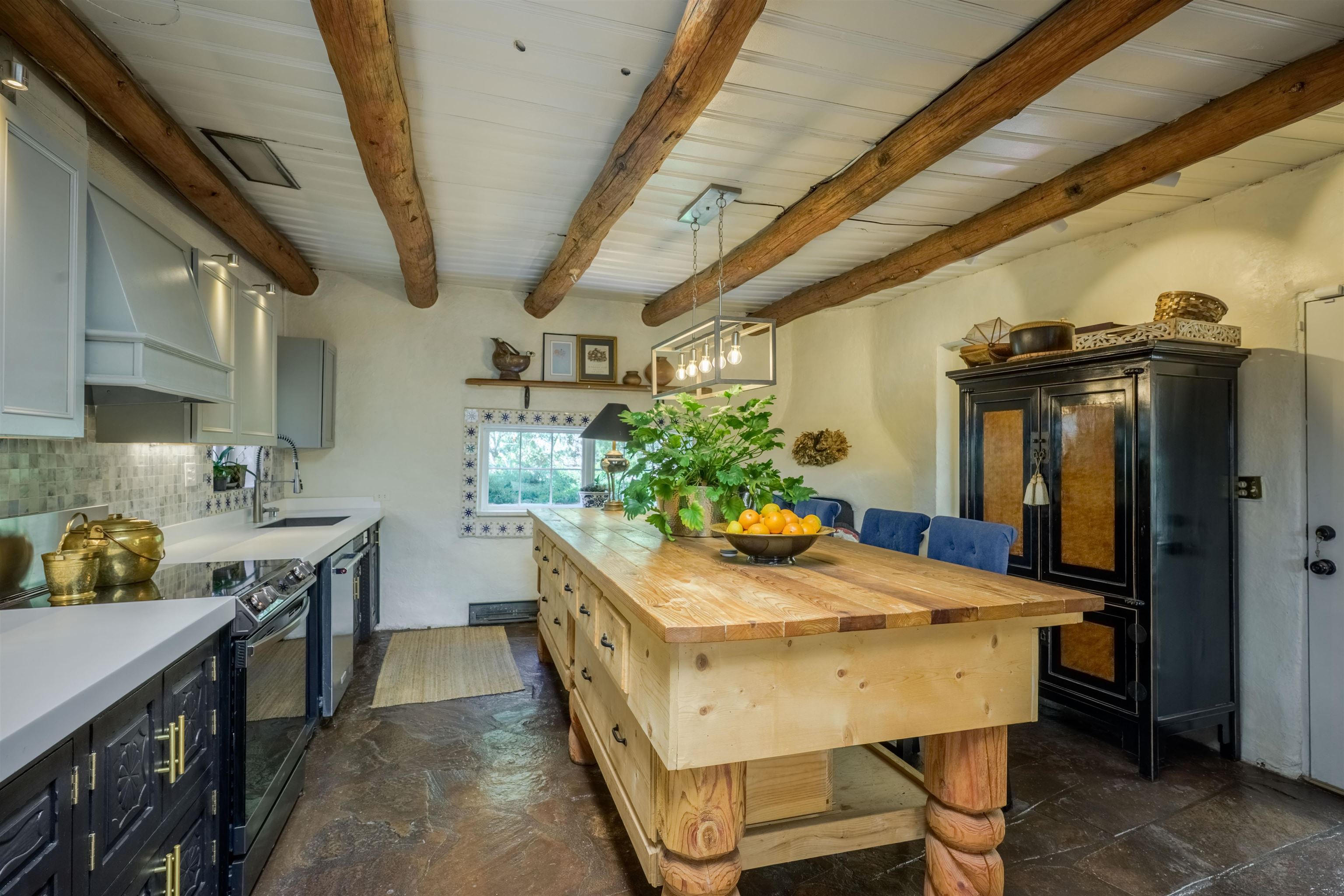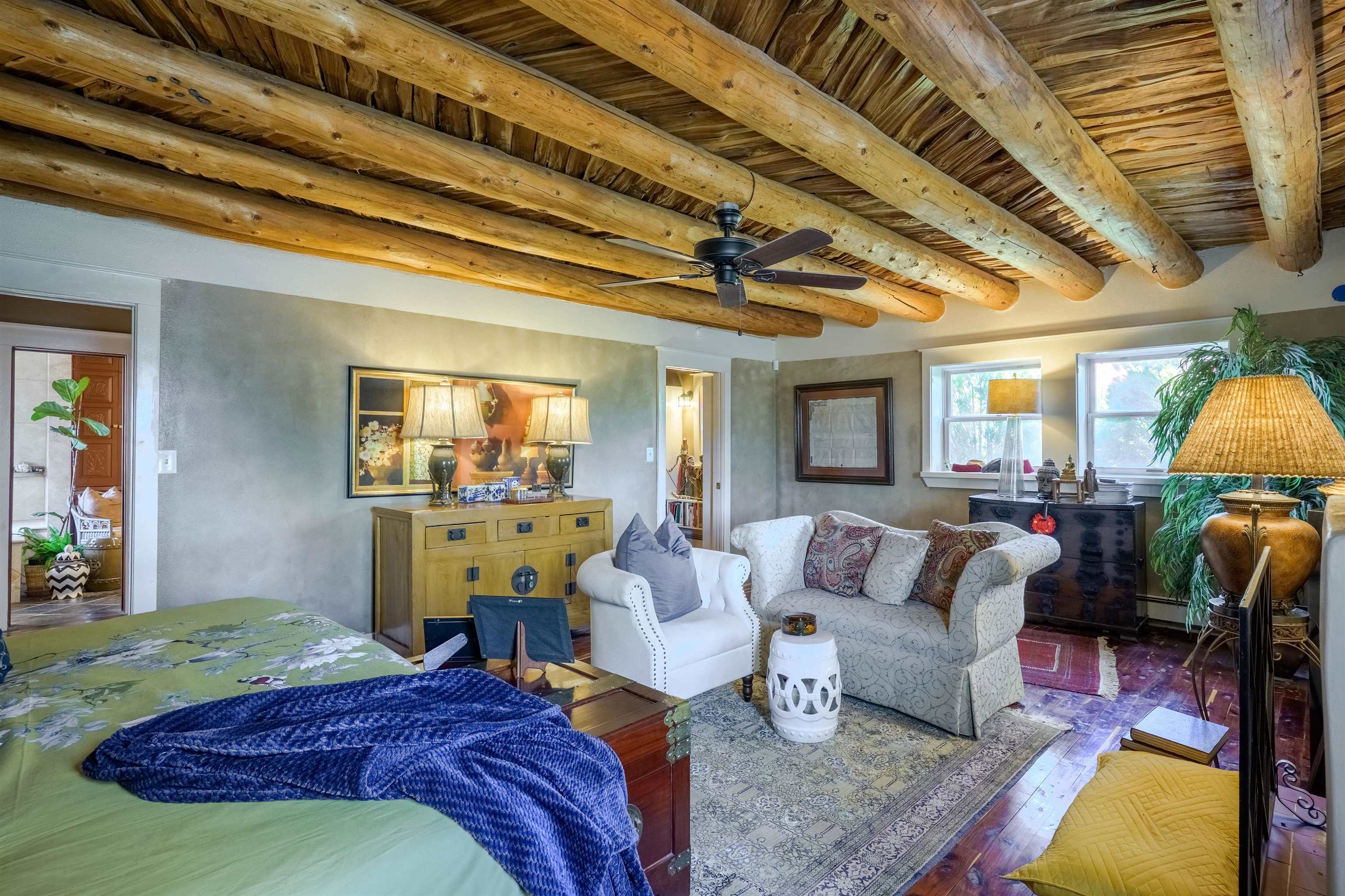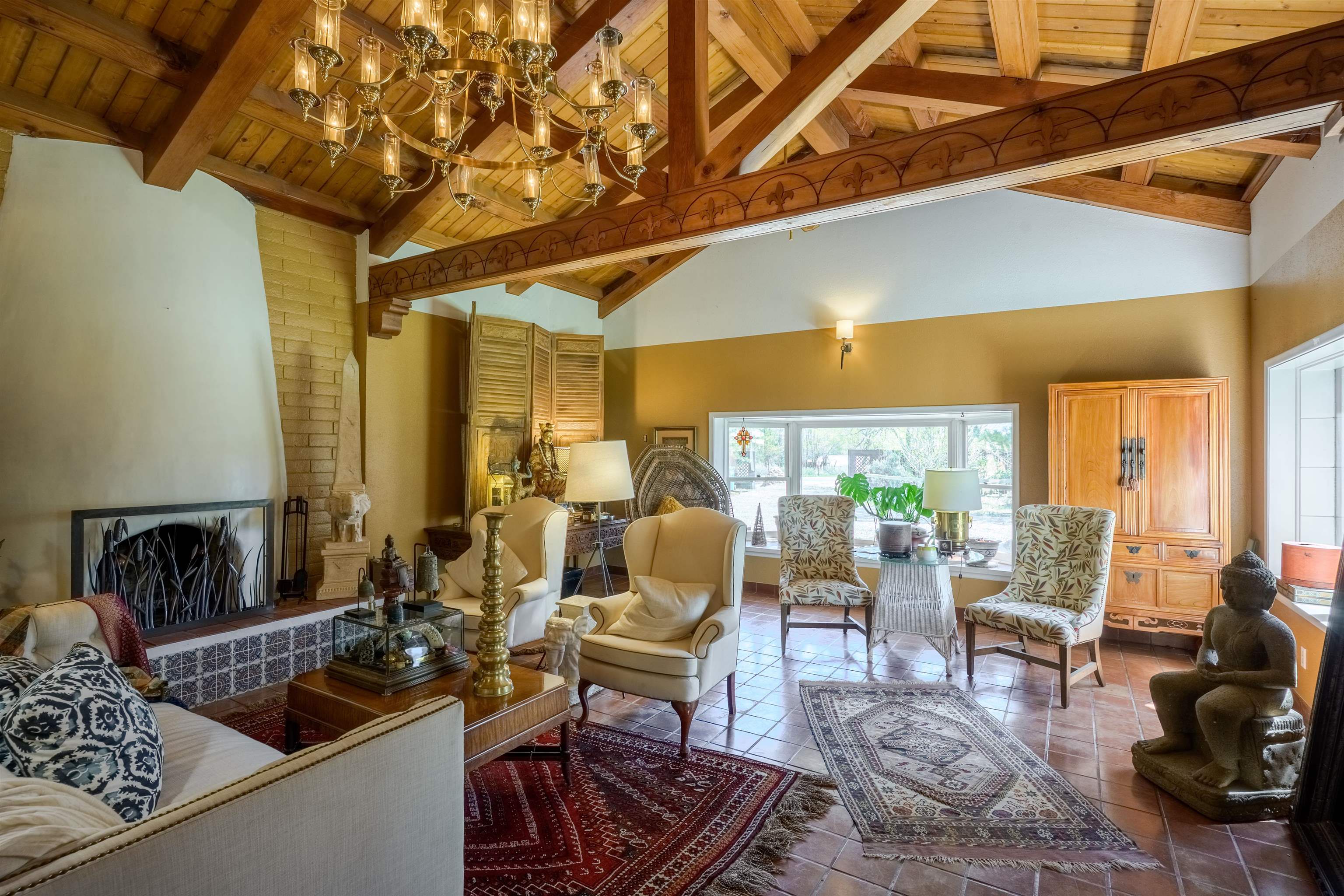 222 Highway 240, Ranchos de Taos – A Timeless Adobe Hacienda formerly home to the Griffin family of Griffin Wax Co. Steeped in history and authentic Southwest charm, this stunning 4,030 sq. ft. adobe hacienda is a rare find in the highly desirable and historic Cordillera area of Ranchos de Taos. Original portion of building is said to have be built in the 1800's several additions have followed, the largest in 1949 and 1977. This 3-bedroom, 3.5-bathroom hacienda sits on 3.34 serene acres, surrounded by mature trees, a traditional low adobe wall, and the natural beauty of the high desert. The acequia flows just near the back porch allowing for the tranquil sound of water to be enjoyed and used to keep the land lush. From the moment you step inside, the home’s character is unmistakable. Thick adobe walls, built-in storage, nichos, and five fireplaces infuse warmth and tradition throughout. The spacious living room features a dramatic pitched ceiling with dark wood beams and a classic kiva fireplace, while the rest of the home boasts lower ceilings with rustic log beams. The primary suite is a true retreat, complete with its own fireplace, an ensuite bathroom with a walk-in shower and separate tub, and an oversized closet with built-in storage. The home has undergone extensive updates while maintaining its historic integrity. A new Navien on-demand hot water system serves the radiant heating in the primary suite, and laundry room, while a brand-new 60-gallon water heater provides hot water to the kitchen and guest baths. The property has also received significant roof improvements, ensuring its longevity and durability. Beyond the main residence, an original studio with electricity that offers endless possibilities as a creative workspace or private office. Additional outbuildings provide storage and functionality, while the sprawling acreage offers ample space for horses or future expansion. With easy access to the heart of Taos and the iconic Ranchos de Taos Plaza, this extraordinary home embodies the essence of New Mexico’s history, craftsmanship, and timeless appeal. If you’ve been searching for an authentic adobe estate with character, history, and modern conveniences, look no further—this is the one.