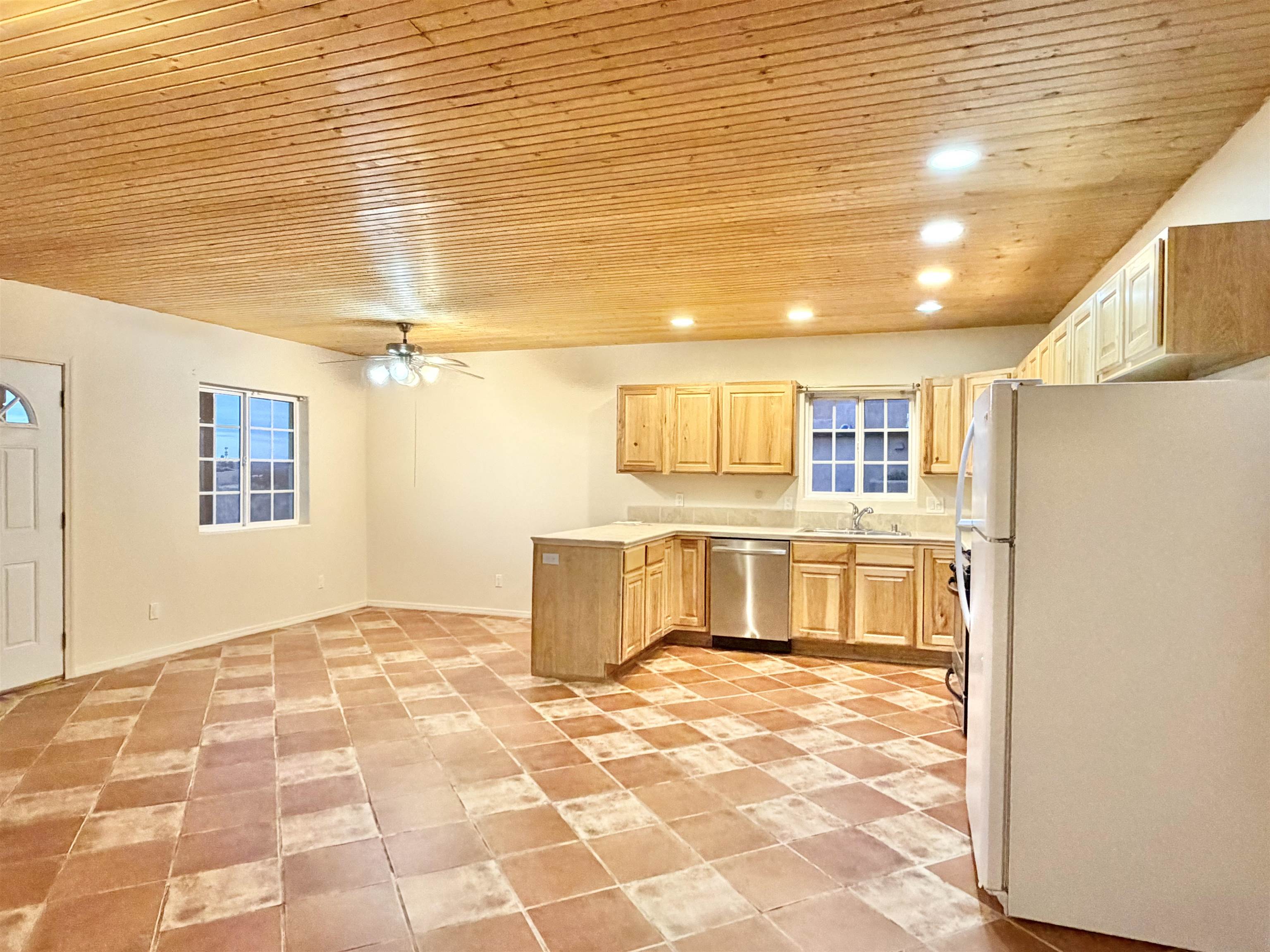 Welcome to this nice residence, conveniently situated within the Town of Taos, offering access to numerous amenities. The property is situated within walking distance of the Town of Taos Children Youth and Family Center, swimming pool, Taos Middle School, Taos Charter School, and Gutter’s Bowling Alley just to name a few. Approximately 1301 square feet, this Pueblo-style, Southwestern-inspired home boasts a unique layout with tile throughout and some tongue and groove ceilings nicely decorating the interior. Upon entering, you will be greeted by an open floor plan featuring the living room, dining area, and kitchen. The residence comprises three bedrooms located at the rear, along with two bathrooms and a laundry room. This home is situated on a .13 acre lot within the Chamisa Verde Subdivision, which is within a Planned Unit Development (PUD) zone for the Town of Taos. The home features a fenced in back yard for privacy and possibly landscaping or gardening. There is an attached one-car garage, perfect for your vehicle, storage space or workshop. This property conveniently has city water, city sewer and utilities. For a personalized viewing of this conveniently located home, schedule your showing today.