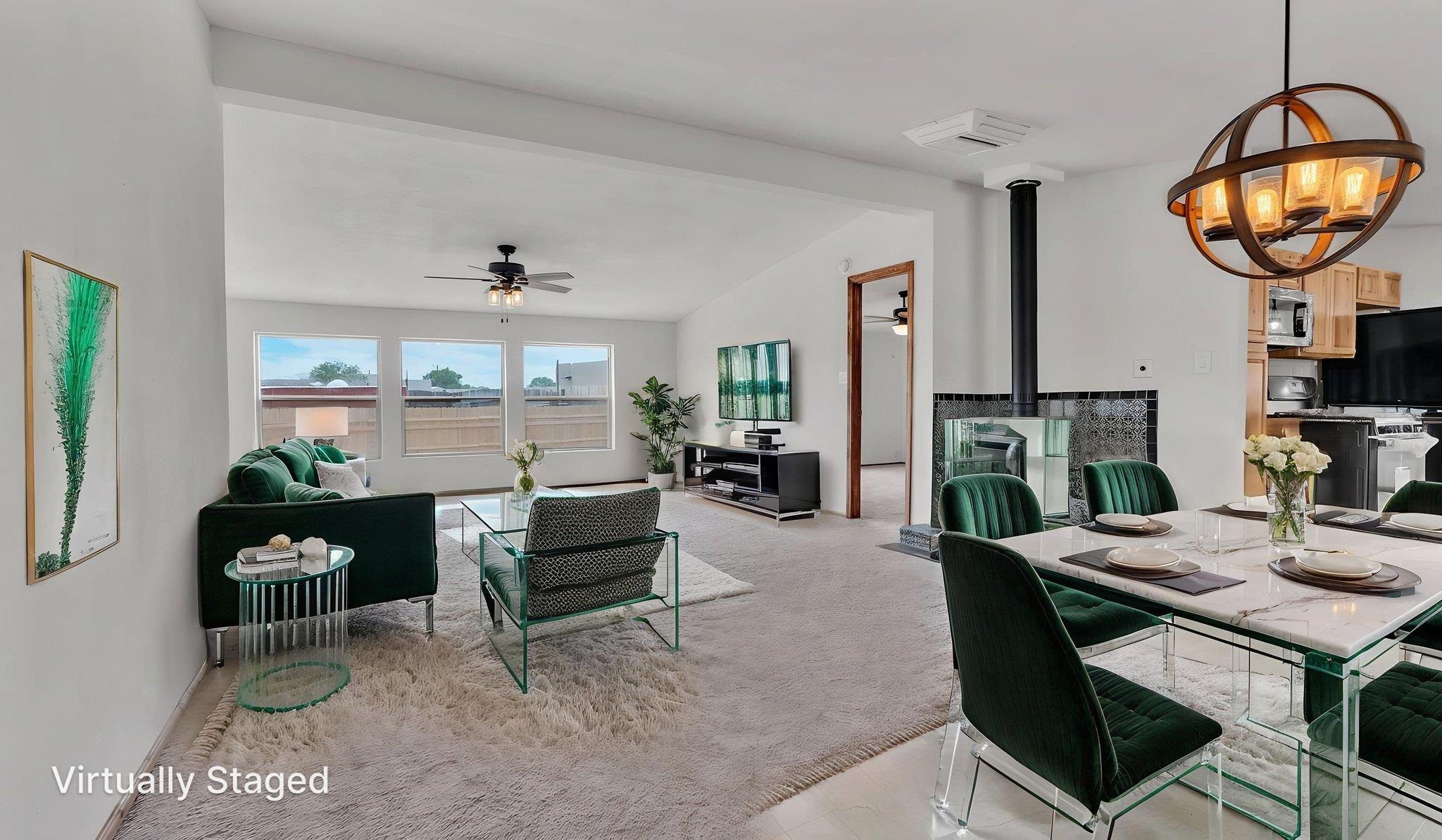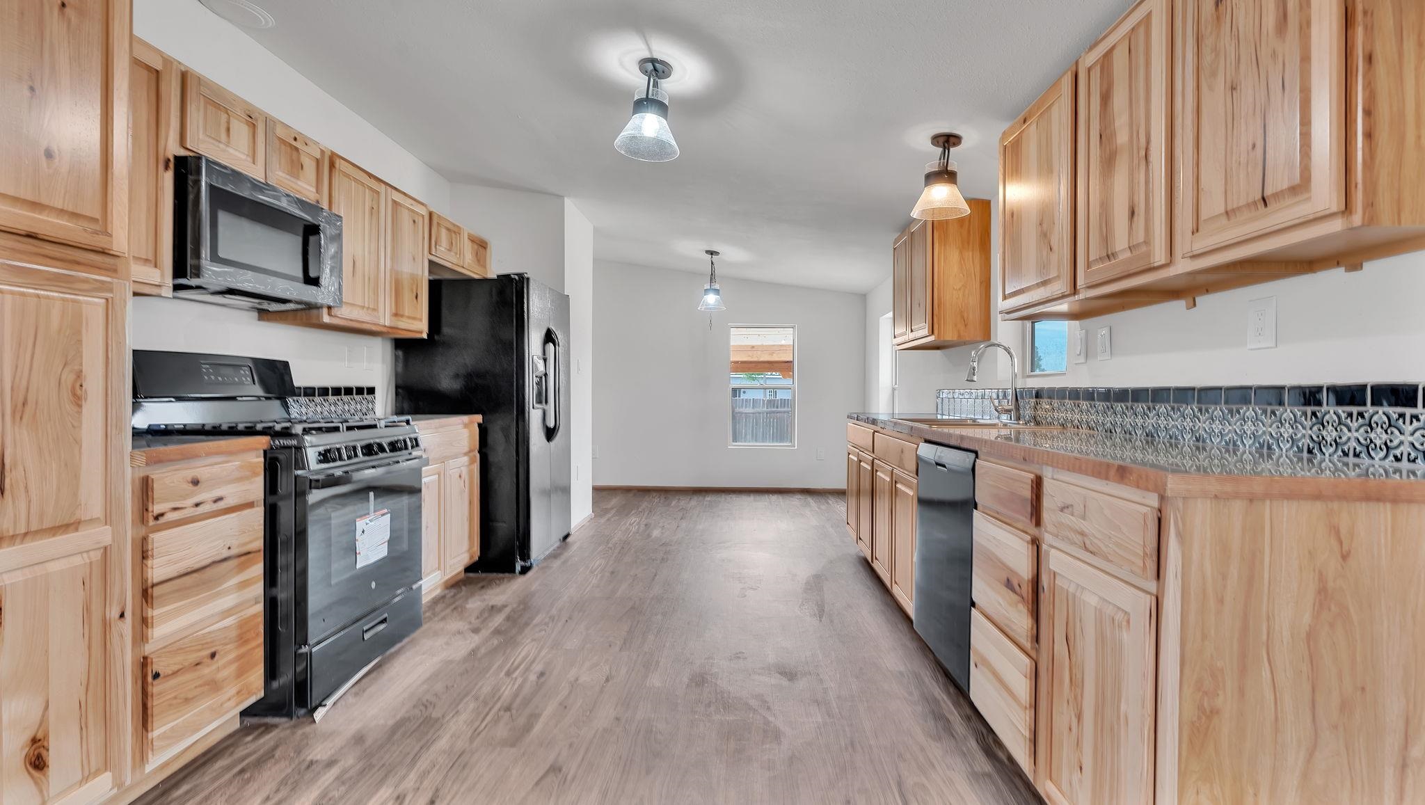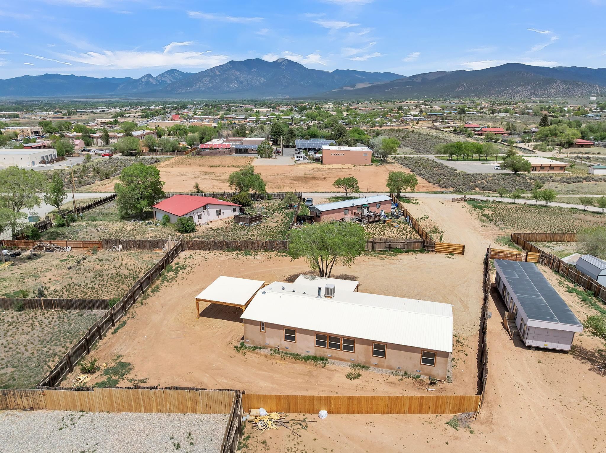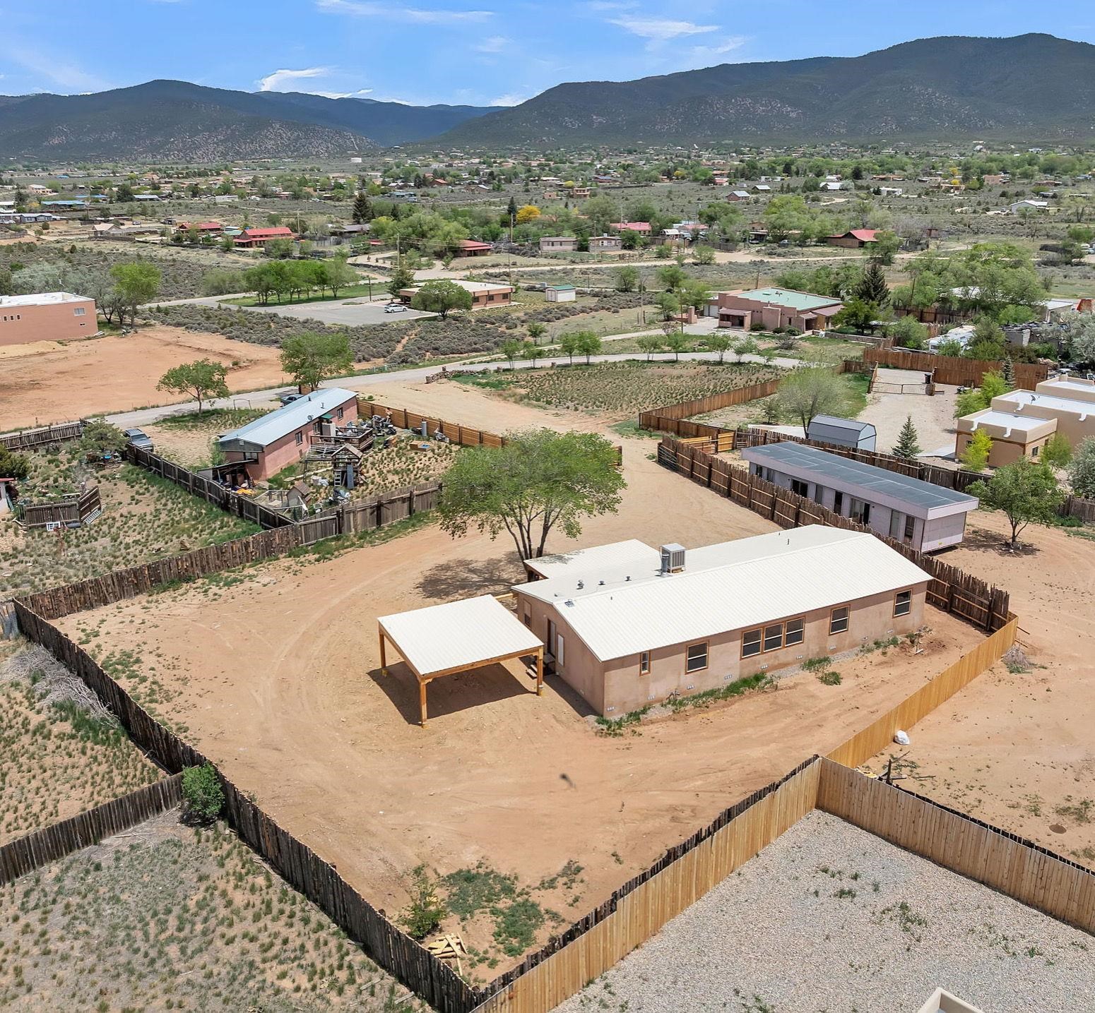 A Private Taos Haven Minutes from Town ~ Privacy, space, and unbeatable convenience to downtown Taos is what you will find at 16 Medina Lane located within a lovely newly re-developed neighborhood. The 5 bedroom, 3 bathroom residence with a carport and ADA access ramp is the perfect fit for a number of living arrangements. The layout itself is an open-concept floor plan with a living room, dining area, and kitchen that flow effortlessly to create the perfect hub for hanging with family or entertaining guests. Pure comfort with plenty of natural light, especially within the chef-inspired kitchen that boasts sleek granite countertops and modern stainless-steel appliances that perfectly complement other classic features of the home The tranquil primary suite is strategically placed on one end of the home, offering a private sanctuary, while the remaining four bedrooms are ideally situated to the East. The exterior space is large, fully fenced, and a blank canvas for creating your own garden or putting up your workshop—a rare find so close to town. This is a secure and private abode where friends, family and four-legged friends can play freely. Properties like this, offering modern comfort and privacy minutes from everything don't last long. Some photos have been virtually staged to spark some creativity. Reach out, or have a drive around the neighborhood to see for yourself!