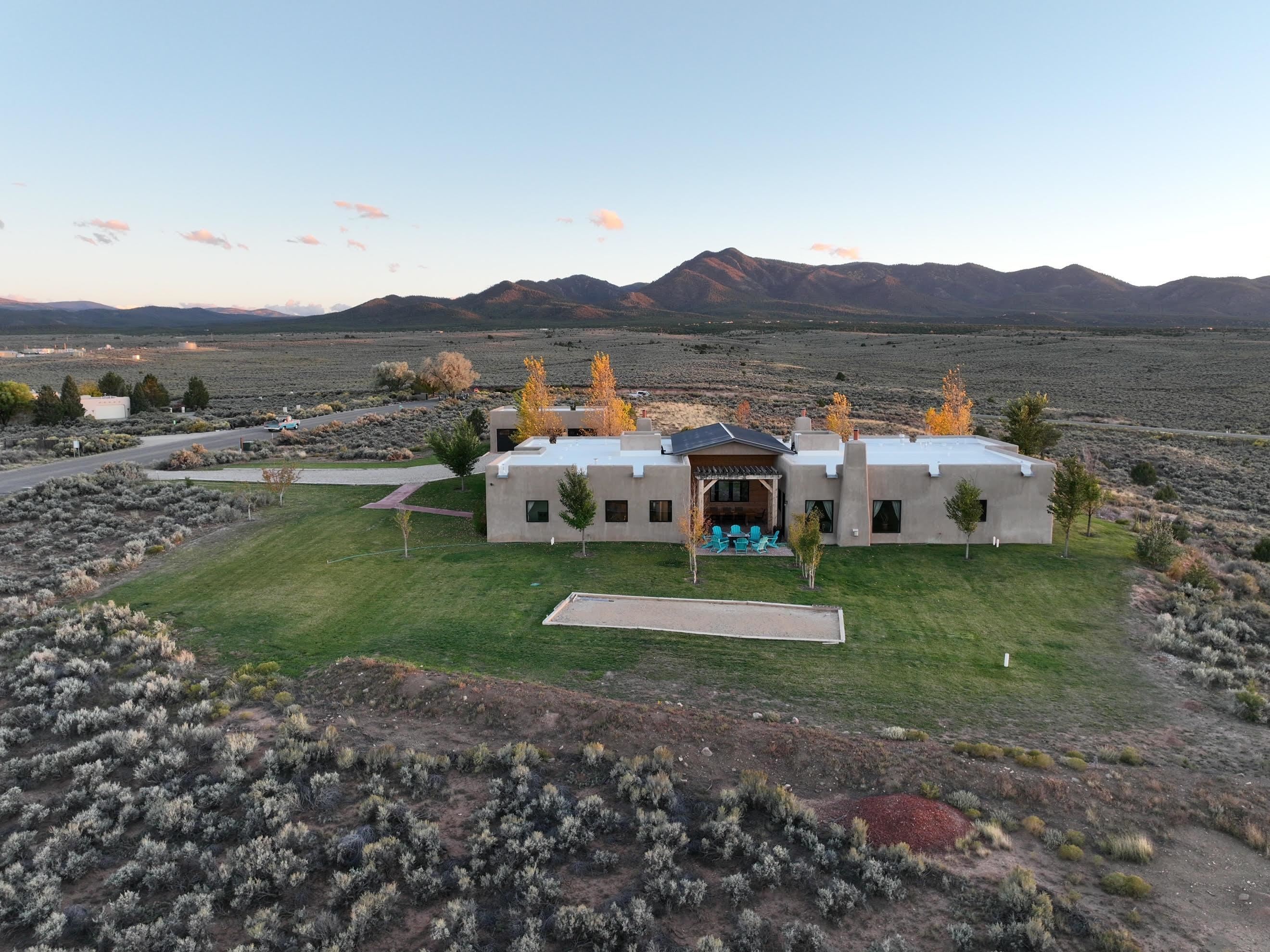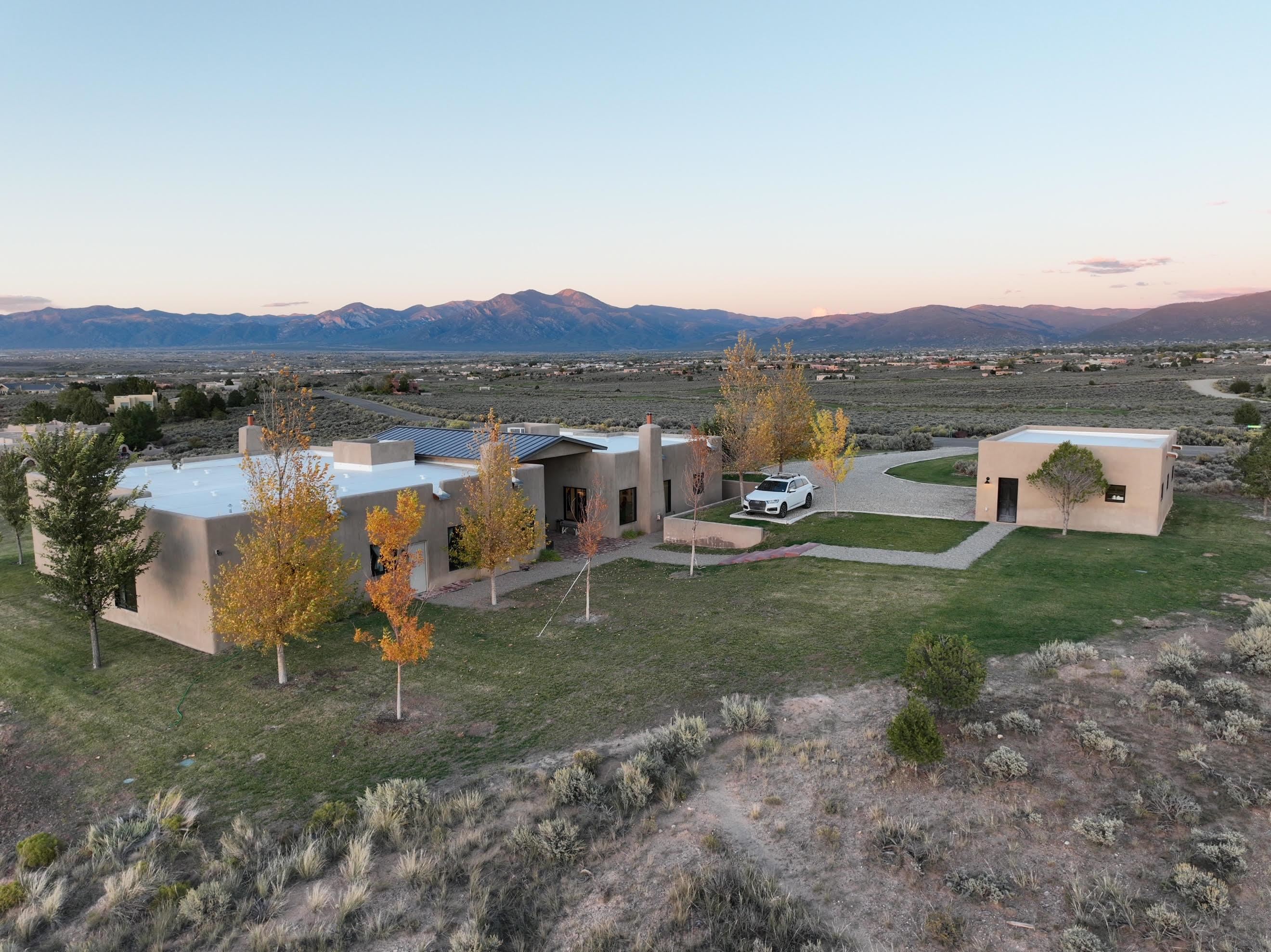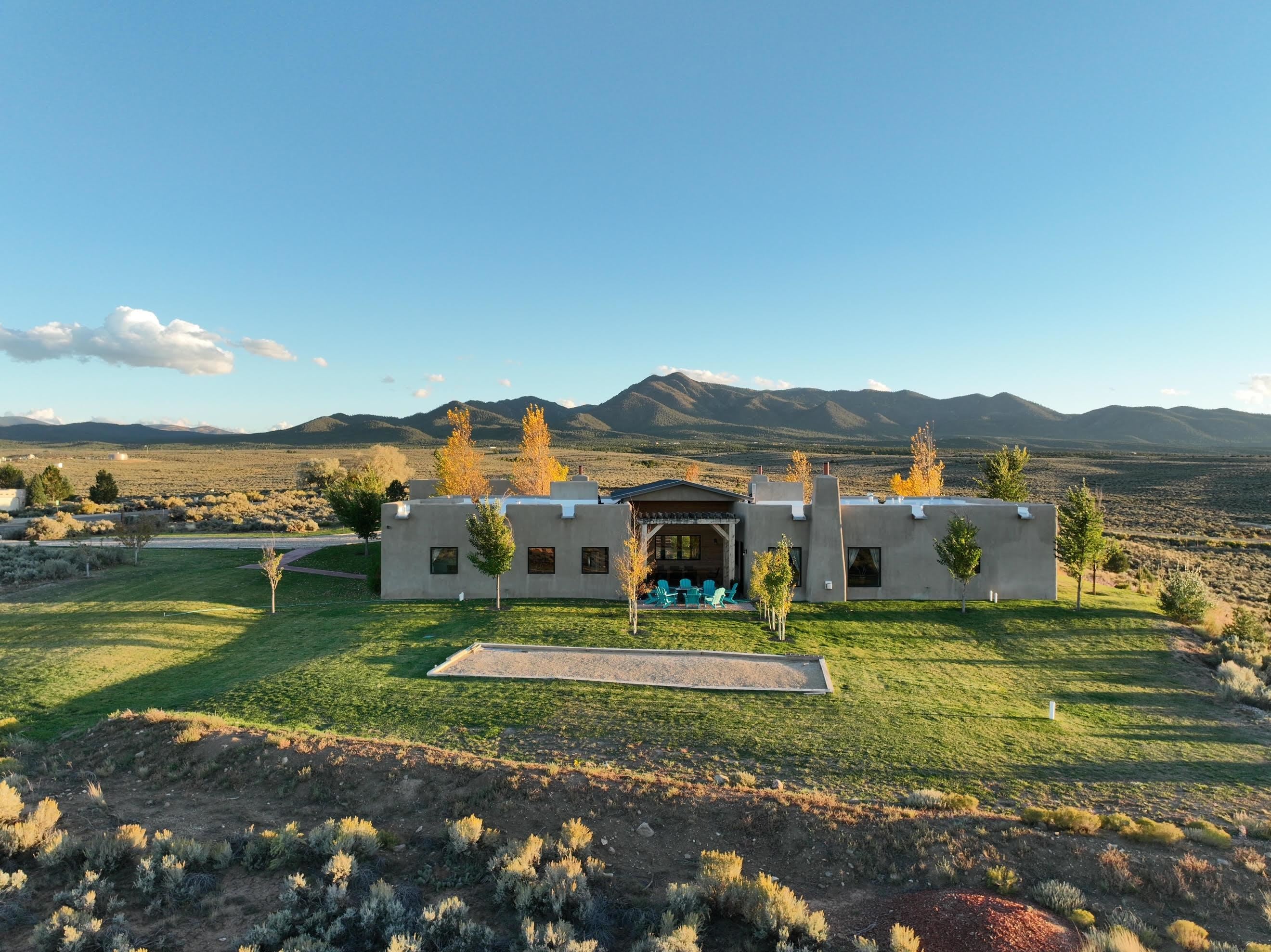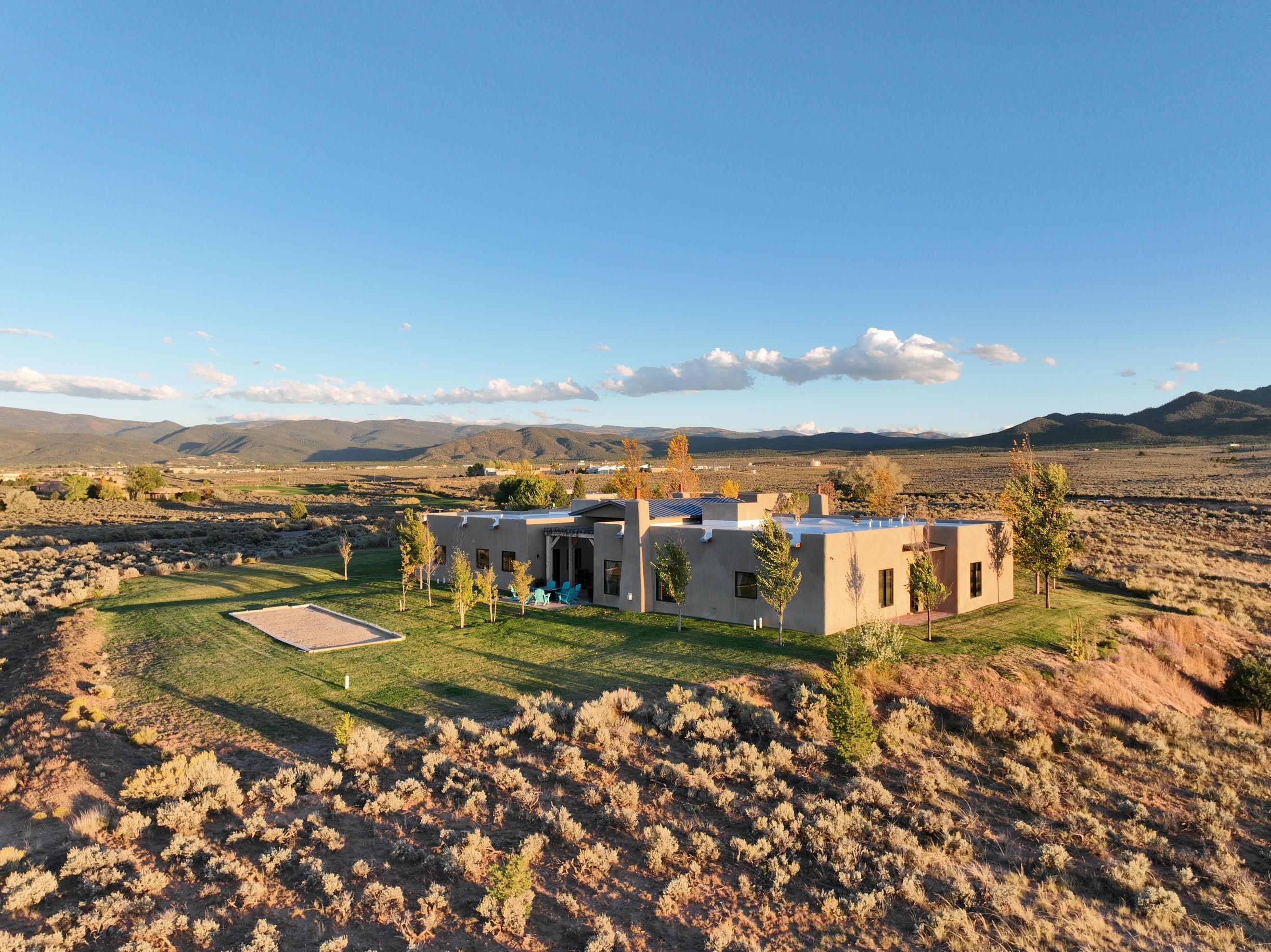 Situated on 6.77 acres spanning four independent parcels (two with direct access off of CR-110), 8 Golf Course Drive is a large and elegant home thoughtfully designed and with mountain views in every direction. Located conveniently on the southern end of Taos, you'll find that Taos Country Club & Golf Course is up the road, Taos Ski Valley is a short 30-minute drive, and Taos Plaza only 10-minutes away. Built in 2020, the home is designed to accommodate 8-12 guests and provides both privacy and community within the same space. The home’s four bedrooms and four and a half bathrooms are sure to give your family and friends room to explore and relax. While spacious, the home has a warm feel perfect for time to enjoy and rejuvenate. Given that this home is situated in a country club setting just adjacent to the Taos Country Club community, the seller is also interested in exploring opportunities to fractionalize the property (See MLS #113552) and undertake future expansion plans with potential buyers that are interested in not owning the home outright but would prefer to own a part of it with guaranteed access typical for a fractional ownership arrangement. Please contact listing broker for more detailed information about this option.
