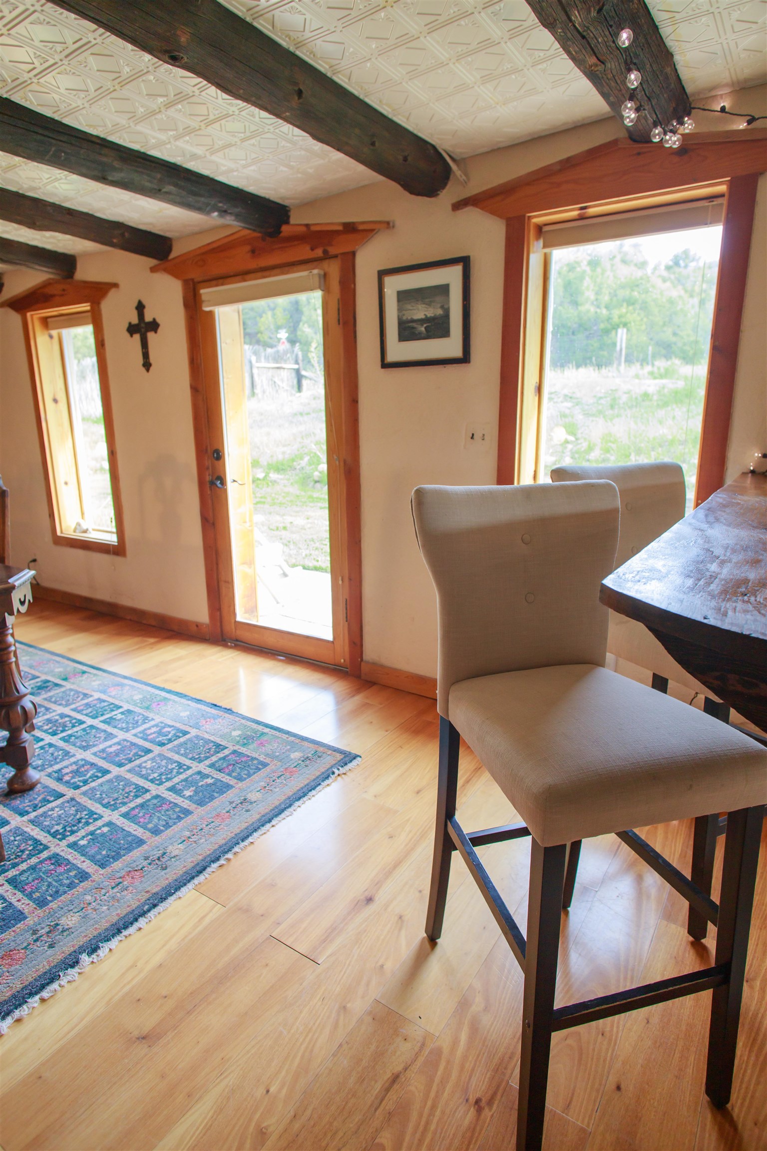 This cherished Territorial-style adobe home rests on a peaceful 1-acre parcel in the heart of the Peñasco Valley, offering southern exposure and natural drainage—ideal conditions for food production, outdoor living, or keeping livestock. With a rare blend of traditional Northern New Mexico craftsmanship and thoughtful modern updates, this home was lovingly built by the original owner as a handcrafted gift for his daughter—a true testament to cultural heritage and reverence for the land. Constructed in the classic Territorial tradition, the 3 bedroom, 2 bath home features thick adobe walls for natural insulation, reclaimed wooden vigas and beams, and a pitched metal roof installed in 2015. A private domestic well and adjudicated irrigation water rights support gardening, orchards, or small-scale agriculture. Nestled at the end of Roybal Road, the property enjoys expansive sky views and quiet privacy. It is located off the scenic High Road to Taos, just 40 minutes from Taos, 60 minutes from Santa Fe, and 15 minutes from Sipapu Ski Area and Dixon wineries. Whether envisioned as a homestead, artist’s retreat, or seasonal basecamp in the Sangre de Cristo foothills, this property offers a soulful connection to land, culture, and craft.