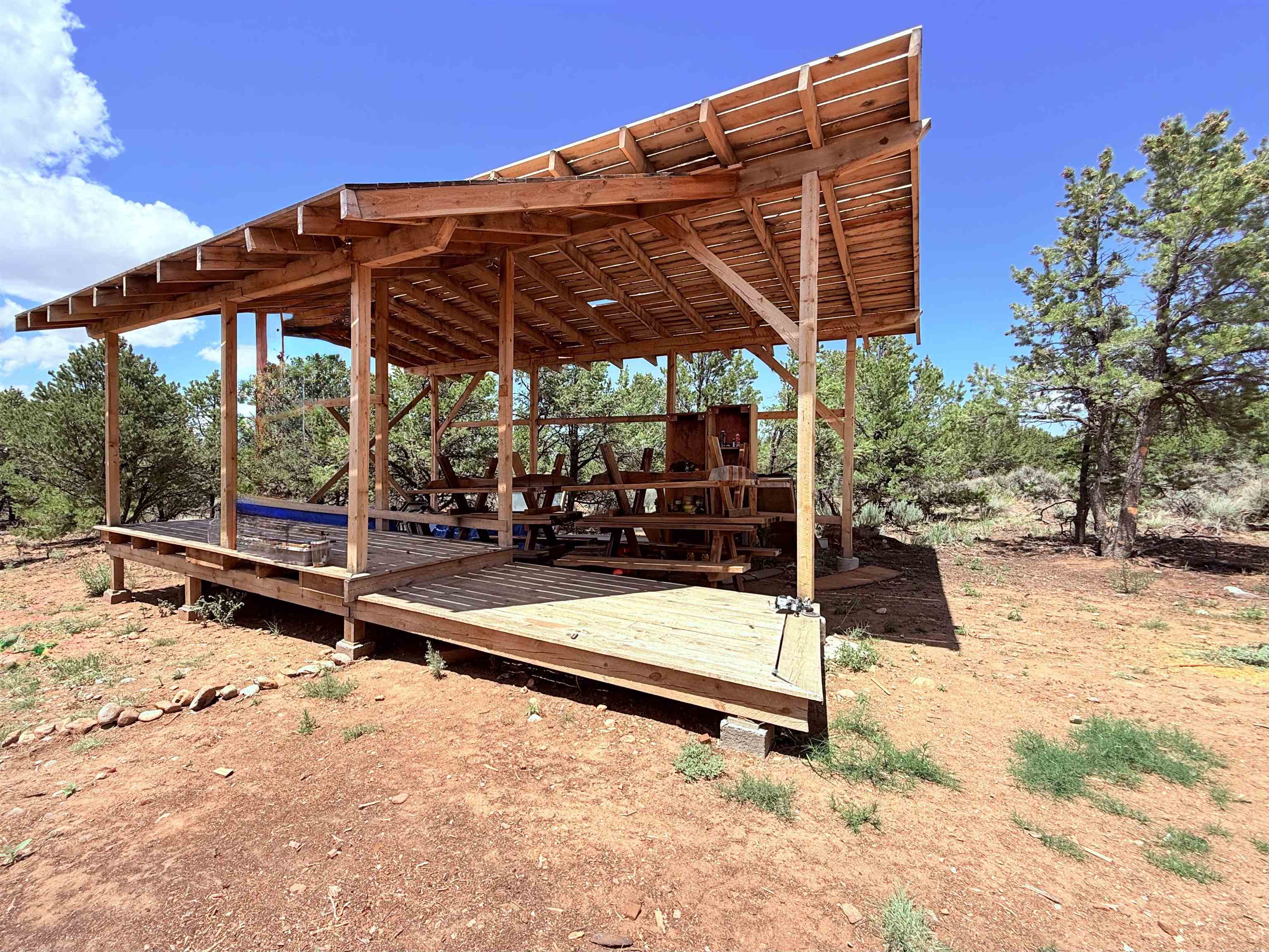Looking to unplug, unwind, and embrace a simpler lifestyle? Welcome to your private off-grid mountain hideaway—a collection of thoughtfully designed eco-structures nestled in nature with breathtaking views and access to endless mountain adventures. One Structure is for living and kitchen quarters, another structure used as a tool shed, one other structure is unfinished but planned as sleeping quarters. The Hot Sauna crafted by a master wood craftsman. One more added bonus is a RV pad with deck and cover. Property is located near the Wild Rivers Recreation Area, Town of Red River Ski Area and Rio Grande Del Norte National Monument. Whether you're seeking a weekend recharge, a creative retreat, or a basecamp for outdoor exploration, this property offers the perfect setting and should you decide to make this special property your full-time home, there is a well share in place and utilities nearby to have all the modern conveniences.
