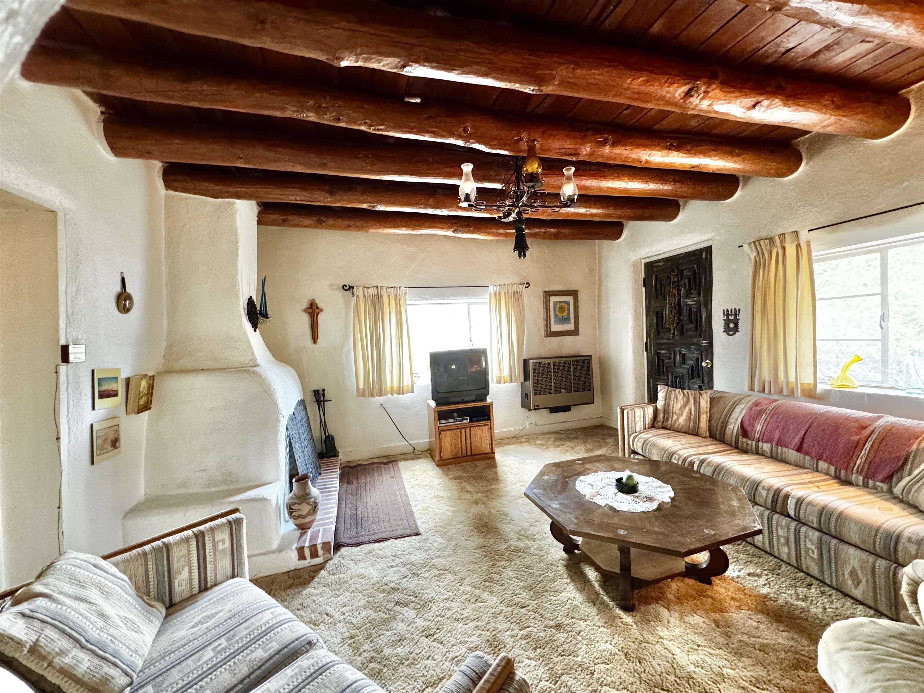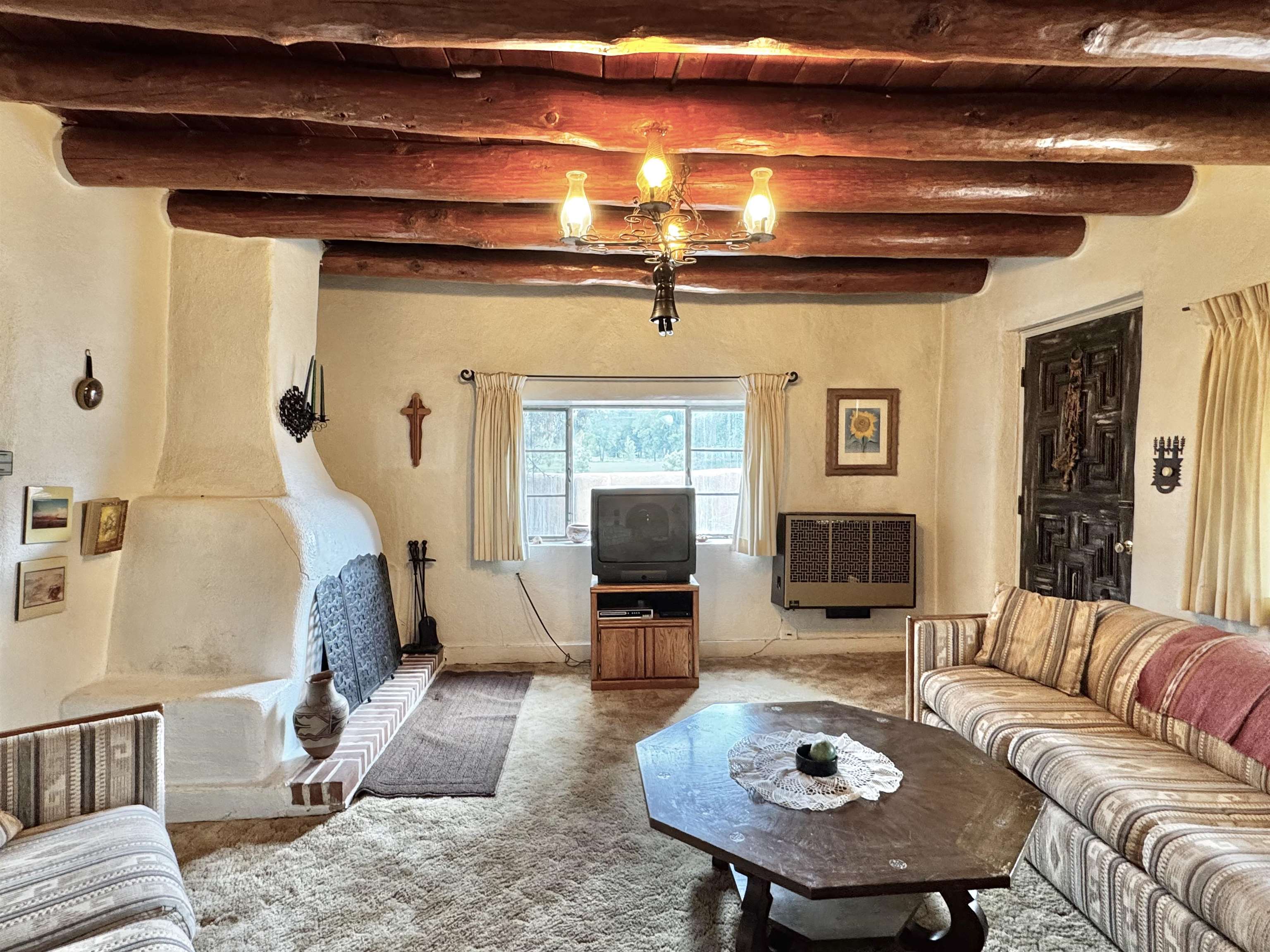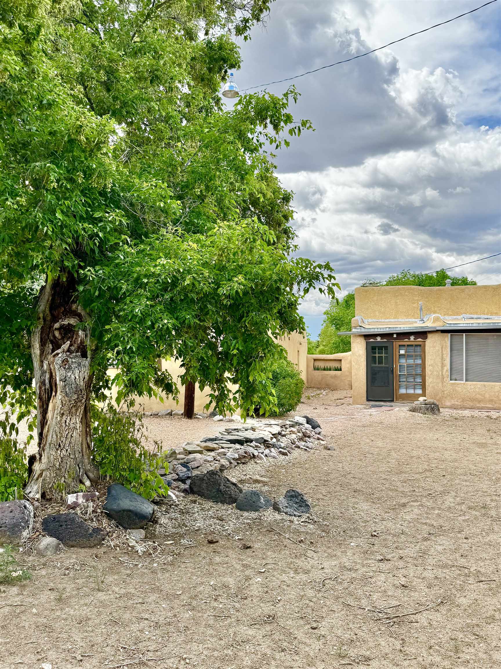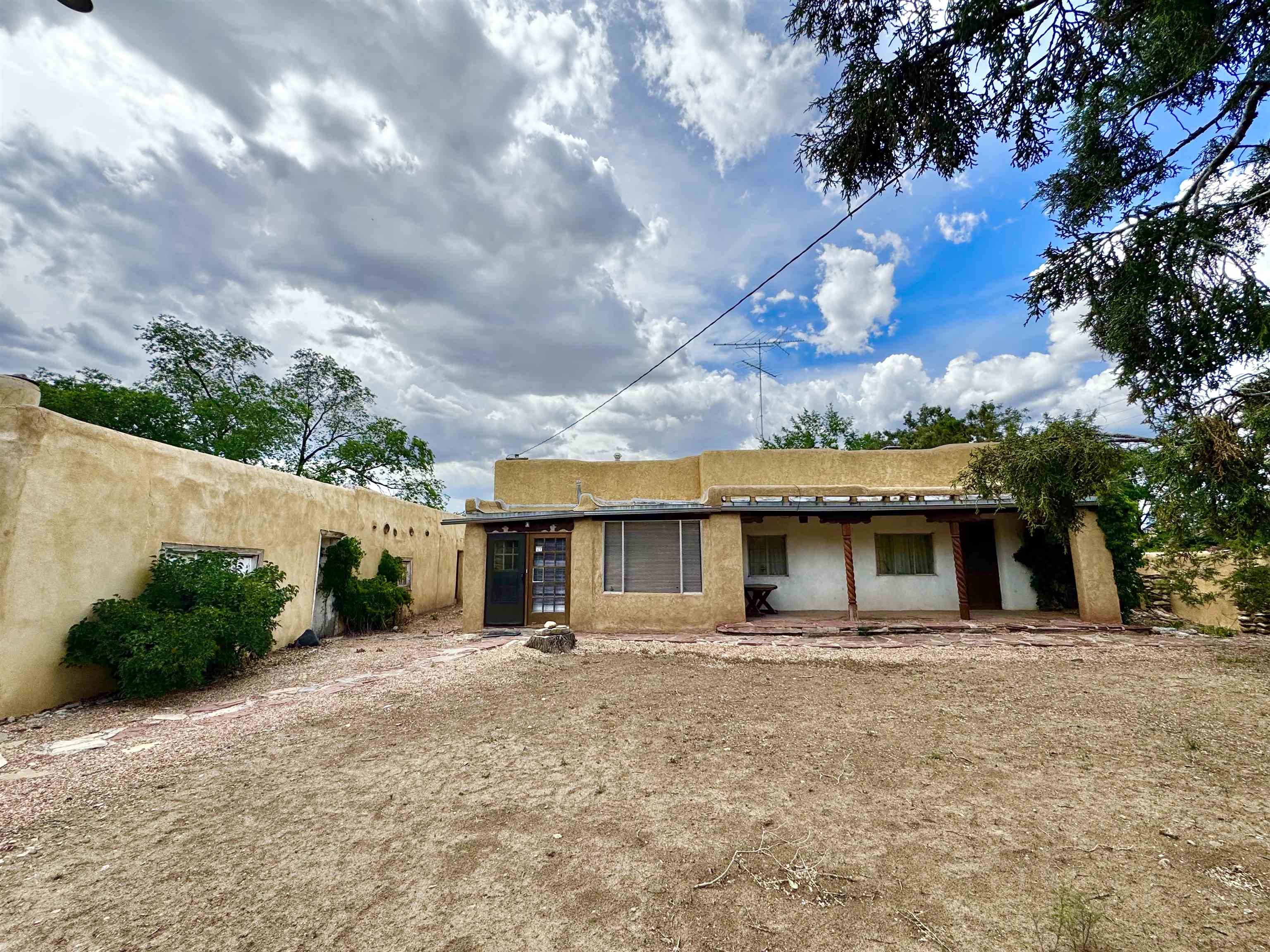 Welcome to the charming neighborhood of Cordillera, situated within the historic community of Ranchos De Taos. The property is conveniently located directly off State Road 240, situated above a green valley, encompassing former Spanish Colonial farming and ranch lands. This pueblo-style home has an approximate square footage of 1,702 square feet, and is comprised of three bedrooms and one and a half bathrooms. This old adobe charm has served to create a wealth of fond and beautiful family memories over many decades and is now ready to inherit its new owner(s) and their dreams. In addition to the main house, you will find a large detached garage/workshop that is in need of work, as well as a 1,088 square foot casita that has been gutted and a second, smaller garage. Live in main house which is fully functioning, cozy and spacious while you allow your imagination to go wild on the casita which is now just a blank canvas waiting to come to life. The southern border of this property is just footsteps away from the beautiful Rio Grande Del Rancho river, which meanders from the foothills of the Sangre de Cristo mountains to this amazing greenbelt of pasture lands and farming ranch properties. This beautiful river is home to much wildlife and natural trout which are scattered throughout the flow of the river. The layout of yard offers ample space and a blank canvas in which to create all of your creative landscaping desires. A stucco wall can be found surrounding the front of the home along with mature trees, and other fencing. The home is conveniently located, offering easy access to stores, restaurants, and other amenities. The Taos Ski Valley is approximately 37 minutes away, the Rio Grande Gorge Bridge is about 21 minutes away, and the Taos Regional Airport is approximately 17 minutes away. Since the property is situated near the southern end of town, it offers quick access to State Road 68, facilitating a seamless transition toward Santa Fe and other Northern New Mexico communities. This property possesses numerous desirable characteristics as this property offers multiple possibilities. Schedule a showing today to explore the possibilities that await you.