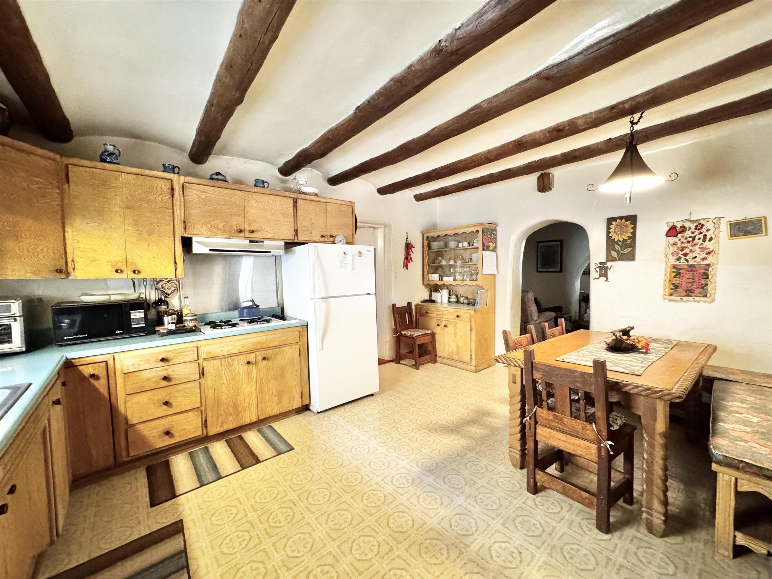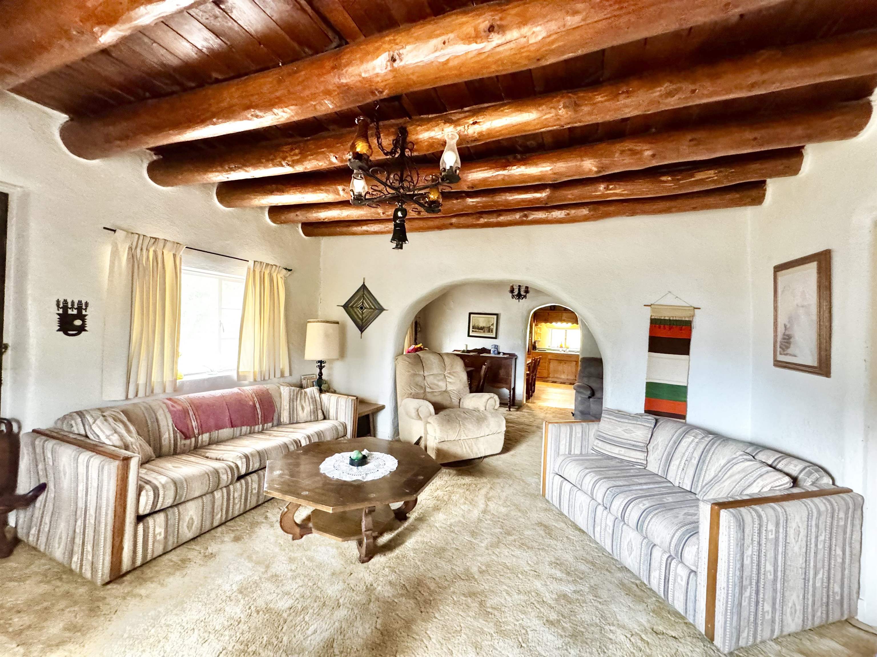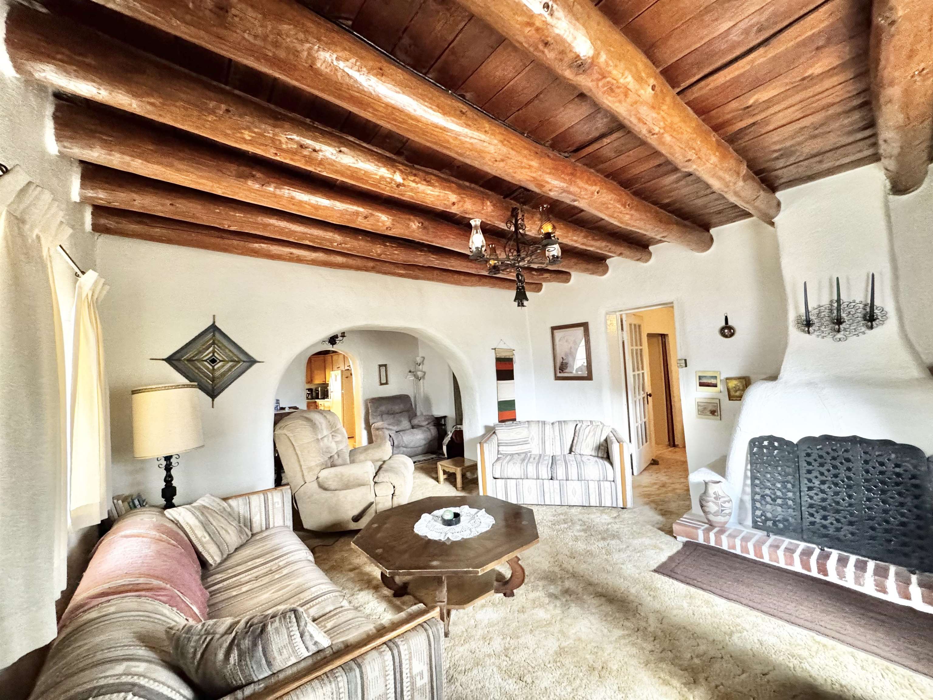 Welcome to the charming neighborhood of Cordillera, situated within the historic community of Ranchos De Taos. The property is conveniently located directly off State Road 240, situated above a green valley, encompassing former Spanish Colonial farming and ranch lands. This pueblo-style home has an approximate square footage of 1,702 square feet, and is comprised of three bedrooms and one and a half bathrooms. This old adobe charm has served to create a wealth of fond and beautiful family memories over many decades and is now ready to inherit its new owner(s) and their dreams. In addition to the main house, you will find a large detached garage/workshop that is in need of work, as well as a 1,088 square foot casita that has been gutted and a second, smaller garage. Live in main house which is fully functioning, cozy and spacious while you allow your imagination to go wild on the casita which is now just a blank canvas waiting to come to life. The southern border of this property is just footsteps away from the beautiful Rio Grande Del Rancho river, which meanders from the foothills of the Sangre de Cristo mountains to this amazing greenbelt of pasture lands and farming ranch properties. This beautiful river is home to much wildlife and natural trout which are scattered throughout the flow of the river. The layout of yard offers ample space and a blank canvas in which to create all of your creative landscaping desires. A stucco wall can be found surrounding the front of the home along with mature trees, and other fencing. The home is conveniently located, offering easy access to stores, restaurants, and other amenities. The Taos Ski Valley is approximately 37 minutes away, the Rio Grande Gorge Bridge is about 21 minutes away, and the Taos Regional Airport is approximately 17 minutes away. Since the property is situated near the southern end of town, it offers quick access to State Road 68, facilitating a seamless transition toward Santa Fe and other Northern New Mexico communities. This property possesses numerous desirable characteristics as this property offers multiple possibilities. Schedule a showing today to explore the possibilities that await you.
