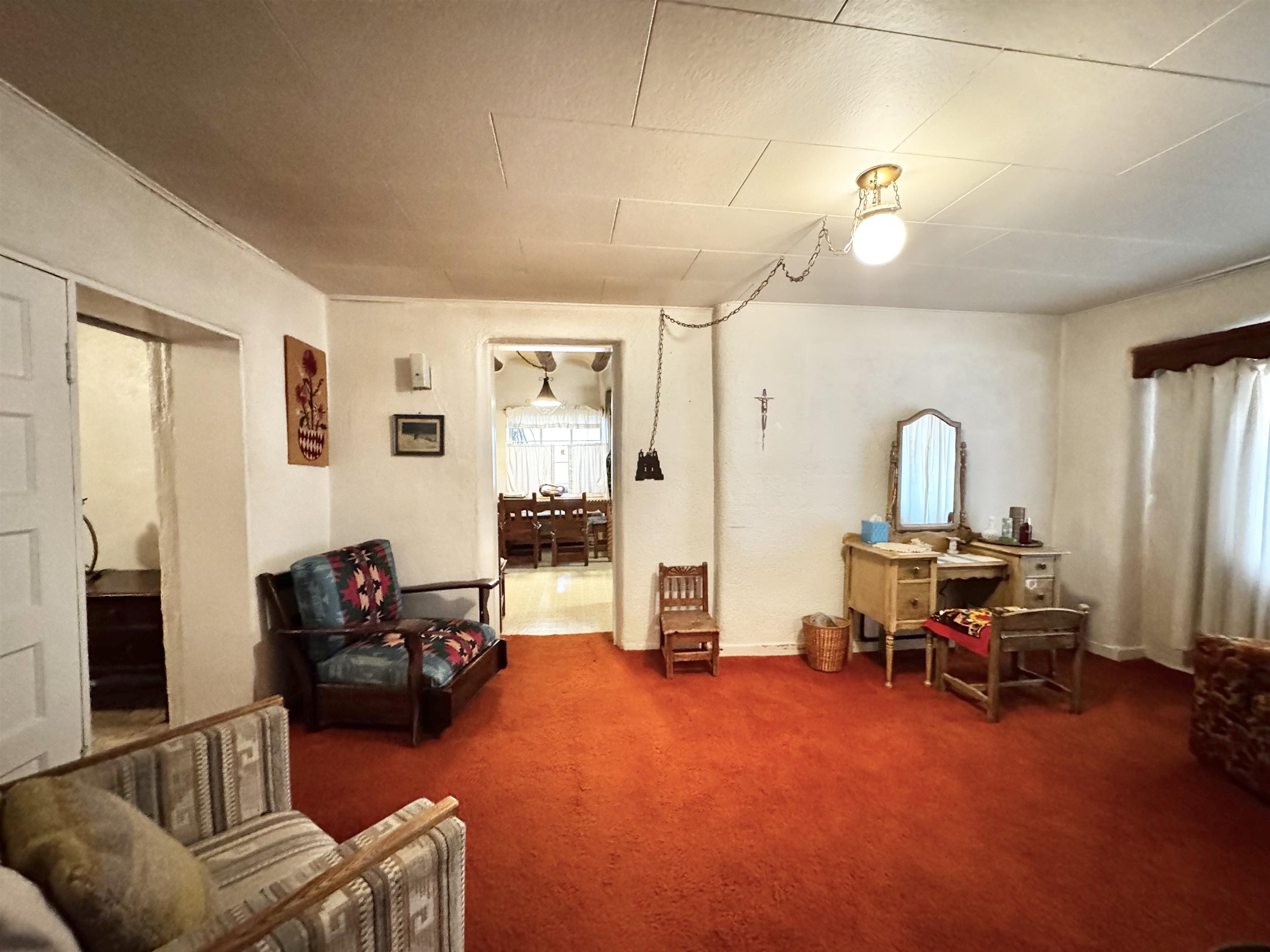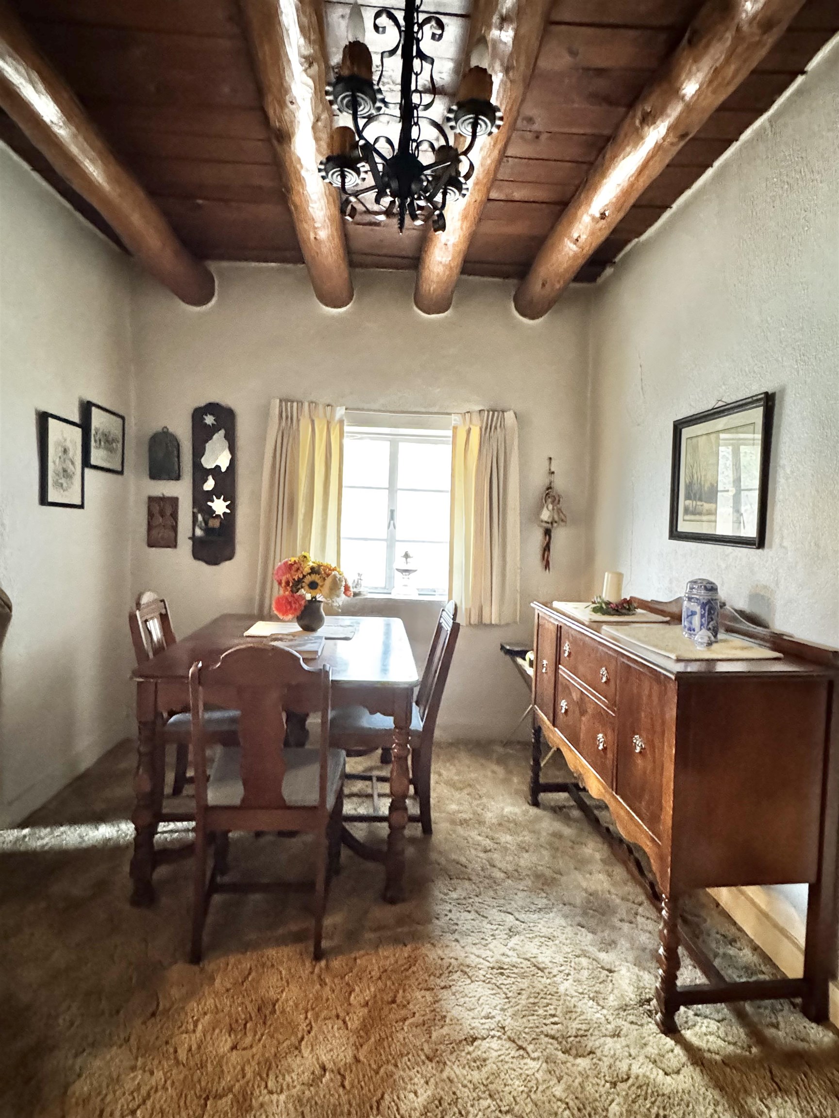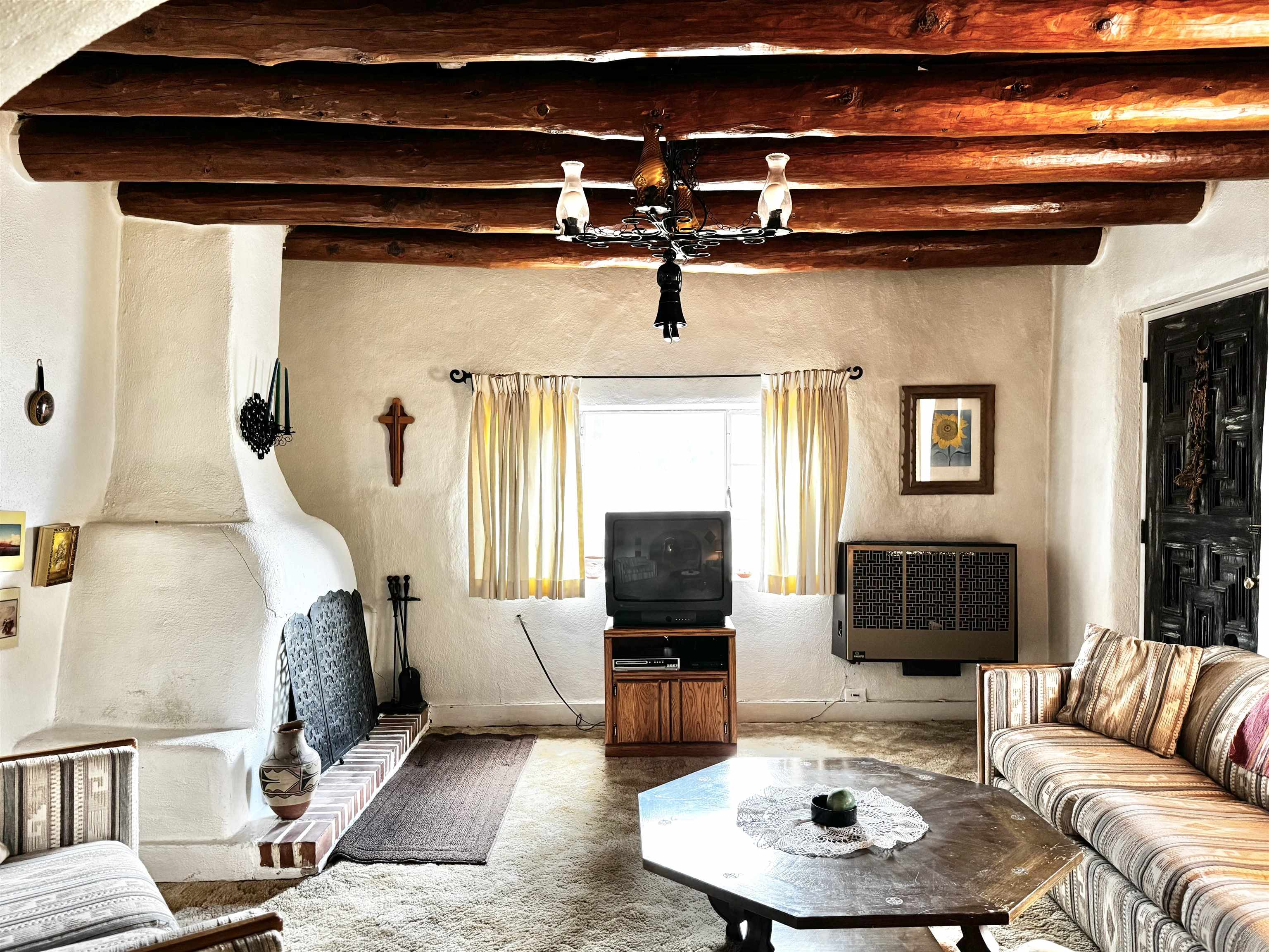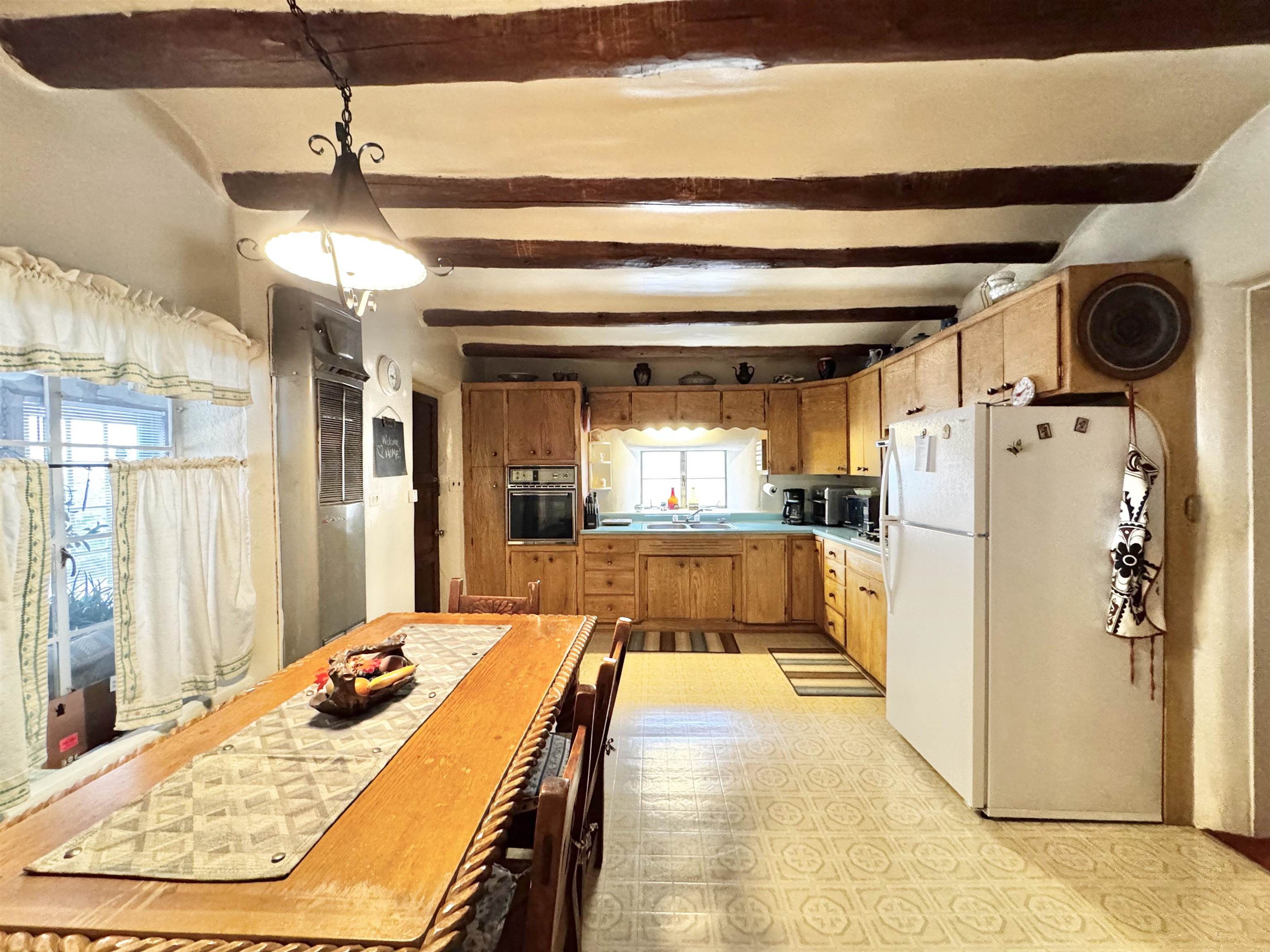 Welcome to the charming neighborhood of Cordillera, situated within the historic community of Ranchos De Taos. The property is conveniently located directly off State Road 240, situated above a green valley, encompassing former Spanish Colonial farming and ranch lands. This pueblo-style home has an approximate square footage of 1,702 square feet, and is comprised of three bedrooms and one and a half bathrooms. This old adobe charm has served to create a wealth of fond and beautiful family memories over many decades and is now ready to inherit its new owner(s) and their dreams. In addition to the main house, you will find a large detached garage/workshop that is in need of work, as well as a 1,088 square foot casita that has been gutted and a second, smaller garage. Live in main house which is fully functioning, cozy and spacious while you allow your imagination to go wild on the casita which is now just a blank canvas waiting to come to life. The southern border of this property is just footsteps away from the beautiful Rio Grande Del Rancho river, which meanders from the foothills of the Sangre de Cristo mountains to this amazing greenbelt of pasture lands and farming ranch properties. This beautiful river is home to much wildlife and natural trout which are scattered throughout the flow of the river. The layout of yard offers ample space and a blank canvas in which to create all of your creative landscaping desires. A stucco wall can be found surrounding the front of the home along with mature trees, and other fencing. The home is conveniently located, offering easy access to stores, restaurants, and other amenities. The Taos Ski Valley is approximately 37 minutes away, the Rio Grande Gorge Bridge is about 21 minutes away, and the Taos Regional Airport is approximately 17 minutes away. Since the property is situated near the southern end of town, it offers quick access to State Road 68, facilitating a seamless transition toward Santa Fe and other Northern New Mexico communities. This property possesses numerous desirable characteristics as this property offers multiple possibilities. Schedule a showing today to explore the possibilities that await you.
