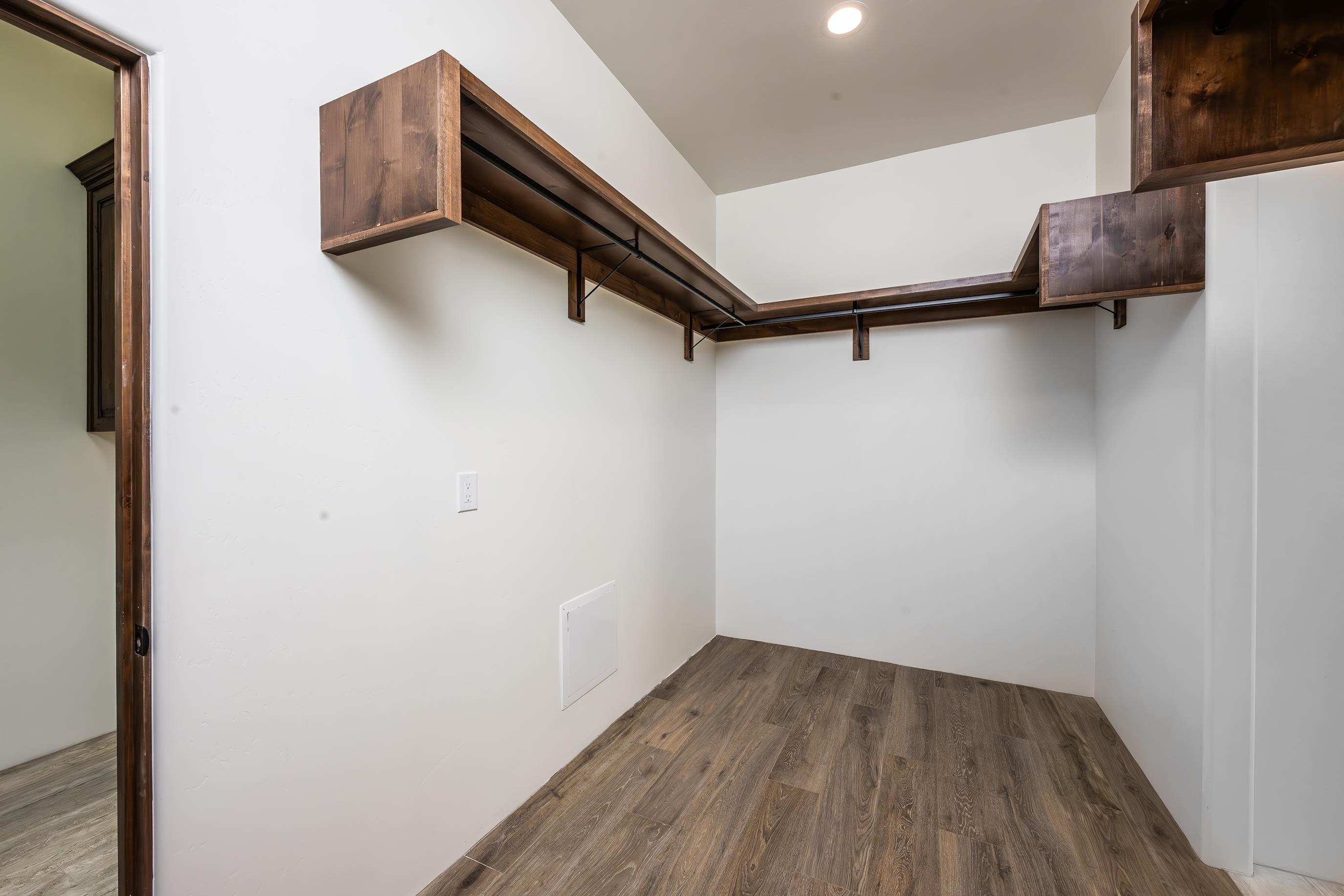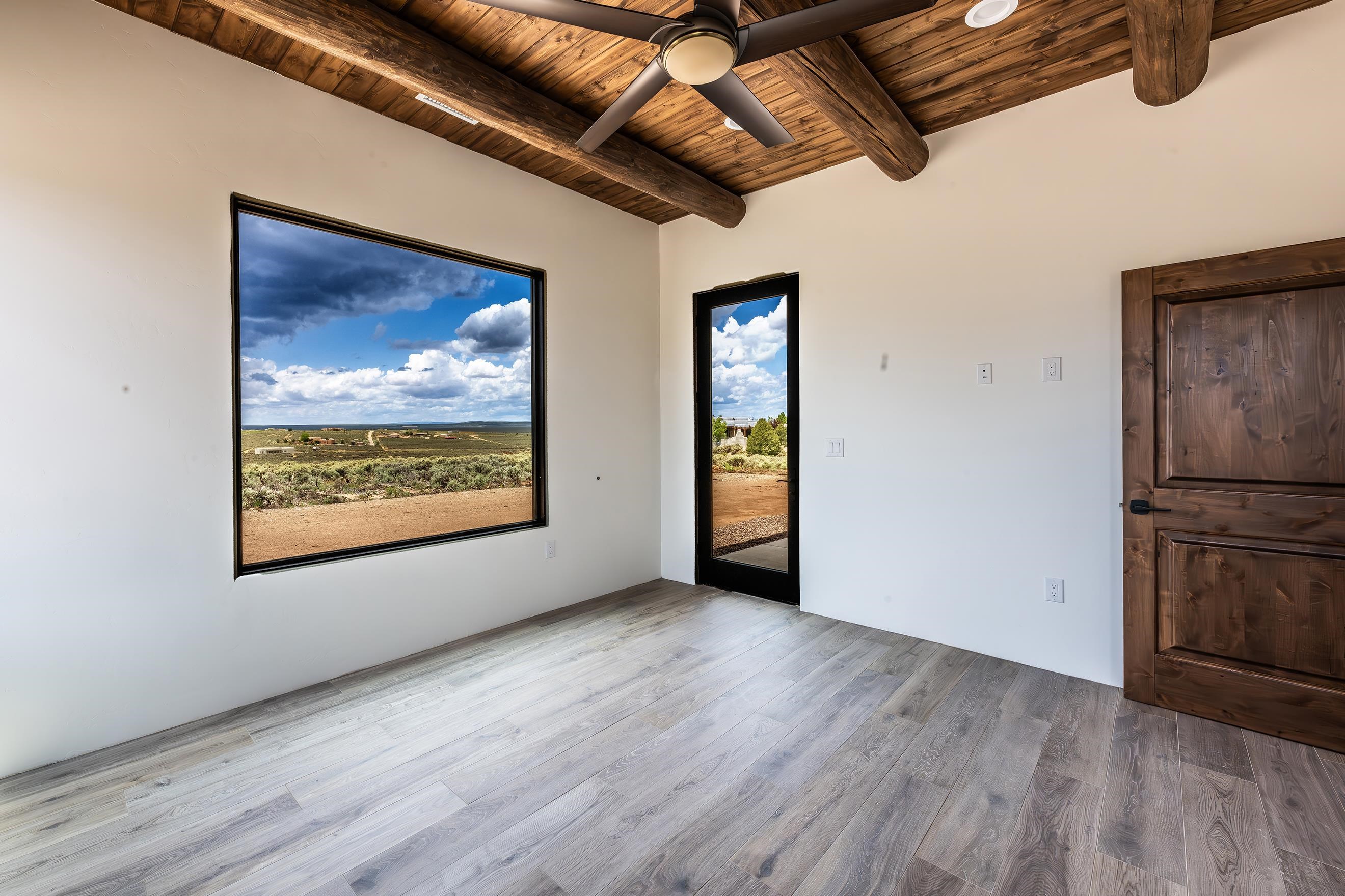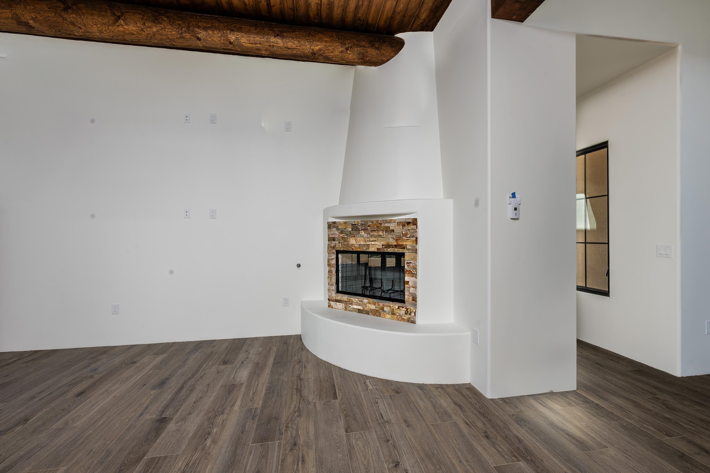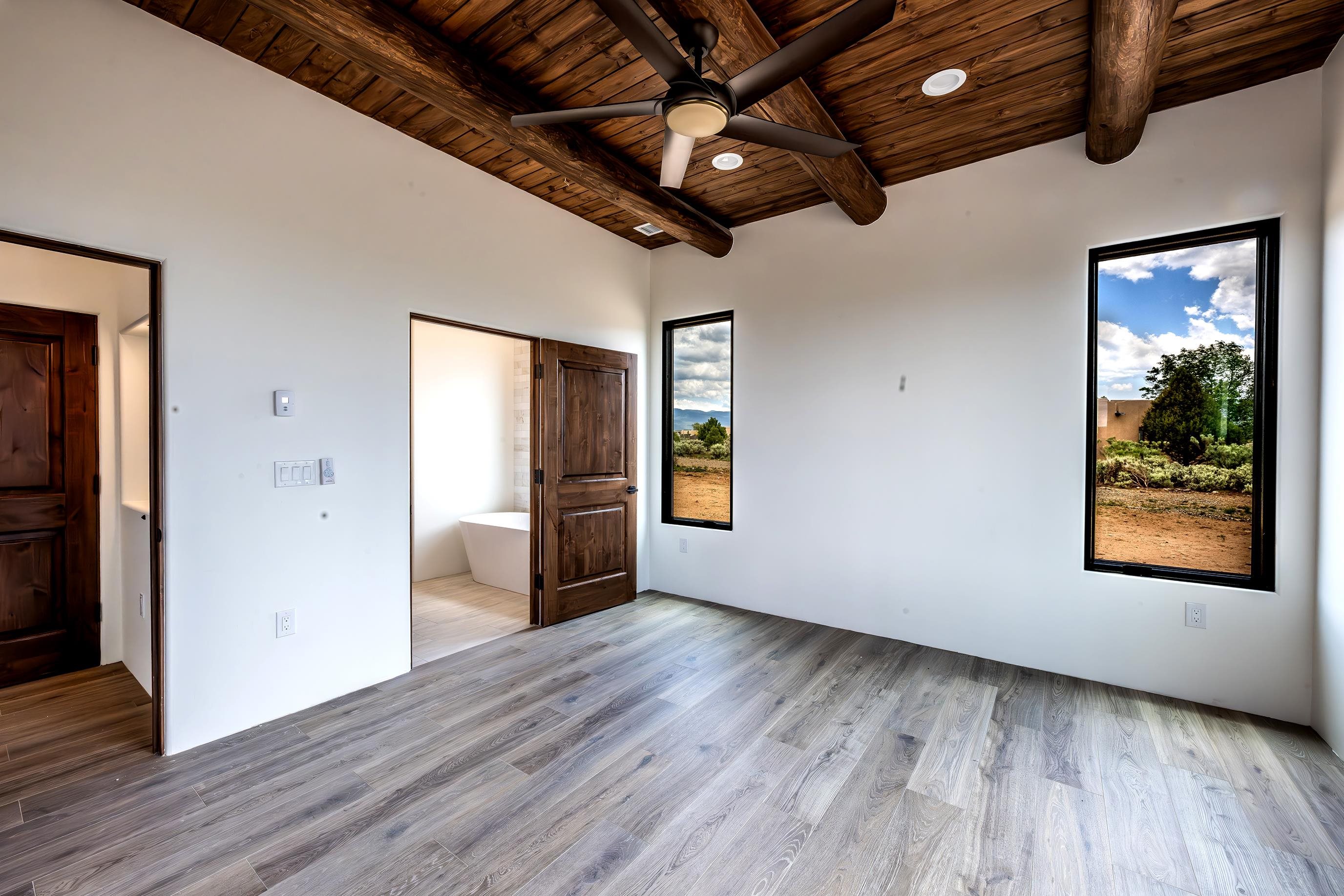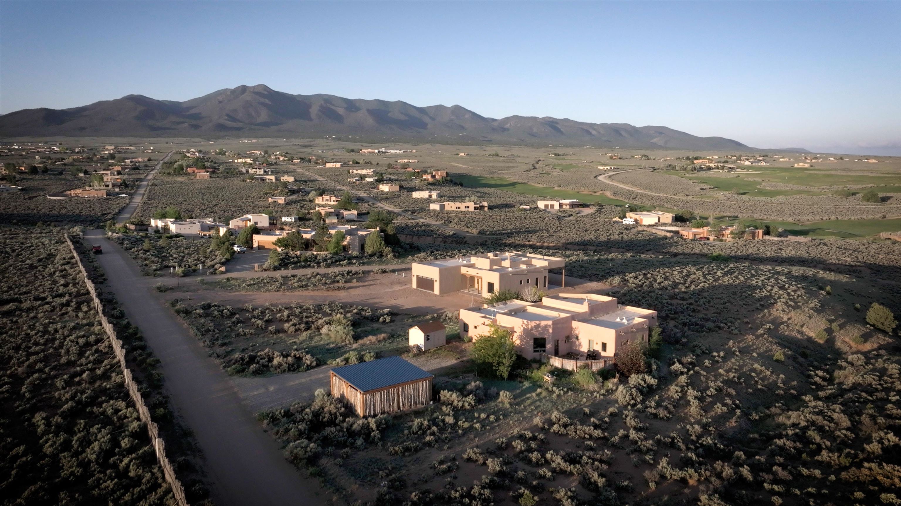 We call it Taos modern, the builder says. “It’s neither Pueblo nor strictly modern— it’s simply elegant.†It’s a seamless, stunning blend of contemporary sophistication with the enduring charm of Northern New Mexican traditional design. Upon entering through the custom front door, visitors are immediately greeted by an expansive view through large glass doors that lead to the patio. The open concept living area centers around a striking fireplace that embodies the home’s style. Hints of traditional detail with sophisticated clean lines. The room’s high ceilings and thoughtfully chosen light fixtures add drama without overpowering the space. The kitchen, a centerpiece of the home, was designed with both function and flair and includes Viking appliances plus highly desired Taj Mahal granite countertops. Because of the open concept and interconnected spaces, there’s a captivating view in nearly every direction. A neutral color palette creates a serene, timeless atmosphere throughout the home. The elegant soaking tub is the perfect spot to wind down and enjoy the views looking towards the golf course. The alluring accent tile conjures a connection to nature with its multitude of green hues and organic, handmade style, but the stacked design is decidedly modern sleek. The linear modern tiles on the floor and shower walls, create a calm, spa-like space. The countertops that embody the entire palette and sleek plumbing fixtures complete the master suite. What we call standard features; the other guys call upgrades. Because our custom homes have so many amenities, they require very few upgrades. A uniquely crafted Taos modern custom home with dramatic clerestory natural light, proportion, and scale, to accentuate the sleek elegance of Taos modern architecture.