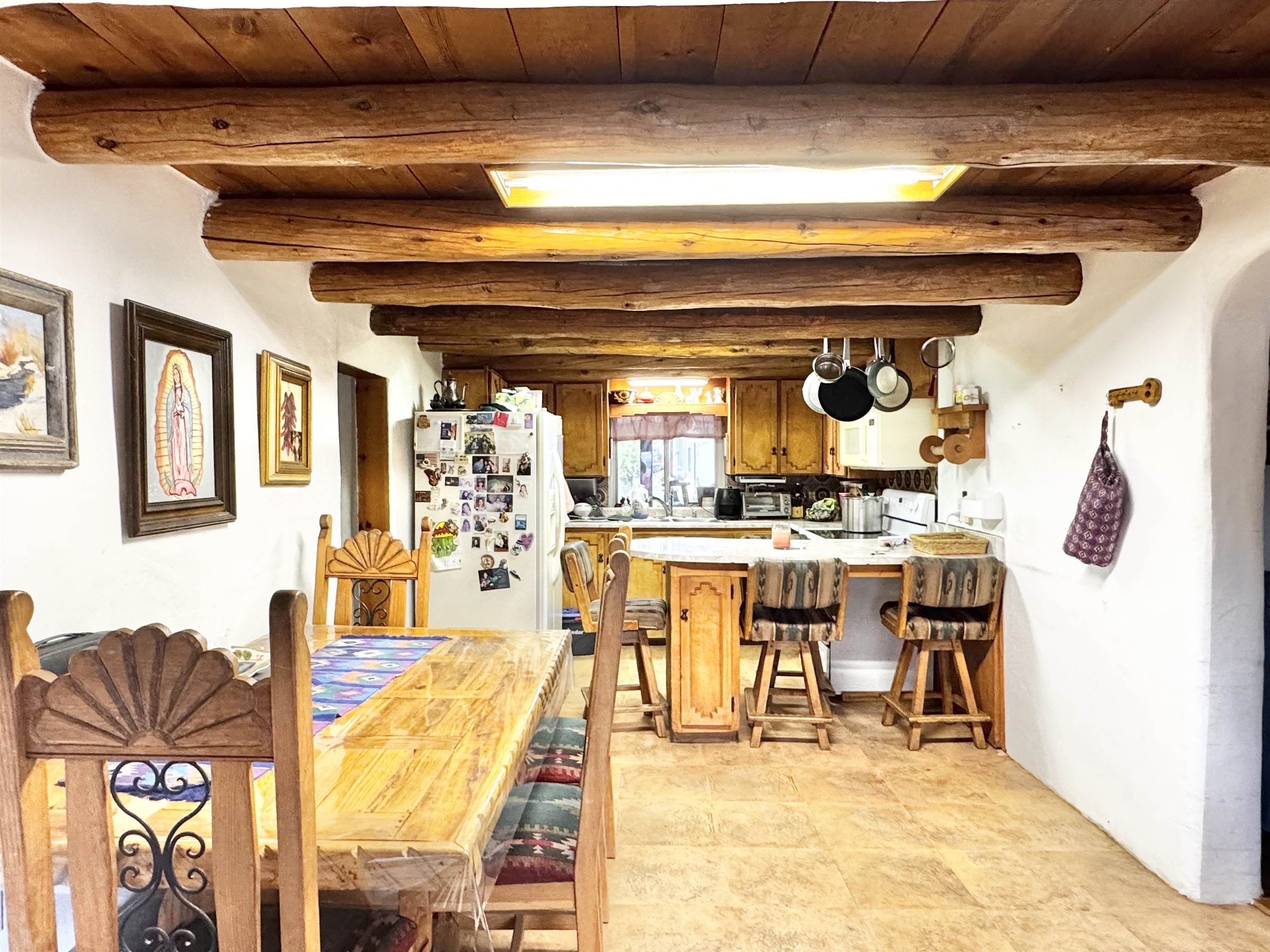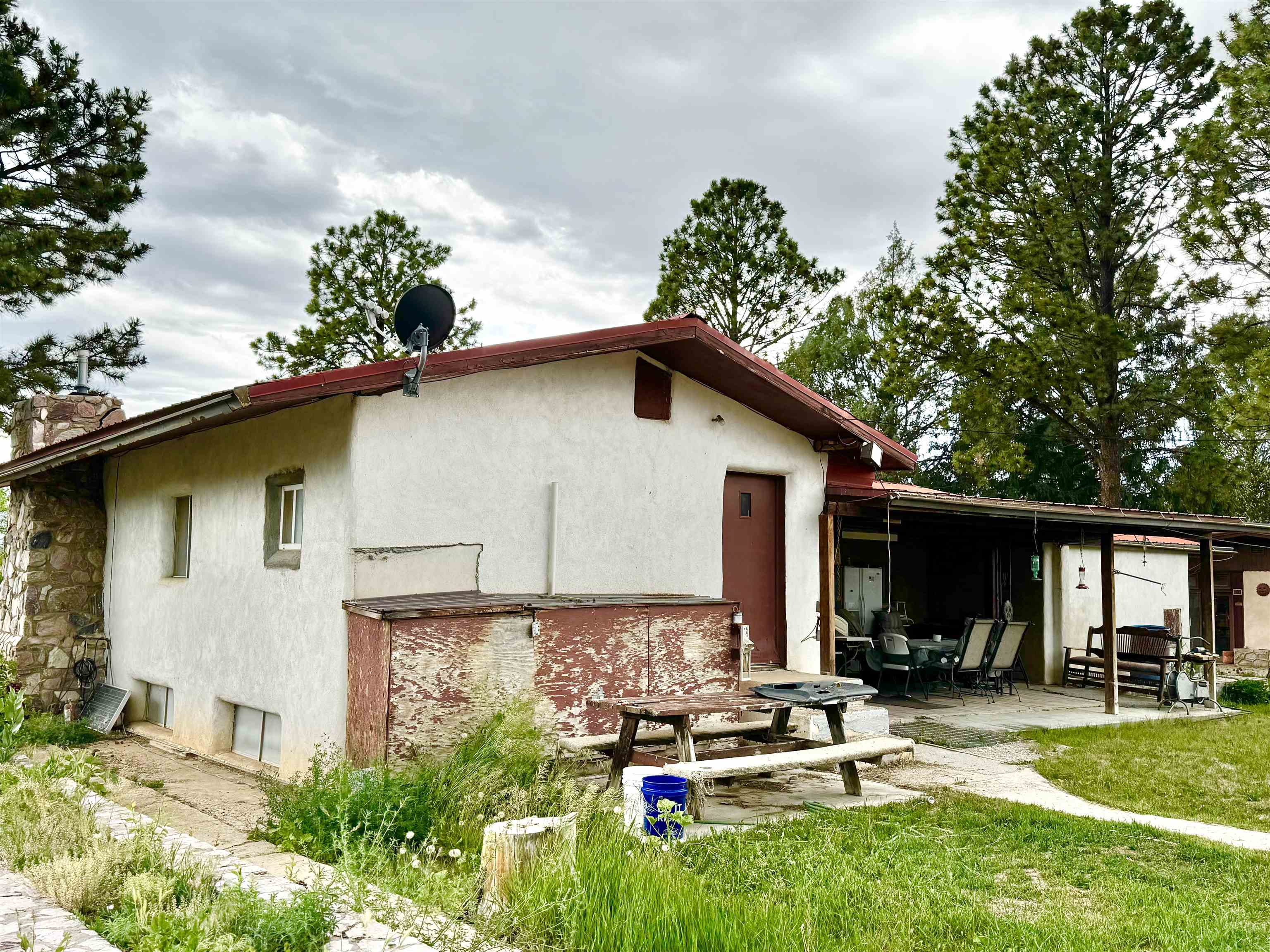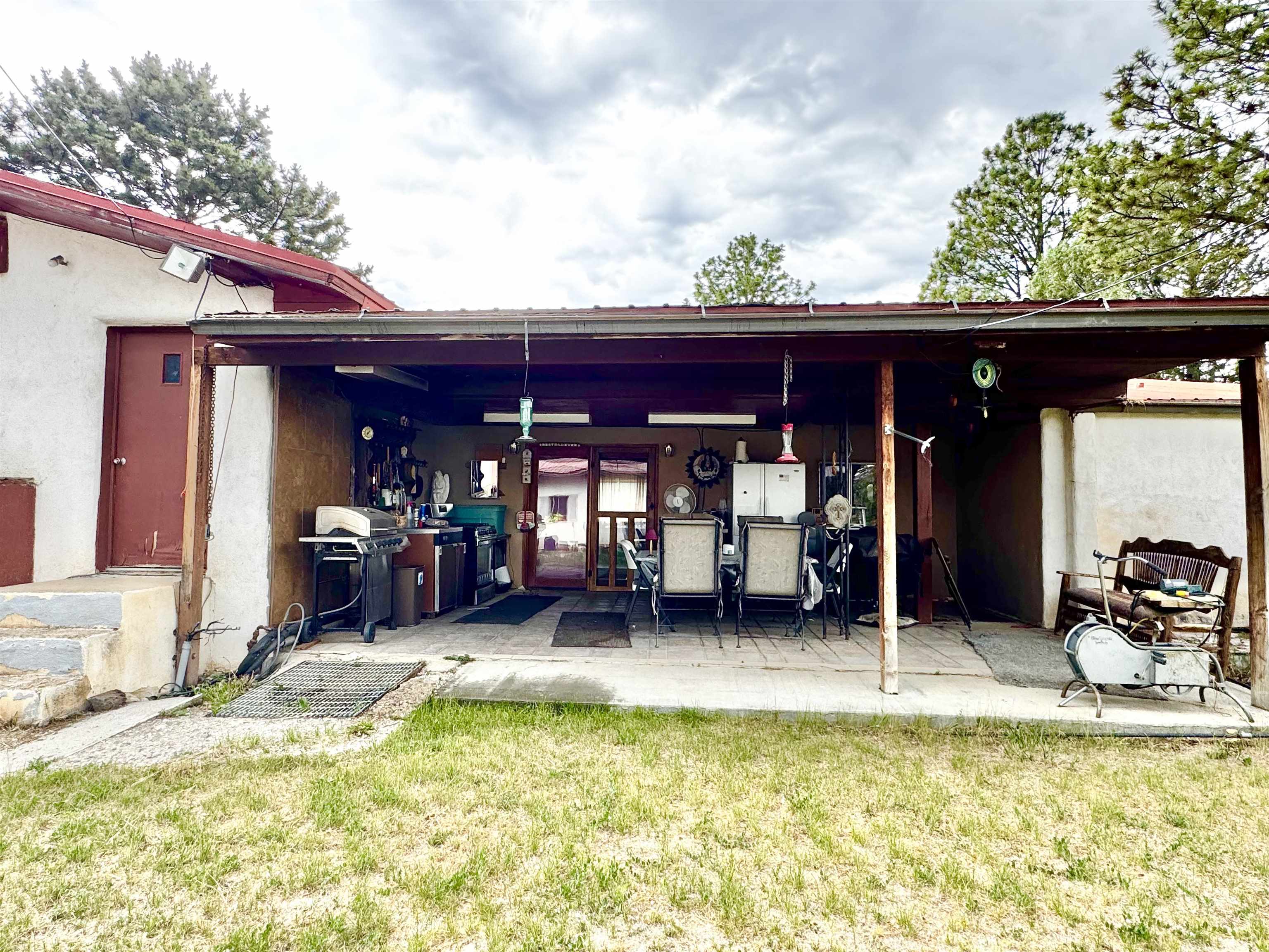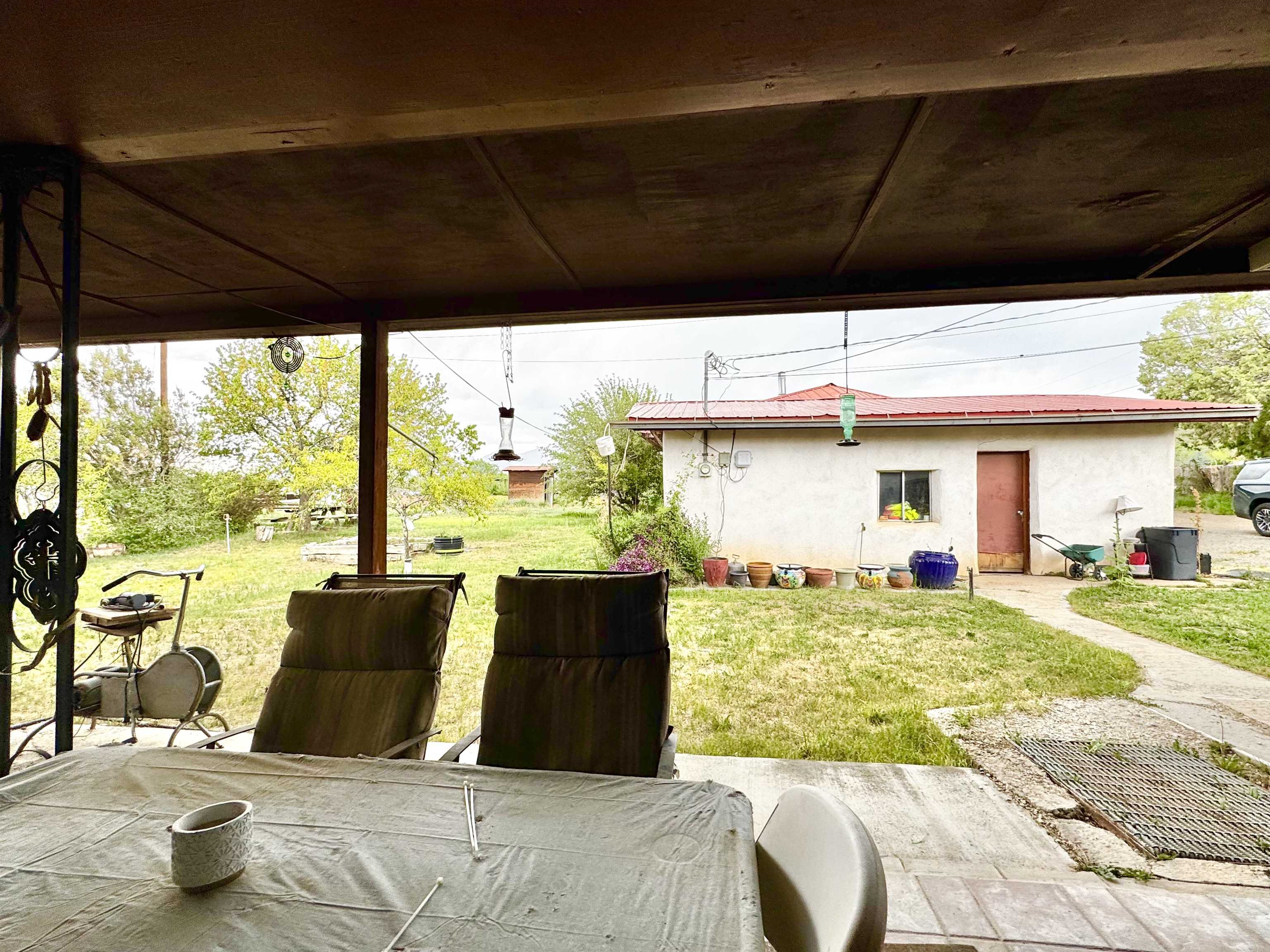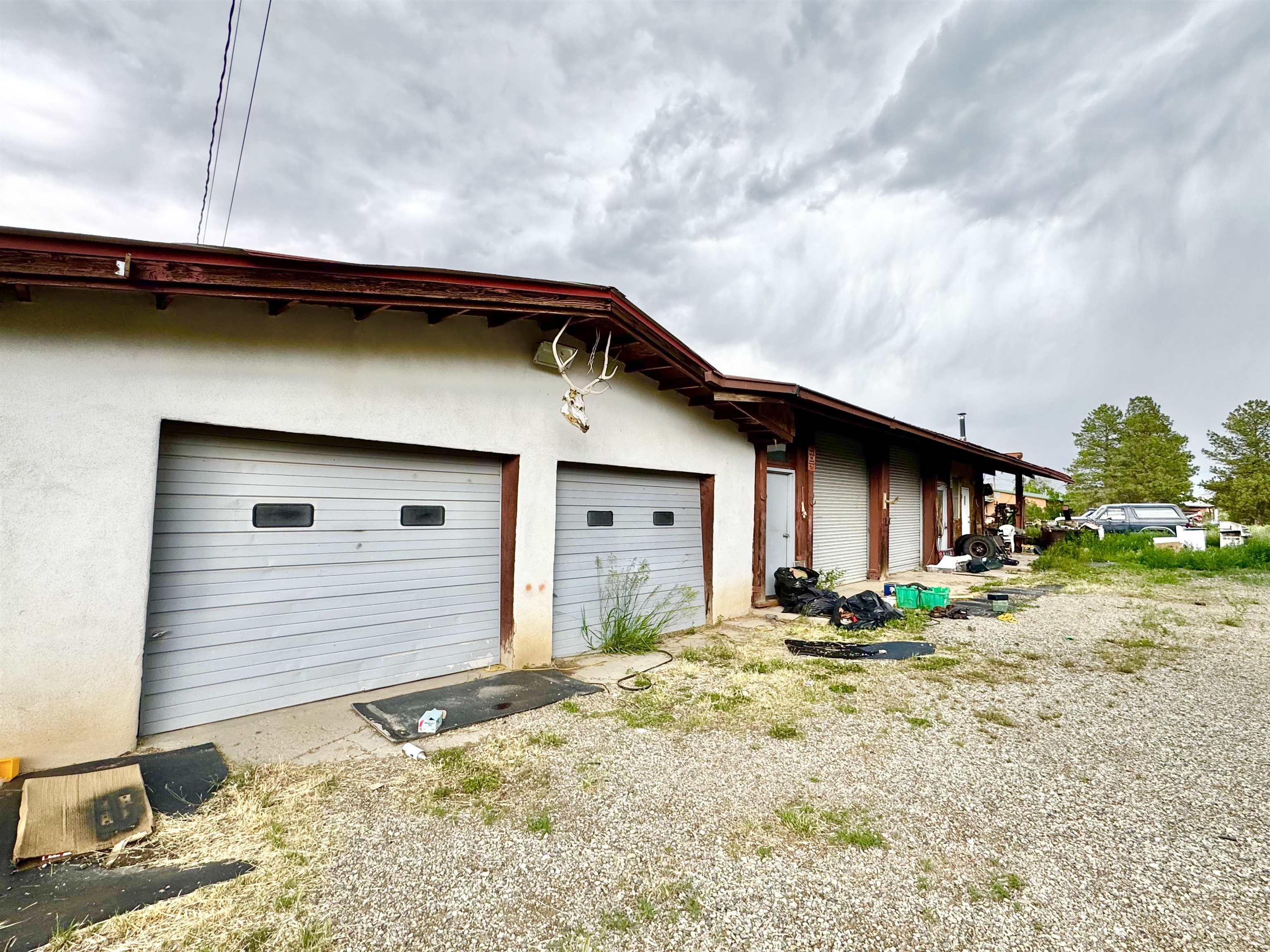 Captivate yourself into the rich history of the Ranchos De Taos and Talpa community. Nestled amidst the expansive ranchlands and abundant farmlands at the foot of Talpa Ridge and the majestic Sange de Cristo Mountain Range, this verdant 1.05-acre property presents an abundance of untapped potential. Conveniently built upon this property is a charming home constructed approximately in 1955, boasting a spacious 2,473-square-foot layout. The lower level, comprising a 598-square-foot, three-bonus room unit, offers a cozy retreat, while the upper level, spanning 1,875 square feet and featuring two bedrooms, provides a more expansive living experience. The home is equipped with two full bathrooms and a well-appointed kitchen, complemented by two inviting living rooms. Throughout the house, a decorative blend of carpet, wood, and laminate tile flooring adds a touch of cozy ambiance. Outside the residence, an outdoor covered patio currently as a space to bbq and entertain. You will discover a substantial four-bay garage and workshop, conveniently integrated with an attached studio that includes a bathroom, living space, and compact kitchenette. At the northern end of the workshop, a spacious one-car carport further enhances the property’s functionality. This property possesses immense potential for the discerning owner who seeks to create a truly viable living experience. Invite yourself to explore the allure of this property and discover the captivating possibilities that await you.