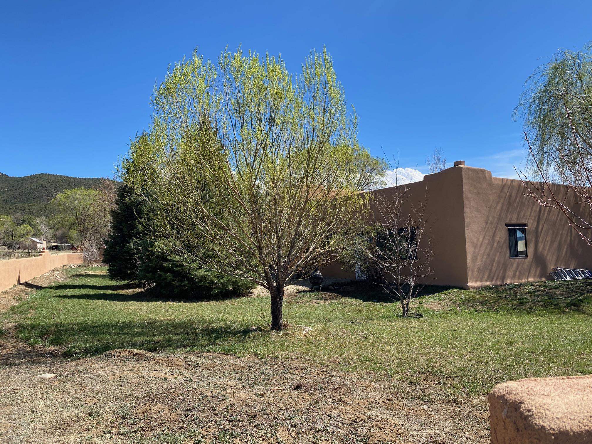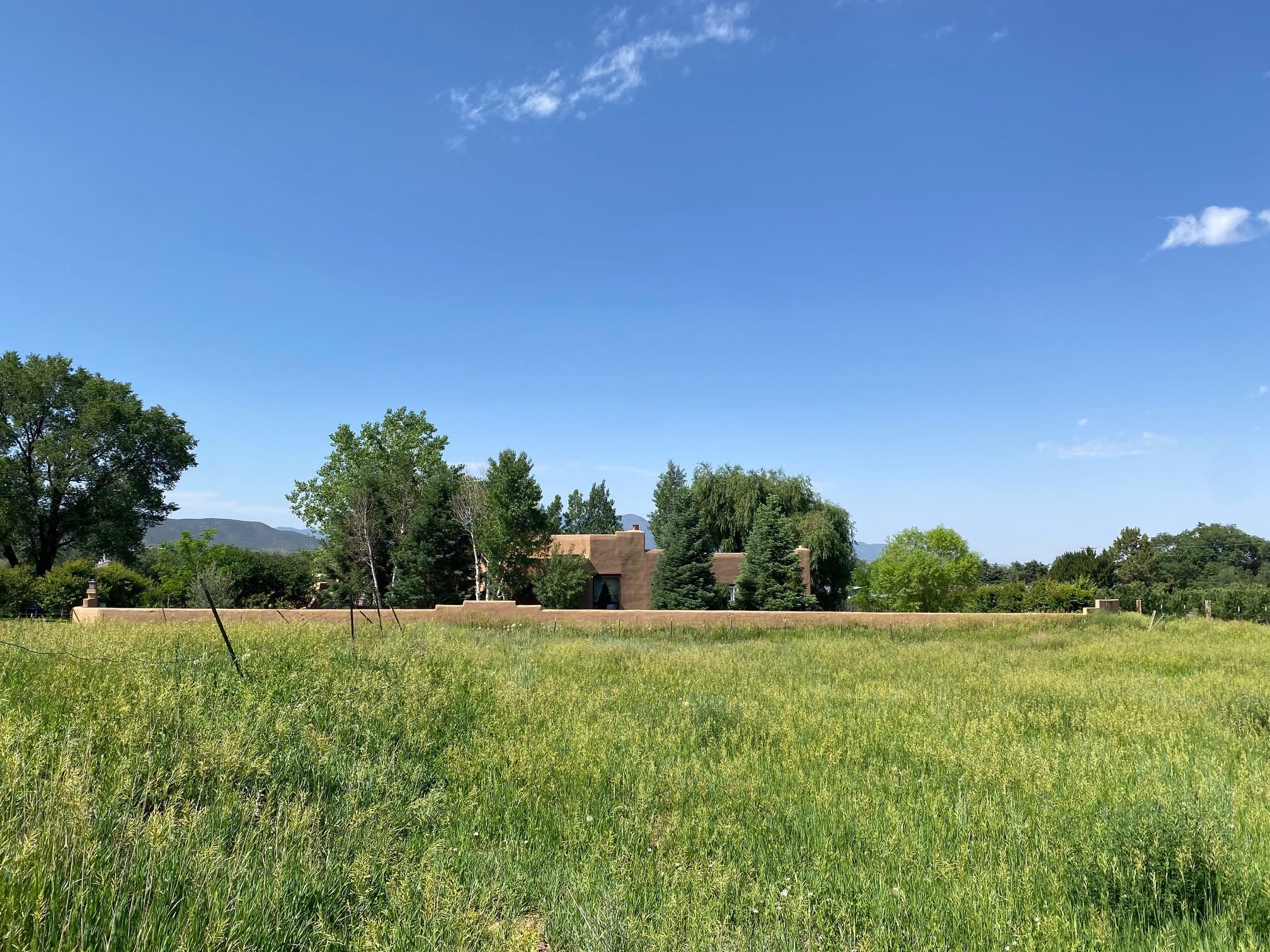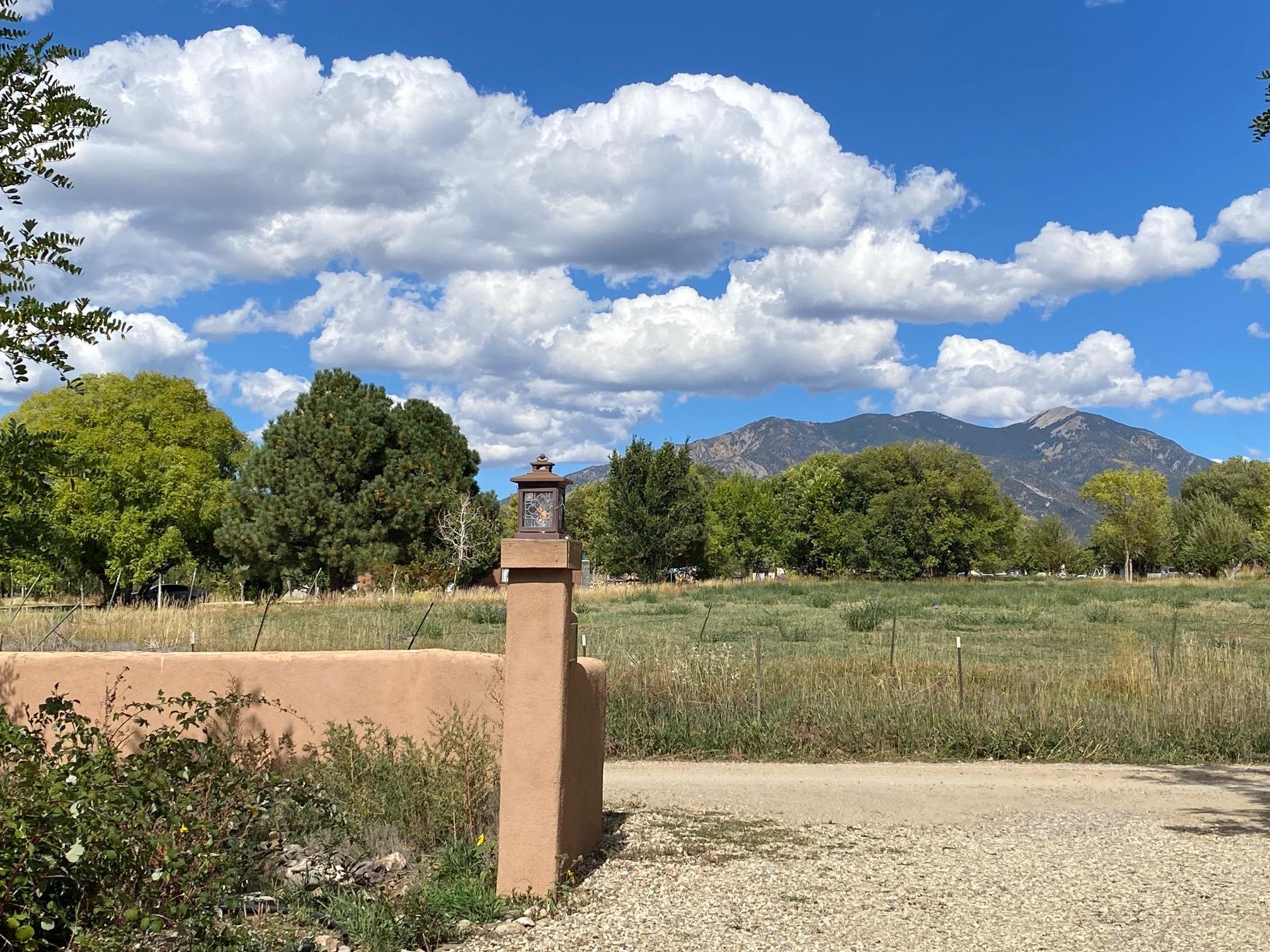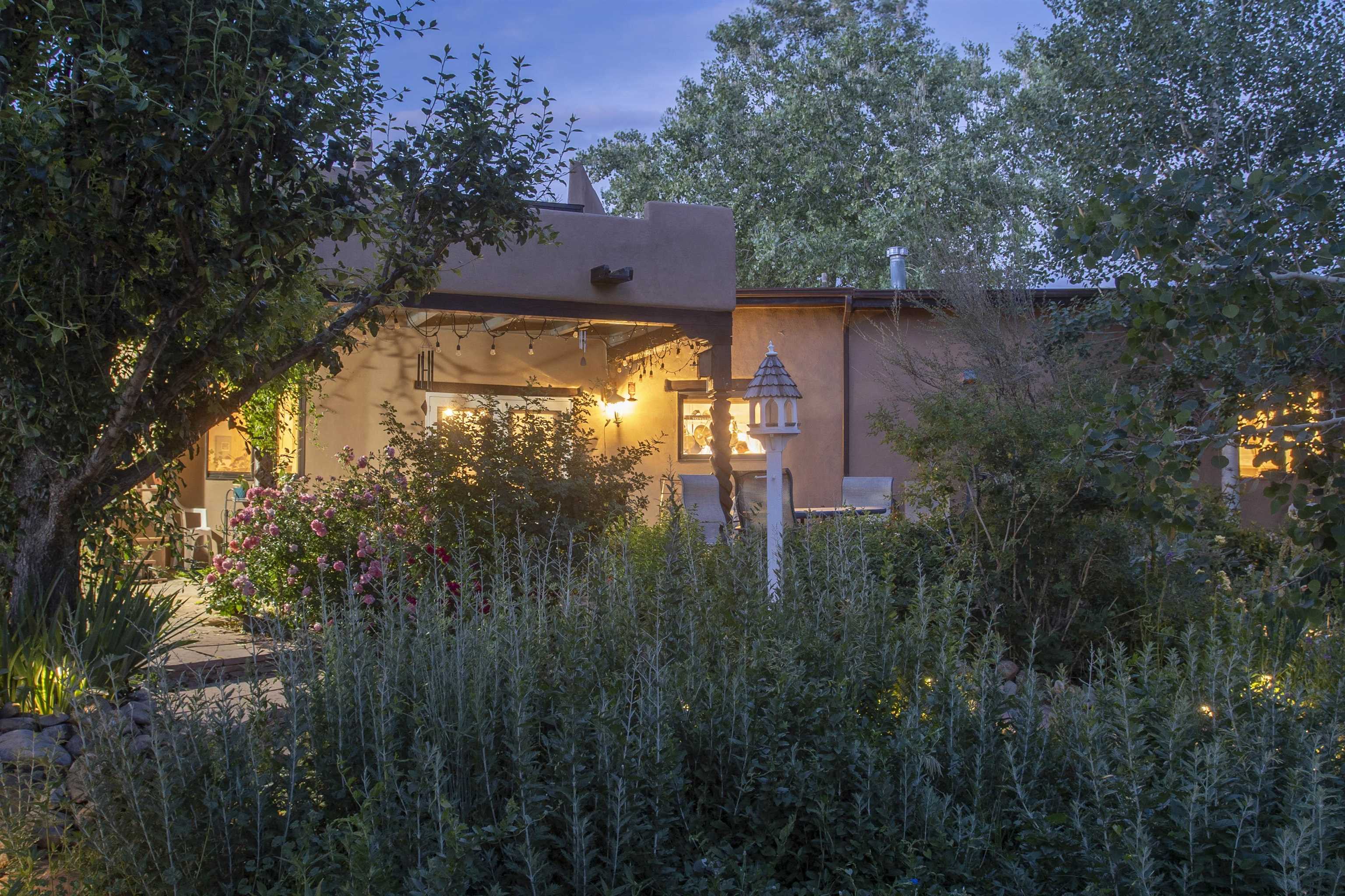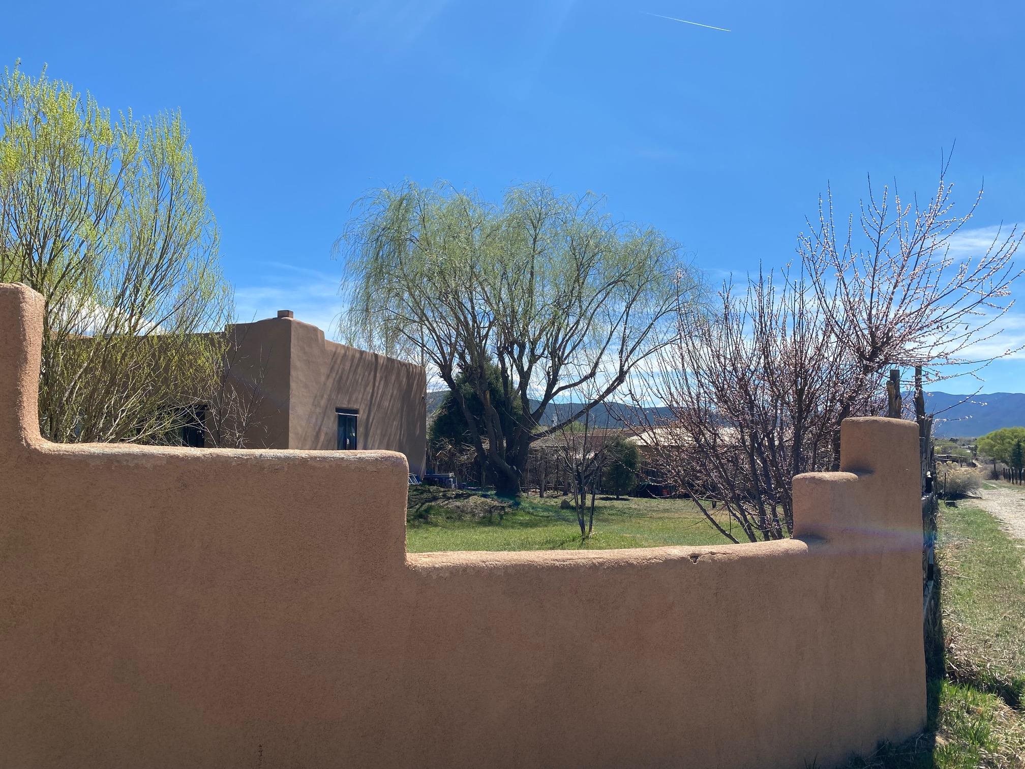 Canon Oasis! Lush gardens and a shady entry courtyard welcome you to to this immaculate home less than two miles from Taos Plaza. Saltillo tile floors and viga ceilings embrace the flavor of southwestern detailing throughout. In-floor radiant heat and ceiling fans maintain comfortable temperatures year round. With three bedrooms, 2.5 bathrooms, an office and over 2200 sq ft, of interior living space there is ample room for hosting and entertaining guests. The great room features soaring ceilings with vigas and two distinct living areas. Cuddle up in front of the southwestern style fireplace on one side or engage in conversation or a watch movie on the other. The breakfast area leads to a covered patio and gardens beyond. Archways lead to the formal dining room and kitchen. Be sure not to miss the details on the cooktop island or the view of the garden from above the kitchen sink. There's a convenient pantry tucked behind the kitchen and a powder room and laundry. Primary and guest bedrooms are located down the hall in the west wing of the residence. There is a dedicated office. Two other guest bedrooms and common bathroom lay beyond. The primary bedroom is spacious with its own southwestern style fireplace and access to the gardens. It's primary bathroom has double sinks, a separate shower and corner jetted tub to get away from it all. A walk-in closet provides an amazing amount of storage! At the rear of the heated two-car garage is an artists studio with exterior access and privacy that awaits your creativity. Valley land is fed by an acequia. More than sixty trees occupy the property --- many fruit ---- and a grand-father willow tree canopies the back yard. Extensive flagstone patios and walkways wind through rose gardens and flower beds leading to a wisteria covered sombra. There is even a fenced area for four-legged family members and a detached shed for seasonal storage and gardening tools. The neighborhood paths lead to endless Carson National Forest hiking trails. This property is one of a kind in so many ways. Truly magical and rare elegance abounds!