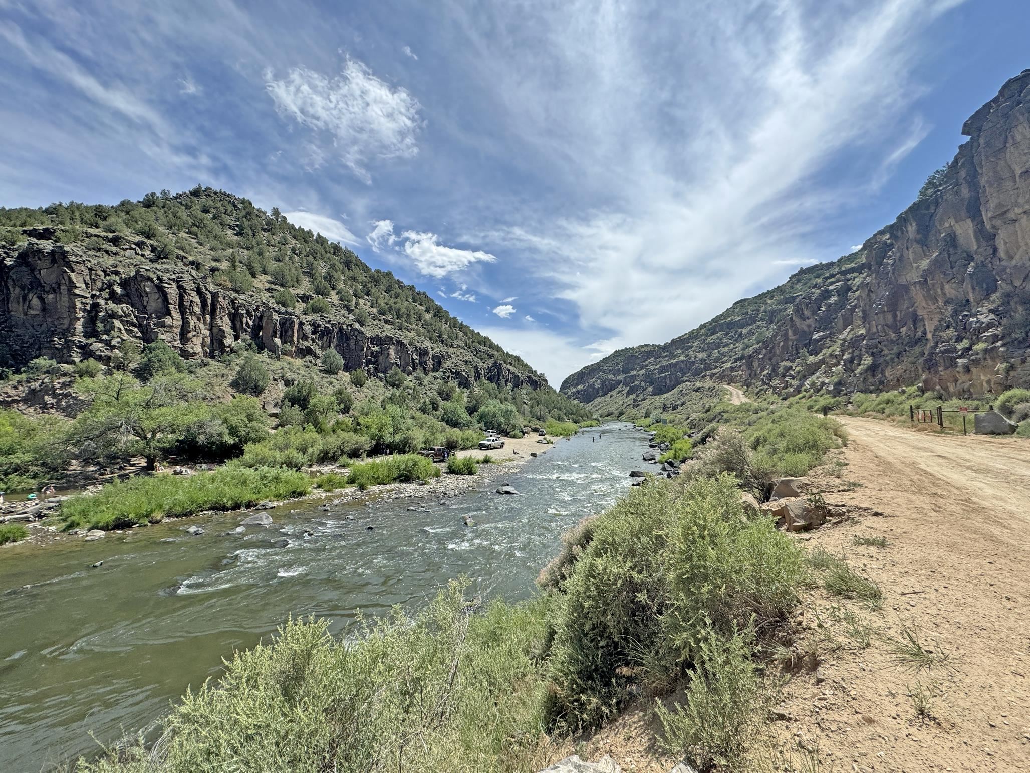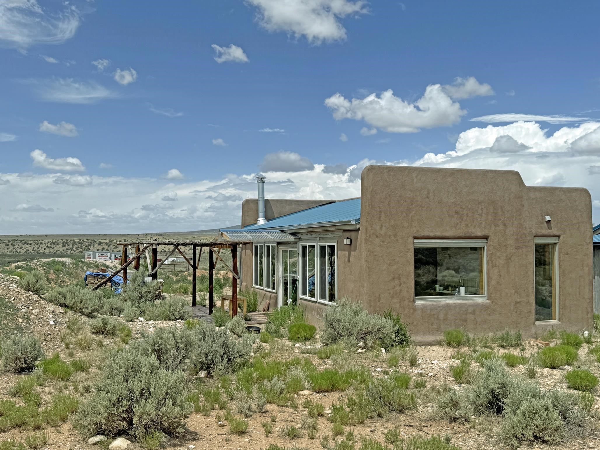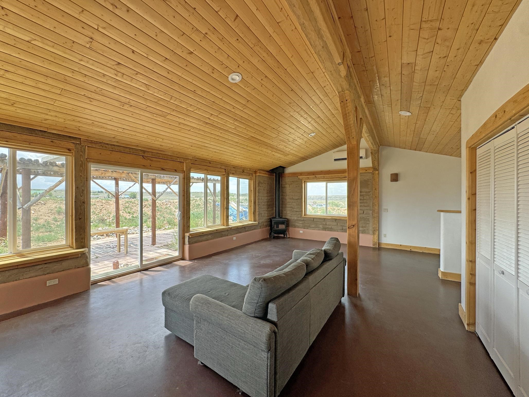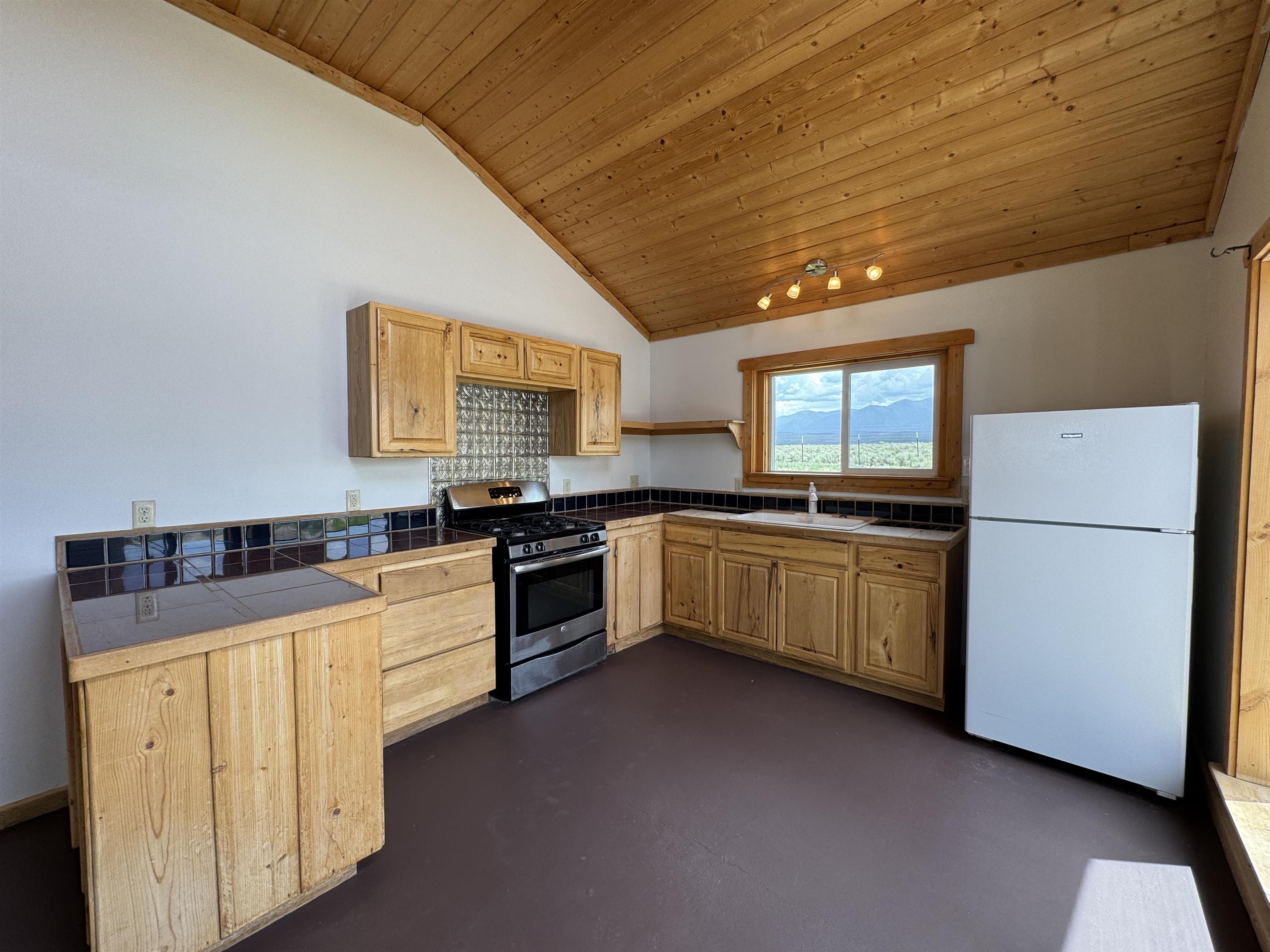 Here’s a flexible property featuring two 700 square feet casitas on 2.53 unrestricted acres! Main house constructed in 2017 has entry mud room and open living/dining/kitchen areas with lots of windows framing wrap around views of sunset, Taos Mountain and Sangre de Cristo Mountains. Painted concrete floors with in floor radiant heat. Pitched tongue and groove ceiling, ceiling fan and woodstove maintain comfortable temperatures year round. Easily accessible, finished loft with cabinets provides ample storage. Cook’s kitchen has granite tile countertops, is wired for under counter lighting, and has a propane gas range and fridge. Comfortable bedroom with T&G and beams ceiling features a spacious ensuite bathroom with cast iron tub, personal shower and ample linen storage. Mechanical/utility room includes a washer which conveys with sale and storage shelving. On the north side is a sweet exposed adobe wall courtyard containing a paver stone patio and latilla ramada, perfect for dining al fresco and star gazing. Pitched Propanel roof delivers water catchment for a 1700 gallon buried cistern in lieu of conventional well. Seller typically orders supplemental water 1-2 times a year for a cost of approximately $230 each delivery of 1700 gallons. Exterior siding is a combination of stucco and Cape Cod wood siding. Guest house is 714 square feet of flexible space built in 2023 featuring kitchenette with fridge, full bath, wood stove, exposed adobes, and vaulted T&G ceiling with beams and columns. Comfortable full bathroom with linen storage, tub and shower. This structure is heated and cooled with a heat pump mini split system. This space could serve as a studio/workshop, studio apartment rental, or additional property living space. Painted cement floors and wrap around windows with mountain views. Entertain outside with a latilla ramada over paver stone patio. Propanel metal shed roof is plumbed for cistern catchment. Landscape berms cradle both structures, adding privacy and providing a canvass for gardeners. Taosnet broadband Internet in both houses (Kit Carson fiber optic in Tune Drive); cell service on site. Located on a rise with stellar 360 degree views and easy walk to the Rio Grande Gorge and John Dunn bridge, Mamby/Stagecoach and Black Rock springs. GPS: 36.52508202679919, -05.70209218650817. Approximately one acre around the structures is fully fence with a farm gate at the entrance. Wood board fencing provides additional privacy. Circle drive and ample guest parking. Property could be subdivided into three separate parcels. Electric transformer has been installed in lower part of property for future development. All construction county permitted with C/Os in Associated Documents. Seller has left firewood, Colorado red flagstone, adobe bricks and new generator in the original box for the buyer. Approximately twenty minutes from Taos Plaza and half an hour from Taos Ski Valley. Only half a mile off the paved road. This quiet, peaceful property could be developed into three residential properties, a family compound, investment rentals, or horse property. So many options for this creative, energy efficient property built with love!
