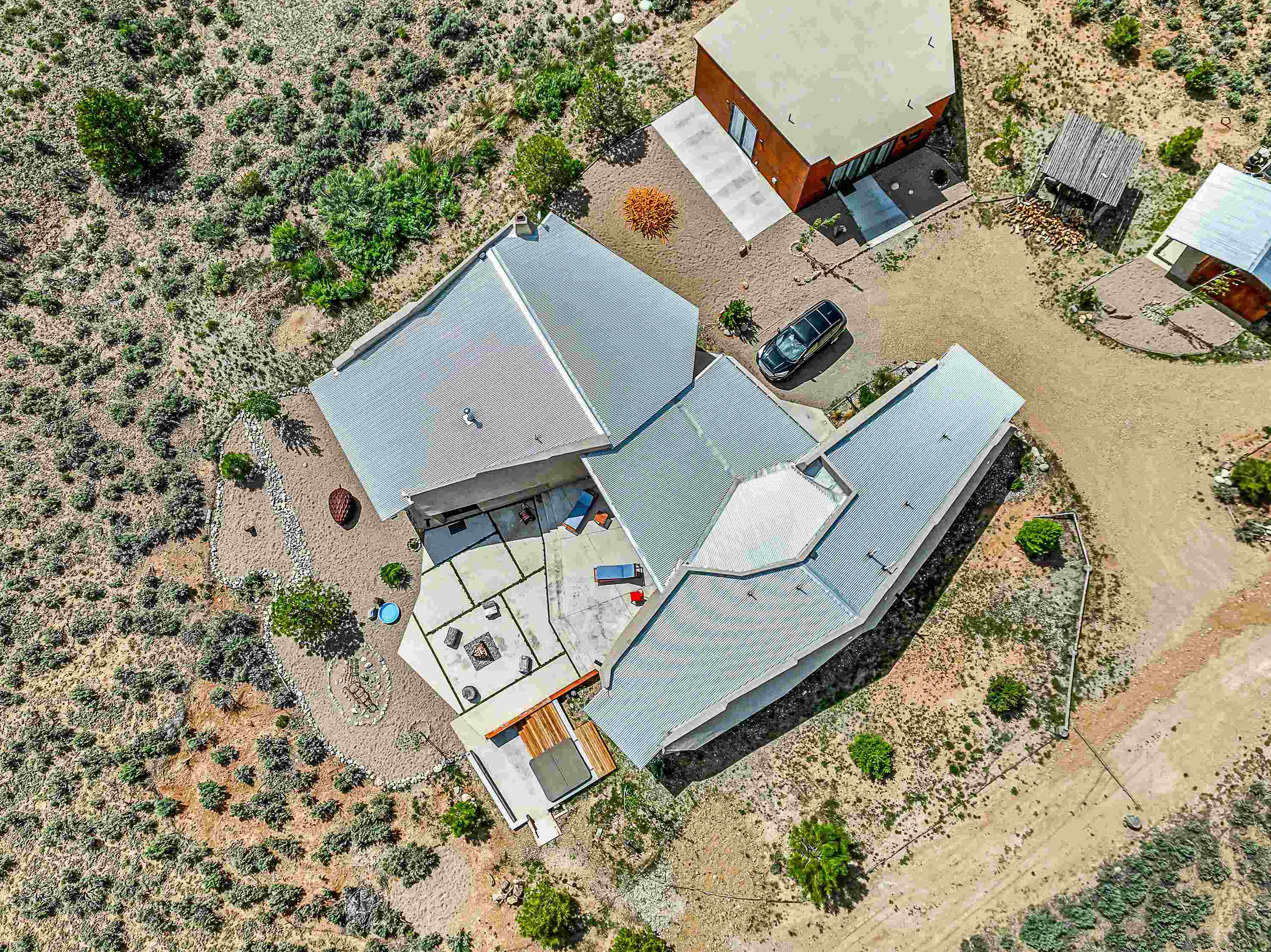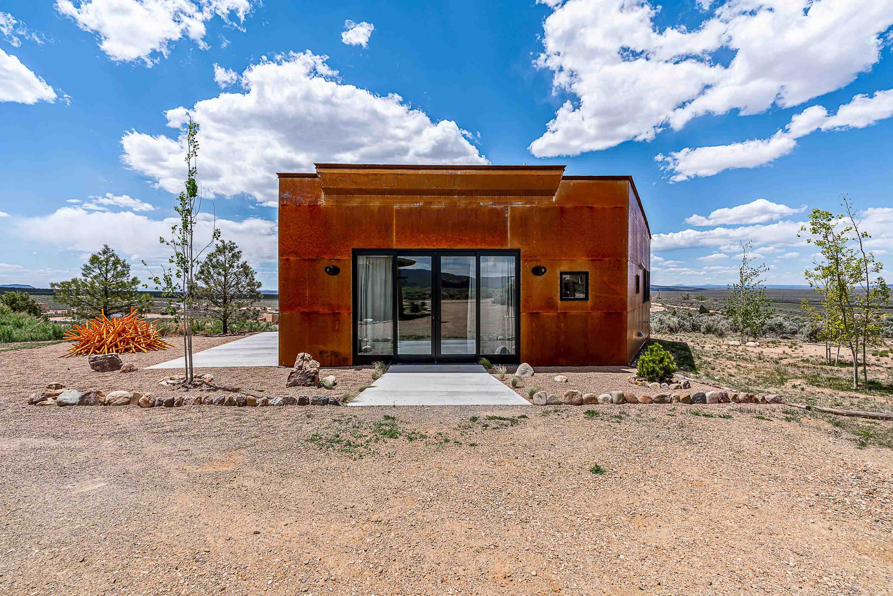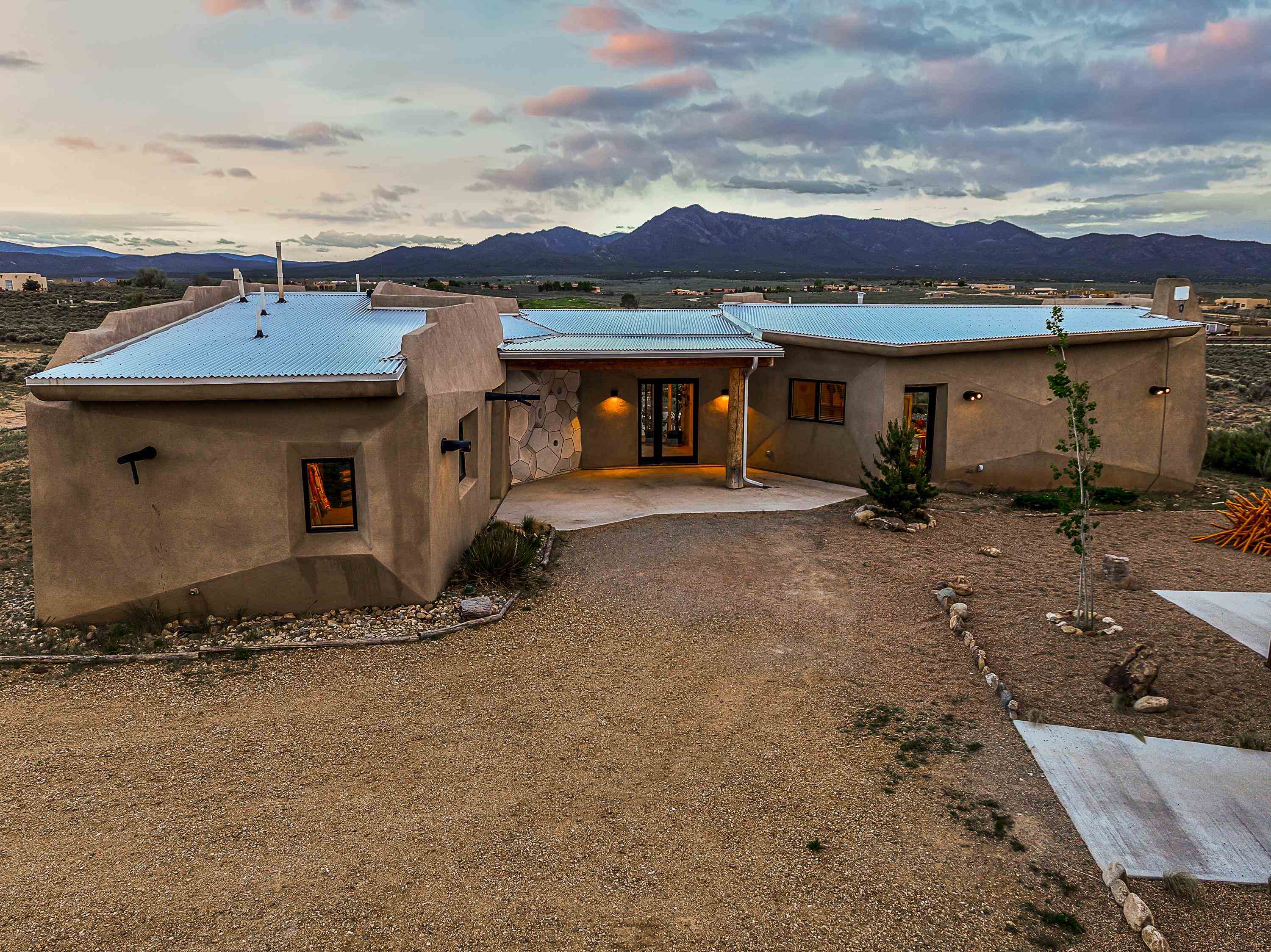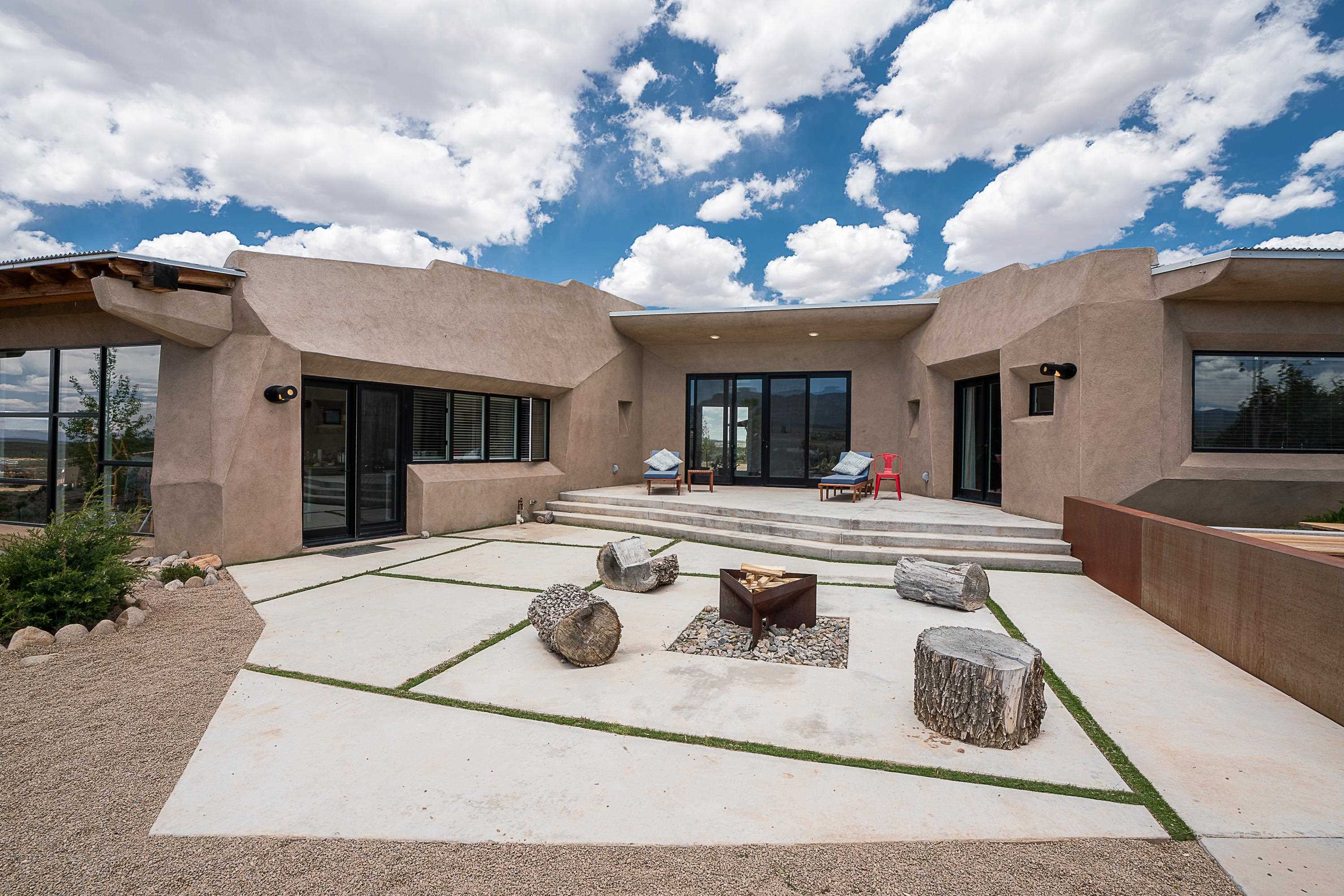Live inside a work of art in this Artist's Dream Dwelling in Taos. Welcome to ATOMICA- a home unlike any other- where art, nature and architecture meet in perfect, unconventional harmony. Designed and built by internationally acclaimed visionary artist Allan Packer, this inspiring Taos retreat is anything but ordinary. The property consists of a house, a guesthouse, and a studio on 3 acres. Organic, offbeat and unconventional in the best possible way. Sculpted thick pumice walls and large windows incorporate and frame the stunning views into a magical, serene space imagined to inspire. The layout defies expectation- fluid and intuitive, built to honor light, shadow and the surrounding land. The main house consists of 2 suites radiating off a large great room made up of an impressive kitchen space and a cozy sunken living room anchored by a whimsical fireplace. Step right out onto the stunning back patio with a firepit, hot tub and jaw dropping views in every direction. The guesthouse is fully equipped with a kitchen and has an established history of rental income. Set atop a peaceful rise, tucked near the edge of the Rio Grande del Norte National Monument, you're just minutes from breathtaking hikes where bighorn sheep roam, epic mountain biking trails, and the quiet power of the river below. The home also overlooks the 16th hole of the Taos Country Club and golf course, blending wild nature with wide-open fairways. This is not just a home-it's a living, breathing work of art. It's a space for dreamers, makers and seekers. Whether you're an artist, writer, hardcore recreationalist or someone simply craving authenticity and soul in a sea of sameness, this home offers something rare: a chance to live in art, not just hang it on the wall. One-of-a-kind. Off the beaten path. Totally Taos. Serious inquiries only. Magic lives here.