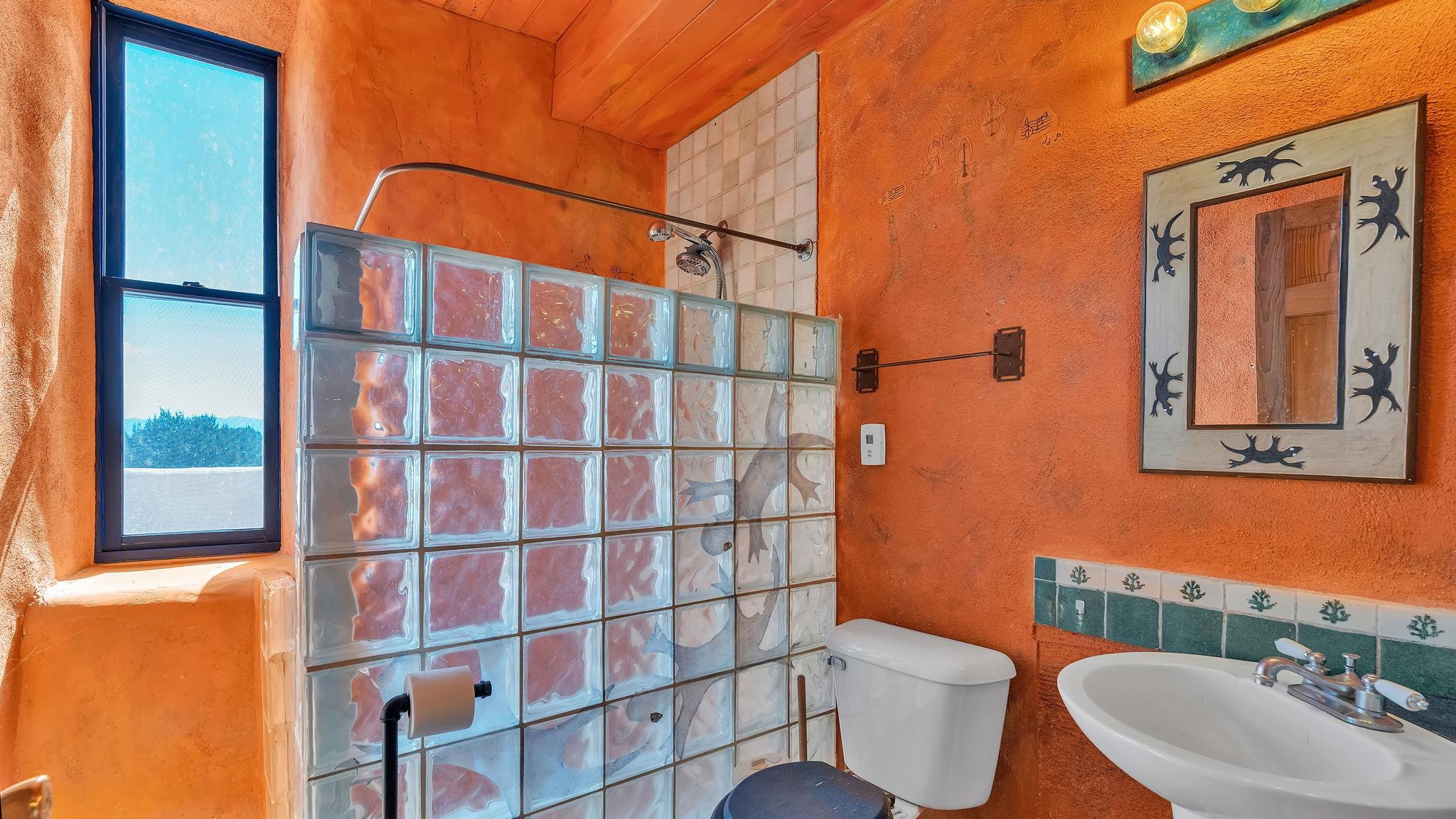 Extraordinary High Desert Property in Carson Near the Petaca ~ 77 North Road is an exceptional off-grid sanctuary in Carson, New Mexico close to the Rio Grande, Ojo Caliente, and minutes from the Petaca. This 2-story Territorial-style home sits on 20 private acres of mature piñon & juniper forest that offers unmatched tranquility. The home is powered by solar photovoltaics with brand new lithium batteries, and its very own private water Well. A rare find in this part of the world. Downstairs you have expansive South and East-facing windows that maximize passive solar warmth while also showcasing stunning views of Taos Mountain and the Sangre de Cristo Mountain Range. The open living-dining area boasts massive ceiling beams, flagstone, and tile floors with a stunning stair case that is art of its own. The kitchen includes a propane range, oven and refrigerator, with desirable wood cabinetry; a space the chef in the household will adore. The primary heat source comes from hot water in-floor heating, baseboards, and supplemental heat from a powerful wood-burning stove. Upstairs, the spacious primary bedroom features pine wood floors, a walk-in closet, and bonus meditation, office, or additional storage space. The half-bath upstairs includes a lovely clawfoot bathtub beside a window with the best views yet, and downstairs you'll find the shower. Walk outside under a covered portal beside the enclosed battery and generator room, and a detached laundry room. The front of the home features a low-walled lush courtyard with more exquisite views, and not far from the home you will find a 15' x 30' straw bale casita that can be transformed to whatever the heart desires. Wildlife, like elk, deer, and coyote, are your neighbors along with numerous bird species that perch up on the bush top daily. Internet is available via TaosNet. The home has been virtually staged to spark design creativity. This is your chance to own a magical 20 acre property in the New Mexico High Desert, don't miss it!