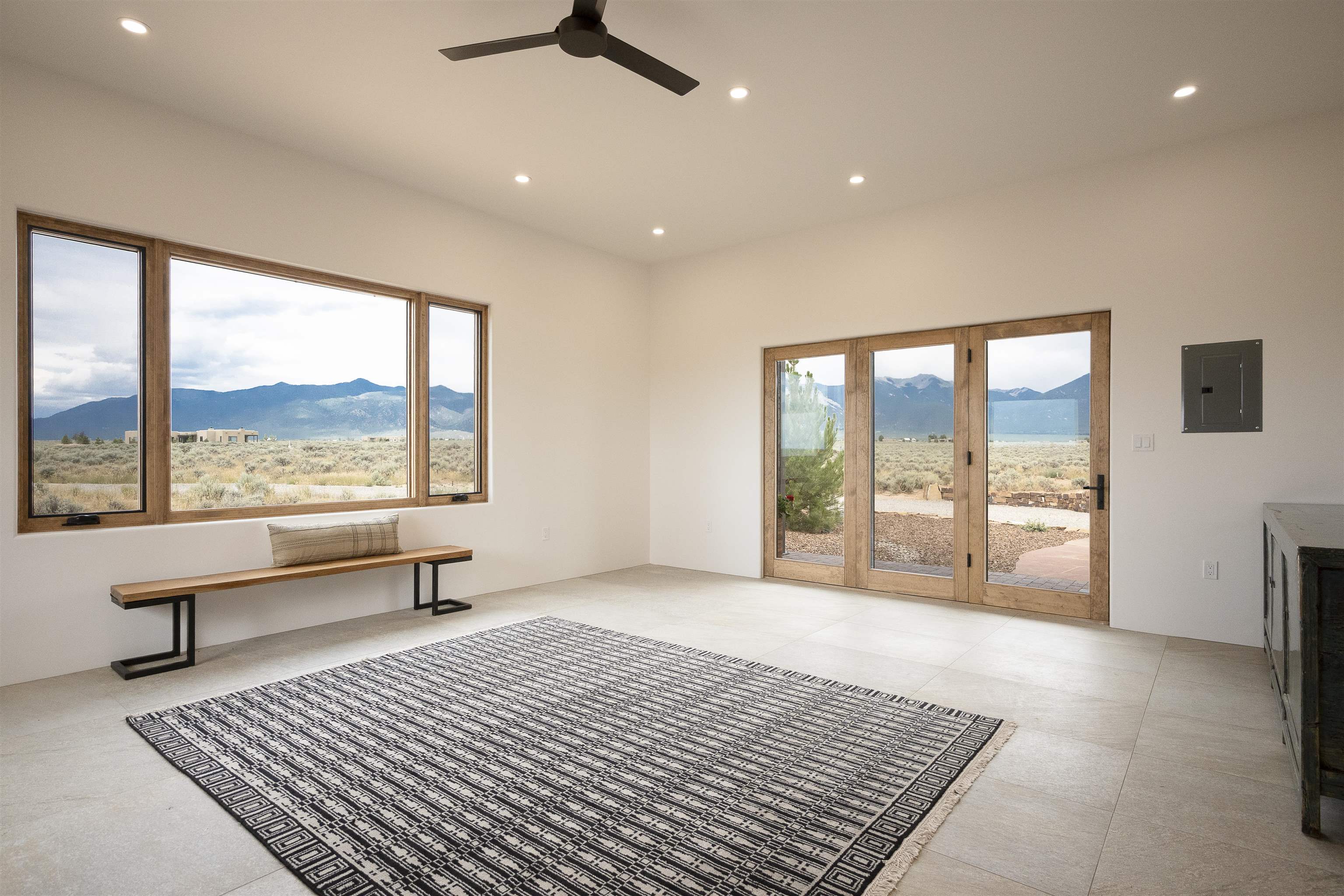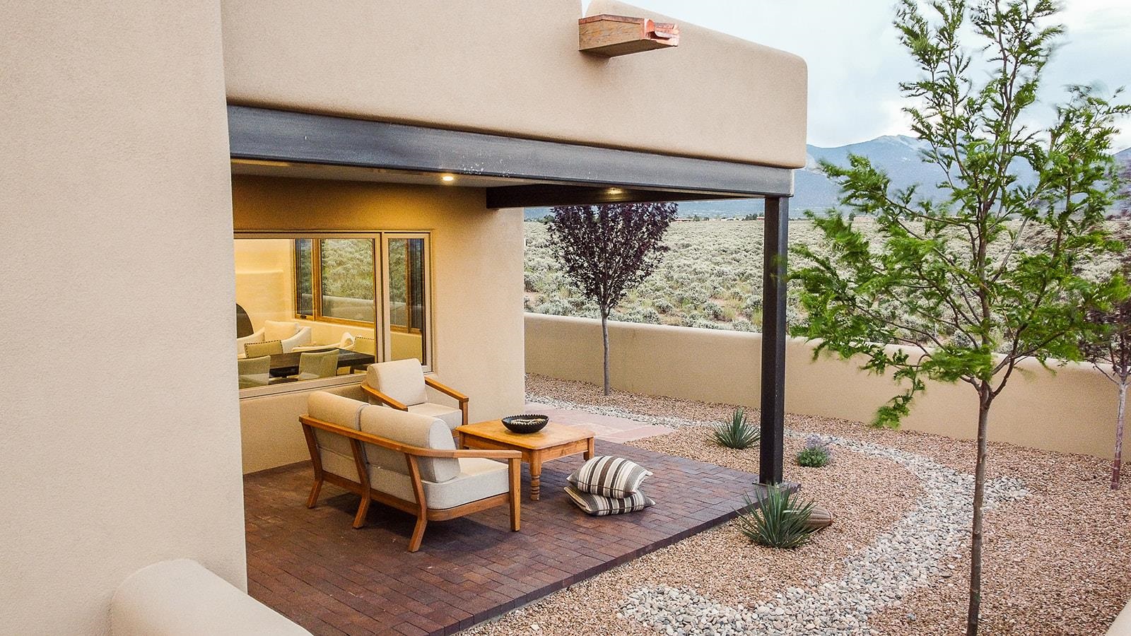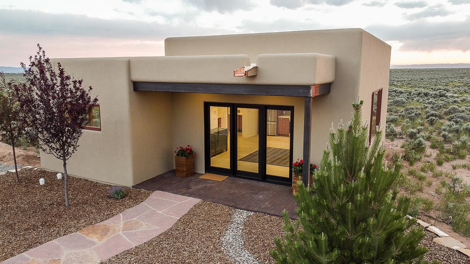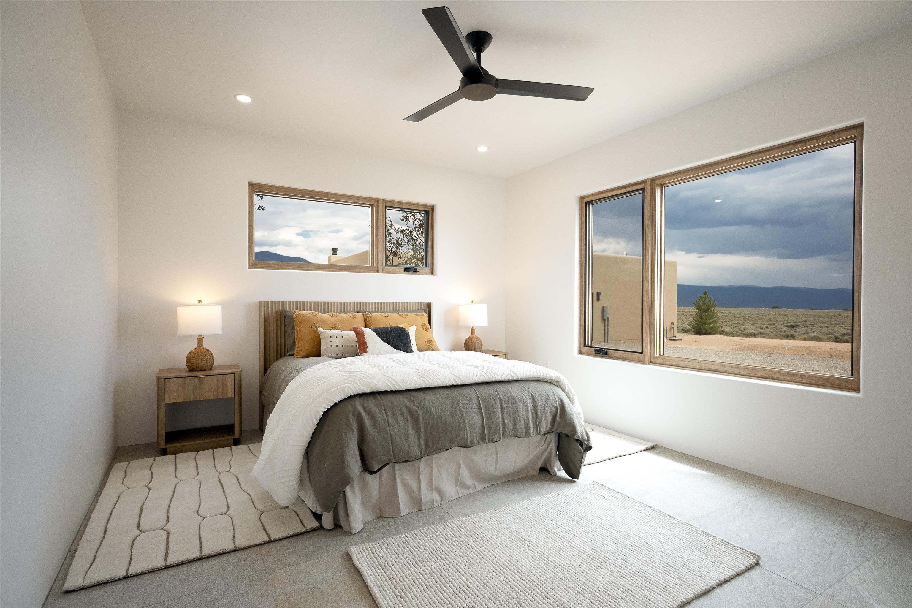 Another masterpiece from Edelman Enterprises! Where bold design meets wide-open skies, this stunning new build offers the perfect balance of modern architecture and natural harmony. Set on 15 acres between Taos and Taos Ski Valley, this southwestern contemporary home is a celebration of light, space, and views- endless views. Clean lines, organic materials, and large expanses of glass bring the outdoors in, framing panoramic vistas of the Sangre de Cristo Mountains, the RÃo Grande Gorge, and high desert mesas. Inside, the open-concept living space features soaring ceilings, sleek finishes, and artisan touches that nod to local traditions— , wood beam accents, stone countertops, portals for relaxing. Step directly from the living and dining areas onto a covered portal—a shaded outdoor living space perfectly positioned to take in the sunrises and shifting light of the mountains to the east. The primary bedroom suite has a walk in closet and breath taking views of Taos Mountain. There is a bonus room, currently set up as an office, adjacent to the primary. The guest bed and en suite bath are on the other side of the living room, next to the laundry room. Although calling it a laundry room doesn't seem fair. It's a generous gorgeous space with custom built-in cabinetry, loads of storage, a wine fridge and more beautiful tile work. Off of the laundry, there is direct access to a deluxe, oversized heated two-car garage providing ample space for vehicles, gear, and storage, blending seamlessly with the home’s bold, modern lines. Just beyond the main house, a fully independent guesthouse with its own kitchen and living area invites comfort, privacy, and flexibility—perfect for hosting friends, housing extended family, or creating a separate studio or rental opportunity. Whether you're savoring the sunrise from the patio, watching the storms roll over the mesas, or stargazing under desert skies, this property is a haven for those who crave both space and style. A rare blend of contemporary design and high-desert soul. Every room is oriented to capture the ever-changing drama of the landscape, from sunrise over the peaks to sunsets that set the sky on fire. Step outside to generous patios designed for quiet mornings, starry nights, and everything in between. This is more than a home—it’s a retreat, a canvas, a vision brought to life in one of New Mexico’s most inspiring locations. Whether you’re looking for a primary residence, a luxury getaway, or a private creative haven, this property delivers space, serenity, and style in equal measure.