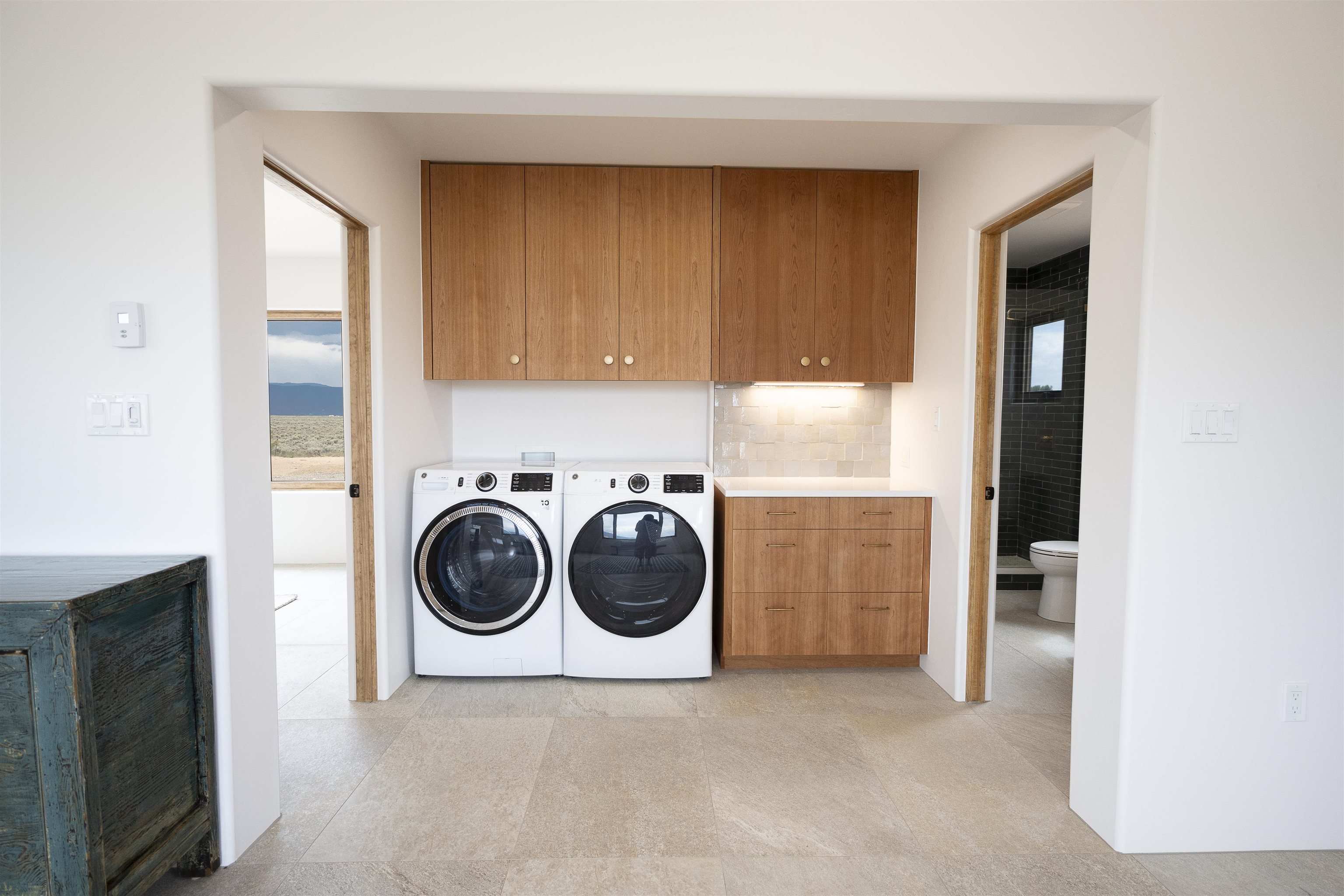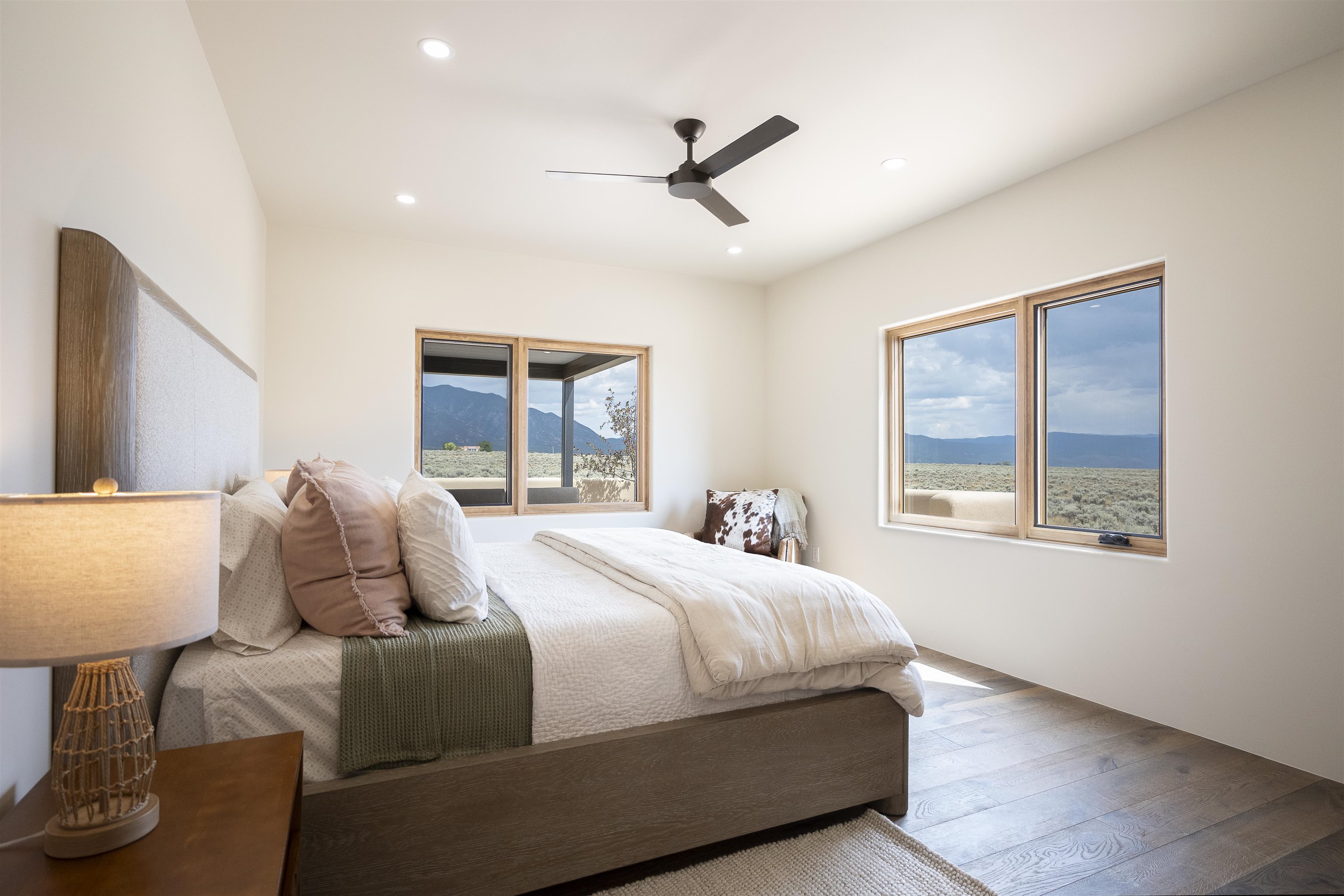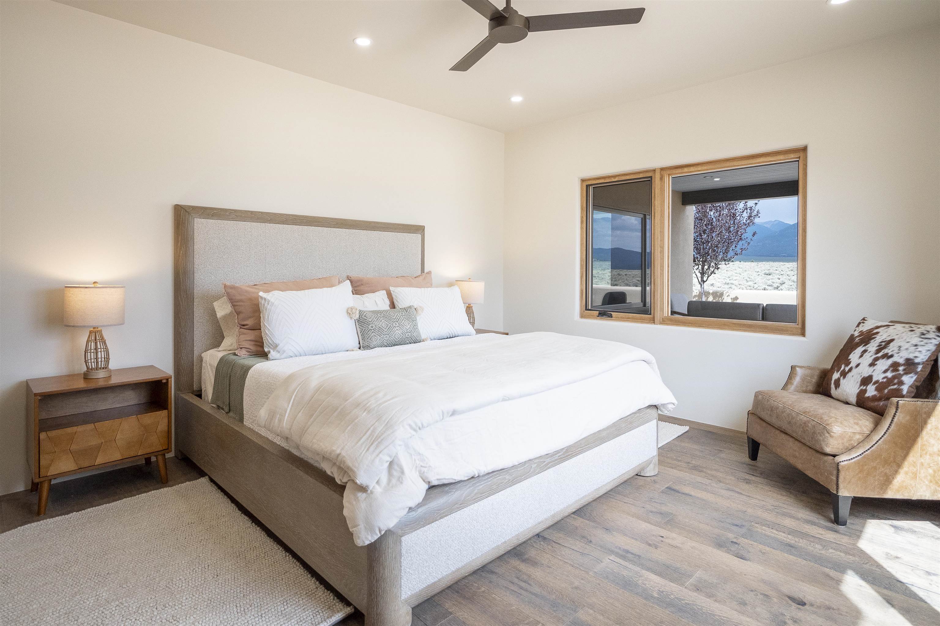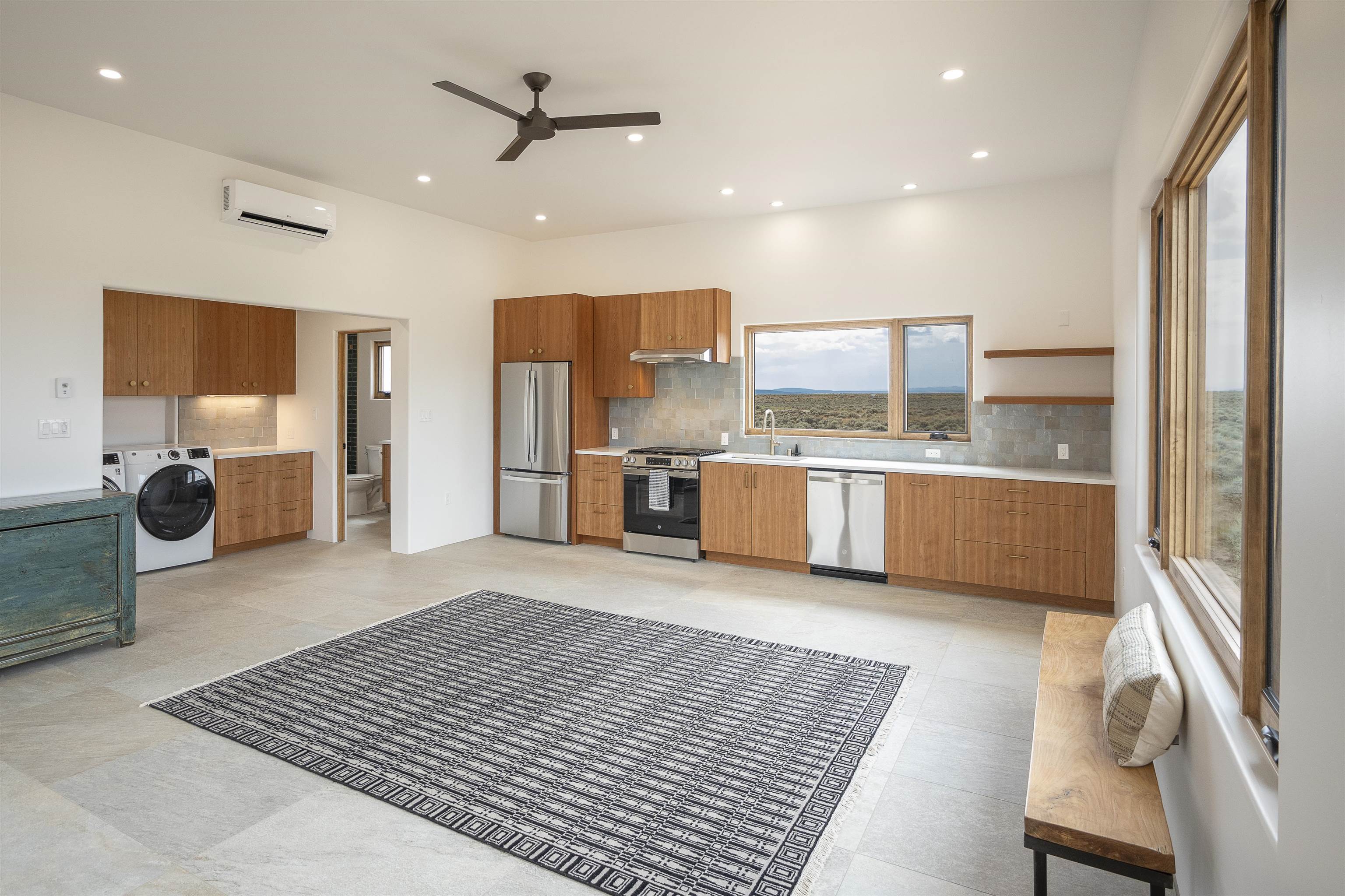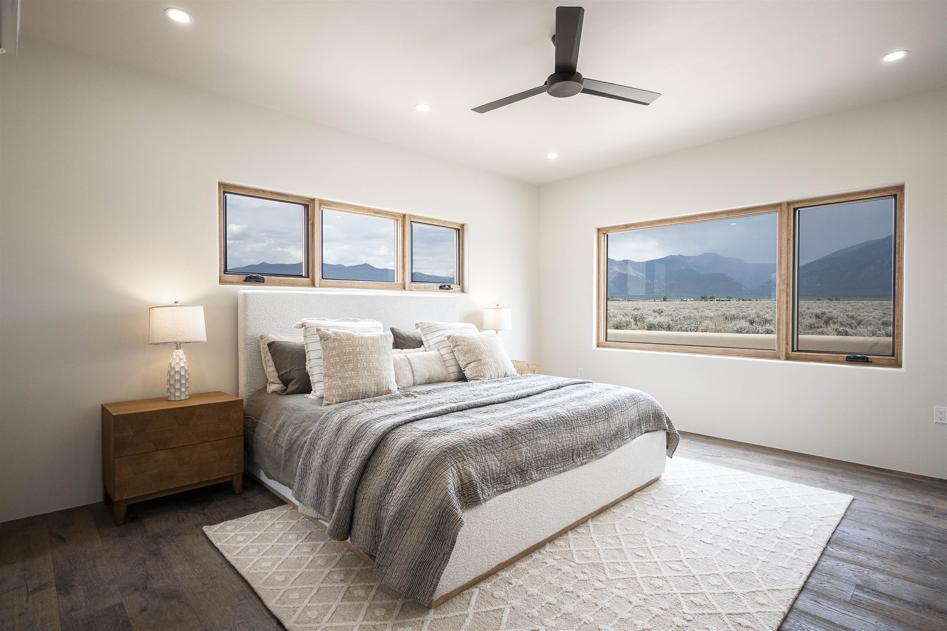 Another masterpiece from Edelman Enterprises! Where bold design meets wide-open skies, this stunning new build offers the perfect balance of modern architecture and natural harmony. Set on 15 acres between Taos and Taos Ski Valley, this southwestern contemporary home is a celebration of light, space, and views- endless views. Clean lines, organic materials, and large expanses of glass bring the outdoors in, framing panoramic vistas of the Sangre de Cristo Mountains, the RÃo Grande Gorge, and high desert mesas. Inside, the open-concept living space features soaring ceilings, sleek finishes, and artisan touches that nod to local traditions— , wood beam accents, stone countertops, portals for relaxing. Step directly from the living and dining areas onto a covered portal—a shaded outdoor living space perfectly positioned to take in the sunrises and shifting light of the mountains to the east. The primary bedroom suite has a walk in closet and breath taking views of Taos Mountain. There is a bonus room, currently set up as an office, adjacent to the primary. The guest bed and en suite bath are on the other side of the living room, next to the laundry room. Although calling it a laundry room doesn't seem fair. It's a generous gorgeous space with custom built-in cabinetry, loads of storage, a wine fridge and more beautiful tile work. Off of the laundry, there is direct access to a deluxe, oversized heated two-car garage providing ample space for vehicles, gear, and storage, blending seamlessly with the home’s bold, modern lines. Just beyond the main house, a fully independent guesthouse with its own kitchen and living area invites comfort, privacy, and flexibility—perfect for hosting friends, housing extended family, or creating a separate studio or rental opportunity. Whether you're savoring the sunrise from the patio, watching the storms roll over the mesas, or stargazing under desert skies, this property is a haven for those who crave both space and style. A rare blend of contemporary design and high-desert soul. Every room is oriented to capture the ever-changing drama of the landscape, from sunrise over the peaks to sunsets that set the sky on fire. Step outside to generous patios designed for quiet mornings, starry nights, and everything in between. This is more than a home—it’s a retreat, a canvas, a vision brought to life in one of New Mexico’s most inspiring locations. Whether you’re looking for a primary residence, a luxury getaway, or a private creative haven, this property delivers space, serenity, and style in equal measure.