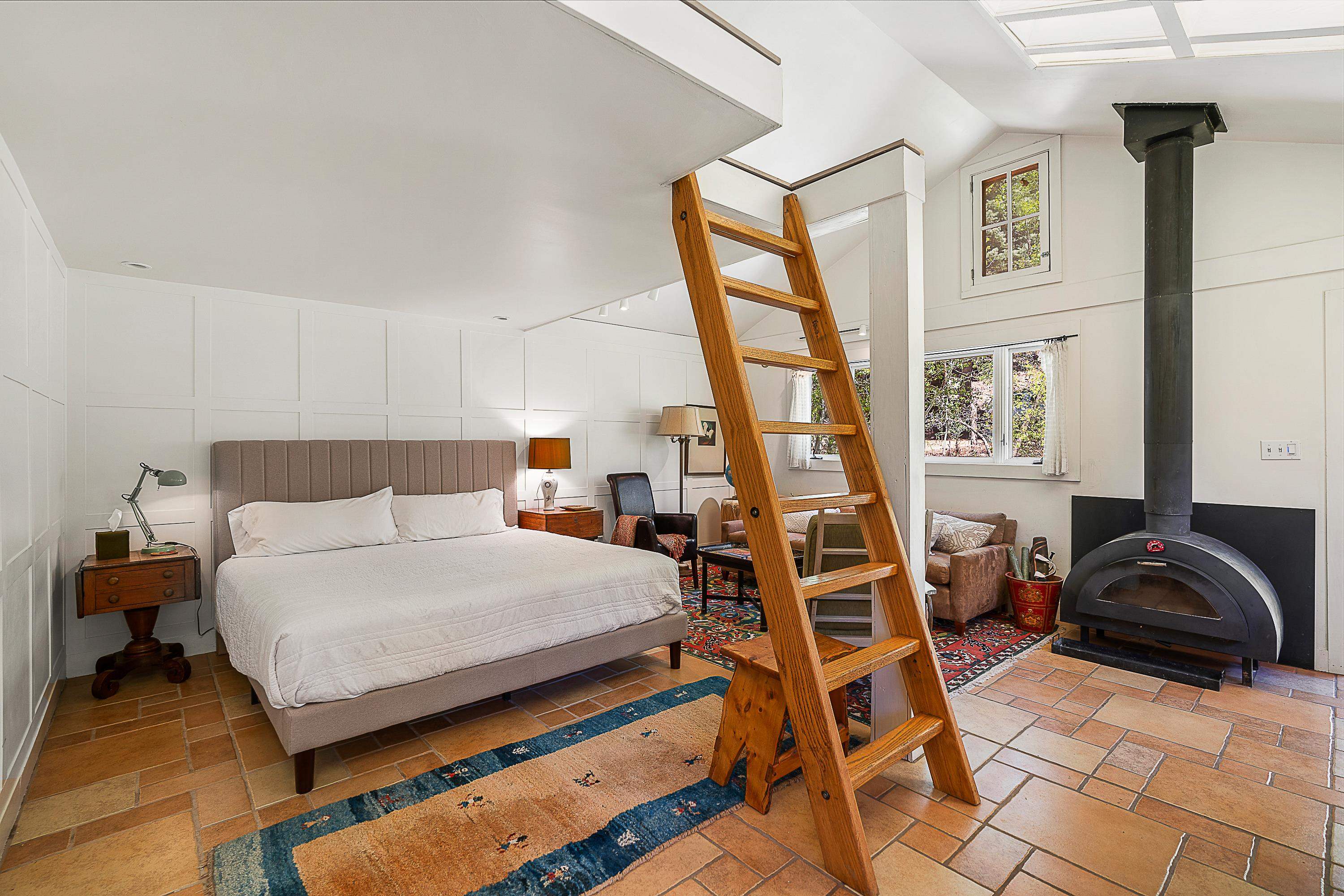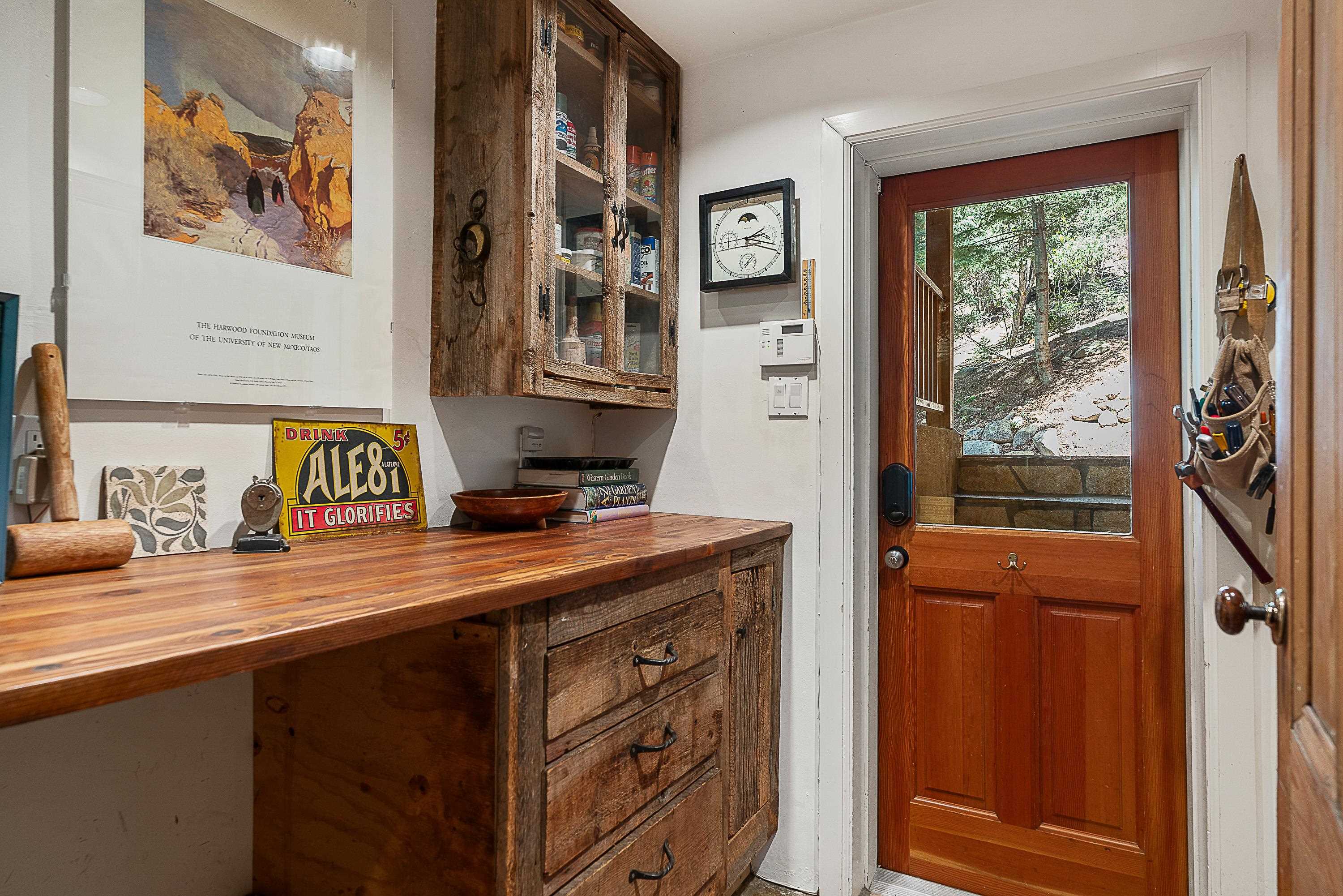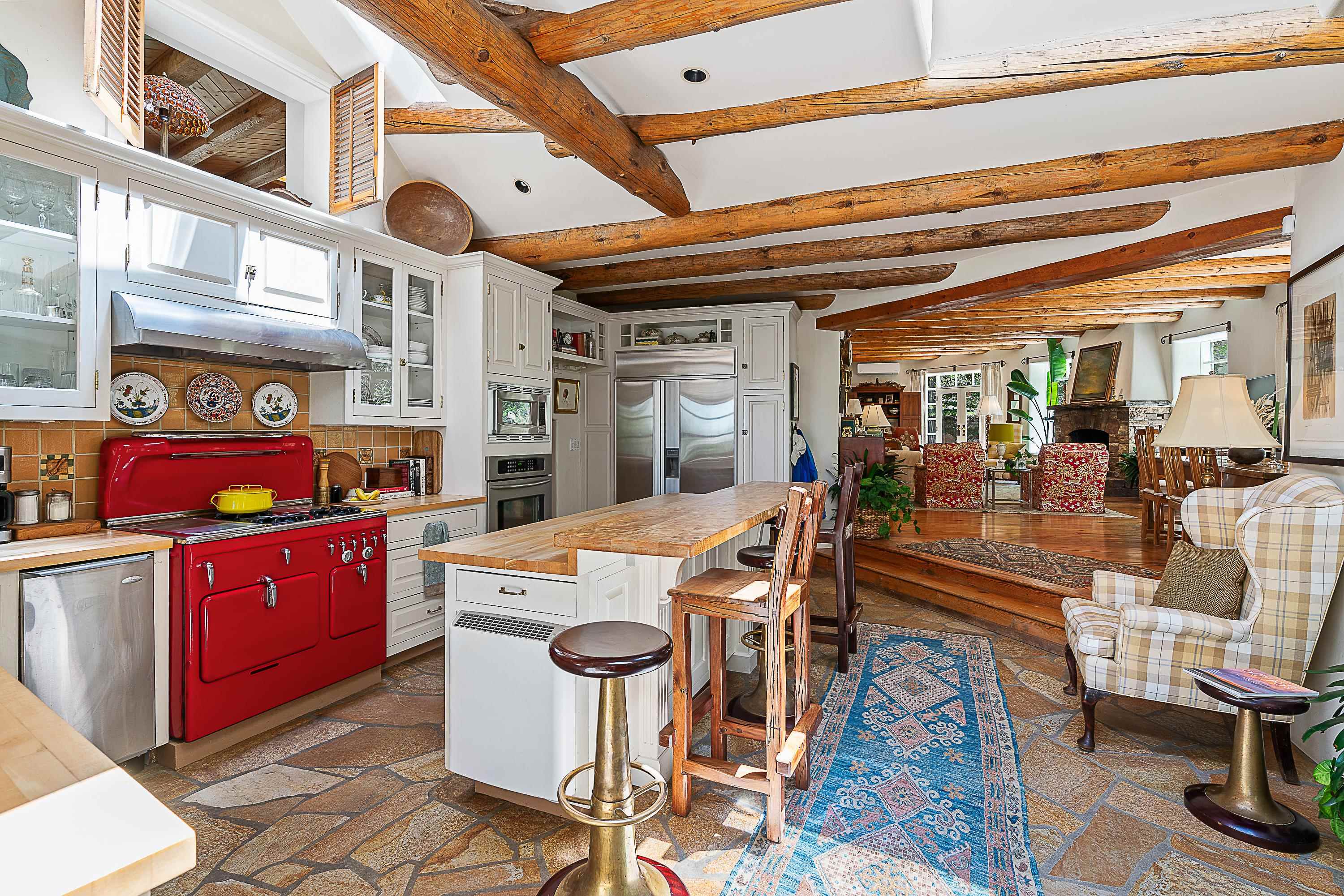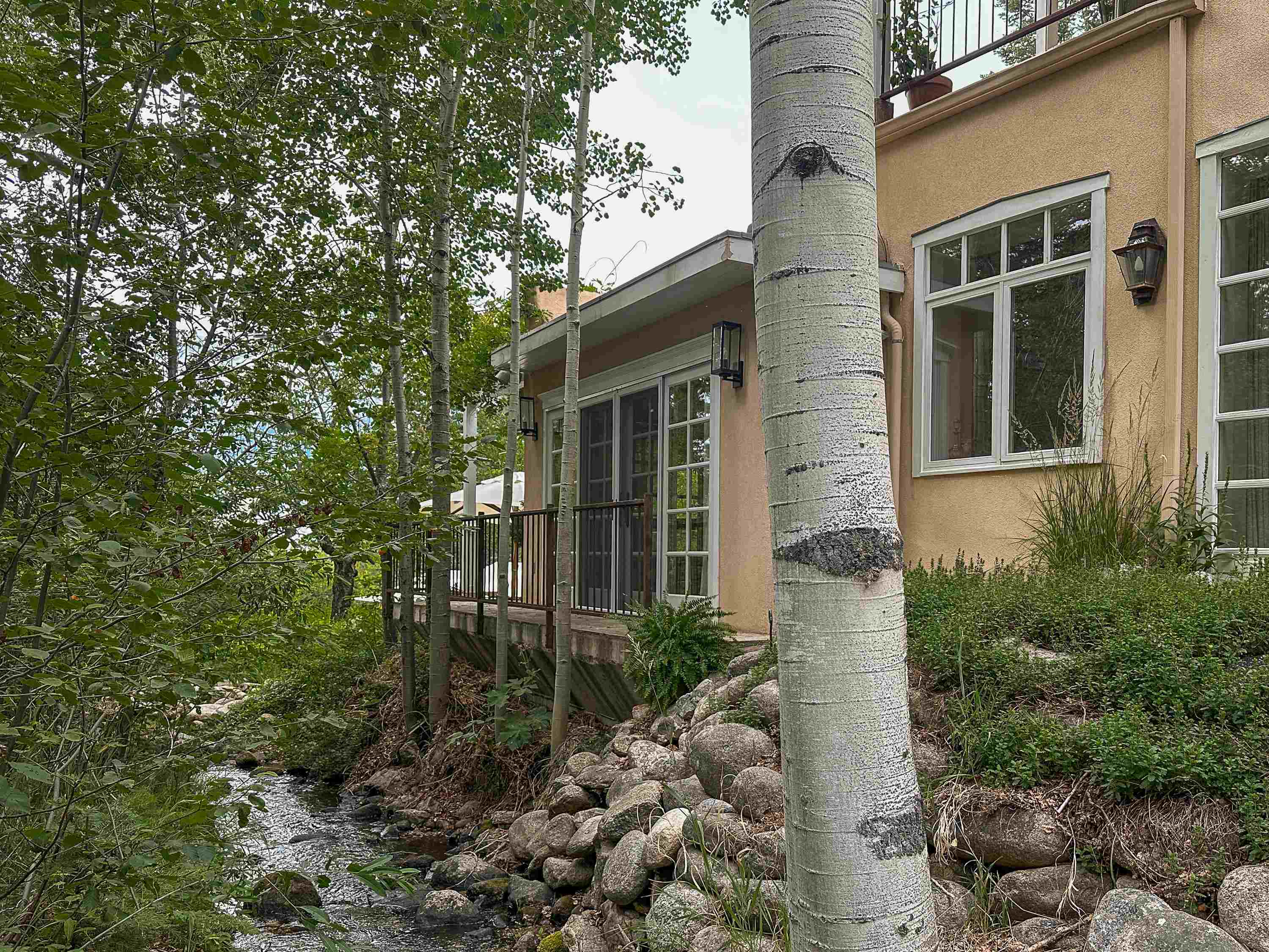 Comfortably tucked beneath the towering El Salto Mountain, sits this special 5.25 acre estate alongside the Arroyo Seco stream. This green oasis is defined by water, tall trees, birdsong and woodland gardens, by clear light, forever views and cool, starry nights. From its origins in the early 1970's, generously expanded over several decades, the home is built in harmony with the land. Each level flows naturally from the last, echoing the cascading waters just outside, with terraces, nooks, and rooms unfolding like the curves of the Creek itself. Both informal and refined, the house feels completely welcoming and comfortable. Gorgeous Idaho quartzite flagstone moves seamlessly from the broad front portal draped with Wisteria into the kitchen. The principal living space has a dreamy kitchen with a fantastic 1954 red enamel Chambers stove, a wonderful creek-side sitting area, a living room with wide plank reclaimed heart pine floors, a dry-stack stone fireplace, a library nook, a dining area, and three sets of French doors leading out onto a wrap-around patio that follows the banks of the winding creek. Salvaged and repurposed cypress shutters from New Orleans became beautiful wainscot paneling and doors. The home is anchored by a spectacular second story glass sunroom, made and installed by Pennsylvania Mennonite and Amish craftsmen from Renaissance Conservatories. The magical room with a warm quartzite floor is bathed in natural light that invites the outdoors in- perfect for morning coffee, quiet reflection, reading, writing, or entertaining under the stars. From here, a short rise of stairs leads to a landing off of which radiate two large, private suites. The western facing suite has a cozy sitting area with a large fireplace and a patio overlooking the stream and endless views to the Rio Grande Gorge and beyond. The corresponding suite is bathed in beautiful natural light from the large windows, vaulted ceilings and skylights. It feels like a cozy nest tucked into the treed canopy surrounding it. The third bedroom suite is can be accessed from the main living level or via a private door from the gardens. A delightful guesthouse with a complete kitchen sits at the base of a grassy lawn. Under the same roof, yet with it's own entrances from the lawn or garage is an additional light-filled room currently used as a home gym/office, and has a half bathroom. Versatile spaces amongst a verdant landscape. The stream brings the music of water to your daily rhythms. In the evening a cool breeze comes down the creek, and with it the gift of sleeping under a light blanket...windows wide open, stream trickling along. Natural springs feed native plants and perennials that bloom spring and summer. Golden Aspens shimmer and quake in the fall. Over 60 varieties of flowering trees, shrubs and perennials make for a true botanical delight. This is northern New Mexico at its most magical. Simply stroll out the door to hike and bike. No bike racks and drives to a trailhead necessary. Contiguous with quiet Taos Pueblo lands. Hiking trails lead to the El Salto waterfall and Carson National Forest. It's an easy 12 mile/20 minute drive to Taos Ski Valley. The location is secluded, yet sneaky-convenient. Meticulously maintained by one Owner for over 50 years, this is the first opportunity for another lucky soul to call this Home. This one-of-a-kind mountain sanctuary blends privacy, luxury and natural beauty in a way that simply can't be replicated. It is a truly special spot- Private Luxury at the Edge of Wild.