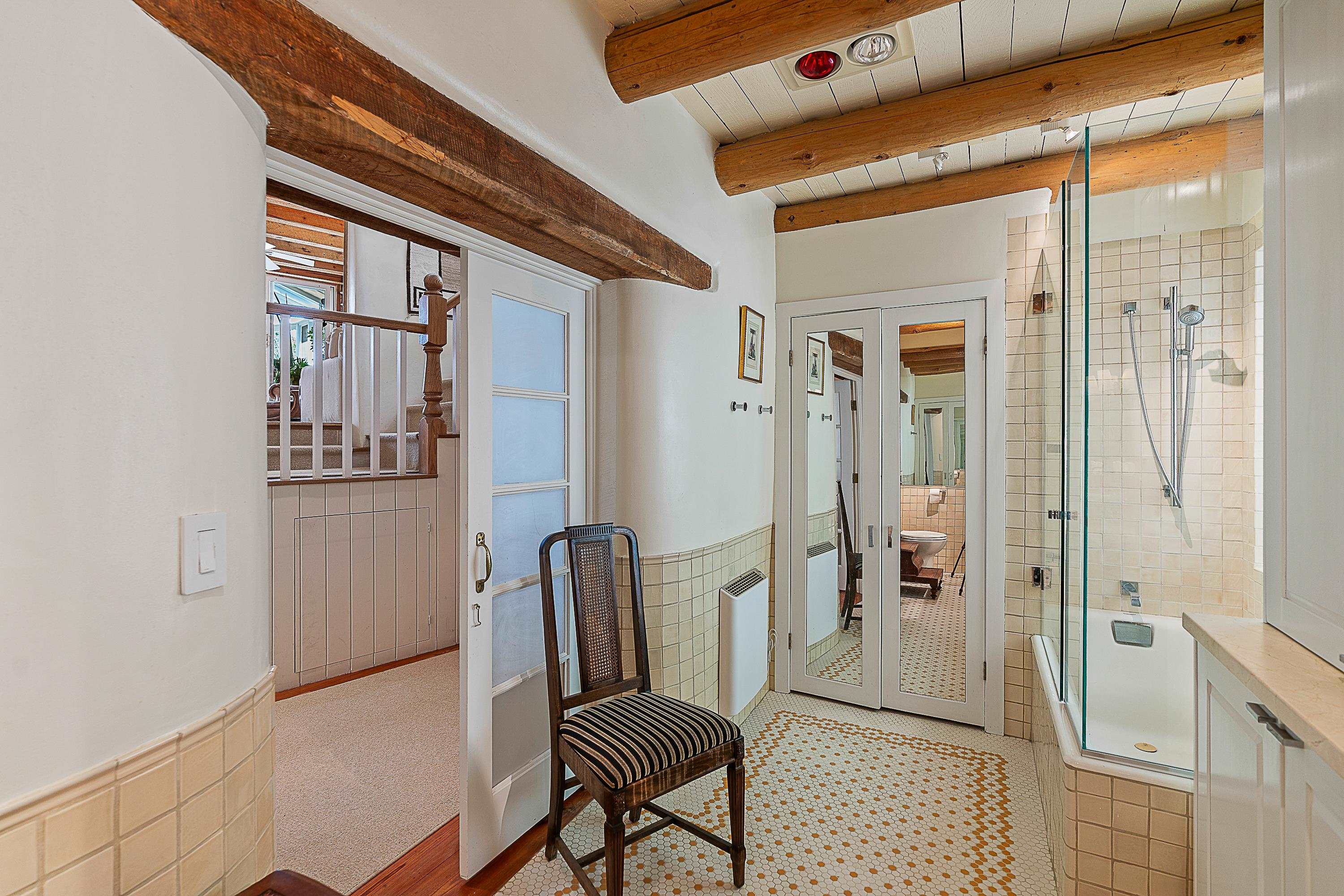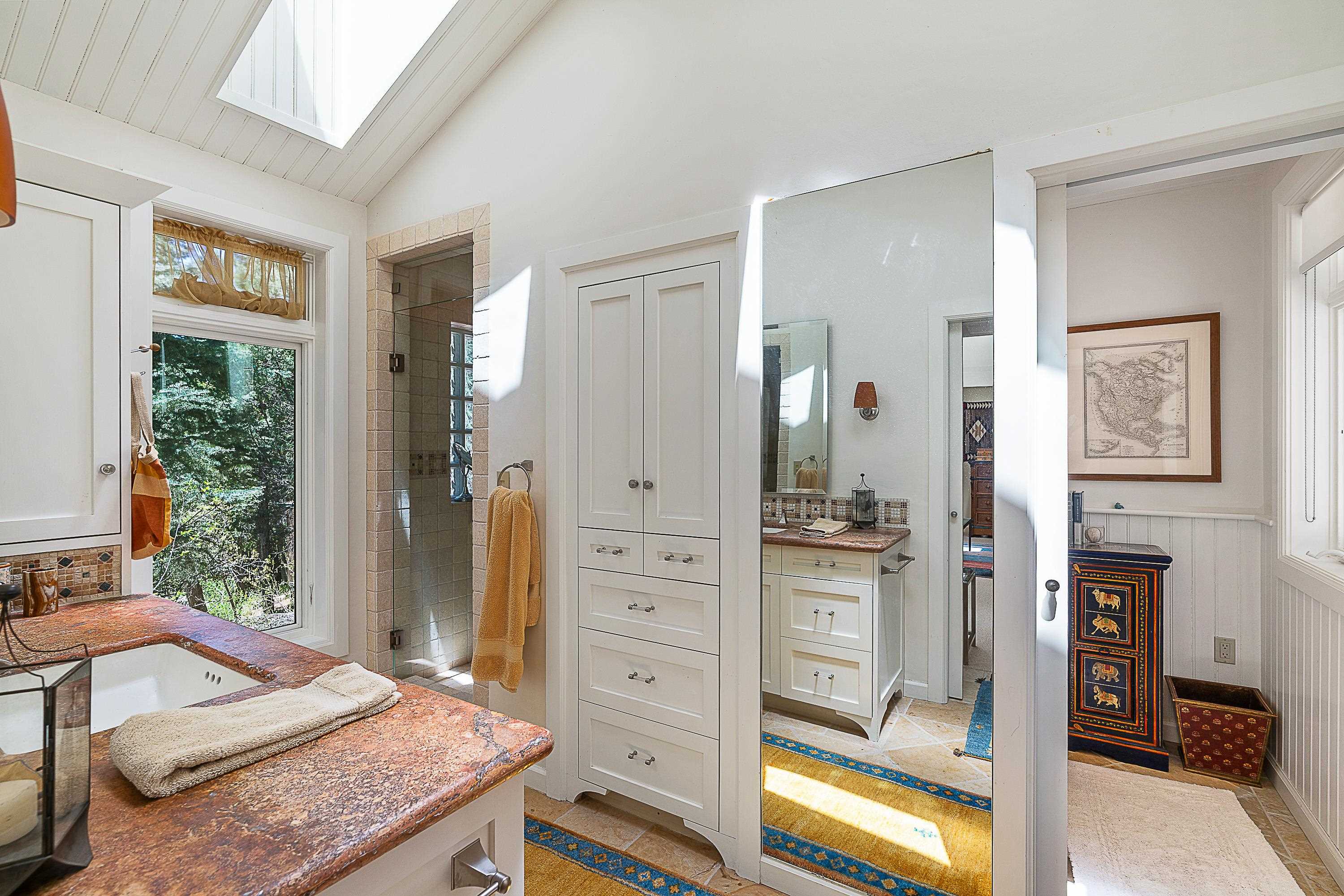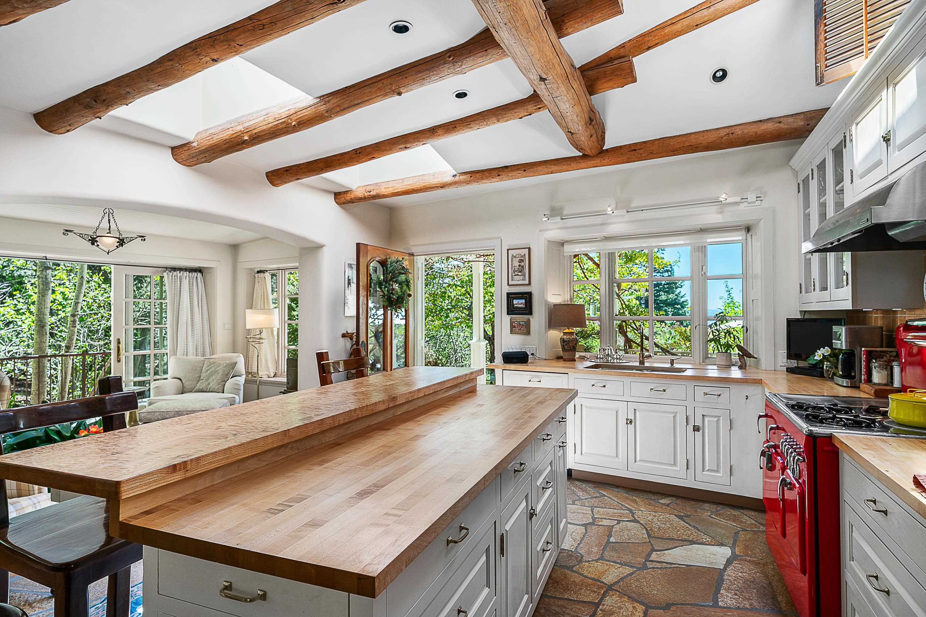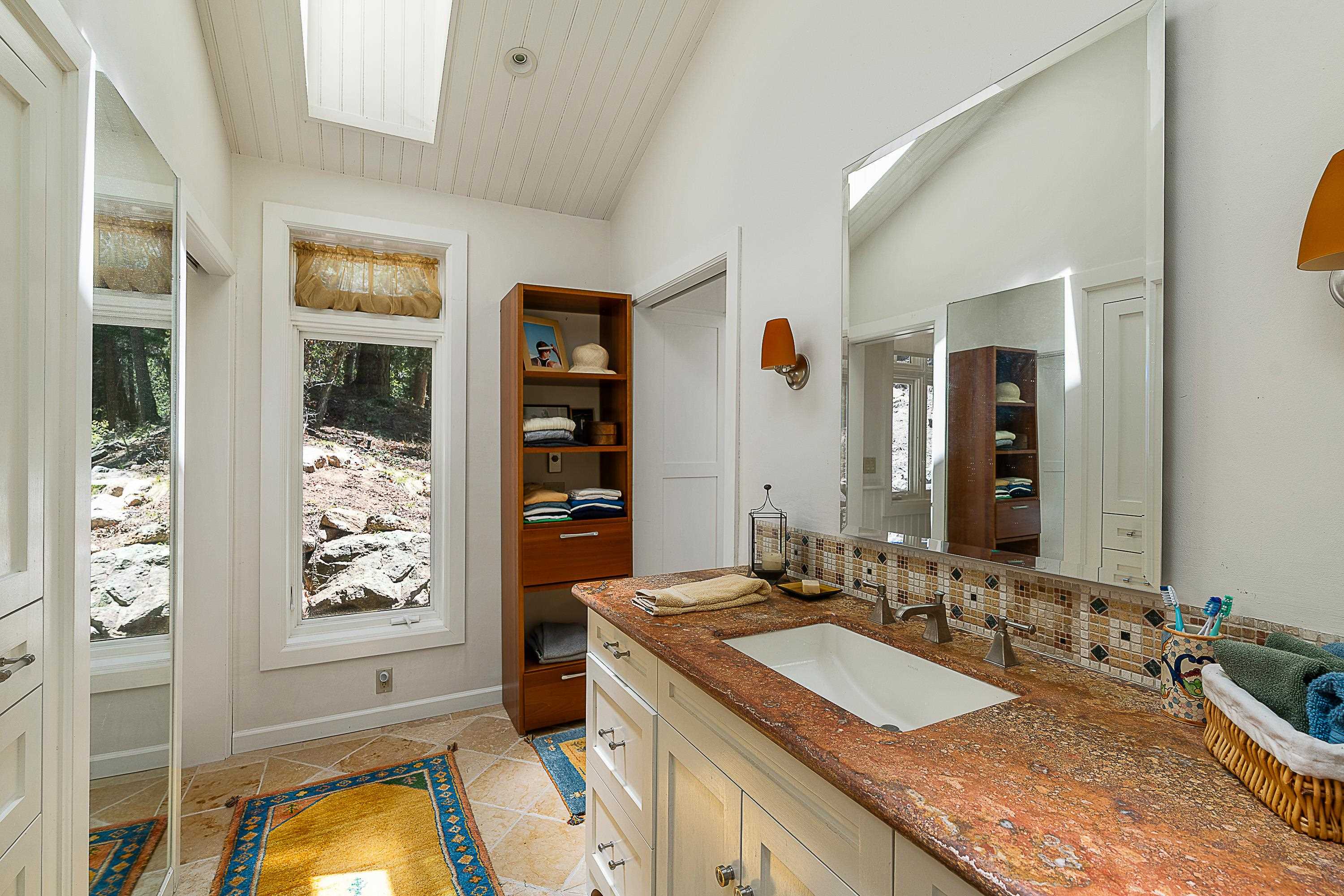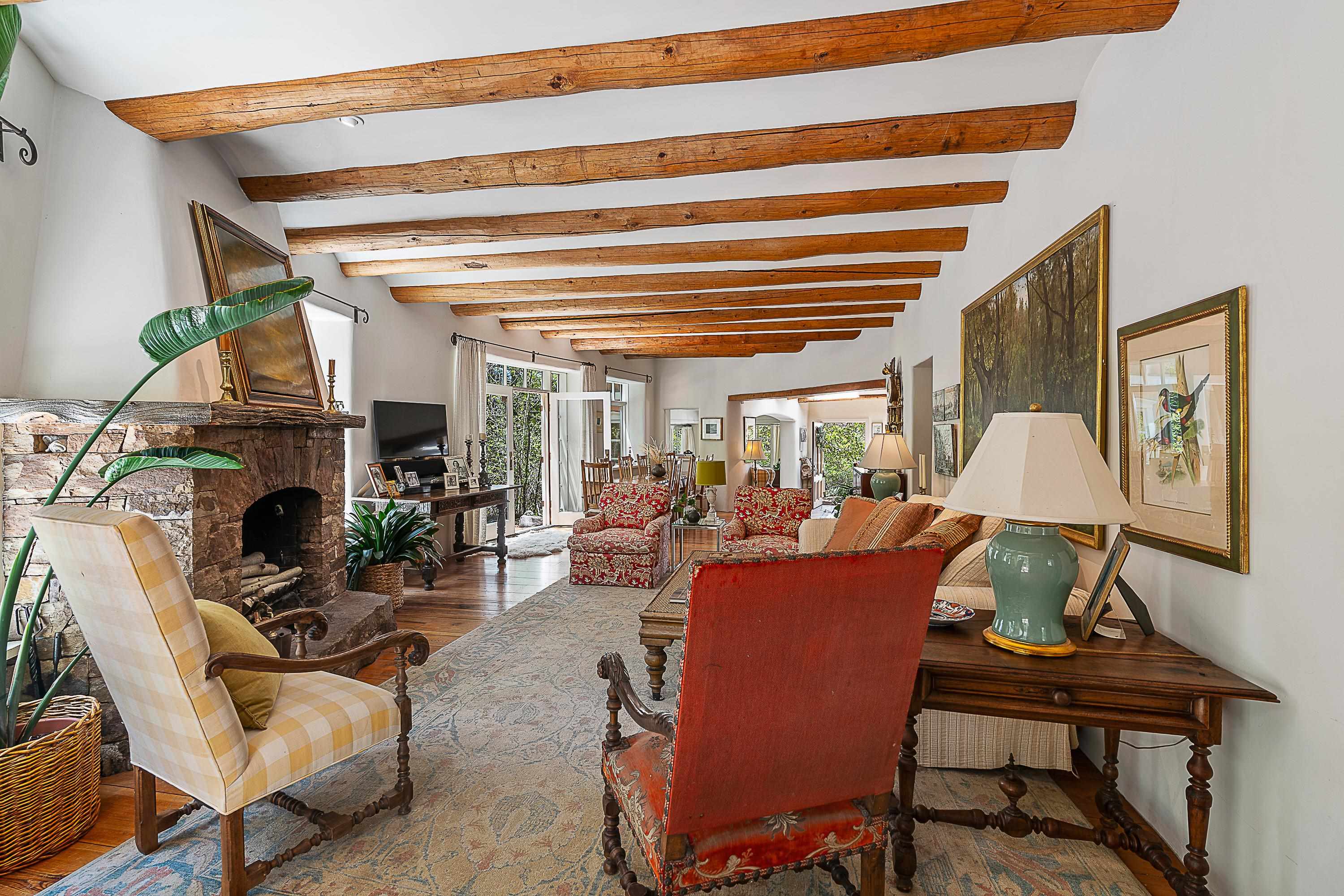 Comfortably tucked beneath the towering El Salto Mountain, sits this special 5.25 acre estate alongside the Arroyo Seco stream. This green oasis is defined by water, tall trees, birdsong and woodland gardens, by clear light, forever views and cool, starry nights. From its origins in the early 1970's, generously expanded over several decades, the home is built in harmony with the land. Each level flows naturally from the last, echoing the cascading waters just outside, with terraces, nooks, and rooms unfolding like the curves of the Creek itself. Both informal and refined, the house feels completely welcoming and comfortable. Gorgeous Idaho quartzite flagstone moves seamlessly from the broad front portal draped with Wisteria into the kitchen. The principal living space has a dreamy kitchen with a fantastic 1954 red enamel Chambers stove, a wonderful creek-side sitting area, a living room with wide plank reclaimed heart pine floors, a dry-stack stone fireplace, a library nook, a dining area, and three sets of French doors leading out onto a wrap-around patio that follows the banks of the winding creek. Salvaged and repurposed cypress shutters from New Orleans became beautiful wainscot paneling and doors. The home is anchored by a spectacular second story glass sunroom, made and installed by Pennsylvania Mennonite and Amish craftsmen from Renaissance Conservatories. The magical room with a warm quartzite floor is bathed in natural light that invites the outdoors in- perfect for morning coffee, quiet reflection, reading, writing, or entertaining under the stars. From here, a short rise of stairs leads to a landing off of which radiate two large, private suites. The western facing suite has a cozy sitting area with a large fireplace and a patio overlooking the stream and endless views to the Rio Grande Gorge and beyond. The corresponding suite is bathed in beautiful natural light from the large windows, vaulted ceilings and skylights. It feels like a cozy nest tucked into the treed canopy surrounding it. The third bedroom suite is can be accessed from the main living level or via a private door from the gardens. A delightful guesthouse with a complete kitchen sits at the base of a grassy lawn. Under the same roof, yet with it's own entrances from the lawn or garage is an additional light-filled room currently used as a home gym/office, and has a half bathroom. Versatile spaces amongst a verdant landscape. The stream brings the music of water to your daily rhythms. In the evening a cool breeze comes down the creek, and with it the gift of sleeping under a light blanket...windows wide open, stream trickling along. Natural springs feed native plants and perennials that bloom spring and summer. Golden Aspens shimmer and quake in the fall. Over 60 varieties of flowering trees, shrubs and perennials make for a true botanical delight. This is northern New Mexico at its most magical. Simply stroll out the door to hike and bike. No bike racks and drives to a trailhead necessary. Contiguous with quiet Taos Pueblo lands. Hiking trails lead to the El Salto waterfall and Carson National Forest. It's an easy 12 mile/20 minute drive to Taos Ski Valley. The location is secluded, yet sneaky-convenient. Meticulously maintained by one Owner for over 50 years, this is the first opportunity for another lucky soul to call this Home. This one-of-a-kind mountain sanctuary blends privacy, luxury and natural beauty in a way that simply can't be replicated. It is a truly special spot- Private Luxury at the Edge of Wild.