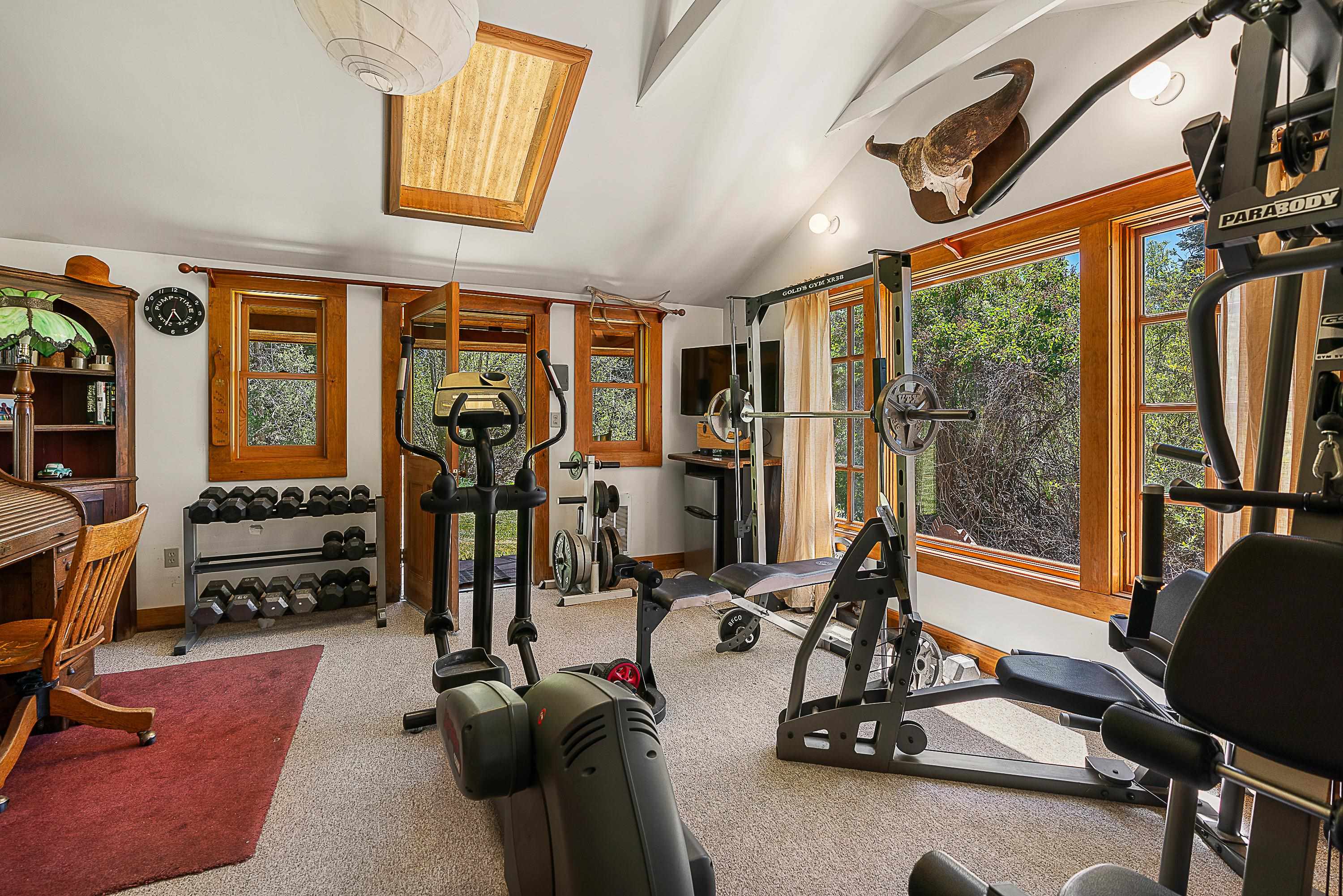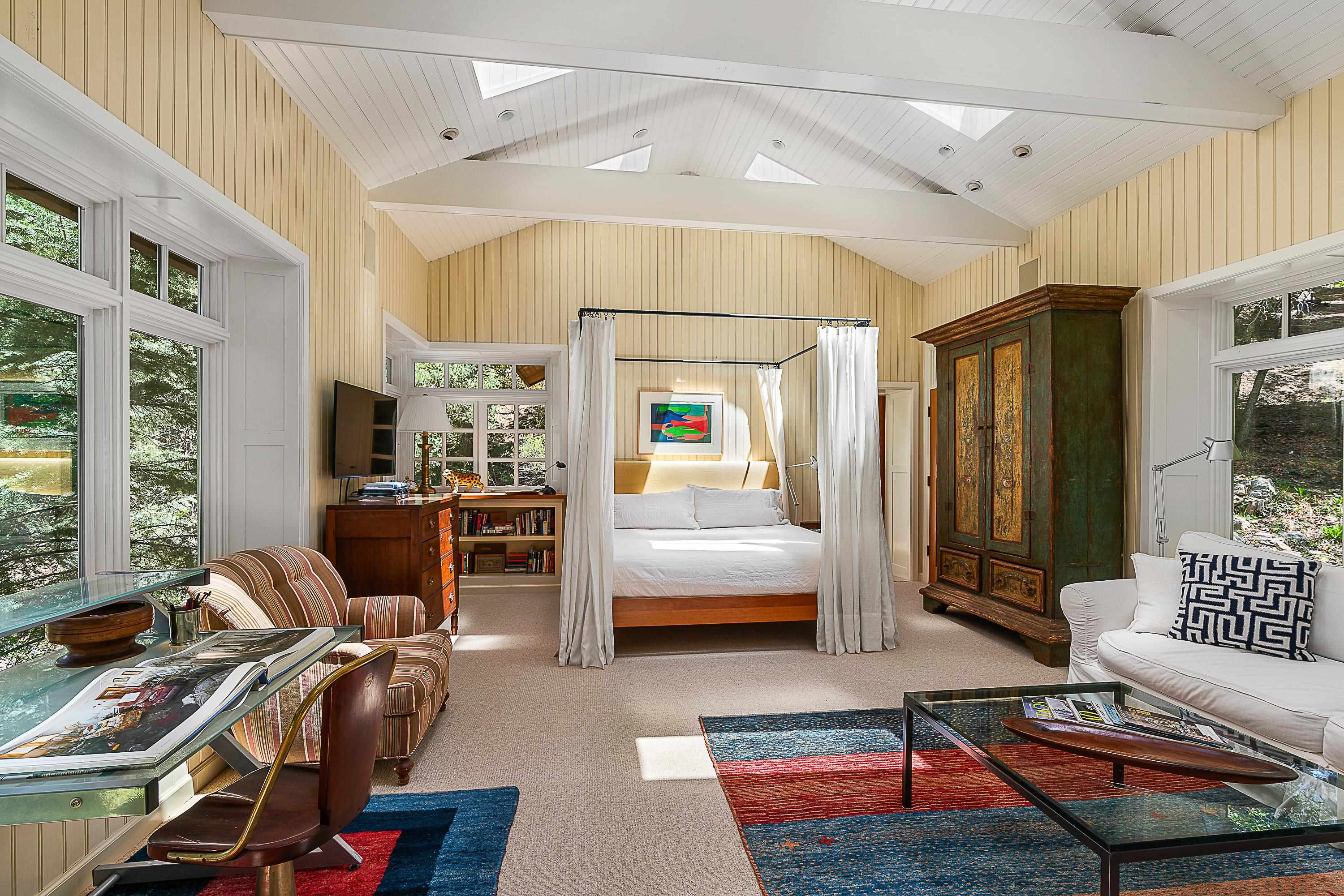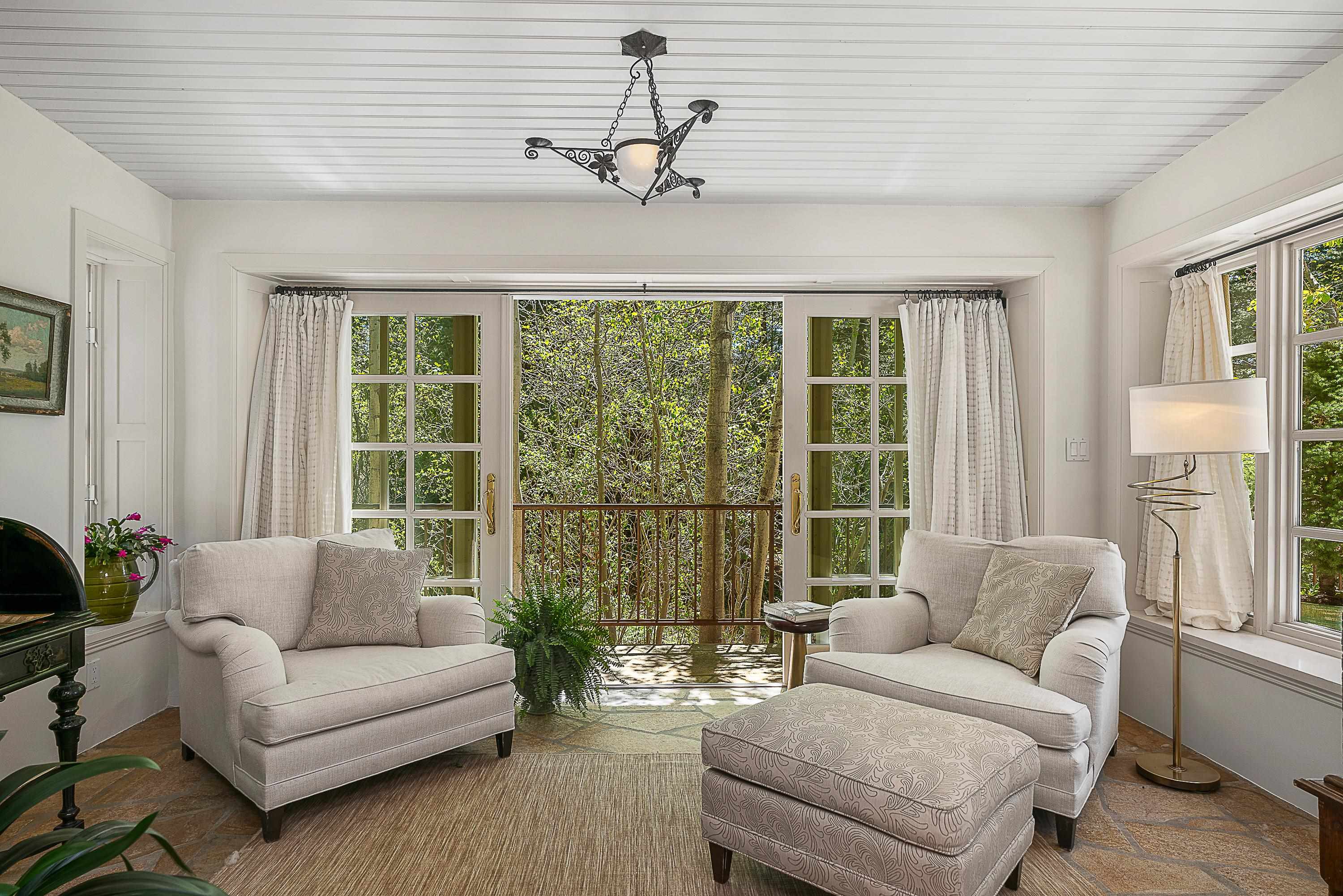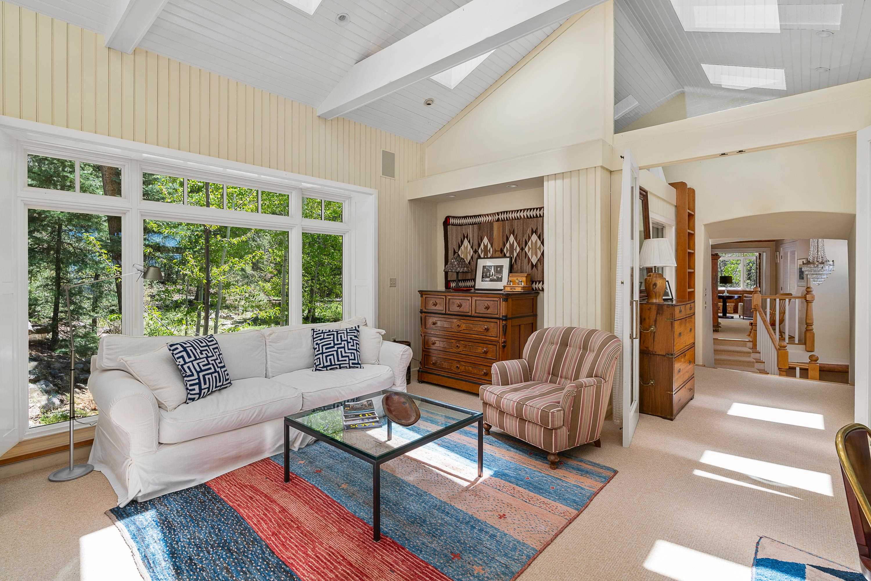 Comfortably tucked beneath the towering El Salto Mountain, sits this special 5.25 acre estate alongside the Arroyo Seco stream. This green oasis is defined by water, tall trees, birdsong and woodland gardens, by clear light, forever views and cool, starry nights. From its origins in the early 1970's, generously expanded over several decades, the home is built in harmony with the land. Each level flows naturally from the last, echoing the cascading waters just outside, with terraces, nooks, and rooms unfolding like the curves of the Creek itself. Both informal and refined, the house feels completely welcoming and comfortable. Gorgeous Idaho quartzite flagstone moves seamlessly from the broad front portal draped with Wisteria into the kitchen. The principal living space has a dreamy kitchen with a fantastic 1954 red enamel Chambers stove, a wonderful creek-side sitting area, a living room with wide plank reclaimed heart pine floors, a dry-stack stone fireplace, a library nook, a dining area, and three sets of French doors leading out onto a wrap-around patio that follows the banks of the winding creek. Salvaged and repurposed cypress shutters from New Orleans became beautiful wainscot paneling and doors. The home is anchored by a spectacular second story glass sunroom, made and installed by Pennsylvania Mennonite and Amish craftsmen from Renaissance Conservatories. The magical room with a warm quartzite floor is bathed in natural light that invites the outdoors in- perfect for morning coffee, quiet reflection, reading, writing, or entertaining under the stars. From here, a short rise of stairs leads to a landing off of which radiate two large, private suites. The western facing suite has a cozy sitting area with a large fireplace and a patio overlooking the stream and endless views to the Rio Grande Gorge and beyond. The corresponding suite is bathed in beautiful natural light from the large windows, vaulted ceilings and skylights. It feels like a cozy nest tucked into the treed canopy surrounding it. The third bedroom suite is can be accessed from the main living level or via a private door from the gardens. A delightful guesthouse with a complete kitchen sits at the base of a grassy lawn. Under the same roof, yet with it's own entrances from the lawn or garage is an additional light-filled room currently used as a home gym/office, and has a half bathroom. Versatile spaces amongst a verdant landscape. The stream brings the music of water to your daily rhythms. In the evening a cool breeze comes down the creek, and with it the gift of sleeping under a light blanket...windows wide open, stream trickling along. Natural springs feed native plants and perennials that bloom spring and summer. Golden Aspens shimmer and quake in the fall. Over 60 varieties of flowering trees, shrubs and perennials make for a true botanical delight. This is northern New Mexico at its most magical. Simply stroll out the door to hike and bike. No bike racks and drives to a trailhead necessary. Contiguous with quiet Taos Pueblo lands. Hiking trails lead to the El Salto waterfall and Carson National Forest. It's an easy 12 mile/20 minute drive to Taos Ski Valley. The location is secluded, yet sneaky-convenient. Meticulously maintained by one Owner for over 50 years, this is the first opportunity for another lucky soul to call this Home. This one-of-a-kind mountain sanctuary blends privacy, luxury and natural beauty in a way that simply can't be replicated. It is a truly special spot- Private Luxury at the Edge of Wild.