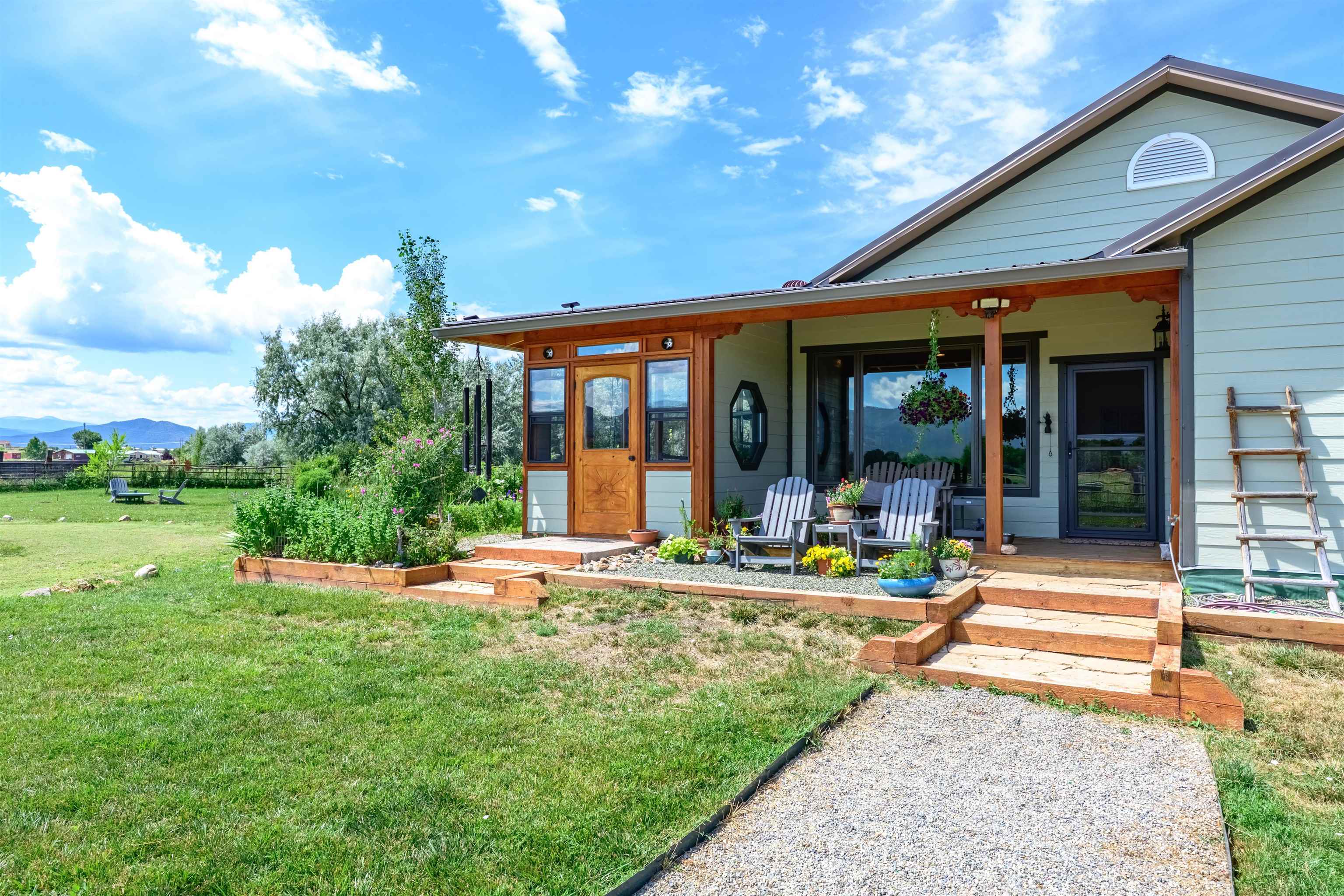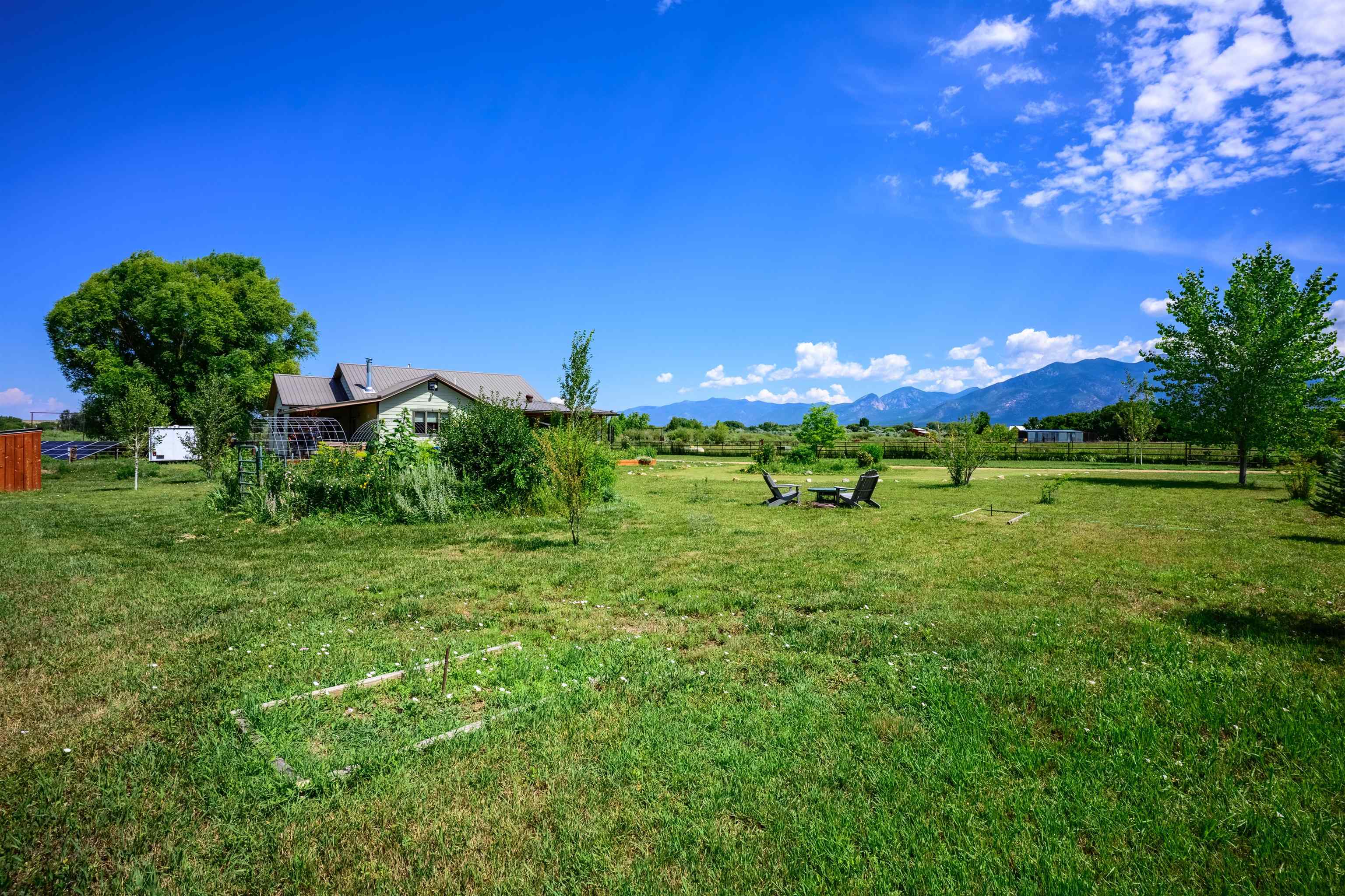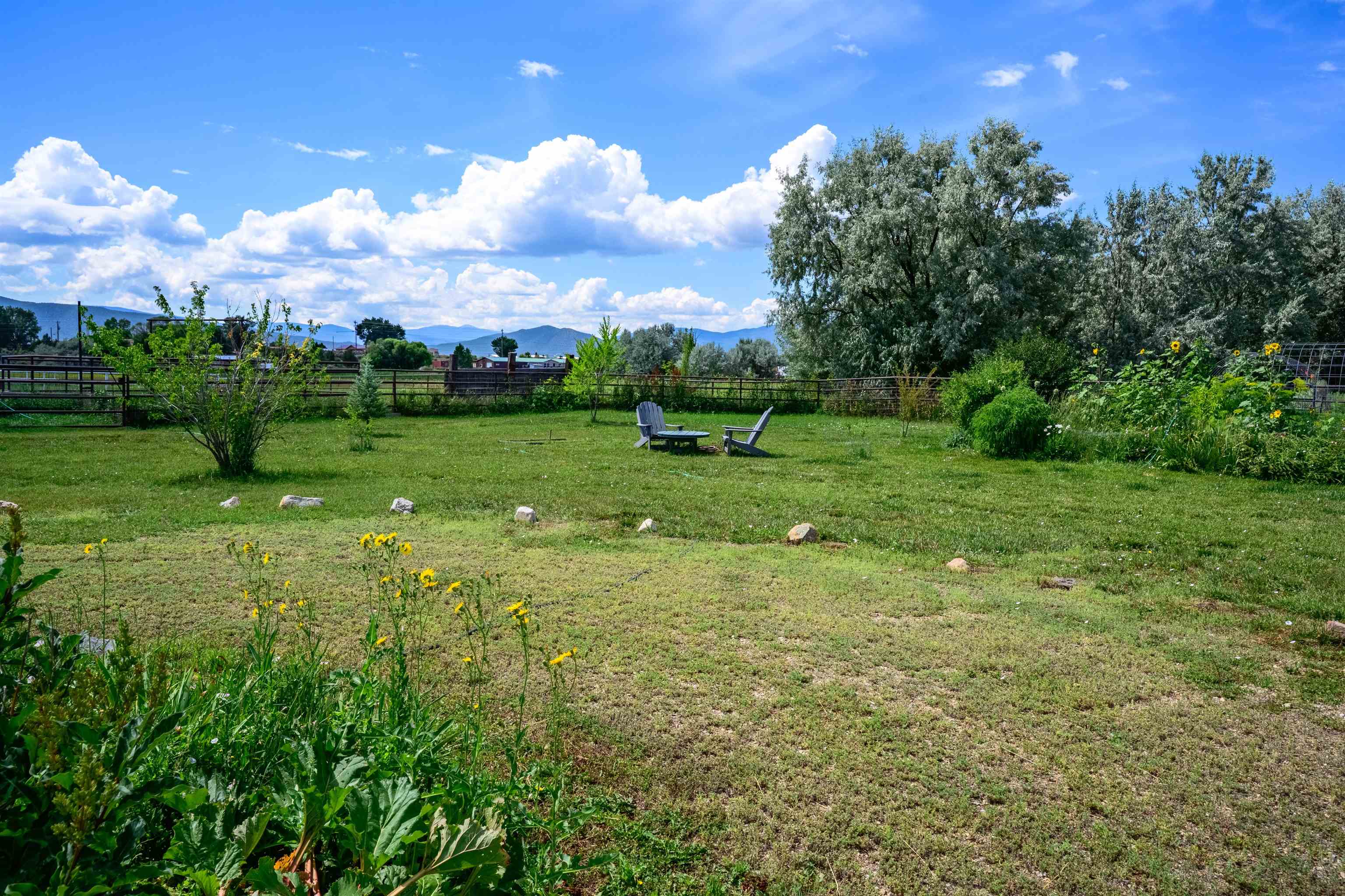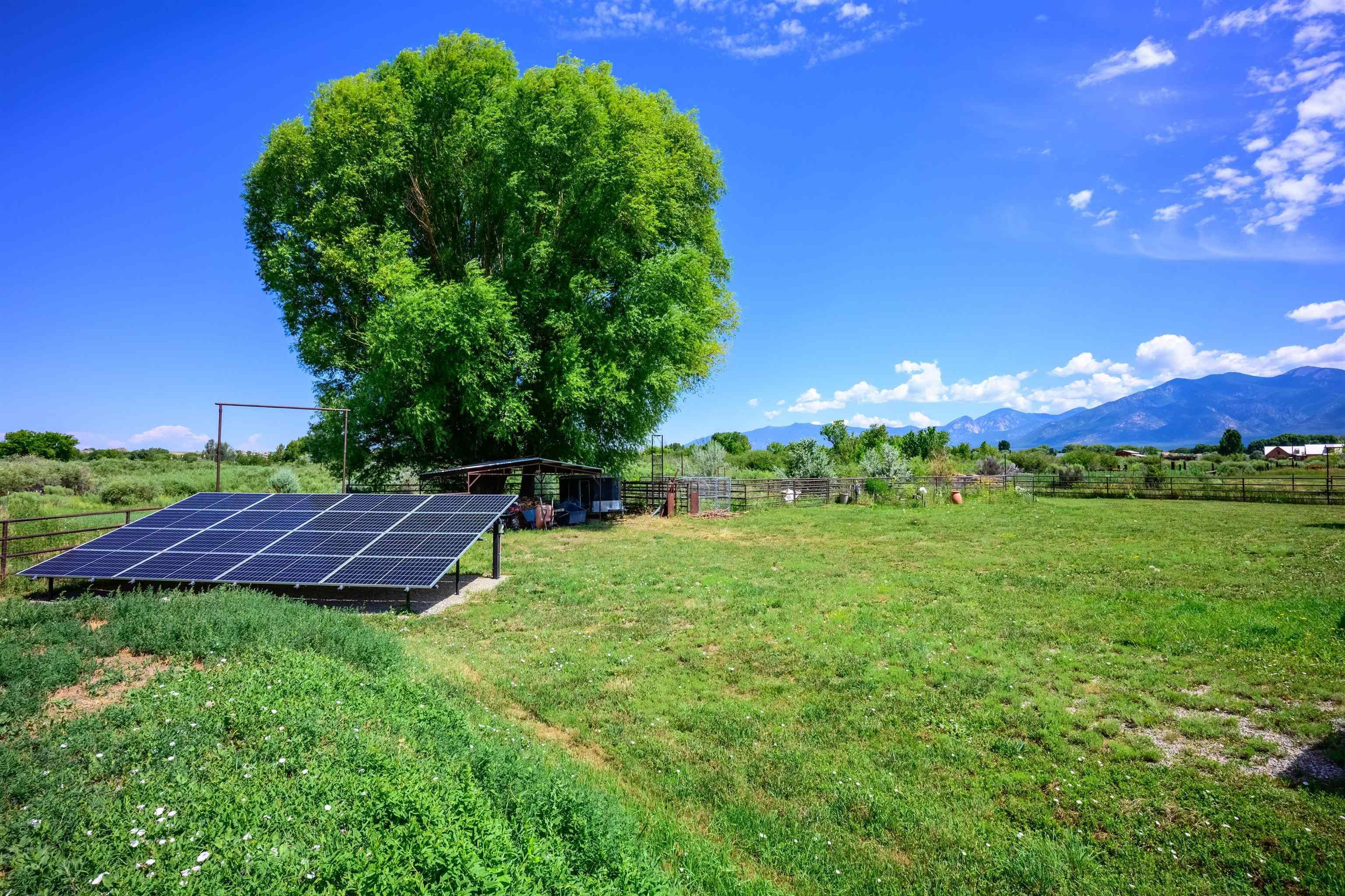 RIVER FRONT PROPERTY! Rare opportunity to own a beautifully maintained, custom-built home on 2.3 acres. Property has direct Rio Fernando river frontage with acequia, 2 irrigated acres of water. Fully fenced and gated, 360 degree of mountain views just 2.2 miles from Taos Plaza. This private and serene property features a 2-bedroom, 2-bathroom residence with an open floor plan and two spacious bonus rooms each with their own separate entrances—ideal for a studio, office, or guest suite. The interior offers Radiant in-floor heating, Pella Thermopane windows, ceiling fans, and natural Southwestern finishes, including marble countertops and Knotty Alder cabinets and doors. The kitchen is both functional and elegant which includes a walk-in pantry and a kitchen island with plenty of space for bar stool seating. The home opens to two covered porches, one of which faces west and includes a hot tub with stunning mountain views. The property boasts mature trees including Aspen, Blue Spruce, Asian Willow, native grasses, and fruit trees, as well as berry bushes, two established organic gardens and a hoop house. A 8'x25' attached green house/sunroom offer year-round growing potential. Sustainability is further enhanced with a newly installed 6.5 KW solar system. Horses are welcome. Additional amenities include an oversized heated two-car garage. Second bonus room currently used as a work shop. Also a wood shed and a metal utility shed. There is an RV gravel pad with utility hookups. A private ¼-mile driveway leads through an open valley, offering exceptional privacy and a unique lifestyle just minutes from the heart of Taos. The property is zoned R-3, V-N