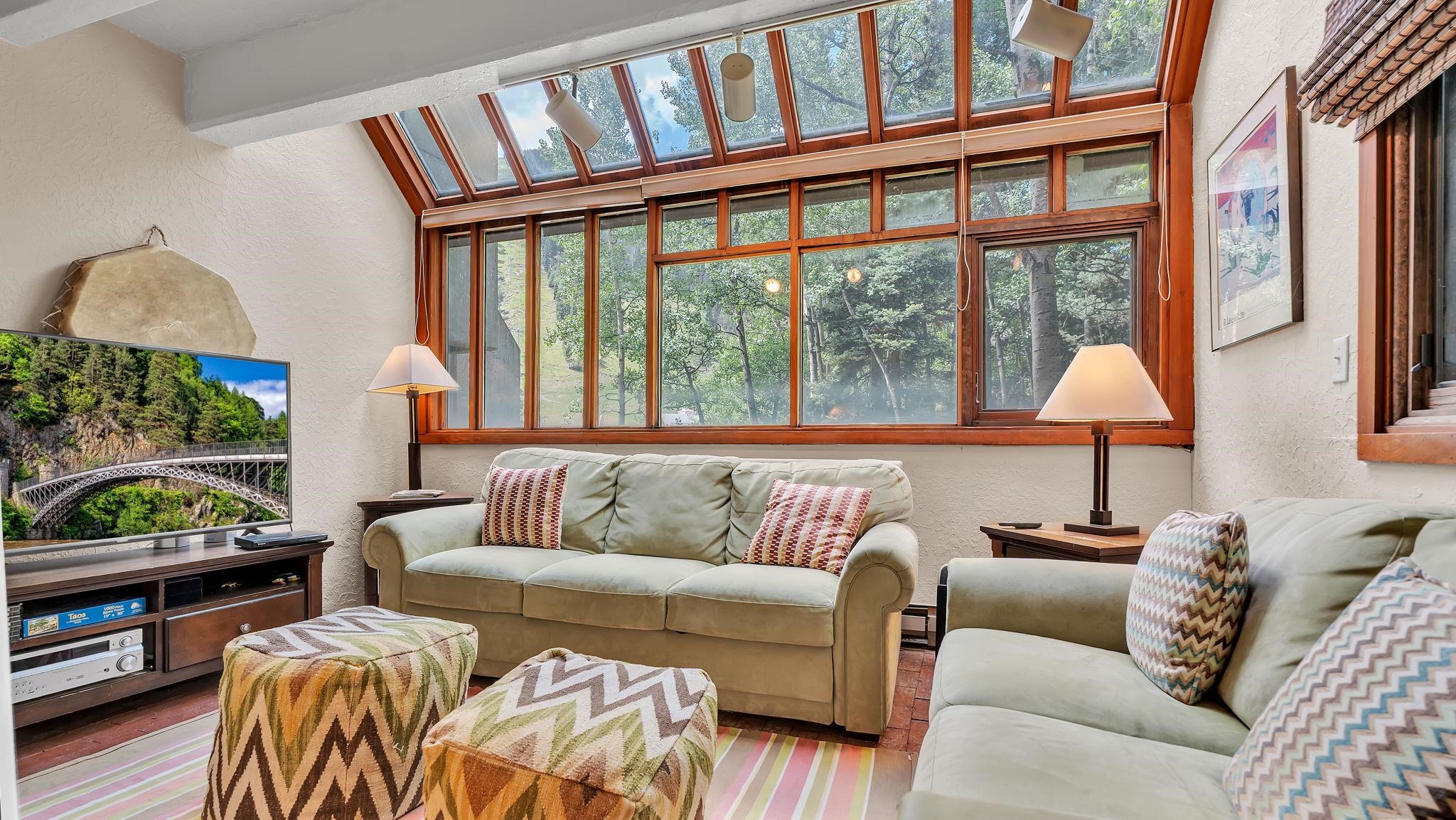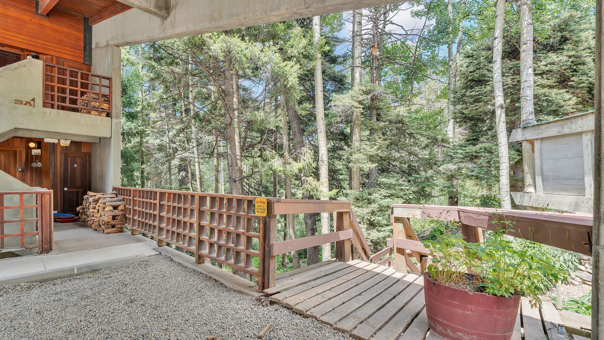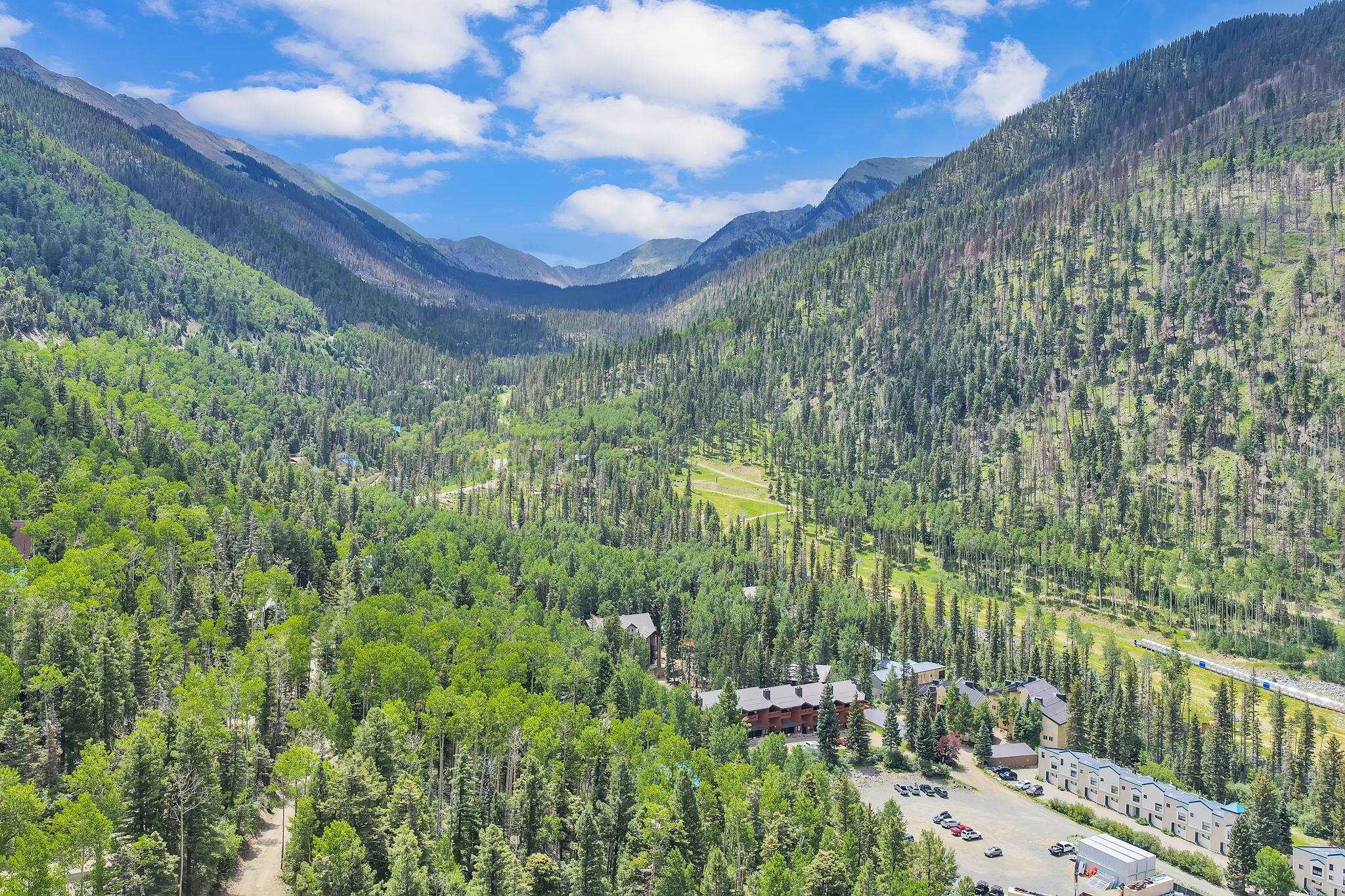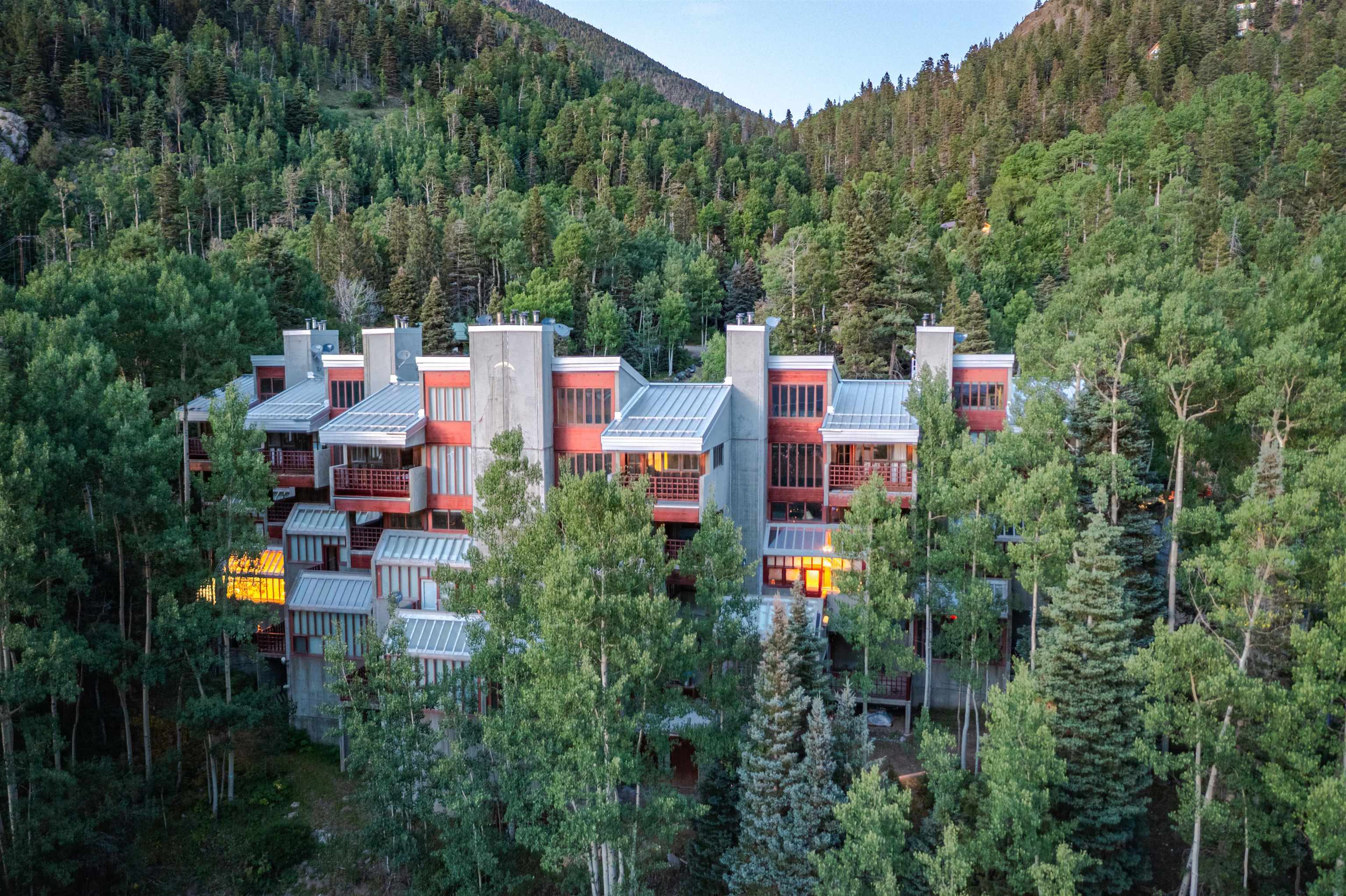 Rare Opportunity to Own at the Predock Near the Slopes of Taos Ski Valley ~ Located at the very beginning of Twining Road, a short walk from Lift 1 at world renowned TSV, you will discover this stunning 3-bedroom, 2-bath condo at the coveted Predock Condo Complex. The structure itself is masterpiece of modern architecture by the acclaimed Antoine Predock, a rare fusion of sturdy precast concrete design and natural beauty. Nestled on the sunny side of Taos Ski Valley, the condo offers breathtaking views of the village and Fraser Creek from expansive western-facing windows that flood the living room, solarium, and second added bedroom with New Mexico sunshine. High ceilings and a cozy living area create an inviting atmosphere, complemented by an updated kitchen, dining room, plenty of storage, and a convenient in-unit laundry area. Step out onto the private deck from the third bedroom to enjoy picturesque views of Al's Run and the "Front Side." Beyond its appeal as a luxurious mountain retreat, this property also has exceptional investment potential with complete rental management freedom, at a prime location on the Mountain. As an owner, you'll also benefit from an HOA-covered ski locker in the village, making it easy to hit the slopes whenever you please. Cozy up around the Southwestern adobe inspired wood stove with a traditional bancito after a long day on the slopes, or head out to experience world-class hiking at Williams Lake, elk & deer hunting on Gold Hill, fly fishing in the Rio Hondo, mountain biking and rock climbing on the "Back Side," near the Bavarian Restaurant, or hit the Apres scene a short trek from your front door. Don't miss this incredible opportunity to own a piece of Taos Ski Valley, at the highly sought after Predock Condo complex at a steal of a deal!