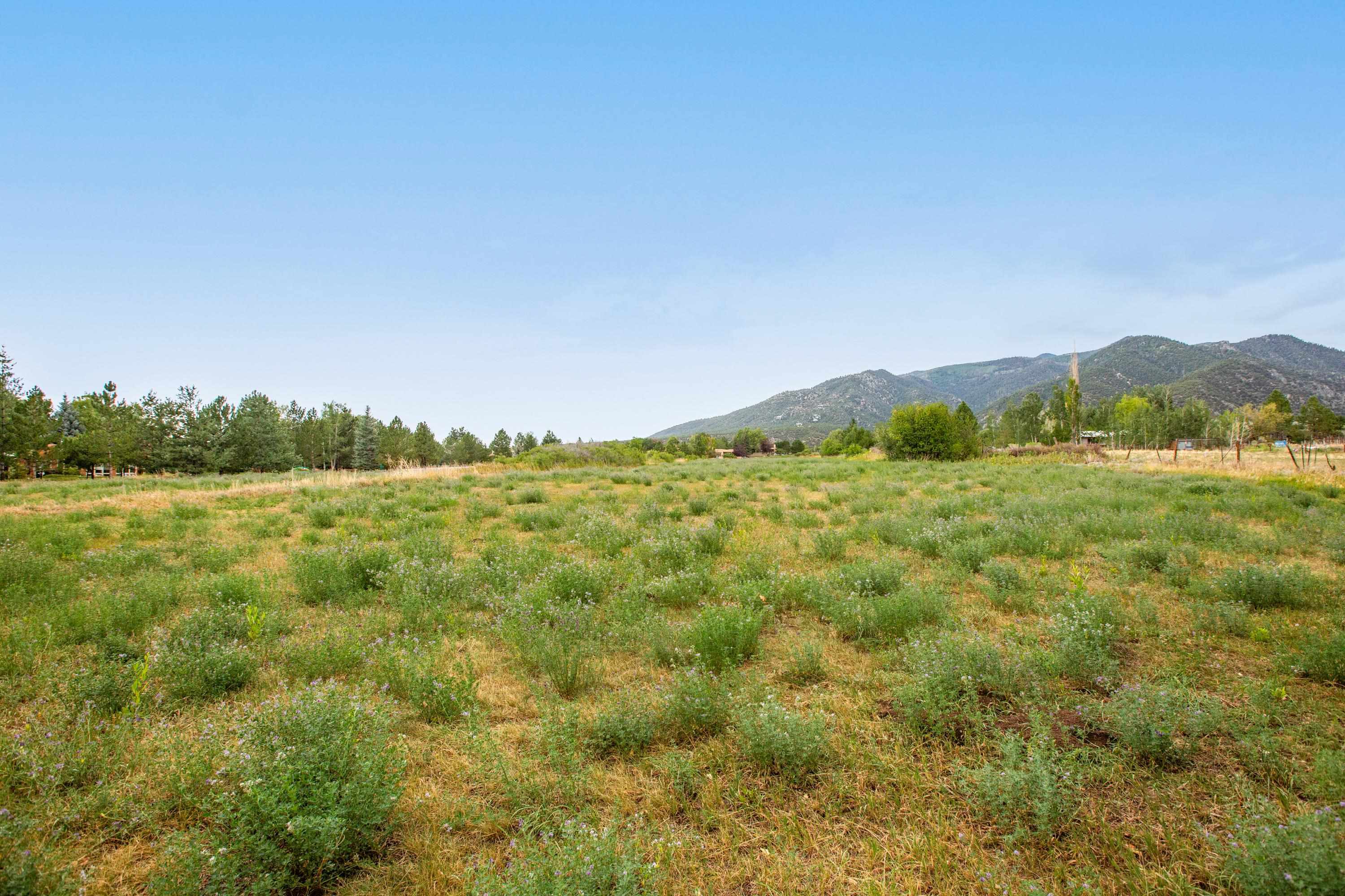Nestled at the base of the Sangre de Cristo Mountains, this rare 3.068-acre property offers the perfect balance of privacy, natural beauty, and convenience. Fed year-round by the historic Acequia Madre and El Salto Creek, the land is richly irrigated, creating a sanctuary of towering cottonwoods, vibrant vegetation, and fertile soil. A private road leads you into this peaceful retreat, where expansive mountain views surround you in every direction. The property feels worlds away, yet is ideally located—just minutes from Taos Ski Valley and a short drive down the road to the charm of Arroyo Seco. Whether you envision a serene homestead, a mountain getaway, or a retreat immersed in nature, this property provides the canvas. With its combination of water, lush landscape, and unbeatable location on the north side of Taos, this is one of the most desirable offerings in the area.