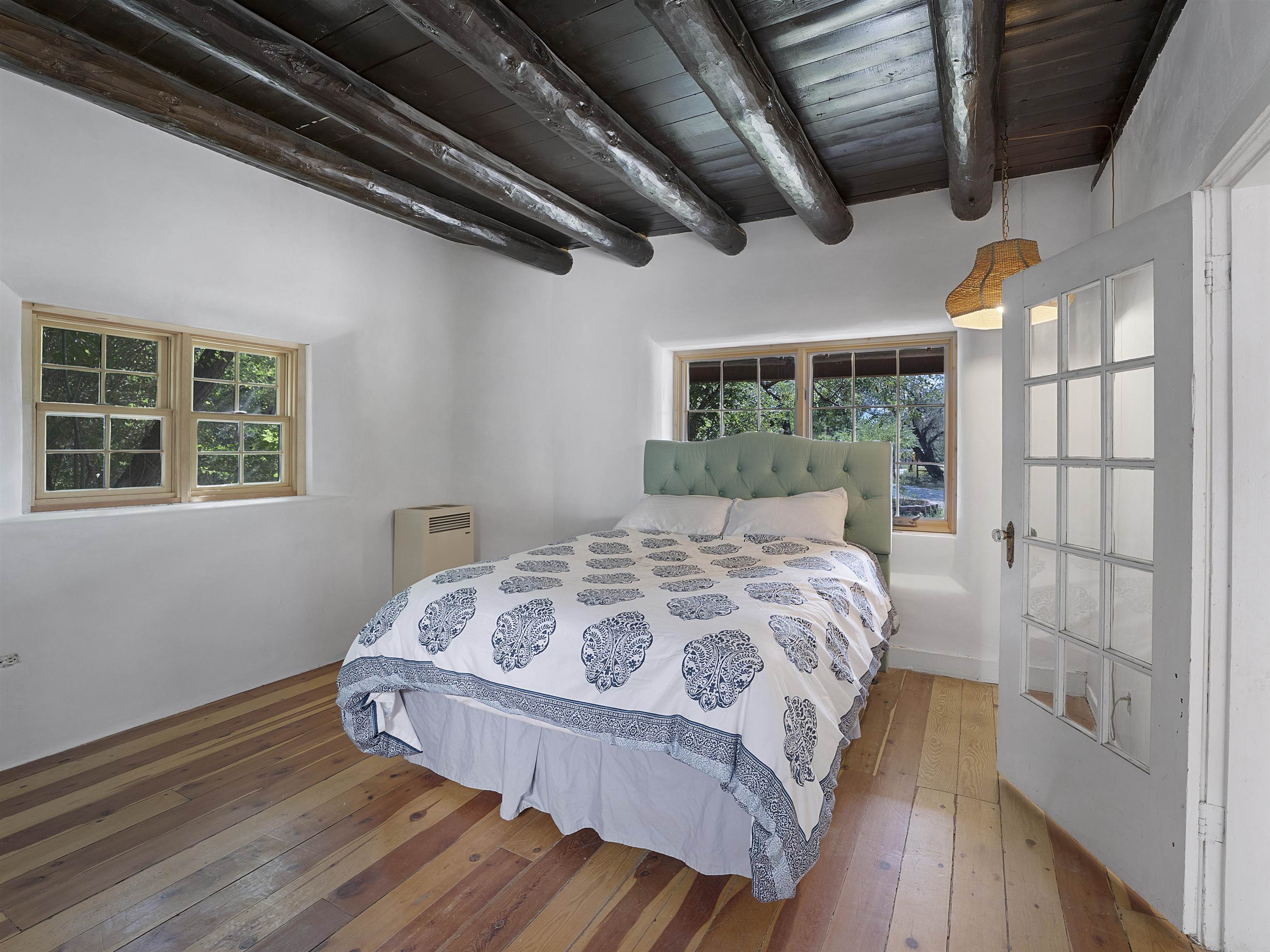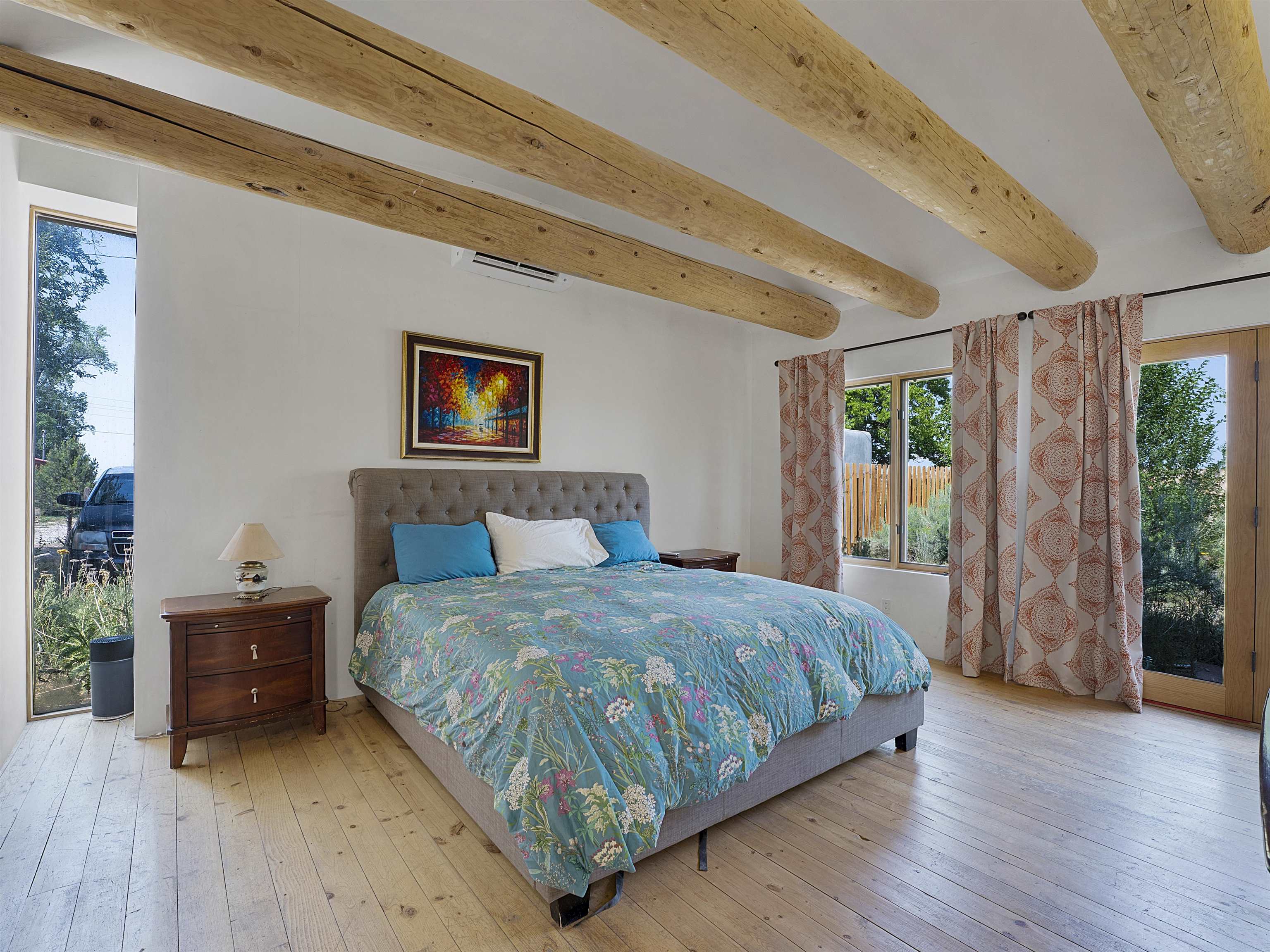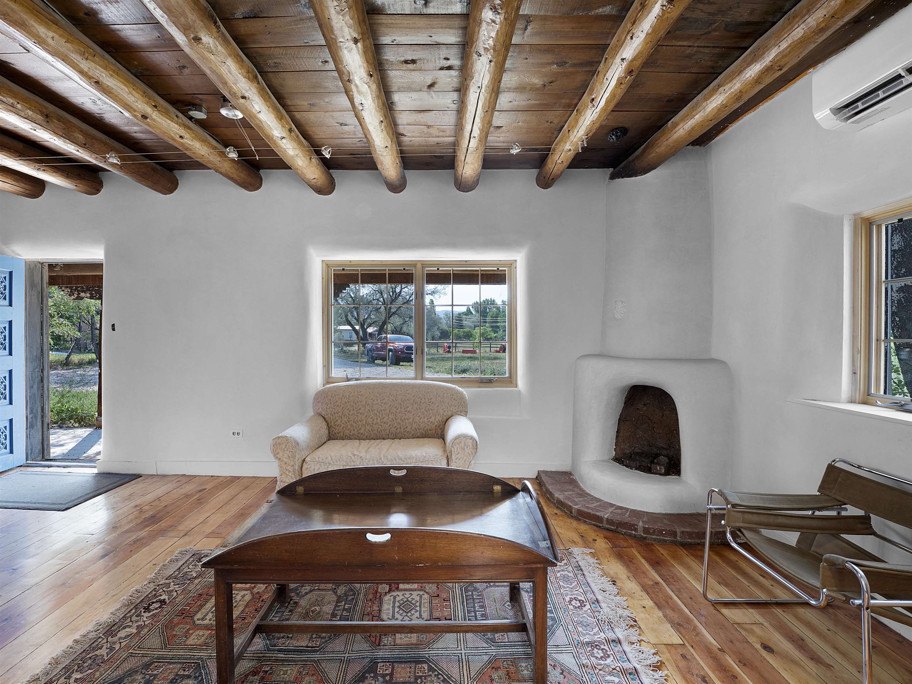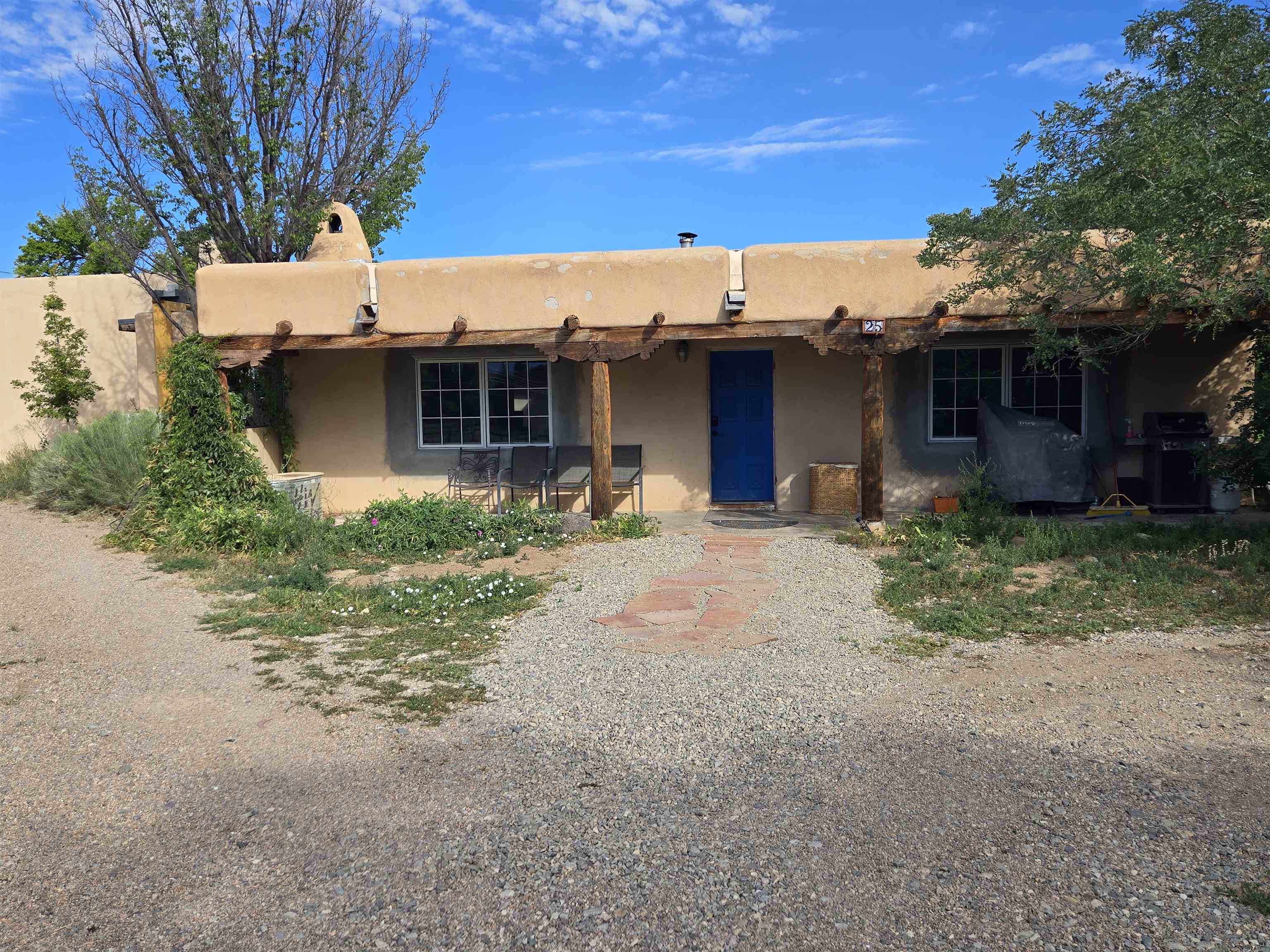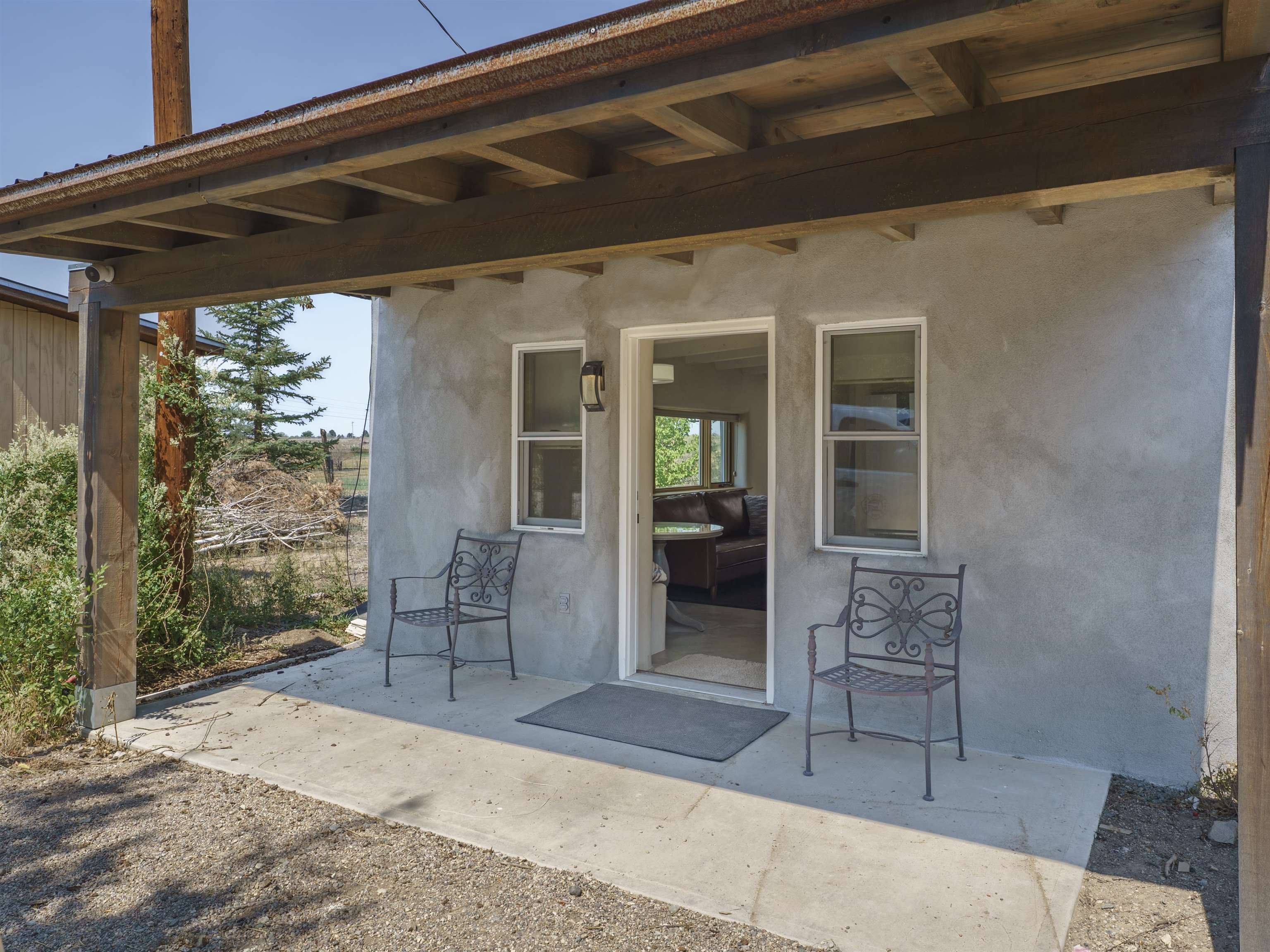 Ideally located between downtown Taos and Taos Ski Valley, this one-acre adobe & frame property in El Prado offers the perfect balance of privacy and convenience, with easy access in both directions. The main house ( 2750 sq.ft. aprox) features classic Northern New Mexico charm — including viga ceilings, several kiva fireplaces, and a spacious primary suite with high ceilings, a soaking tub, and walk-in shower. Recent updates include new Sierra Pacific windows, mini splits with heat pump (plus two additional zones ready to install), upgraded electrical service from the road, and a Tesla charger. The beautifully renovated detached casita ( 500 sq.ft. aprox)offers radiant heat, instant hot water, a full kitchen, washer/dryer, and its own entrance — perfect for guests, rental income, or multigenerational living. The lush yard is irrigated by water rights from traditional acequias, part of a centuries-old Spanish water-sharing system, and includes several high-producing apple trees, plum and apricot trees, a thriving vegetable garden with mature asparagus, and newly planted fruit trees. While the home could benefit from a kitchen remodel, new stucco, and portal repair, the major investments have been made — leaving plenty of potential for the next owner to make it their own.