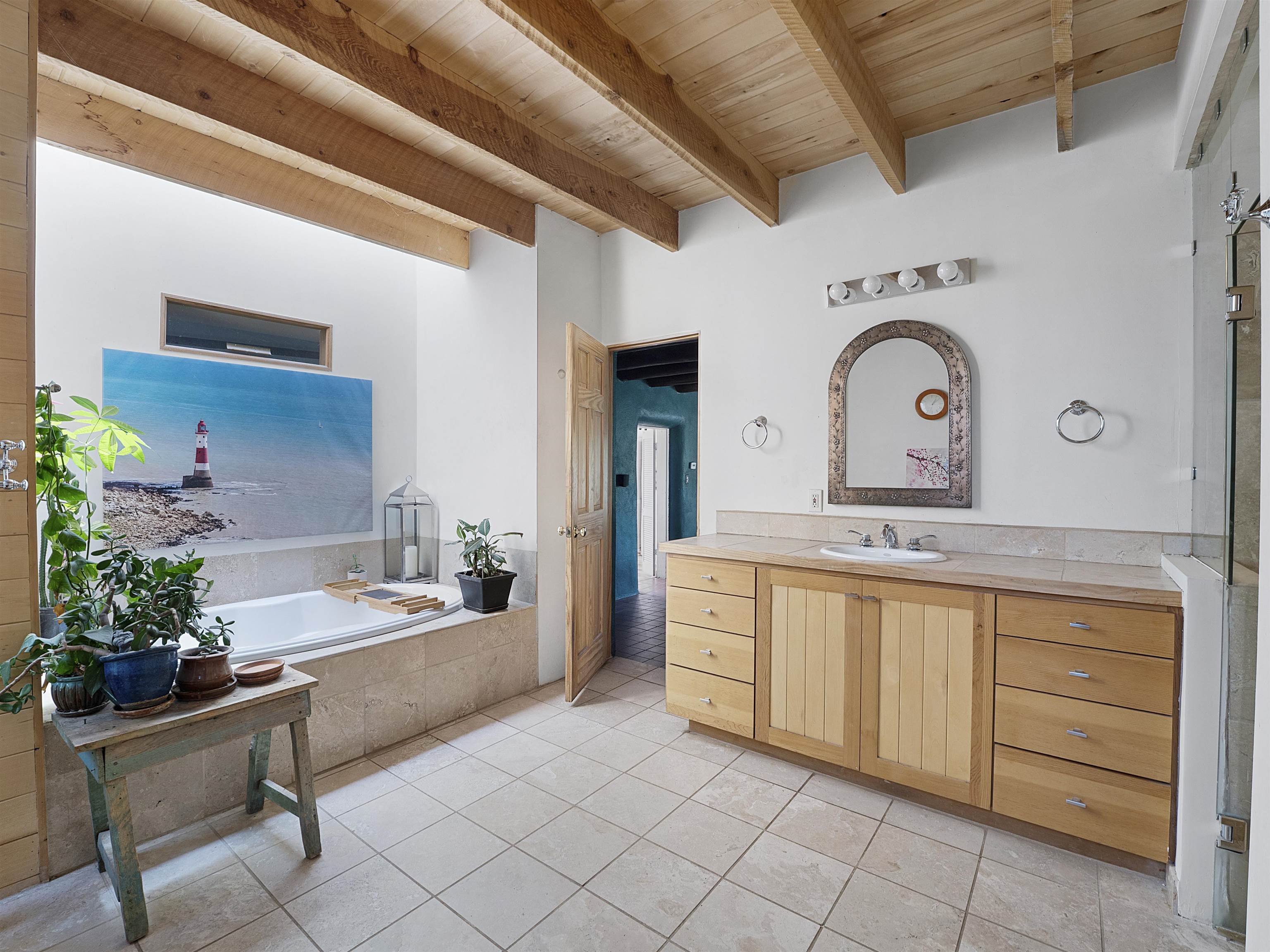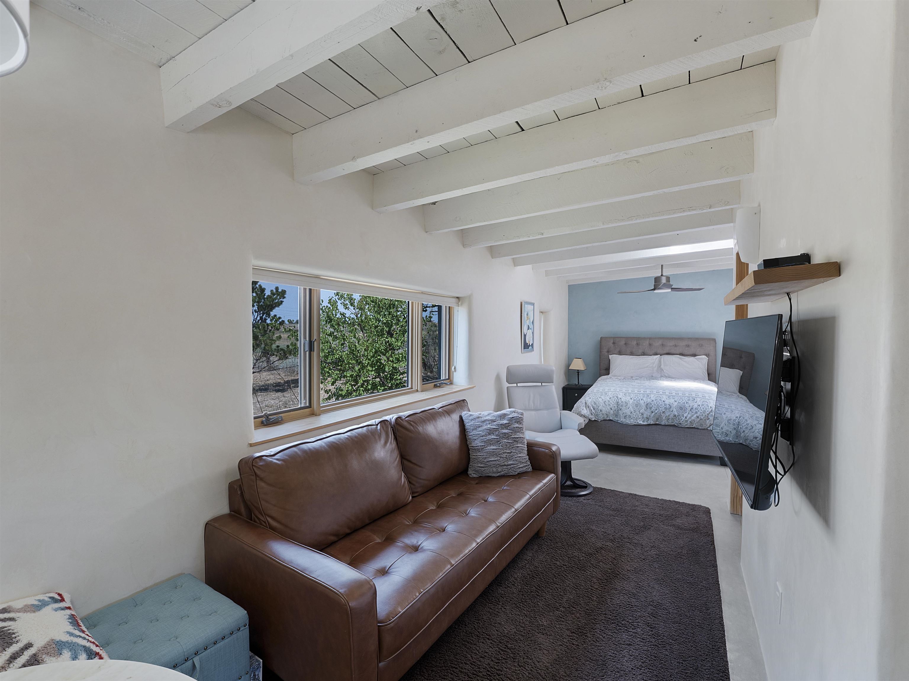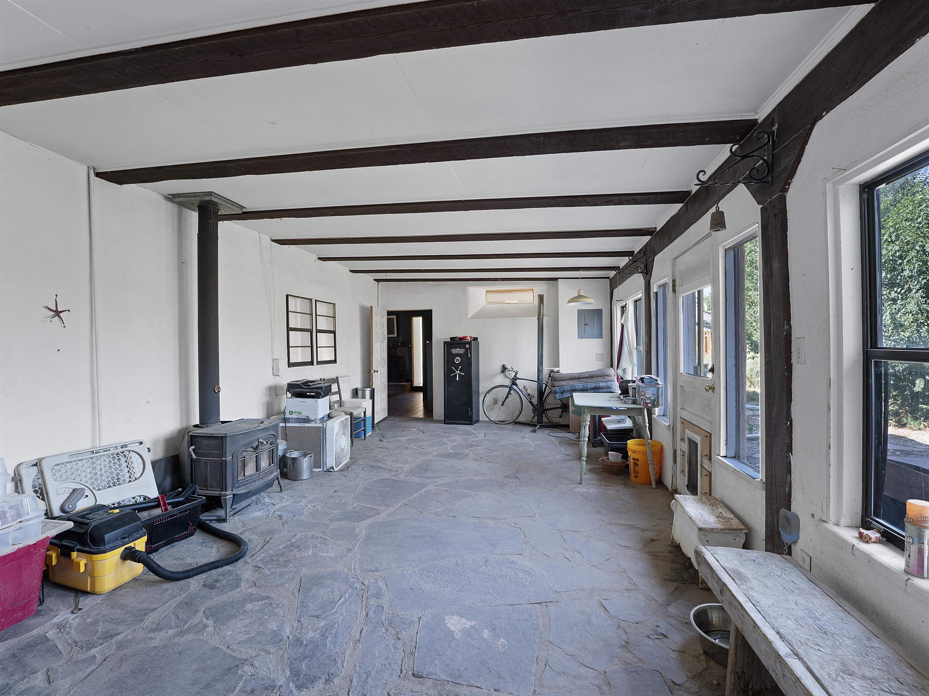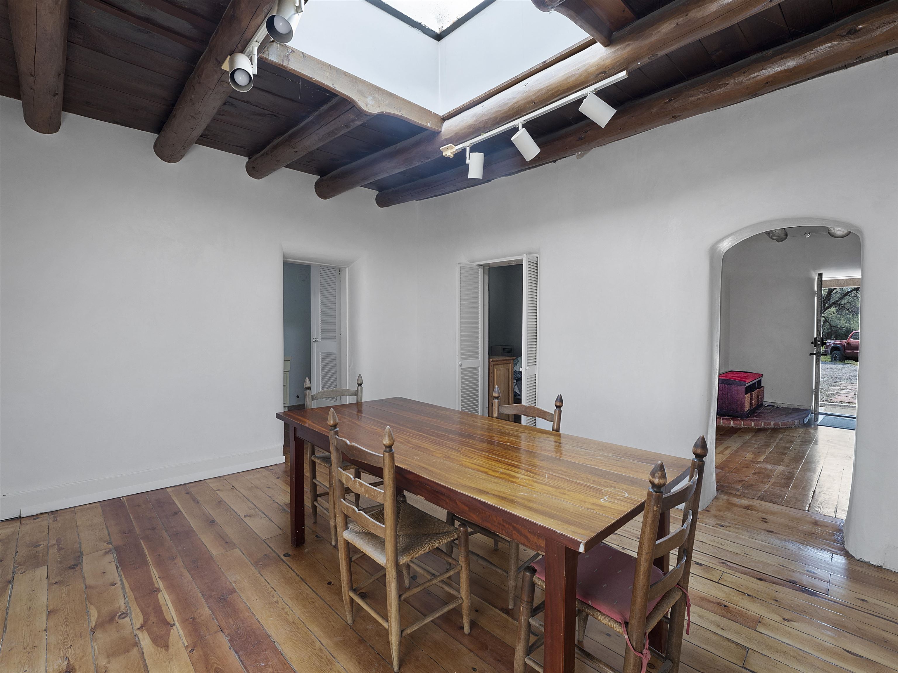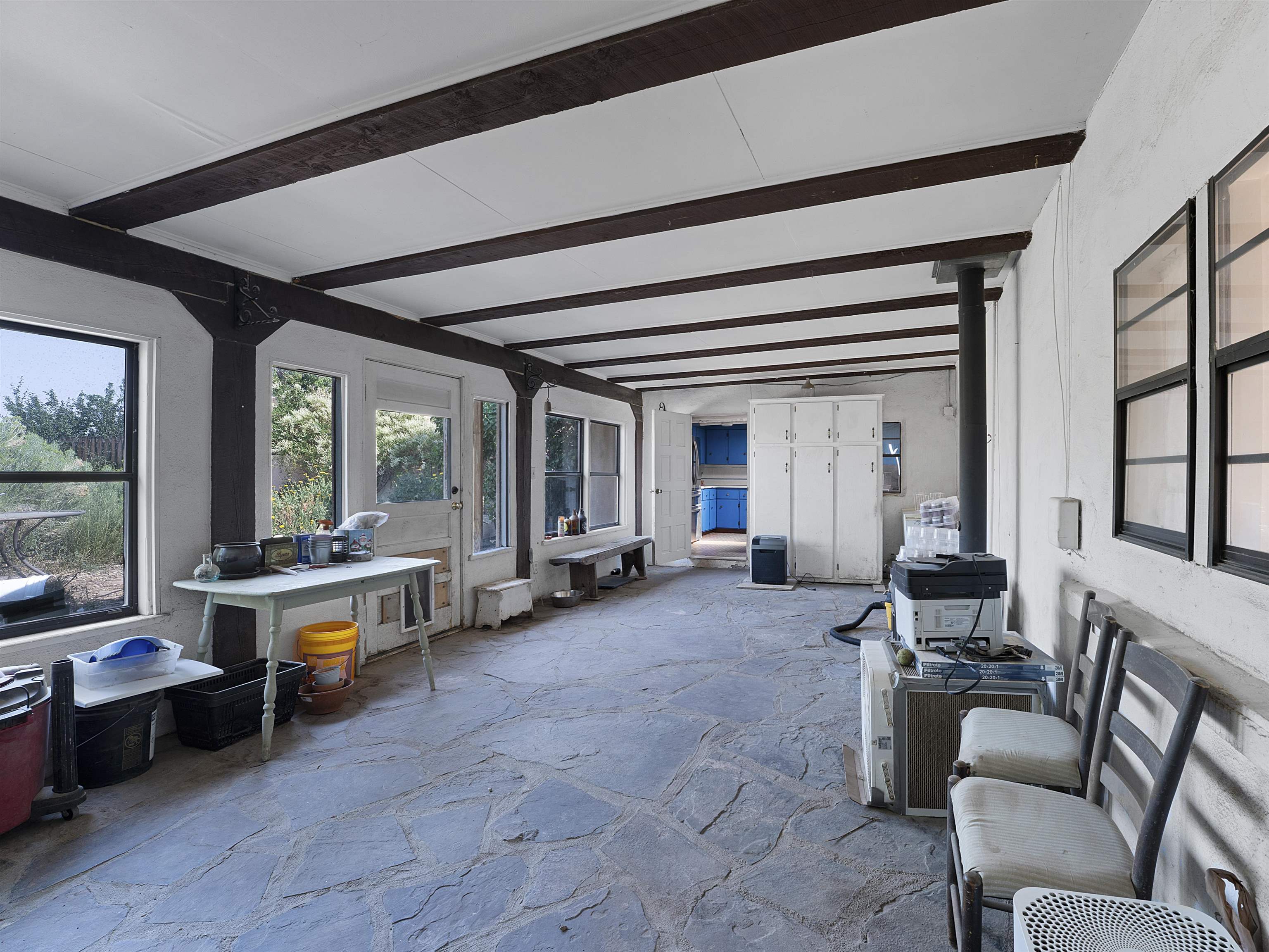 Ideally located between downtown Taos and Taos Ski Valley, this one-acre adobe & frame property in El Prado offers the perfect balance of privacy and convenience, with easy access in both directions. The main house ( 2750 sq.ft. aprox) features classic Northern New Mexico charm — including viga ceilings, several kiva fireplaces, and a spacious primary suite with high ceilings, a soaking tub, and walk-in shower. Recent updates include new Sierra Pacific windows, mini splits with heat pump (plus two additional zones ready to install), upgraded electrical service from the road, and a Tesla charger. The beautifully renovated detached casita ( 500 sq.ft. aprox)offers radiant heat, instant hot water, a full kitchen, washer/dryer, and its own entrance — perfect for guests, rental income, or multigenerational living. The lush yard is irrigated by water rights from traditional acequias, part of a centuries-old Spanish water-sharing system, and includes several high-producing apple trees, plum and apricot trees, a thriving vegetable garden with mature asparagus, and newly planted fruit trees. While the home could benefit from a kitchen remodel, new stucco, and portal repair, the major investments have been made — leaving plenty of potential for the next owner to make it their own.