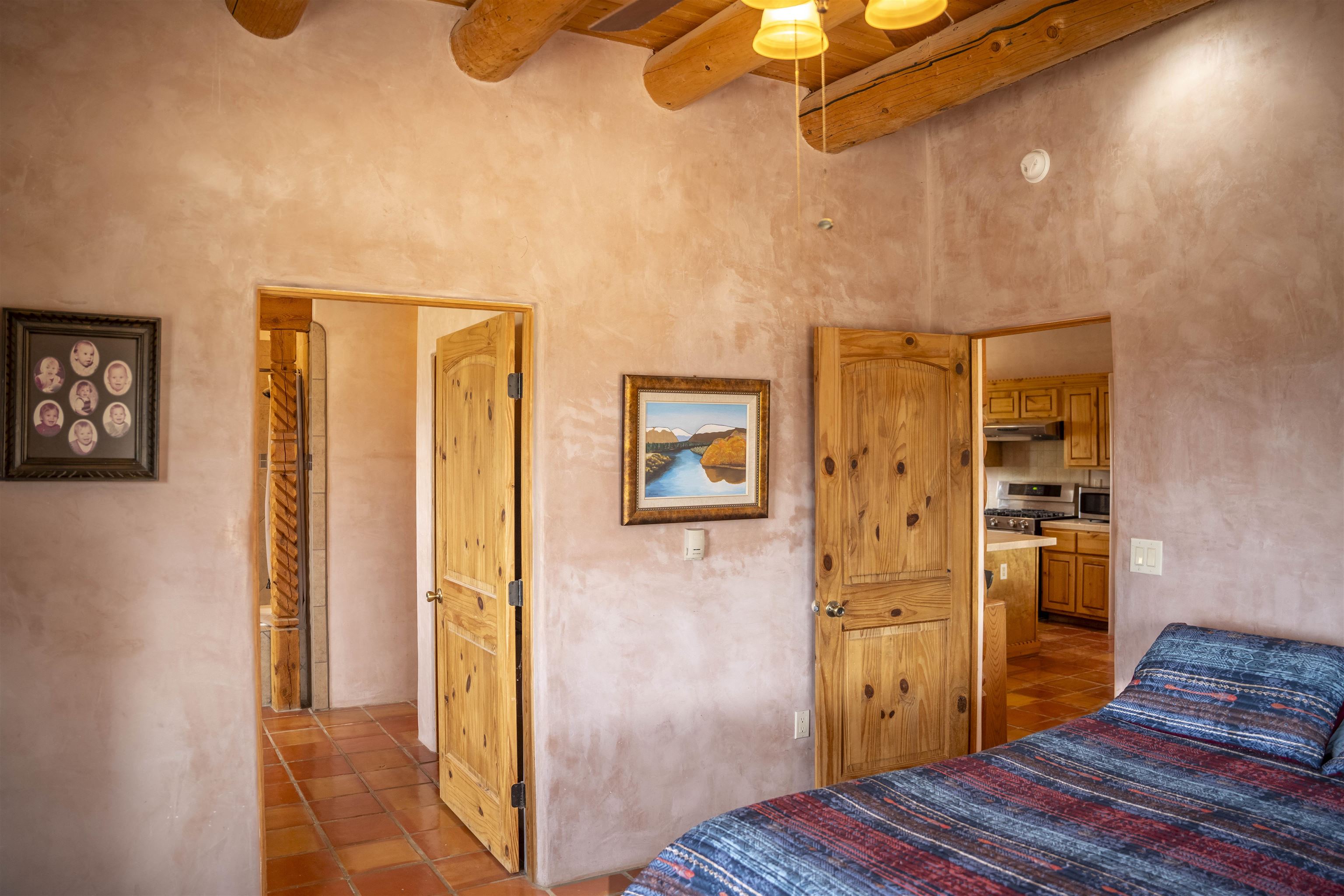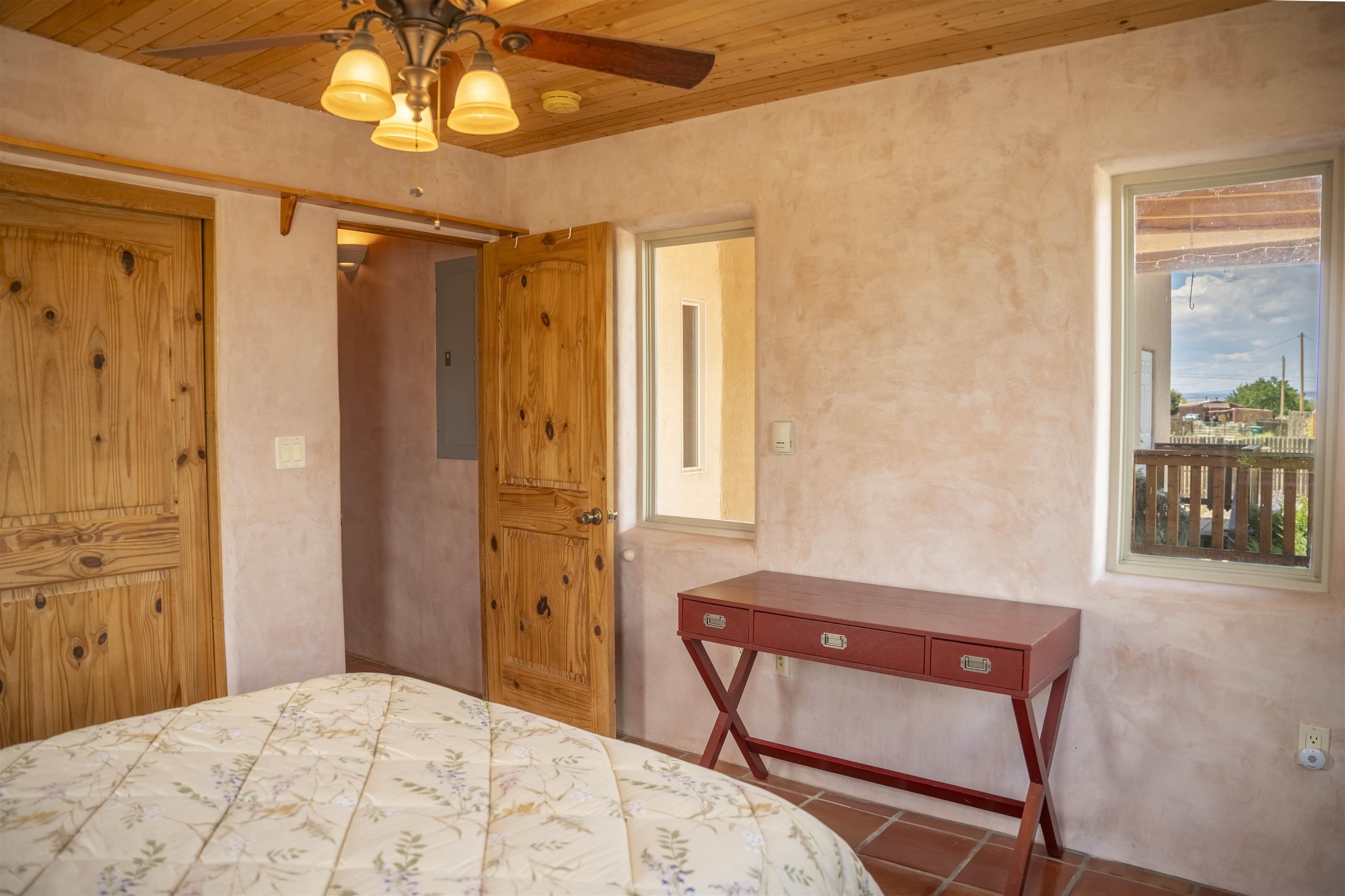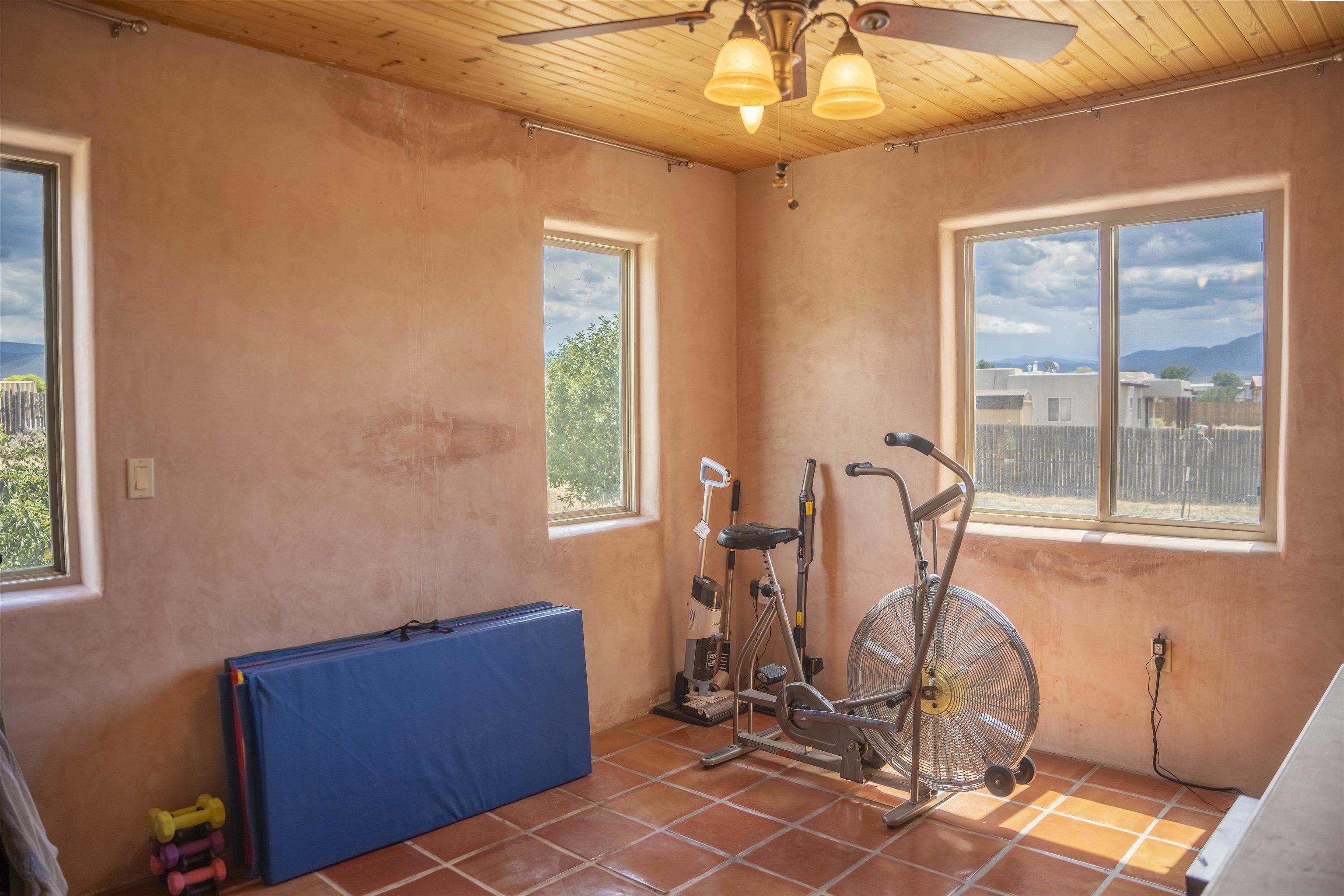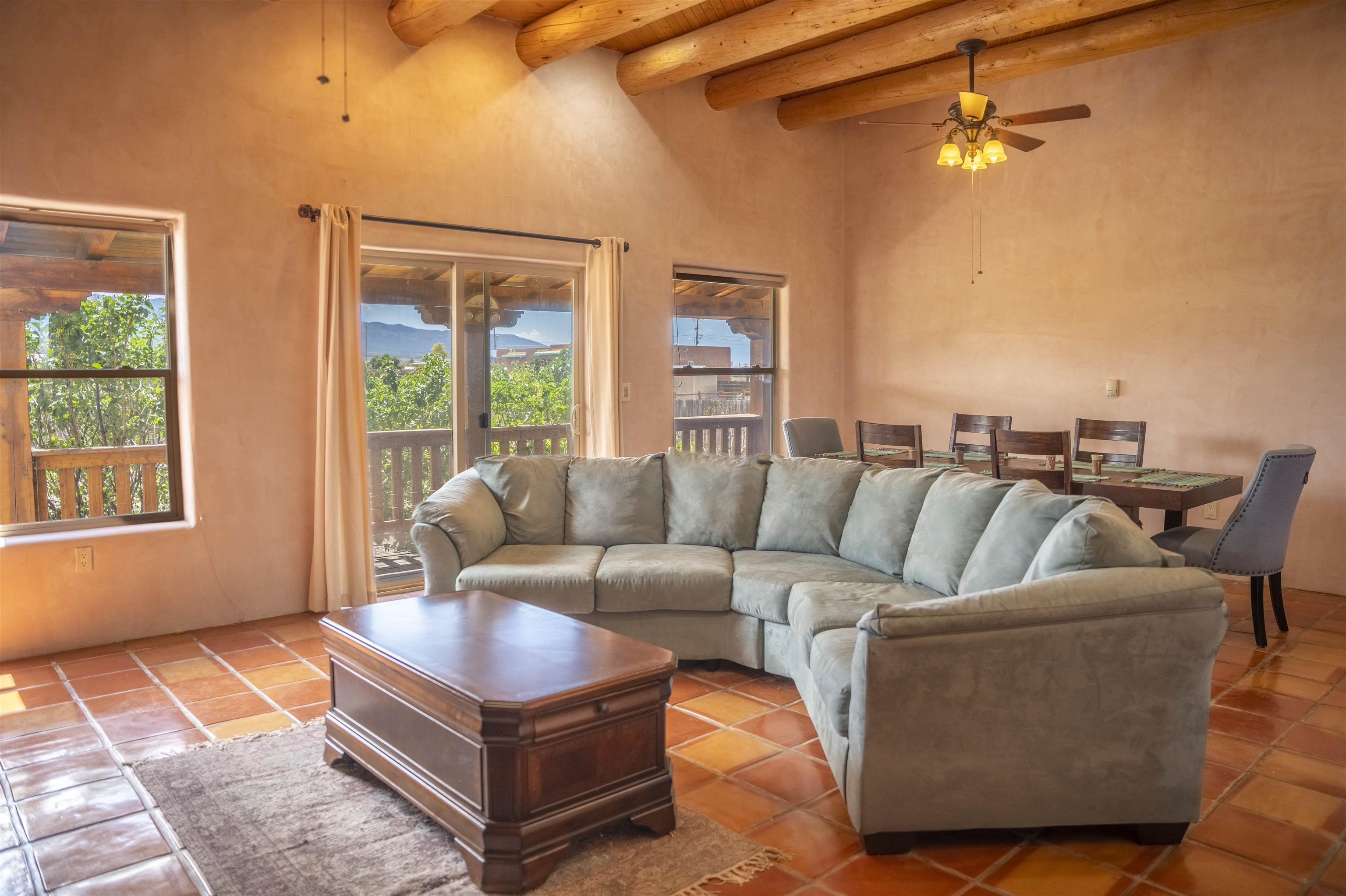 Whether you’re looking for a peaceful family haven, a work-from-home escape, or a Southwest-inspired retreat, this property delivers space, privacy, and timeless style just minutes from the heart of Taos. Pueblo Style home tucked away in a cul-de-sac just 15 minutes south of Taos Plaza. A circular drive and landscaping, this fully fenced property is thoughtfully designed with a separate dog run, raised garden beds, vibrant perennials, and fruit trees—cherry, apricot, plum, pear, and peach—perfect for green thumbs and nature lovers alike. Mature lilacs line the back portal, offering beauty and privacy year-round. Built in 2007, this 1,650 square foot 3 bedroom, 2 full bath home highlights the artistry of the Southwest: soaring 12' viga ceilings with tongue-and-groove finishes, Saltillo tile floors, hand-troweled diamond plaster walls, and carved spiral columns with corbels and rich wooden beams that exude warmth and character. The bright, open-concept great room is made for gathering, with a porcelain wood stove adding cozy ambiance. The spacious cook’s kitchen features abundant storage, a generous prep island with bar seating, stainless steel appliances. Step outside into the expansive covered portal, where you will discover a private oasis surrounded by breathtaking mountain vistas. Enjoy the tranquility of the landscape and views as you sip your morning coffee. The primary bedroom retreat is a true haven, offering a peaceful sanctuary to unwind and recharge. The ensuite bathroom provides both functionality and style. Two additional bedrooms provide ample space for family members, guests, or can be transformed into a home office or hobby room to suit your needs. The second bathroom, tastefully designed, offers convenience and comfort for all occupants. The allure of this property extends beyond the interior. Additional Highlights: In-floor radiant heating passive solar design for efficient year-round comfort, new water heater (2024) and roof recoating (2023). Well share with water softener system. Utility room with washer and dryer. High-speed CenturyLink internet. Separate mechanical room. No restrictive covenants—offering flexibility for your creative vision. Call and schedule a showing today!
