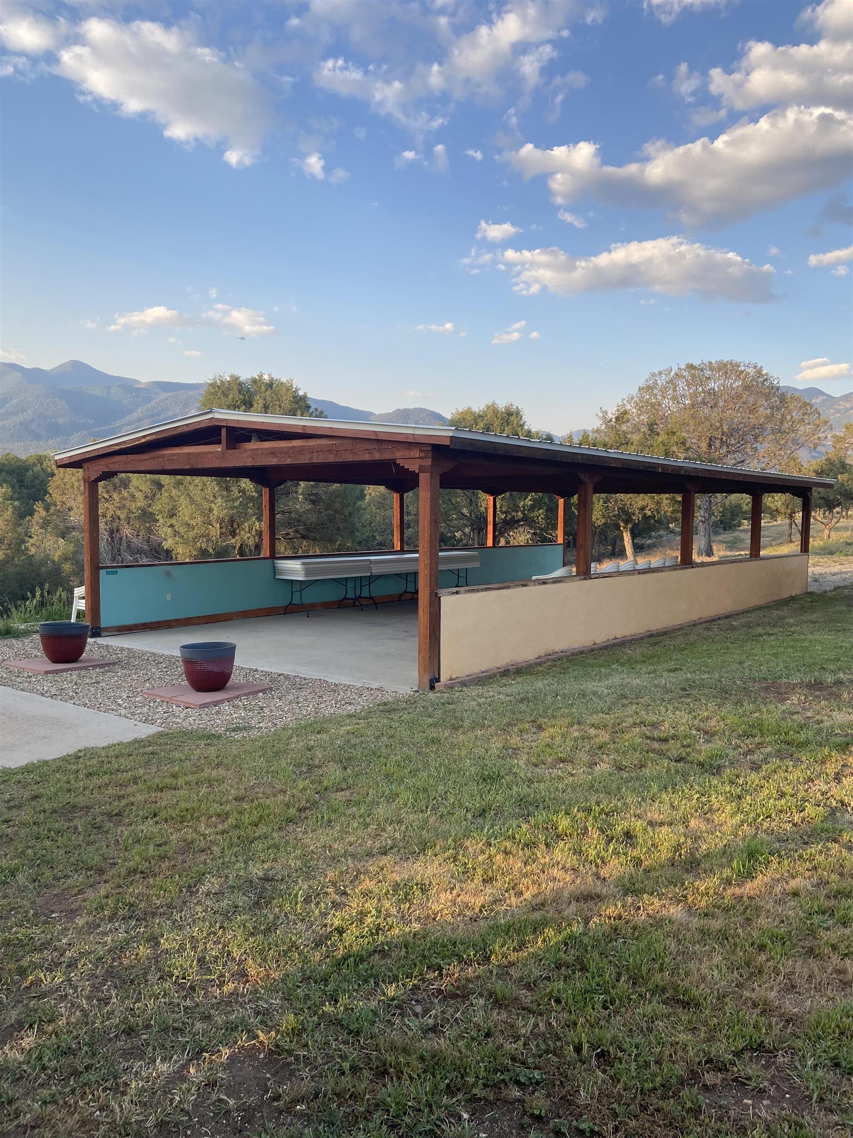Magic Exists at Los Pino’s Park in Northern New Mexico ~ If you're from Northern New Mexico, you likely know ALL about this truly one-of-a-kind property. If you don't know about the magic of Los Pino's, you will when you lay first eyes or first step foot on the Land. Nestled in the shadow of Taos Mountains in Northern New Mexico near Taos Ski Valley, minutes from iconic Downtown Taos, near the Rio Grande river, and close to Taos Ski Valley, you will discover this lush and primarily flat 4.33 acre parcel with a Water Well and Acequia Surface Water Rights with an impeccable outdoor event space infrastructure. Comes with it, an astounding reputation, and plenty of potential. Los Pino’s Park is special, and for decades has served as a lively, and vibrant event space, in Nature, for guests to celebrate all of life's important moments under bright stars and well lit gazebos, around the custom bar, that sit atop solid concrete pads all powered by buried electric and water lines surrounded by five (5) hydrants. All of this may be left as is while continuing to host Special Events, such as, weddings, family reunions, anniversaries, graduations, birthdays, and so on... Perhaps you take it up a notch to entertain clients and host corporate functions with plenty of space for parking, or building multiple units for retreats. Better yet, you make this your own private sanctuary in the NM High desert, design your dream home to incorporate the already developed infrastructure in place, with a giant yard for pet’s to roam freely, and the children to play on nearly four and a half acres. It doesn't get much better than this, don't miss the opportunity!