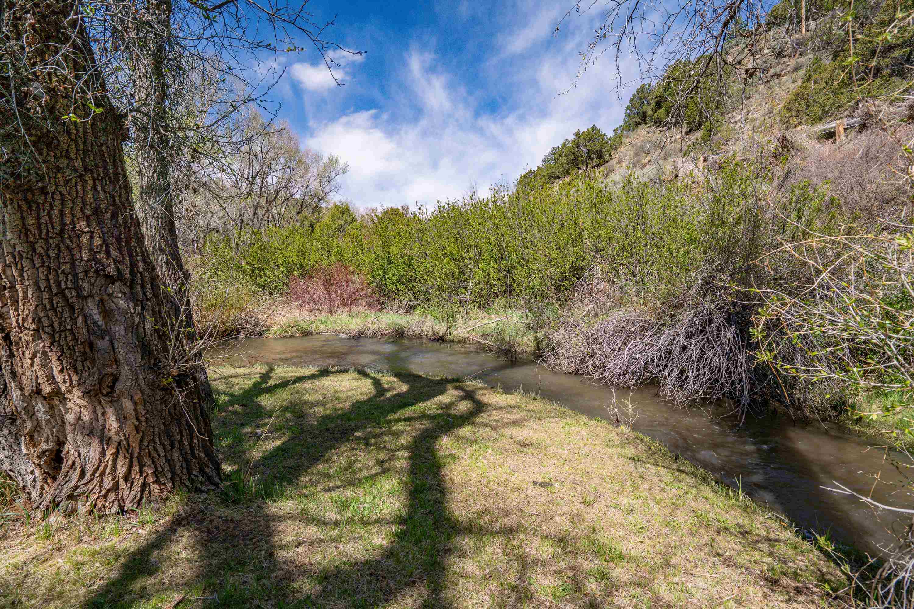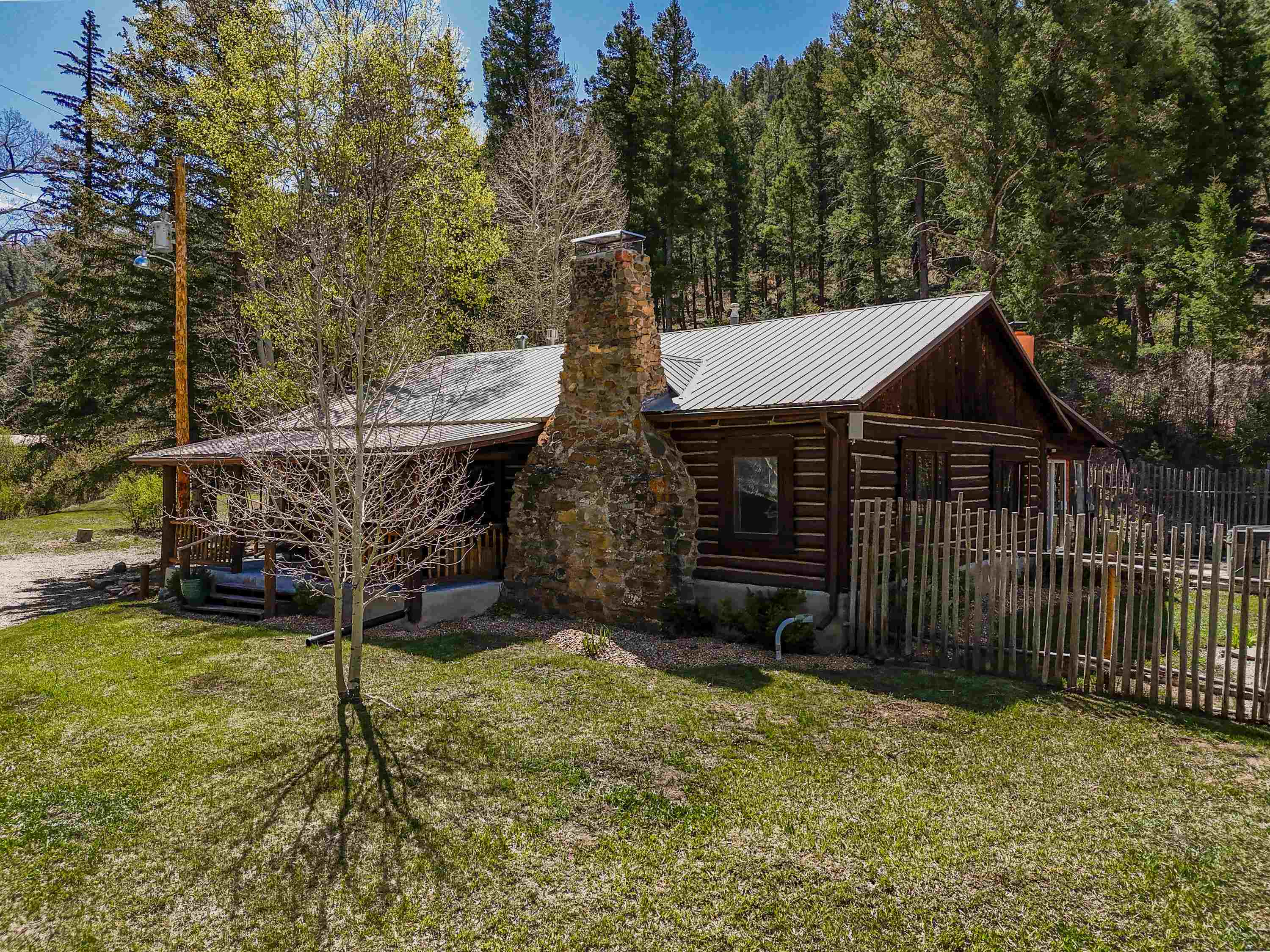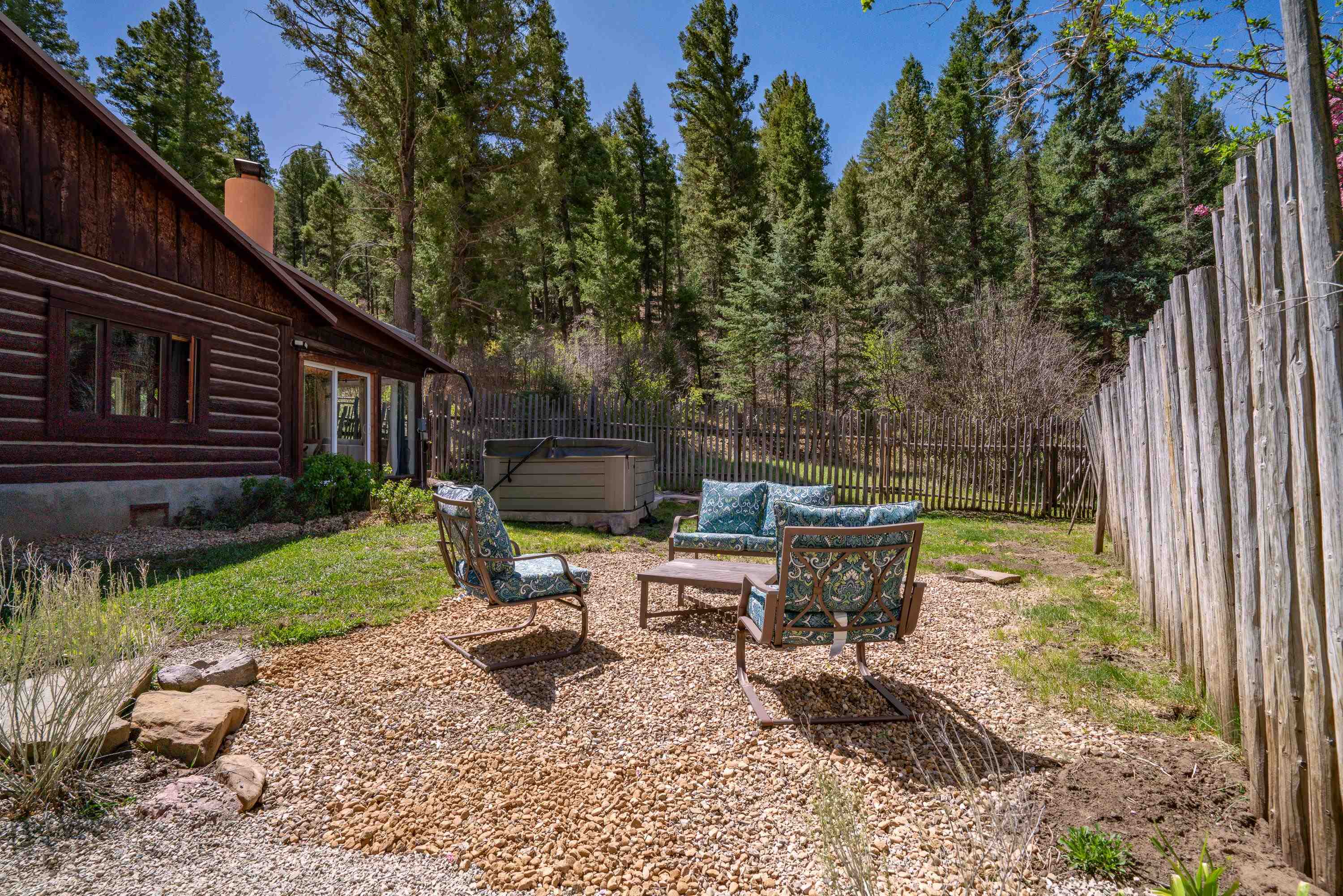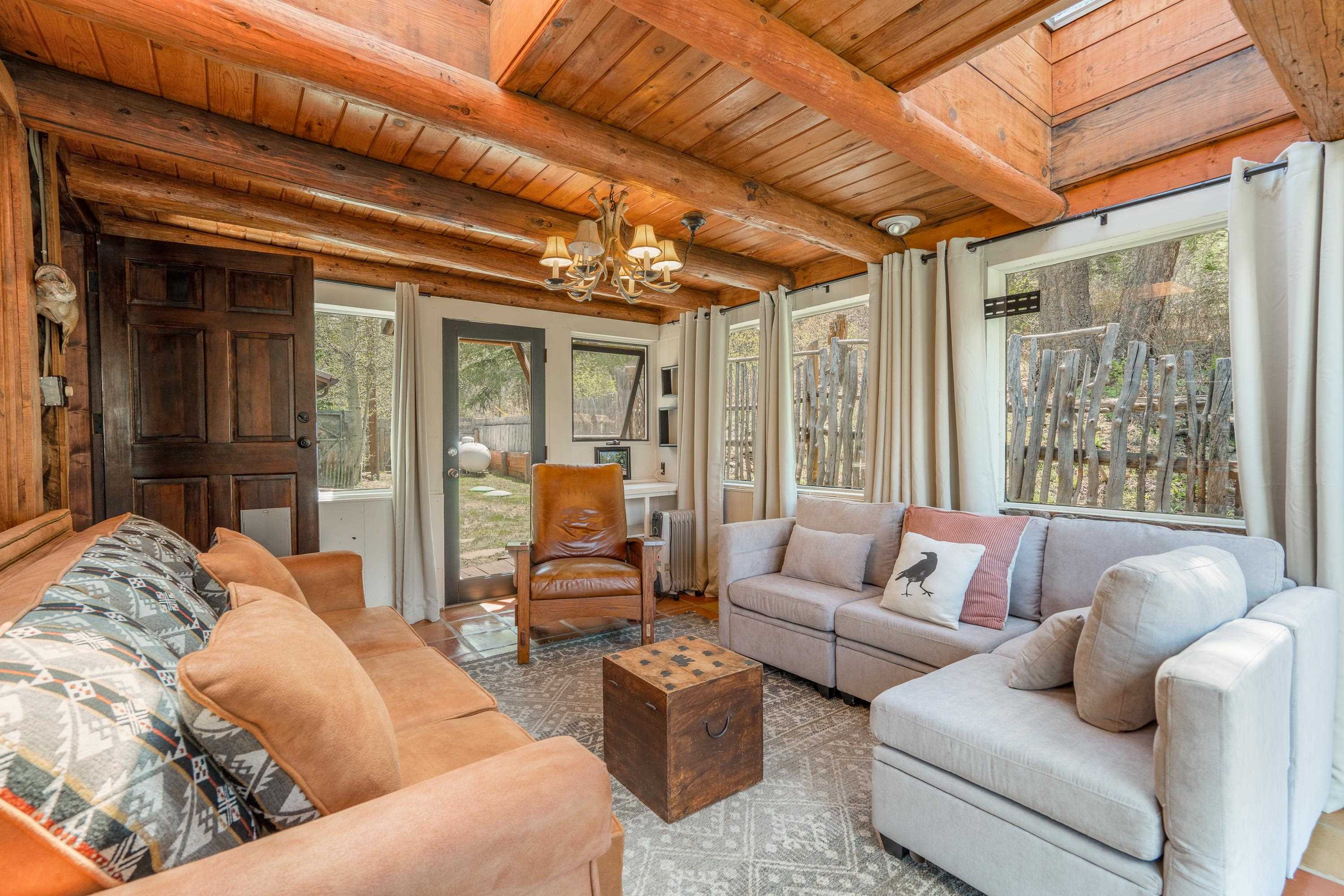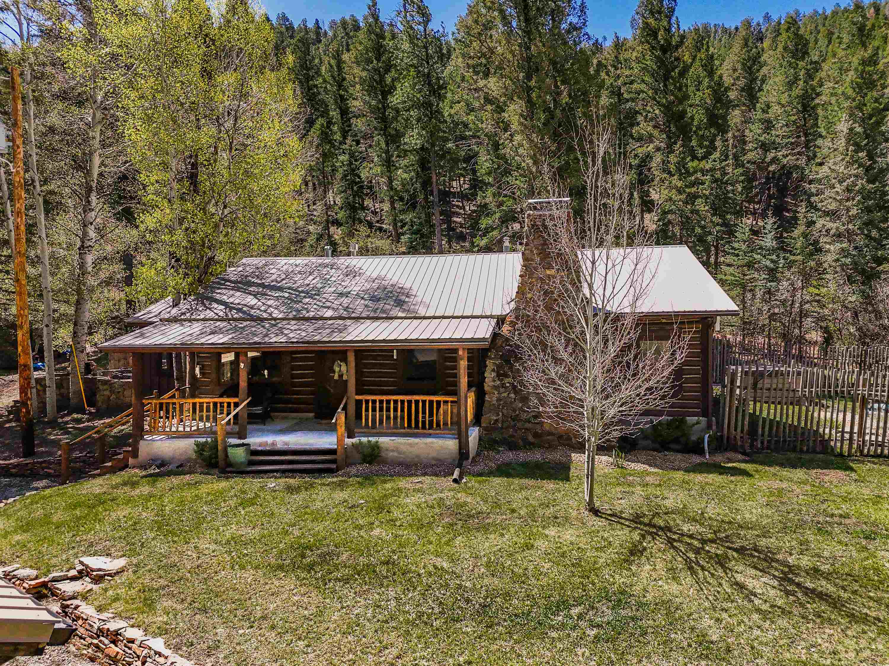 This 7.57-acre property includes a main house and a guest house, with the Rio Fernando running along the entire front portion and the Carson National Forest bordering the back portion. The main house is 1,780 sq ft with 2 bedrooms and 2 bathrooms—one with a shower, the other with a bathtub. It includes a large living room with a grand stone fireplace, a sunroom, and a fenced backyard perfect for pets, and a hot tub easily accessed off the master. The kitchen has travertine floors, a large enamel farm sink, new double door fridge, large pantry, and a light filled breakfast area with views of the surrounding forest. There’s a dedicated laundry room with additional cabinet storage. The home’s flooring includes oak in the living room and aged pine in the bedrooms; soft on the toes and warm in the winter! The master suite features a wood-burning kiva fireplace, a large walk-in closet, and an en suite bathroom. A stone patio with a built-in wood-fired grill sits off the kitchen and the front porch is covered and has a inviting view; two of many places around the property to enjoy the outdoors. A lawn gently slopes away from the main house leading to the river where you can find several good spots for sitting near the water. Stacked stone walls add borders where needed. The guest house is 1,168 sq ft with 1 bedroom and 1 bathroom. It has multiple closets for storage, and a large downstairs area suitable for use as a game room, living space, art studio, or anything else you may desire. The covered porch off the guest house keeps you dry when he thunderstorms roll in and would be a great place to put a chat set. A storage shed provides extra space; great for wood storage or all the gear you don’t want in the house! If the home and guest house were not enough, there are multiple building spots around the property, a couple with great views down the canyon. The acreage is comprised of two separate lots; affording you the ability to sell one or keep both! The property is accessed via a bridge over the Rio Fernando, making it an easy property to secure if you are away for long periods of time. You won’t be disconnected from the world as there is a high speed internet connection! The main house has forced air heating while the guest house has two gas heaters, both run off propane. A private well supplies all domestic water. This is the property dreams are made of; you’ll want to stay if you come visit so be prepared when booking a showing!