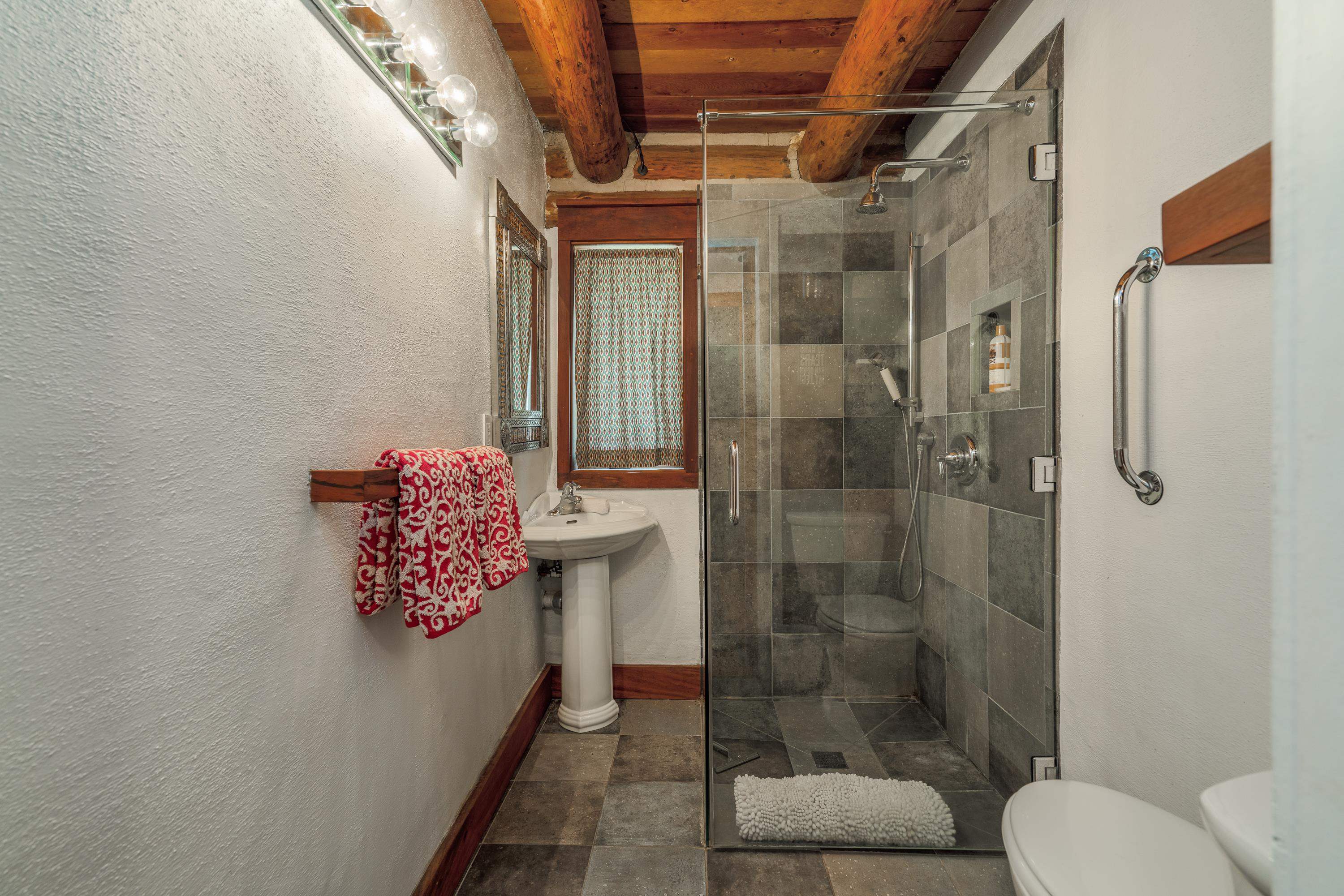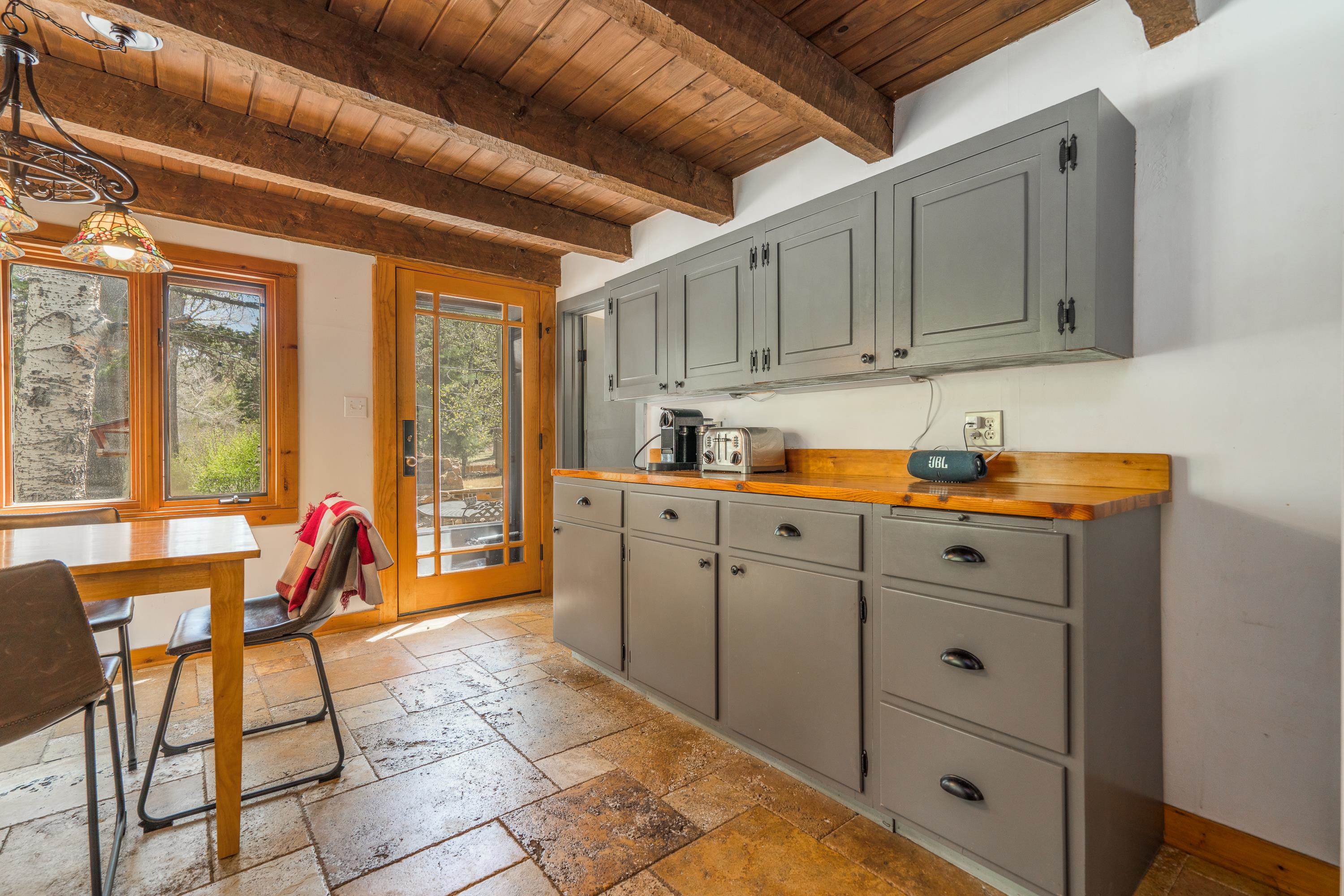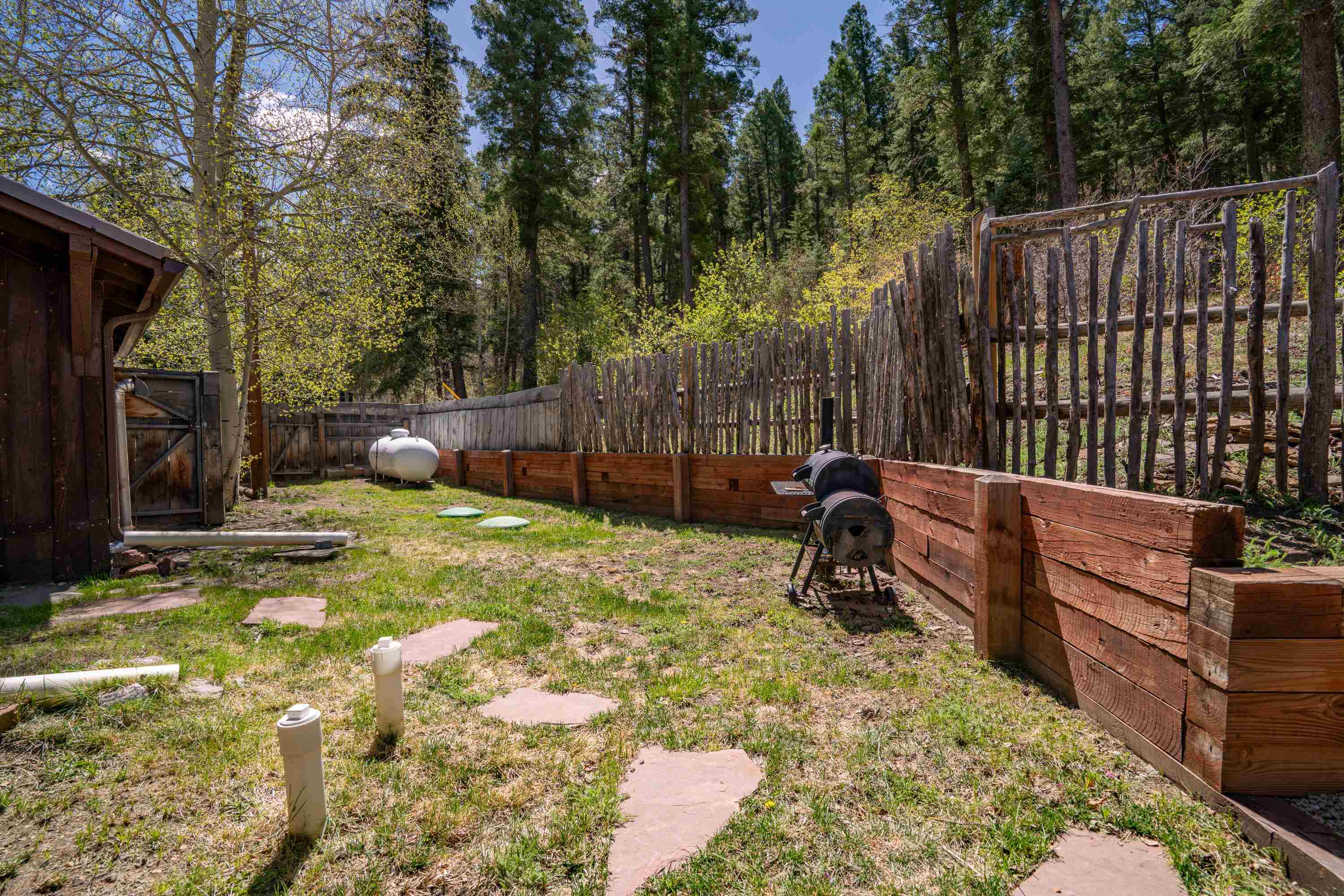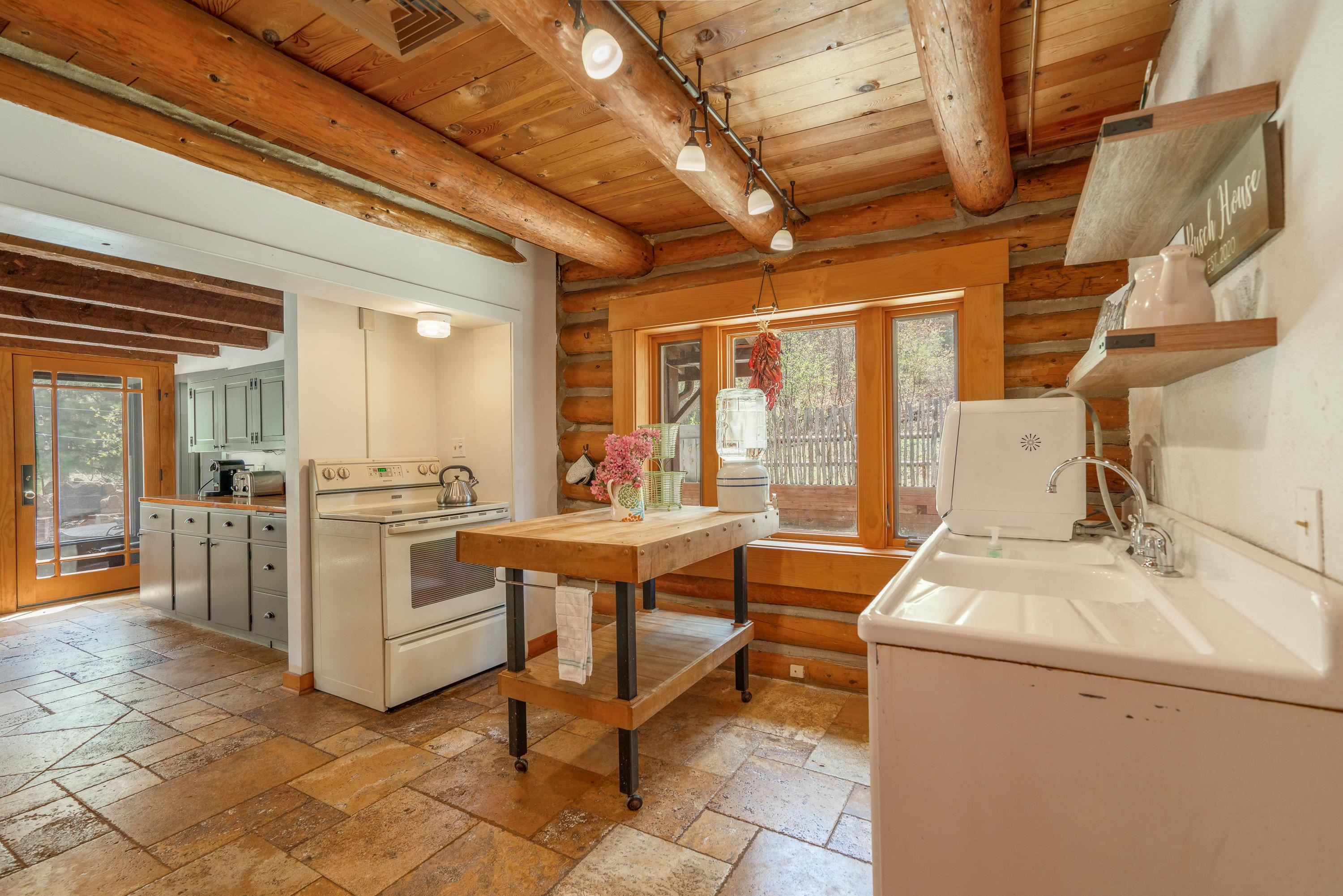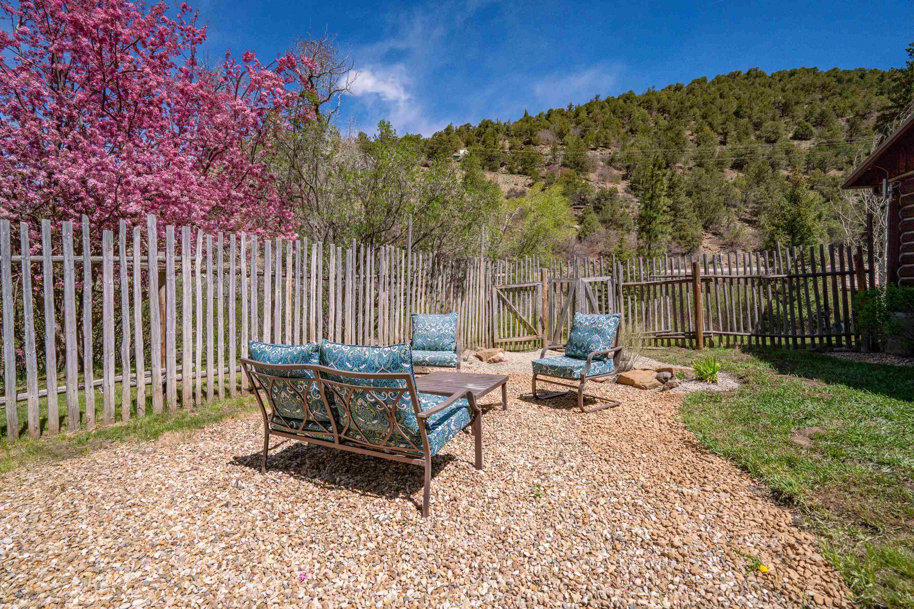 This 7.57-acre property includes a main house and a guest house, with the Rio Fernando running along the entire front portion and the Carson National Forest bordering the back portion. The main house is 1,780 sq ft with 2 bedrooms and 2 bathrooms—one with a shower, the other with a bathtub. It includes a large living room with a grand stone fireplace, a sunroom, and a fenced backyard perfect for pets, and a hot tub easily accessed off the master. The kitchen has travertine floors, a large enamel farm sink, new double door fridge, large pantry, and a light filled breakfast area with views of the surrounding forest. There’s a dedicated laundry room with additional cabinet storage. The home’s flooring includes oak in the living room and aged pine in the bedrooms; soft on the toes and warm in the winter! The master suite features a wood-burning kiva fireplace, a large walk-in closet, and an en suite bathroom. A stone patio with a built-in wood-fired grill sits off the kitchen and the front porch is covered and has a inviting view; two of many places around the property to enjoy the outdoors. A lawn gently slopes away from the main house leading to the river where you can find several good spots for sitting near the water. Stacked stone walls add borders where needed. The guest house is 1,168 sq ft with 1 bedroom and 1 bathroom. It has multiple closets for storage, and a large downstairs area suitable for use as a game room, living space, art studio, or anything else you may desire. The covered porch off the guest house keeps you dry when he thunderstorms roll in and would be a great place to put a chat set. A storage shed provides extra space; great for wood storage or all the gear you don’t want in the house! If the home and guest house were not enough, there are multiple building spots around the property, a couple with great views down the canyon. The acreage is comprised of two separate lots; affording you the ability to sell one or keep both! The property is accessed via a bridge over the Rio Fernando, making it an easy property to secure if you are away for long periods of time. You won’t be disconnected from the world as there is a high speed internet connection! The main house has forced air heating while the guest house has two gas heaters, both run off propane. A private well supplies all domestic water. This is the property dreams are made of; you’ll want to stay if you come visit so be prepared when booking a showing!