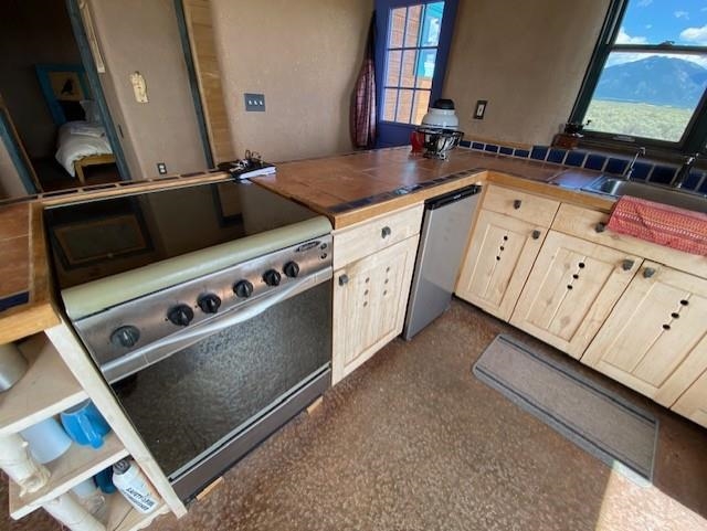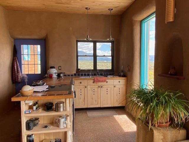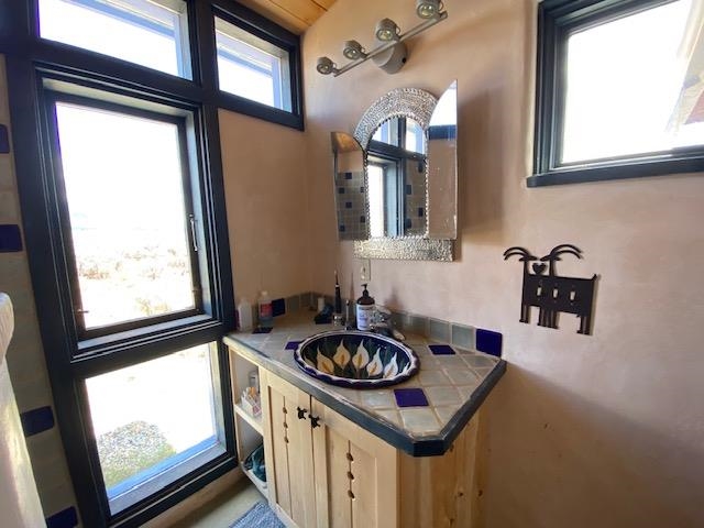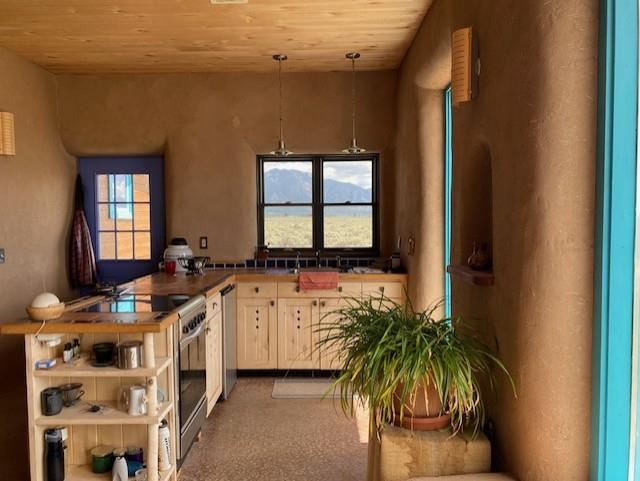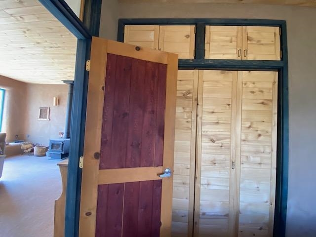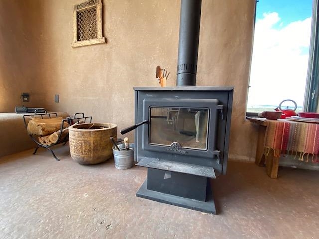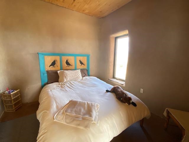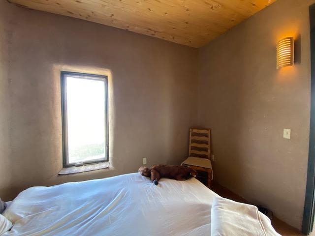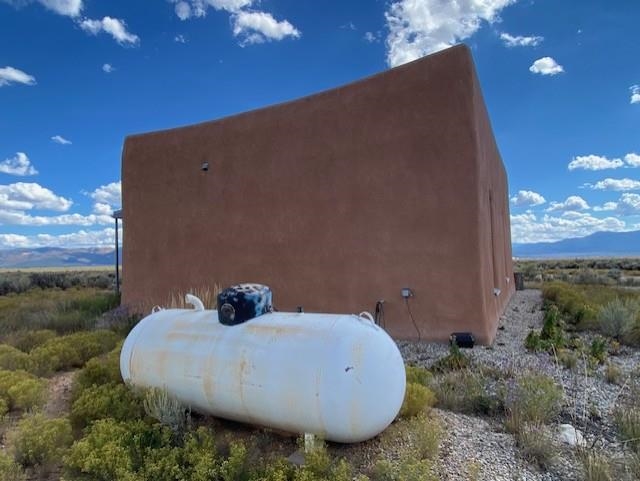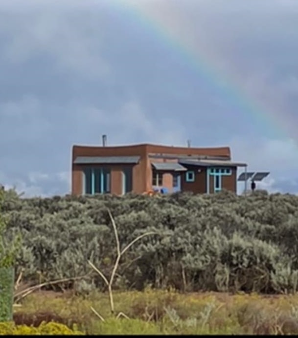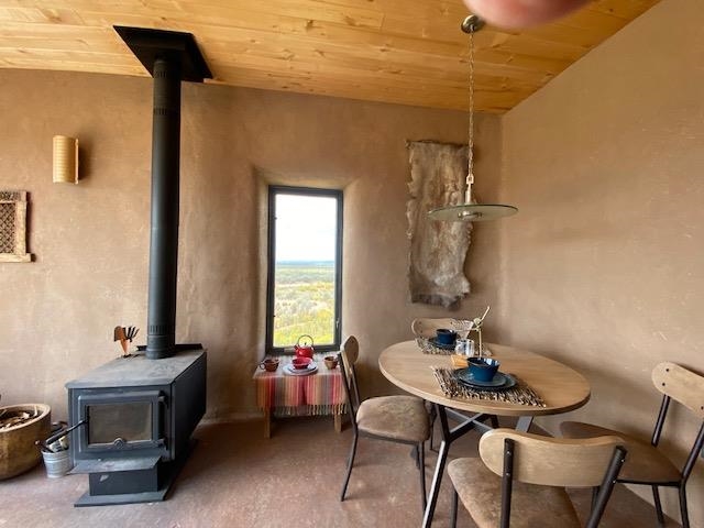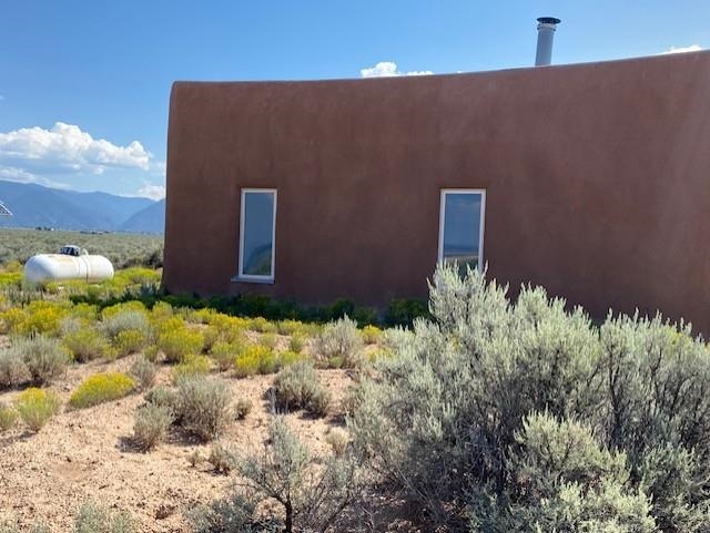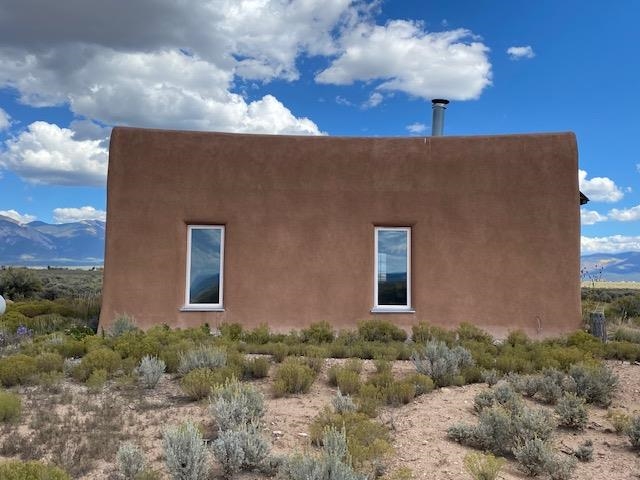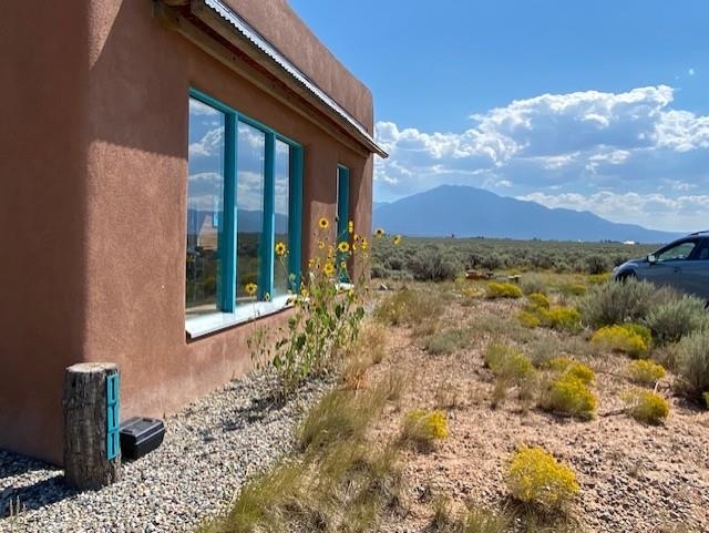 This energy-efficient strawbale house boasts sustainable features like solar panels and a cistern, making it an ideal choice for environmentally conscious buyers. The house, designed by an artist, has a simple design incorporating amazing views everywhere you look. The primary aspects of the house are that it is in accord with environmental principles, is located in a stunningly scenic environment, it has a beautiful totally hand-crafted interior, and it promotes and supports a simple lifestyle. The house also has electricity, and you can easily switch on the electricity if you want. Nestled in a picturesque location in Taos, with lots of privacy, the property offers breathtaking mountain views, 360-degree sunsets, and is conveniently close to Taos, Taos Ski Valley, and the RÃo Grande del Norte National Monument. The unique construction includes adobe straw plastered mud walls and a cozy woodstove, adding charm and a rustic touch to the home. The well-maintained driveway and concrete floors enhance the practicality and comfort of the living space. The driveway to the house has easy access to the highway and is well maintained and has a great surface to drive easily in and out of the property. The open concept design and cozy living room with a woodstove create a welcoming atmosphere, perfect for comfortable living. The house has been meticulously maintained by one owner, ensuring its excellent condition. Imagine waking up to stunning mountain views and enjoying cozy winter nights by the woodstove in this beautiful and sustainable home. Come see this absolutely enchanting off the grid property and imagine the possibilities of being the next owner of this unique and special house. This is a great house for a minimalist! There also is wood for the wood stove included!
