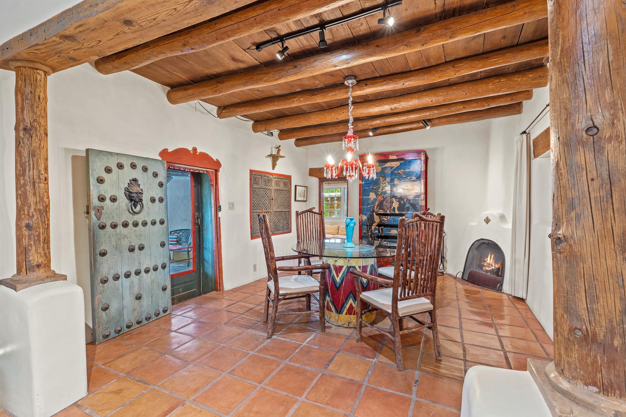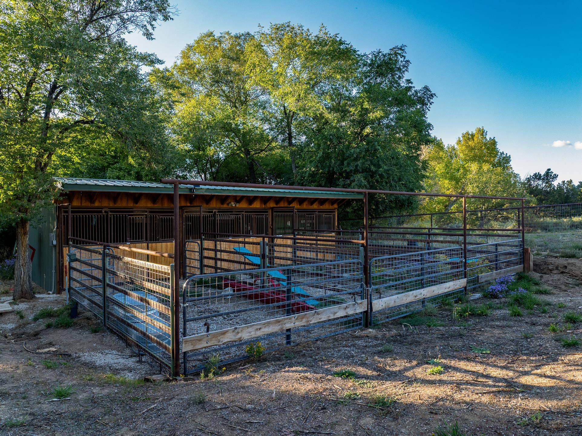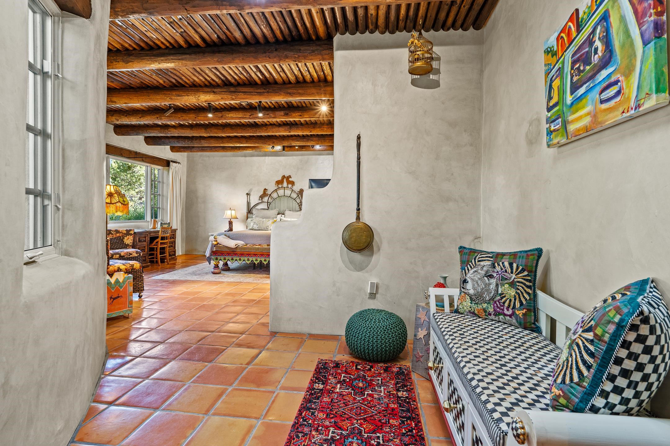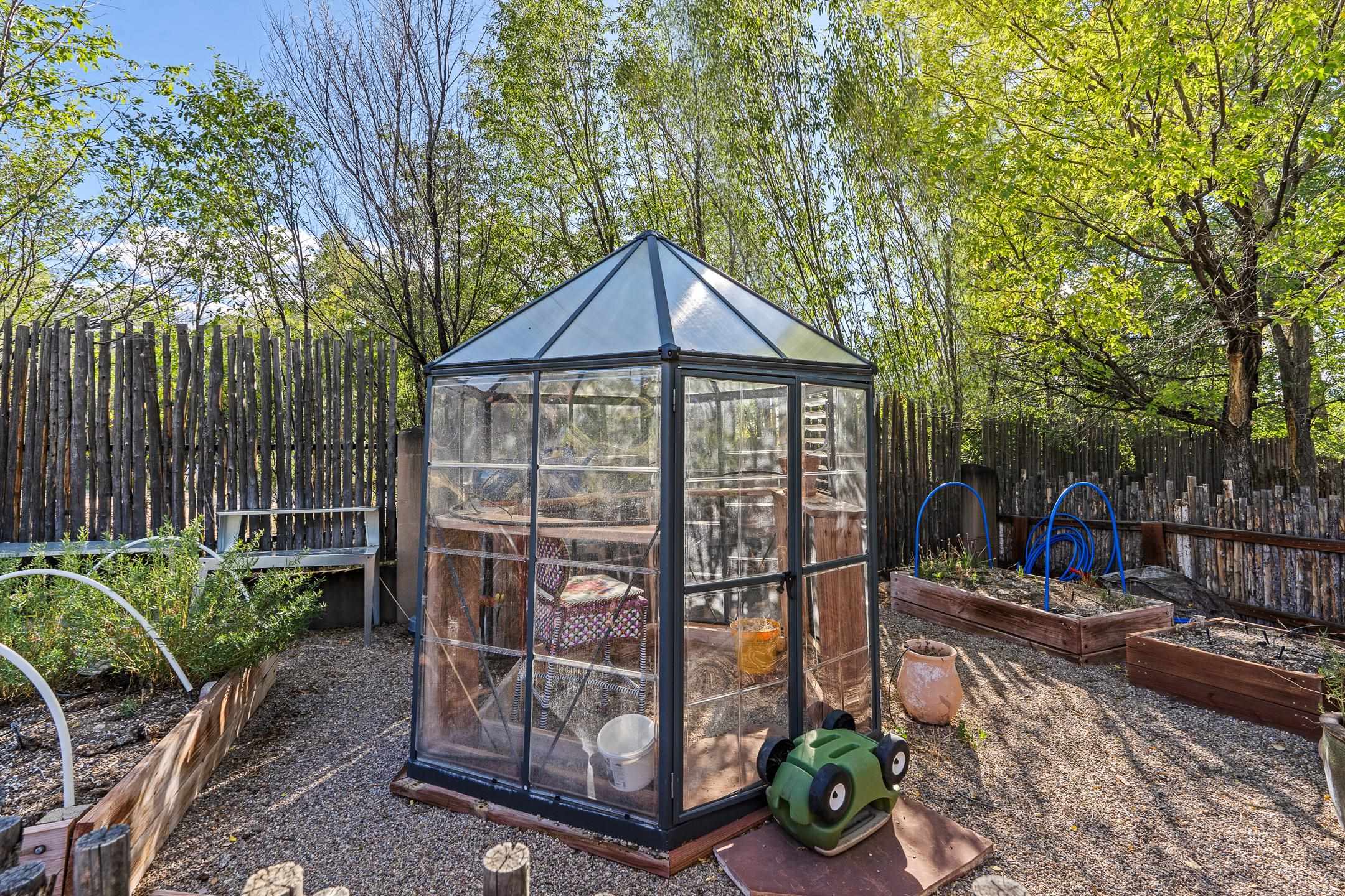 Historic John Young-Hunter Home & Artist’s Compound, Taos, New Mexico Private and secluded yet just minutes from town, this rare historic compound is one of Taos’ true treasures. Set on 5.17 serene acres with towering shade trees, inviting courtyards, and lush gardens, the property includes a gracious main residence and two guest cottages—a sanctuary for those who value heritage, artistry, and timeless New Mexico beauty. The acreage is fully fenced and thoughtfully designed to welcome four-legged companions—bring your horses, goats, mini-donkeys, or dogs. A charming 3-stall barn with walkouts makes the property ideal for equestrian or hobby-farm living. The John Young-Hunter House began in the early 1880's as simple adobe rooms and a log cabin, expanded and lived in over two centuries by a succession of owners, most notably John Young-Hunter, the celebrated Scottish portrait artist who called Taos home for more than fifty years. Part of the legendary circle of artists, writers, and visionaries drawn to Taos beginning in the mid-19th century, Young-Hunter was a close friend of Mabel Dodge and Tony Luhan, who helped him find this two-hundred-year-old adobe soon after his arrival in 1917. Young-Hunter transformed the property with the help of fellow artists: Nicolai Fechin carved decorative doors, lintels, and columns; Leon Gaspard designed and forged the distinctive ironwork and gates; and Henry Mercer, founder of the Moravian Pottery in Pennsylvania, contributed prototype tiles that are still visible today. Young-Hunter himself added painted details, including the Scottish thistle and family coat of arms on the west portal. Fully restored to provide modern amenities while retaining its historic soul, the home offers rich character and artistic provenance rarely found in today’s market. The small south side studio, believed to be Young-Hunter’s original workspace, has been sensitively modernized. Historic estates of this significance are seldom offered for sale. This is a remarkable opportunity for the discerning buyer seeking a home deeply woven into the artistic legacy of Taos—a cabin built in approximately 1850. NOTE: Fires in fireplaces and outdoor fire pits are virtually staged. Main House: https://my.matterport.com/show/?m=Sy6j4ZYbcSK Cabin: https://my.matterport.com/show/?m=HZqao1Bo1hL Casita: https://my.matterport.com/show/?m=NnDkGxeumMv