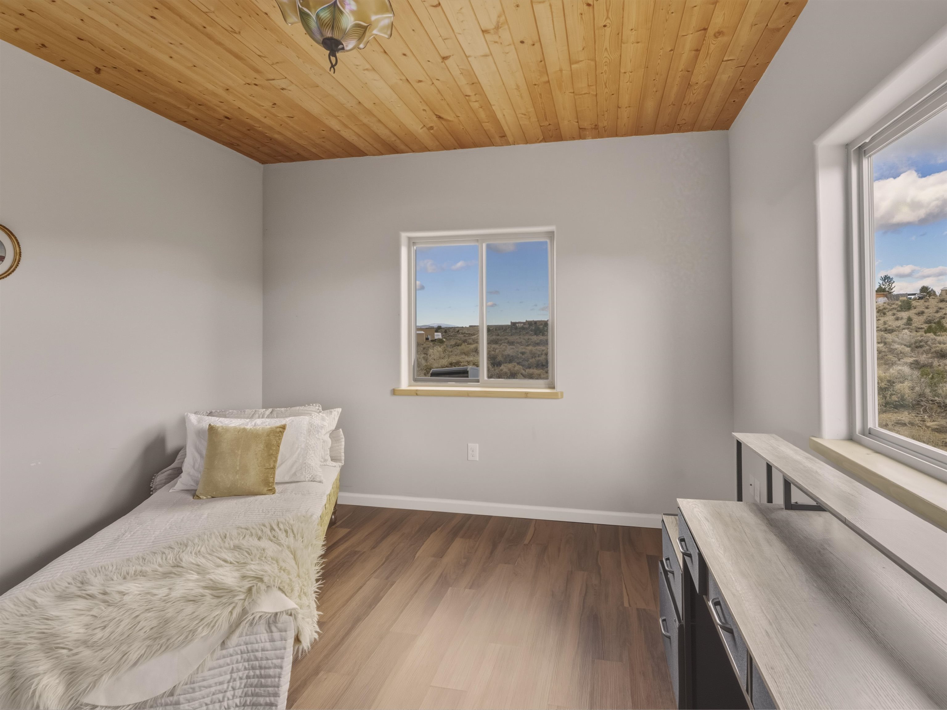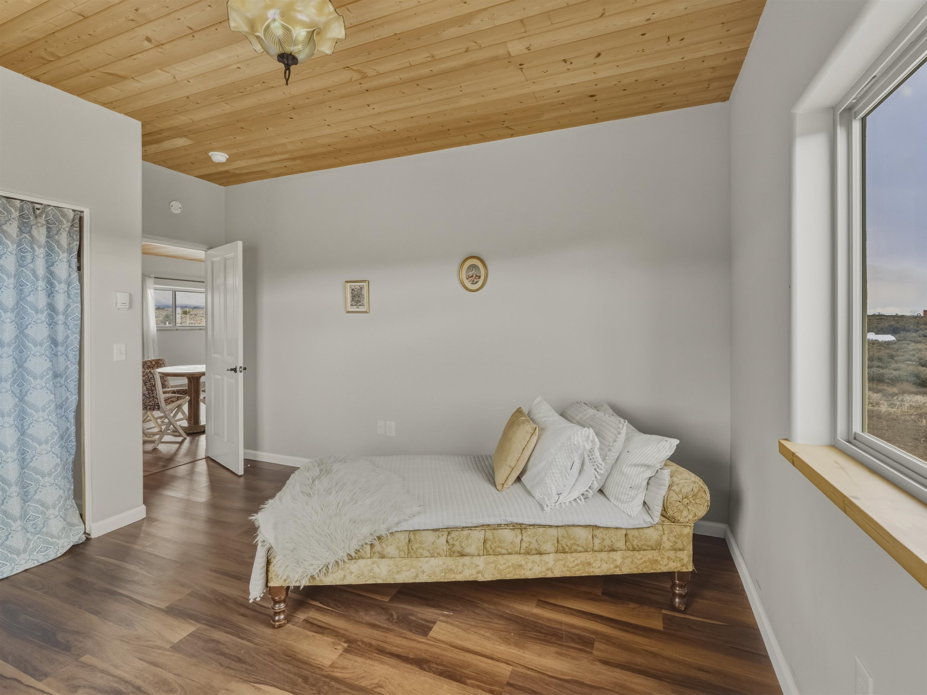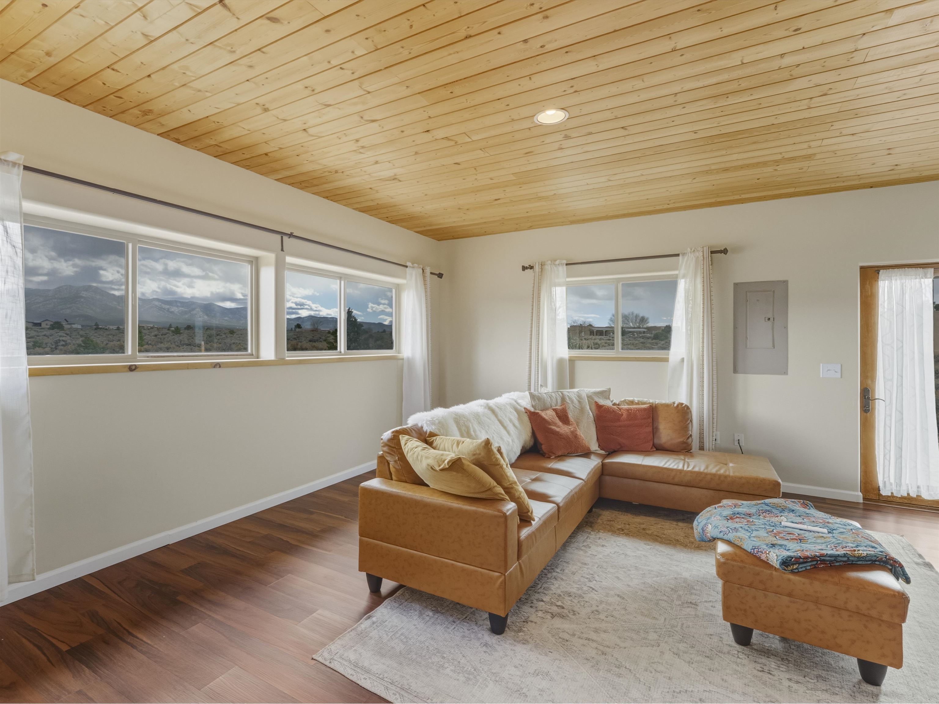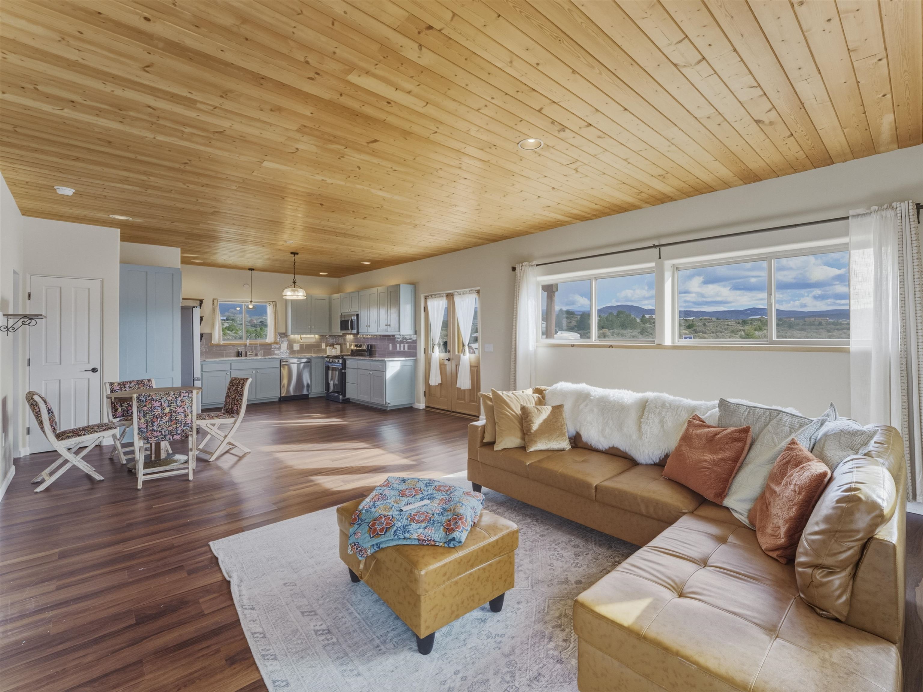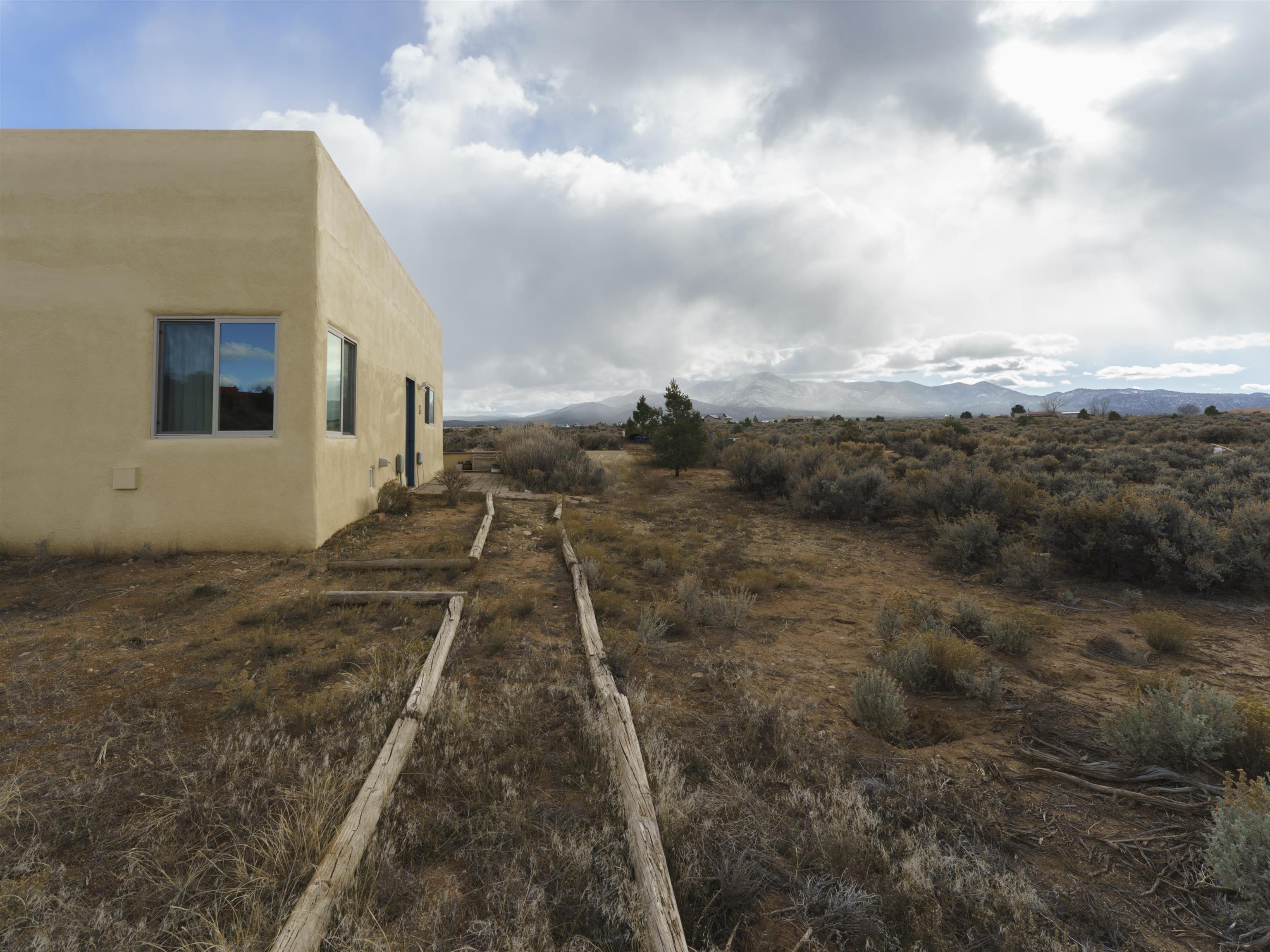 Set on 2.4 acres at the end of a quiet road, this charming 2-bedroom, 1-bathroom home is located just 15 minutes from the Taos Plaza and 40 minutes from Taos Ski Valley. Recent updates include repaired stucco, brand new appliances, and luxury vinyl plank flooring throughout. The open layout creates a comfortable flow from the living area to the kitchen, while large windows frame sweeping views of the Sangre de Cristo Mountains and the vast Taos landscape. Stay cozy in the winter with Radiant Floor and Passive Solar Heating. You'll enjoy proximity to UNM-Taos, the Country Club and golf course, the Slide Trailhead, and the Rio Grande. When you’re craving a change of pace, Santa Fe’s vibrant city life is only about an hour and fifteen minutes away. Whether you’re seeking a full-time residence, a peaceful getaway, or an investment opportunity in a prime location, this Ranchos de Taos property combines comfort, updates, and unmatched views in one inviting package.