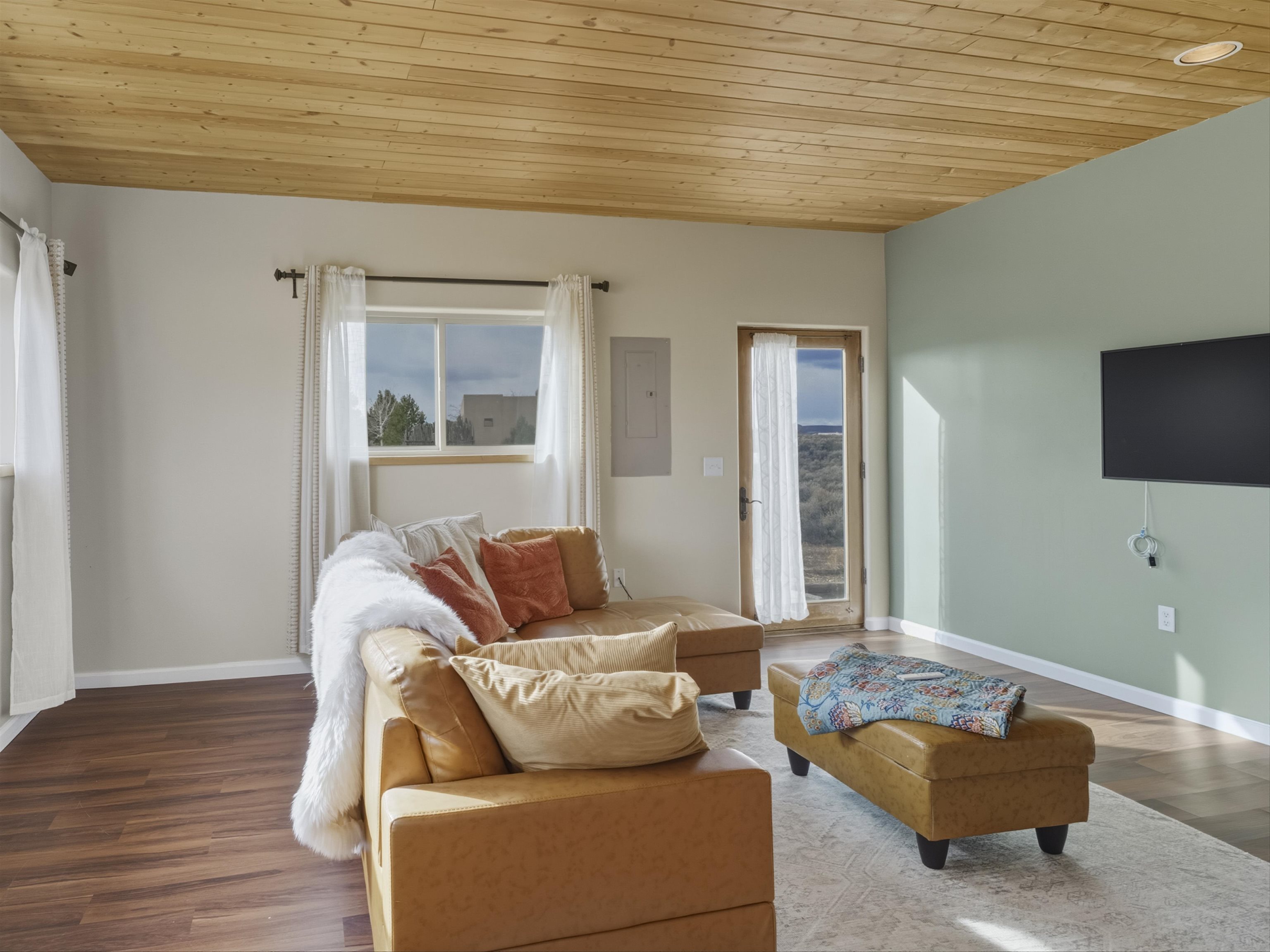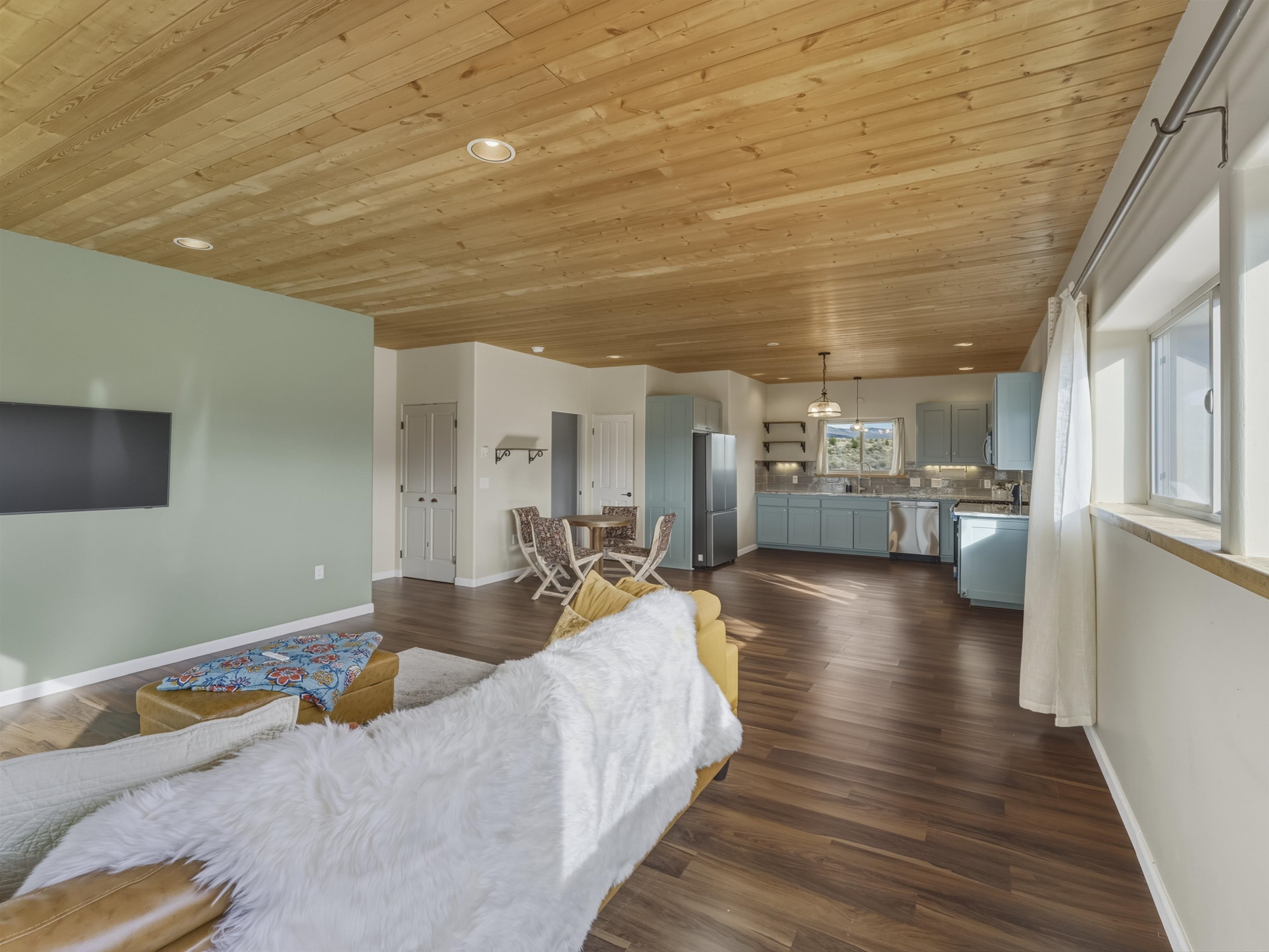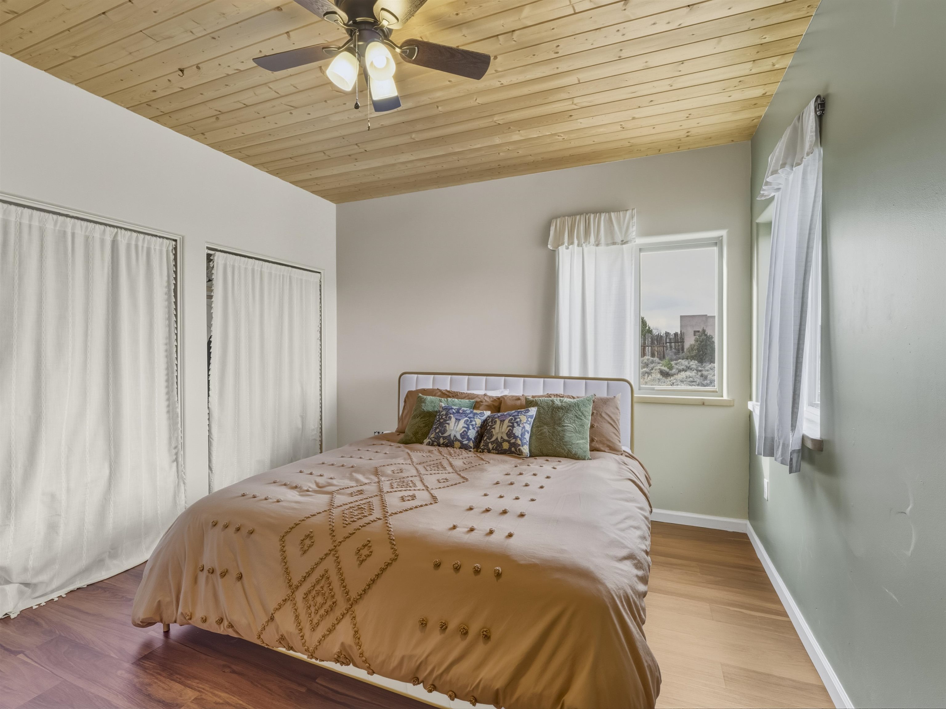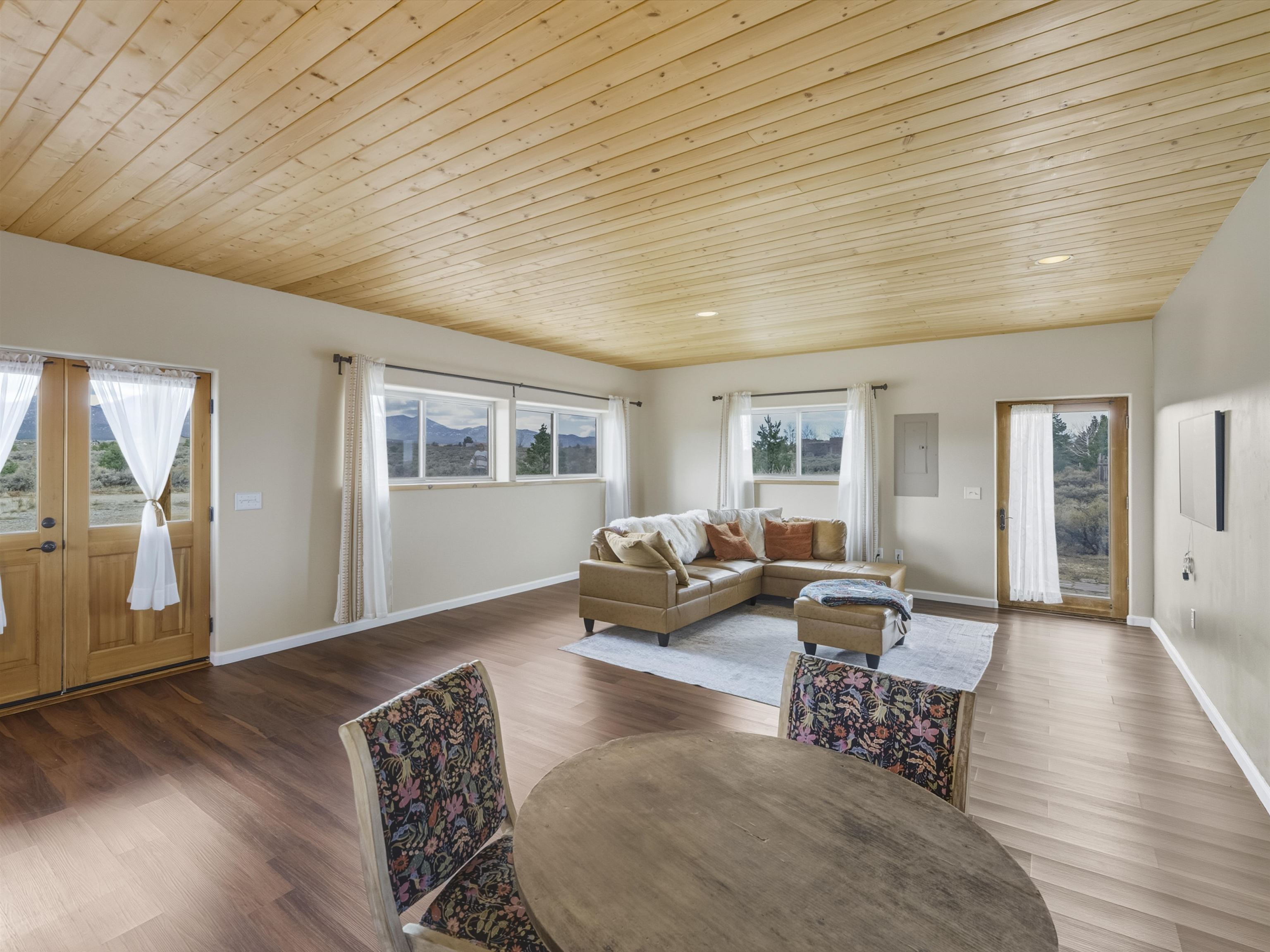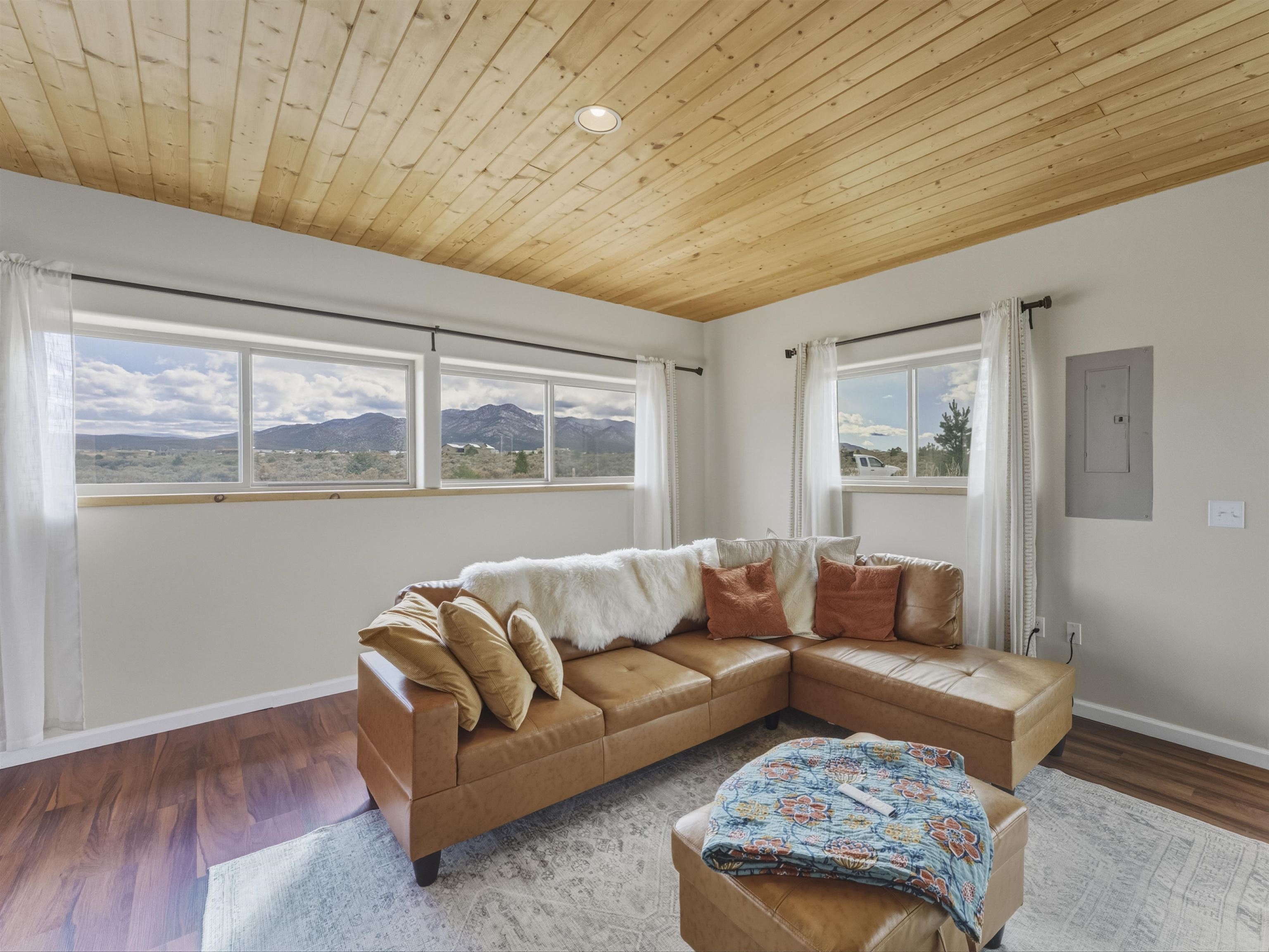 Set on 2.4 acres at the end of a quiet road, this charming 2-bedroom, 1-bathroom home is located just 15 minutes from the Taos Plaza and 40 minutes from Taos Ski Valley. Recent updates include repaired stucco, brand new appliances, and luxury vinyl plank flooring throughout. The open layout creates a comfortable flow from the living area to the kitchen, while large windows frame sweeping views of the Sangre de Cristo Mountains and the vast Taos landscape. Stay cozy in the winter with Radiant Floor and Passive Solar Heating. You'll enjoy proximity to UNM-Taos, the Country Club and golf course, the Slide Trailhead, and the Rio Grande. When you’re craving a change of pace, Santa Fe’s vibrant city life is only about an hour and fifteen minutes away. Whether you’re seeking a full-time residence, a peaceful getaway, or an investment opportunity in a prime location, this Ranchos de Taos property combines comfort, updates, and unmatched views in one inviting package.