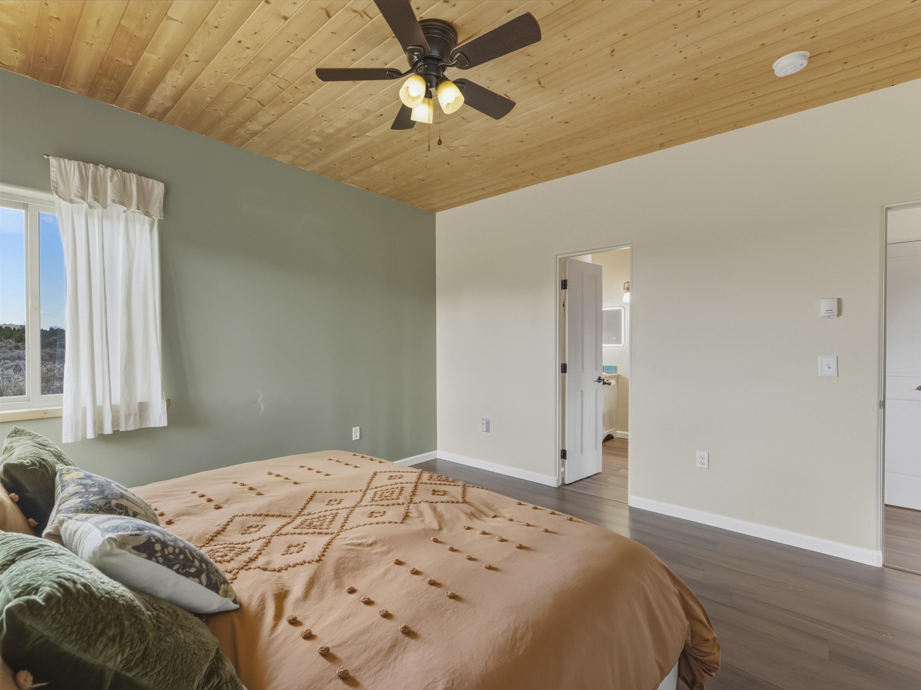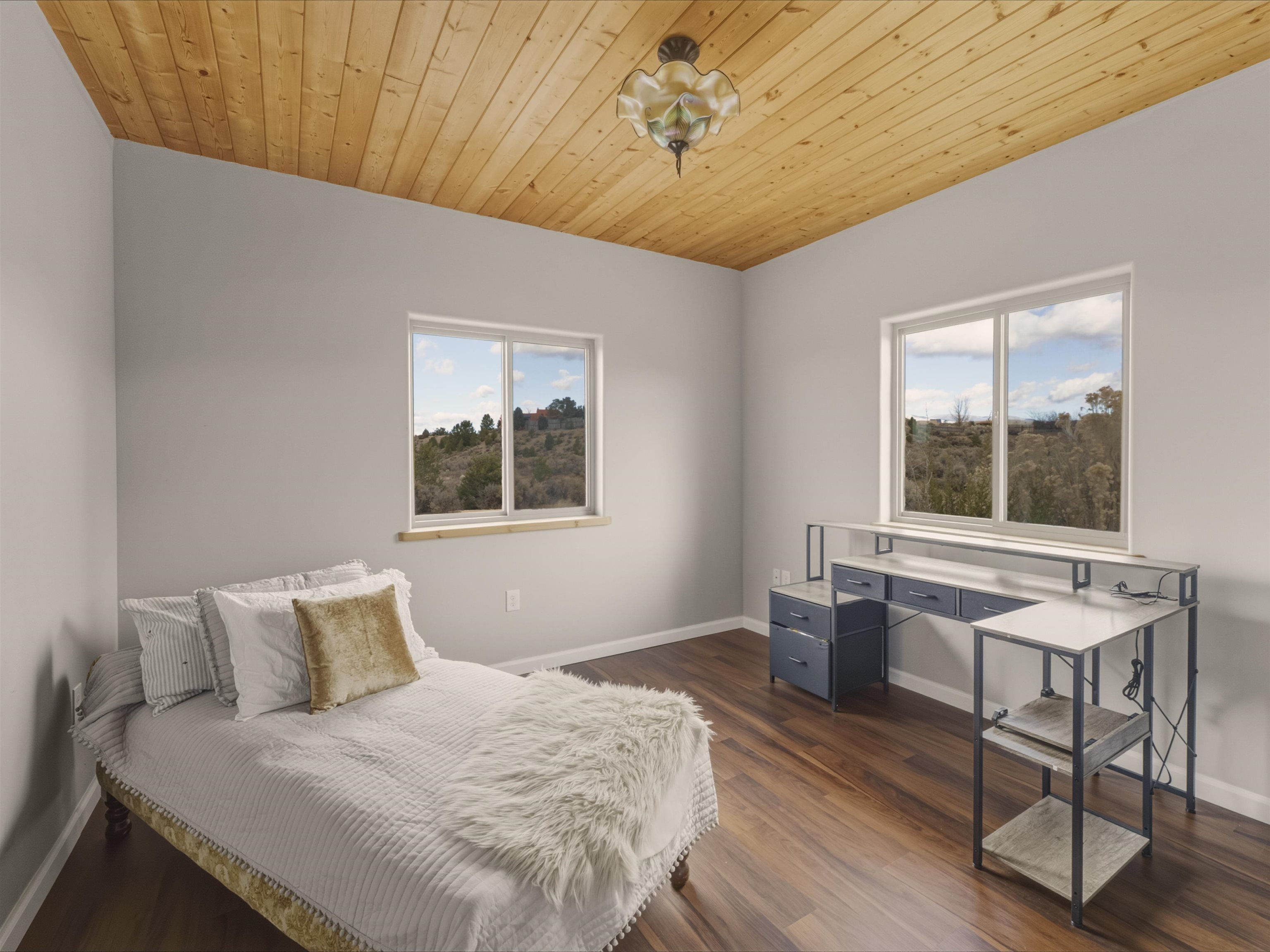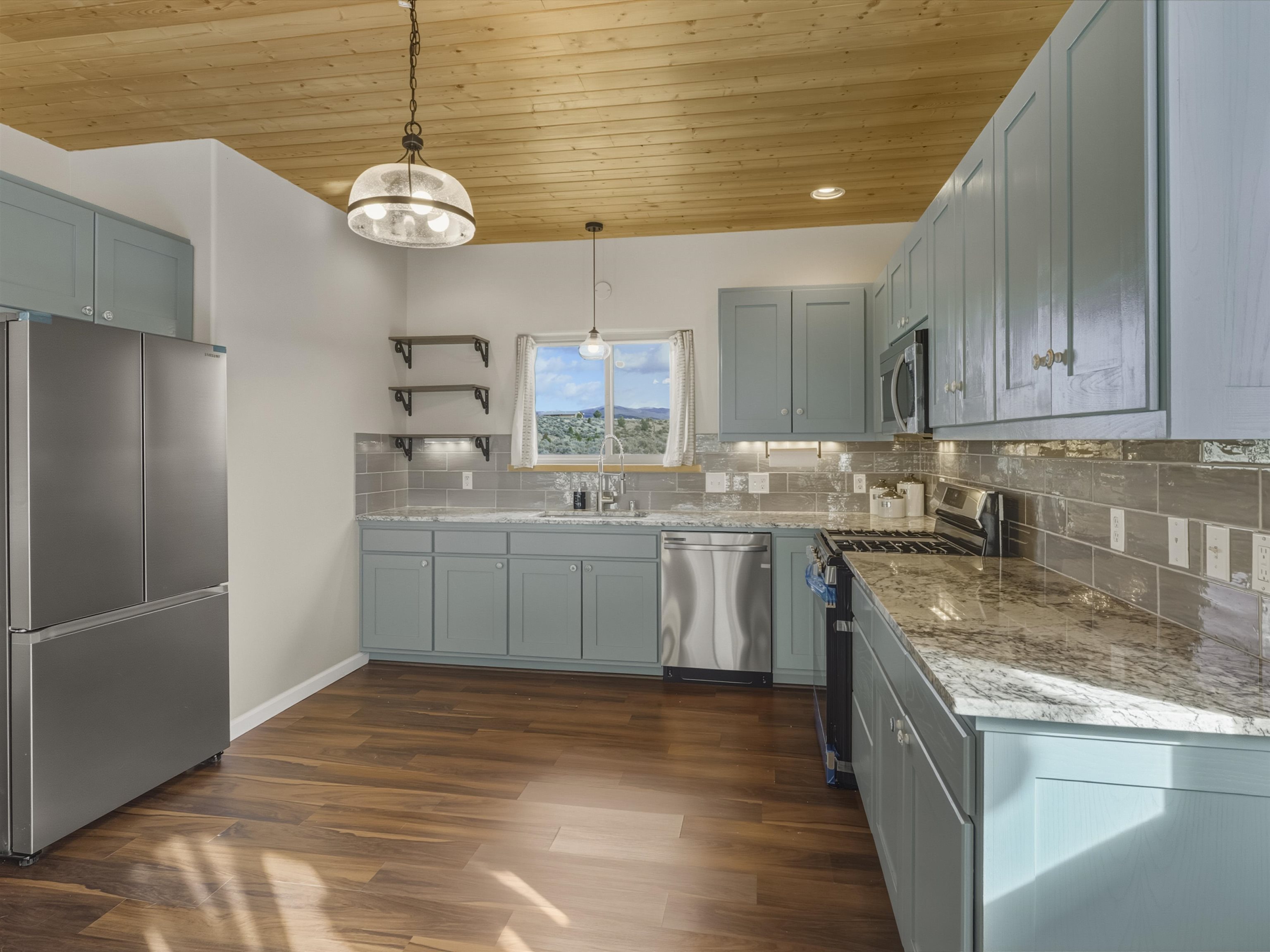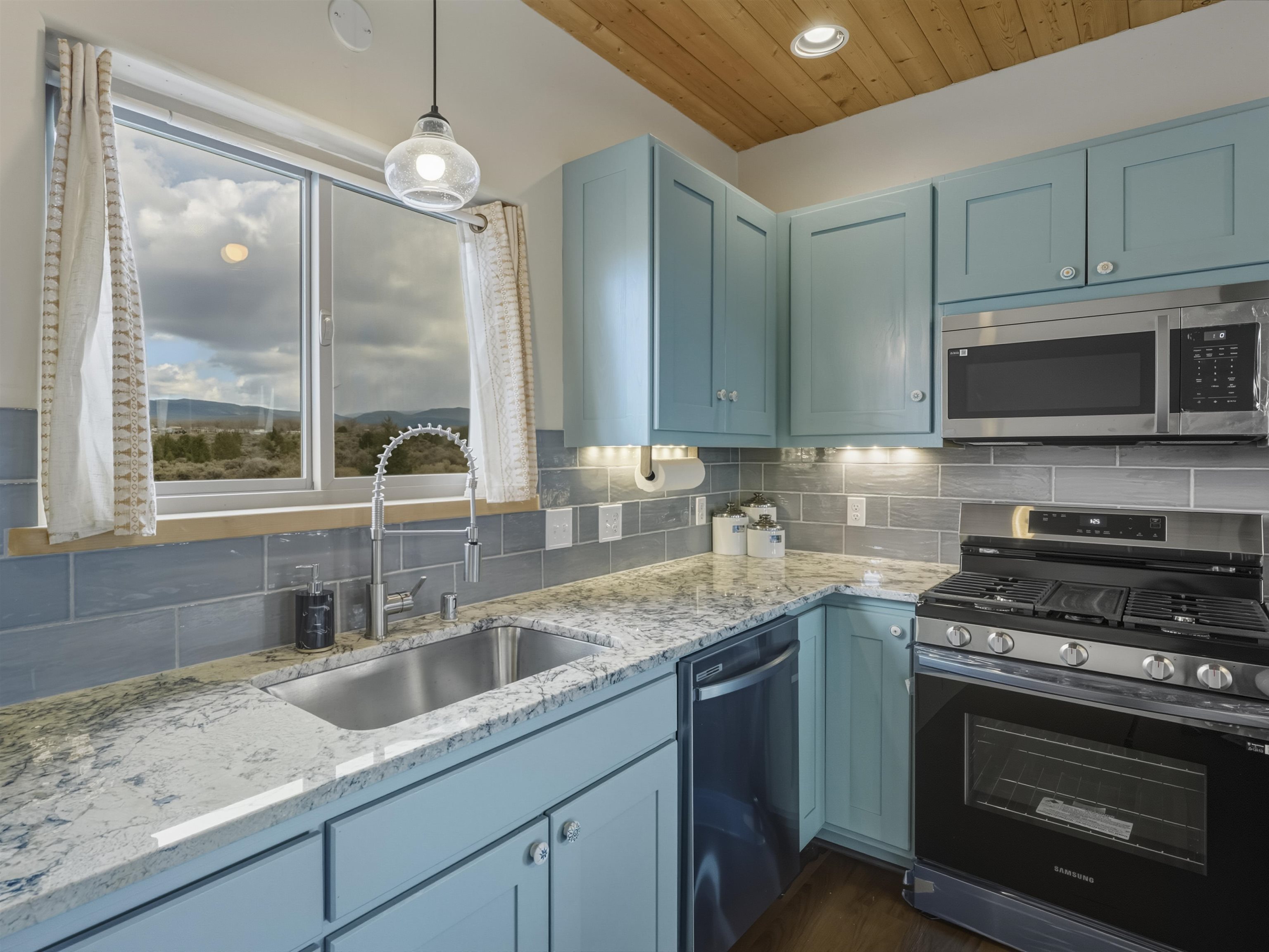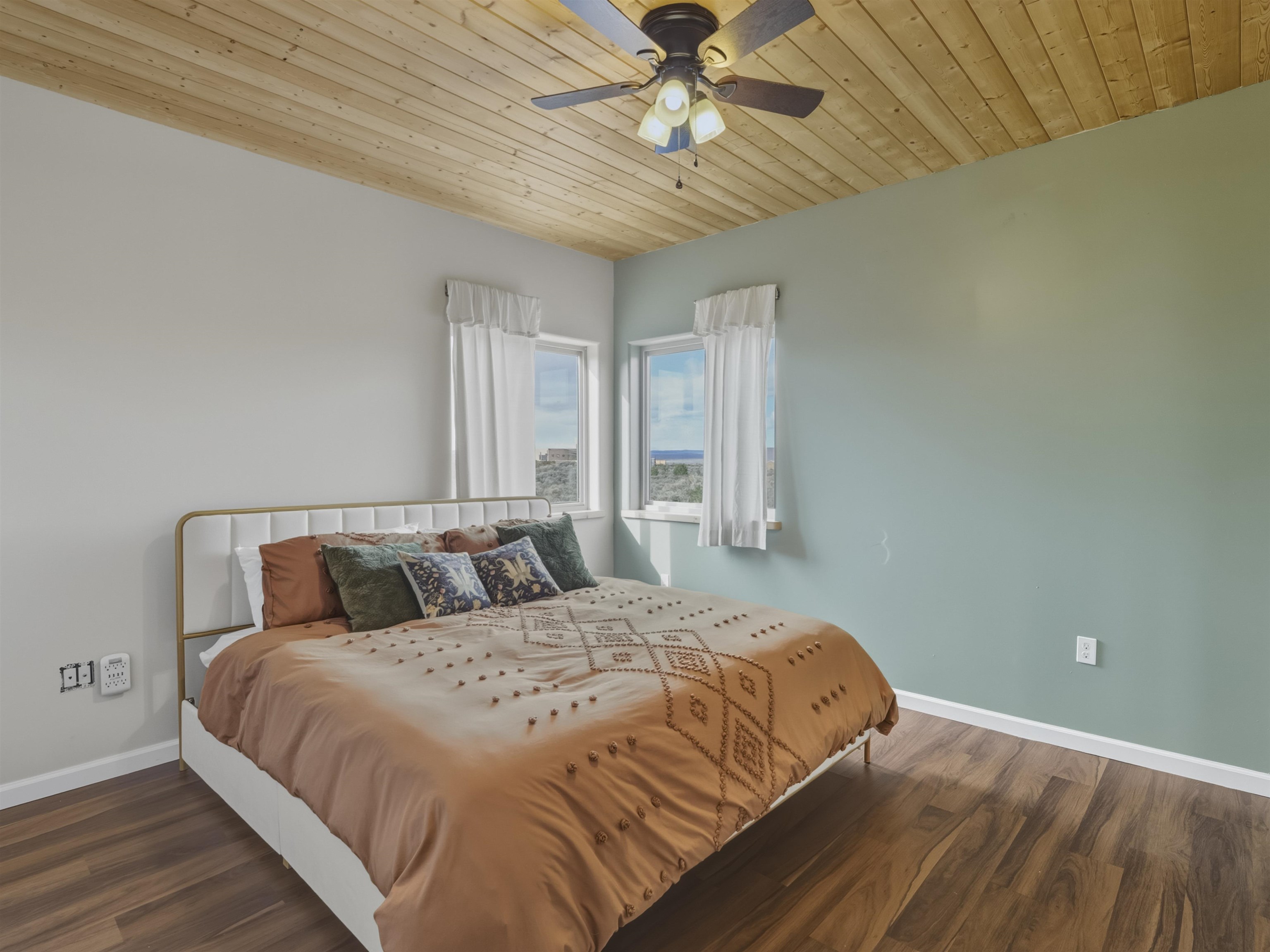 Set on 2.4 acres at the end of a quiet road, this charming 2-bedroom, 1-bathroom home is located just 15 minutes from the Taos Plaza and 40 minutes from Taos Ski Valley. Recent updates include repaired stucco, brand new appliances, and luxury vinyl plank flooring throughout. The open layout creates a comfortable flow from the living area to the kitchen, while large windows frame sweeping views of the Sangre de Cristo Mountains and the vast Taos landscape. Stay cozy in the winter with Radiant Floor and Passive Solar Heating. You'll enjoy proximity to UNM-Taos, the Country Club and golf course, the Slide Trailhead, and the Rio Grande. When you’re craving a change of pace, Santa Fe’s vibrant city life is only about an hour and fifteen minutes away. Whether you’re seeking a full-time residence, a peaceful getaway, or an investment opportunity in a prime location, this Ranchos de Taos property combines comfort, updates, and unmatched views in one inviting package.