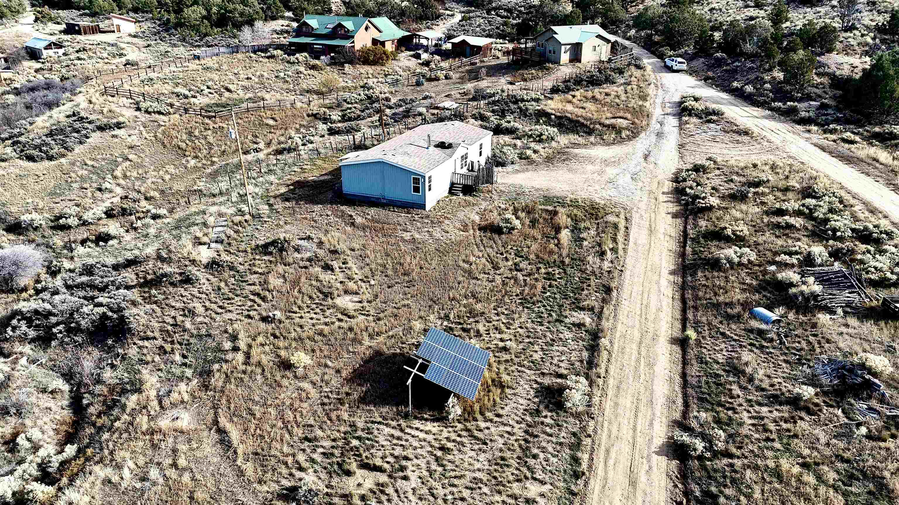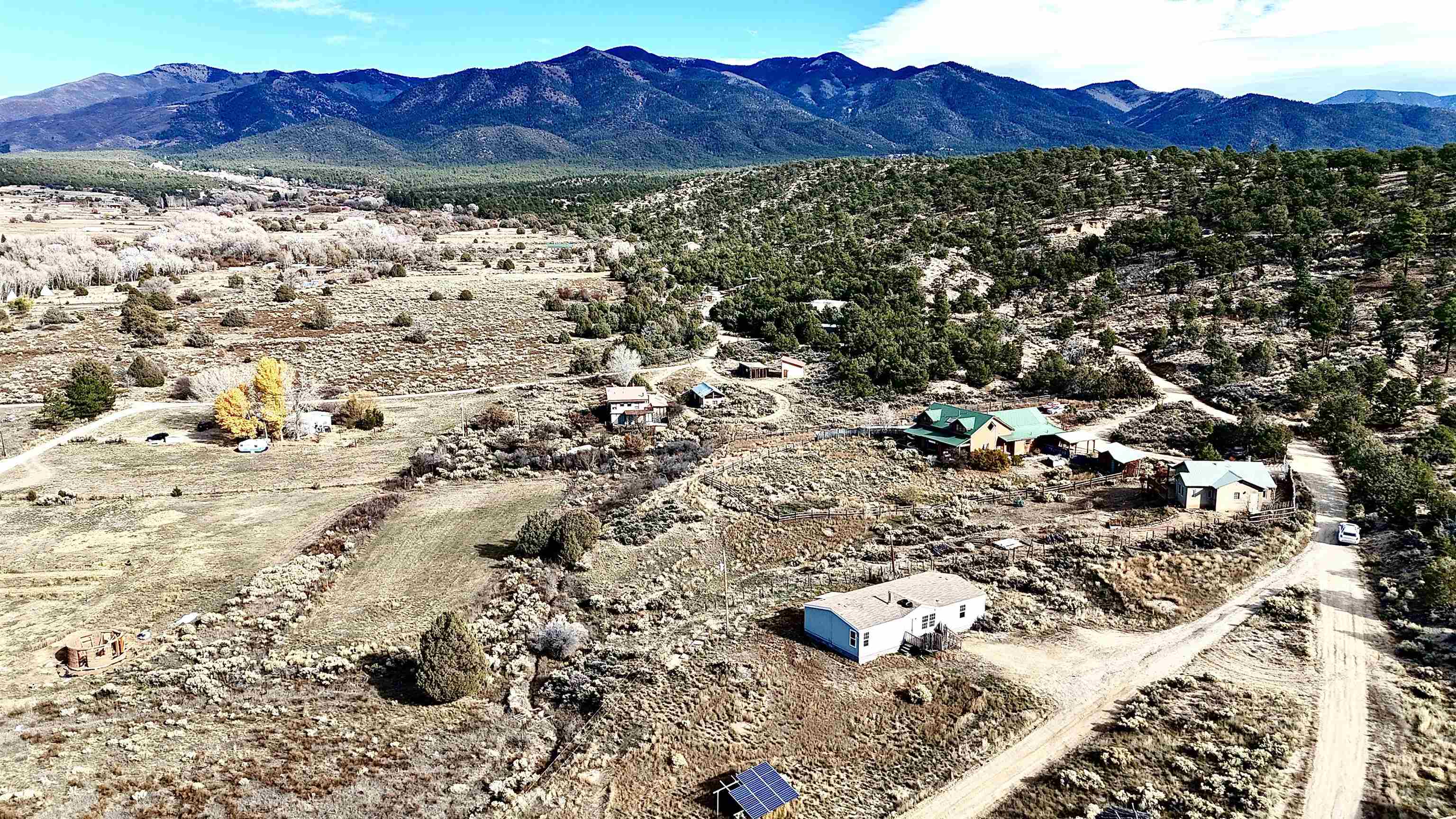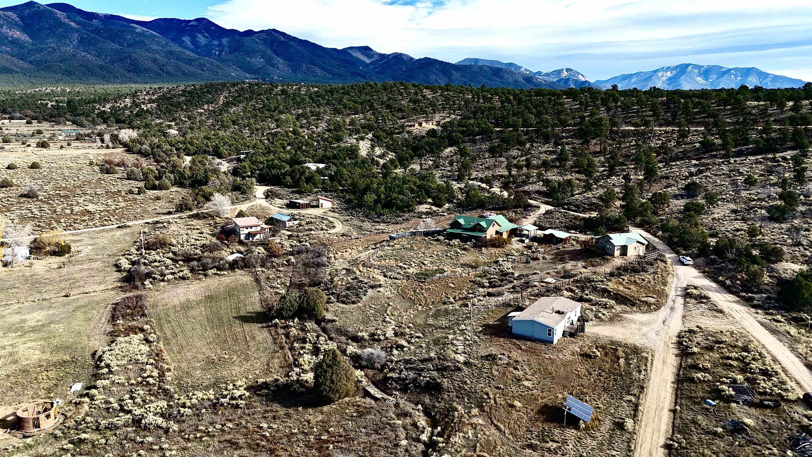 Energy efficient three bed/two bath well-loved home with 2x6†walls on 1 acre at the end of Carlitos Rd in San Cristobal. Close to Colorado, skiing, hiking, horse-back riding in Questa and close enough to Taos for a commute of 25 minutes to town. Quiet neighborhood, new flooring, and well-maintained. Key features: a wood-stove for snowy nights to keep cozy, this property borders the national forest for endless fun on ATVs, dirt bikes, or walks in the woods and last but not least utilities - fiberoptic, septic, community water, and a newer solar array to pay for electric. The solar array is hooked up to the grid but can be converted to 'off-grid' with batteries added for those who like to prep. The solar loan is $15K and can be included in the cost of the home or the loan transferred. Energy efficiency with the wood stove and electric covered means low utility costs! An old building spot allows for a casita or tiny home. Plenty of space to add a garage/sheds/outbuildings. Property has two mature trees near the Acequia at the bottom of the property. Carlitos is a public road so snow is plowed during the winter! Affordable pricing with room to grow and a place to call home!! Perfect for a starter home for couples/families/retiree. Fiberoptic makes it easy to work from home or have a home business. Already fenced for those with pups or little ones. Lots of grass for those wanting a horse property with some fencing that could be expanded. Beautiful views, close enough for the highway to easy access but far enough away for privacy and solitude. Starry nights, awesome backyard, move-in ready!! Come check it out! All offers will be considered!!