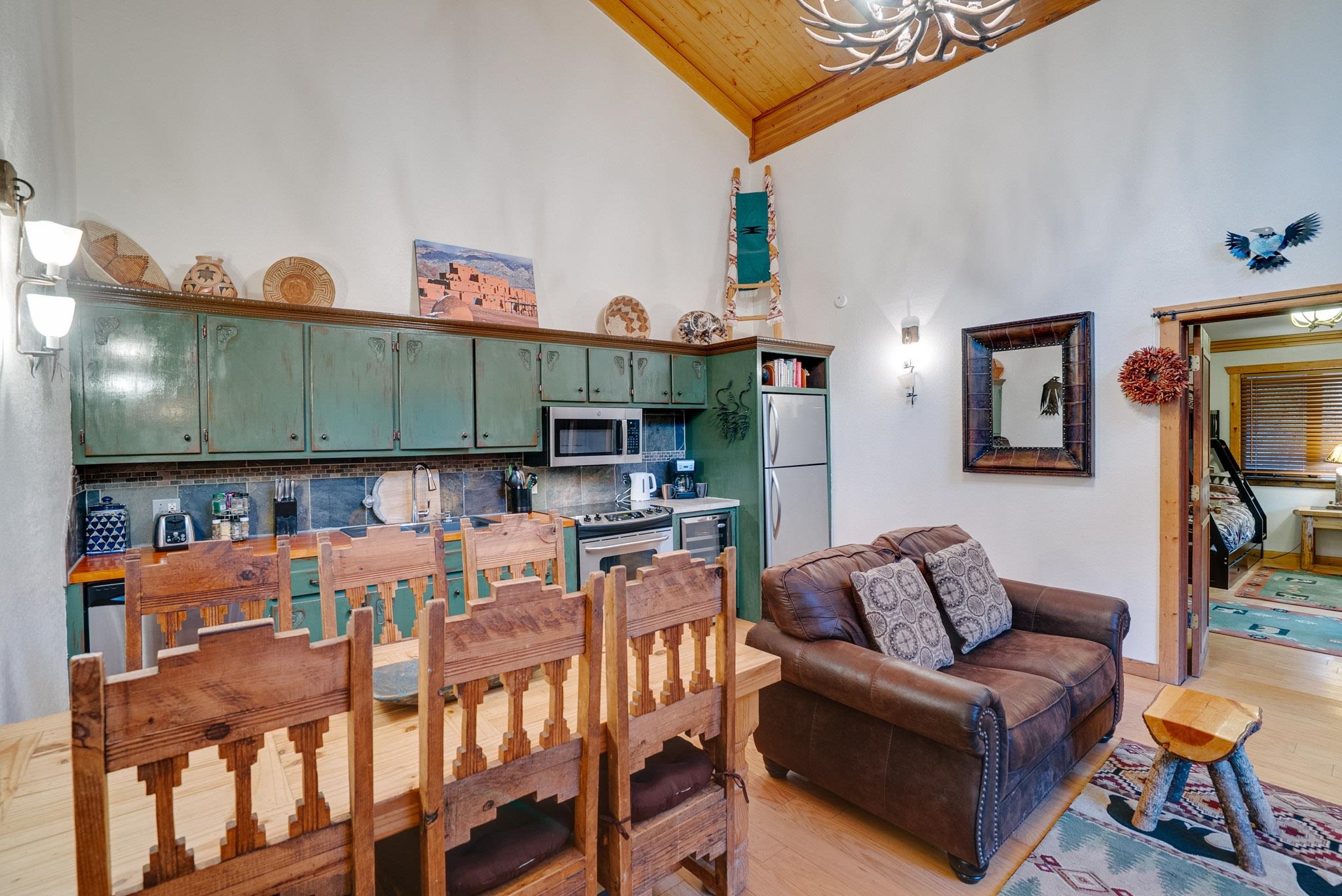 Don't miss out on this unique space! Breckenridge 1 in the Snow Bear Condominiums is a large third floor unit with stunning views, beautiful furnishings, and a strong rental history. Close to the gondola and Rio Hondo Learning Center, with a ski in from Raspberry Hill. Easy walk to the base of Taos Ski Valley! Breckenridge 1 is a favorite among skiers and summer tourists as well. Breckenridge 1 has two large alpine style bedrooms, one with two queen beds, the other with a queen and a bunk bed. En-suite bathrooms in each bedroom — choose between a spa-style shower or a relaxing jacuzzi tub. Bright, open living area with high ceilings, oversized windows, and a stone fireplace that frames the mountain views! 2 private owner closets plus a separate ski locker. Designer cabinetry in the kitchen. Large deck ideal for morning coffee or evening sunsets. Fully furnished and ready for guests Contact Dani today to schedule a showing or for more information.