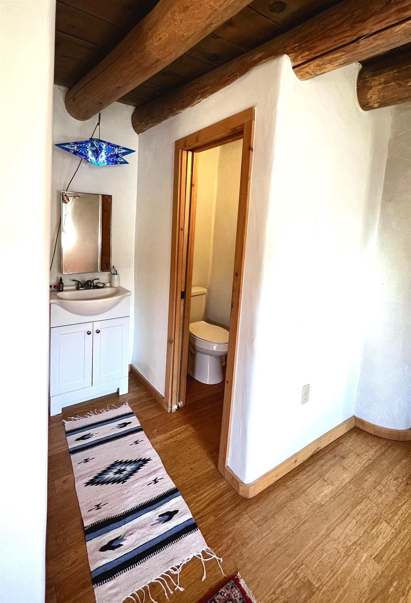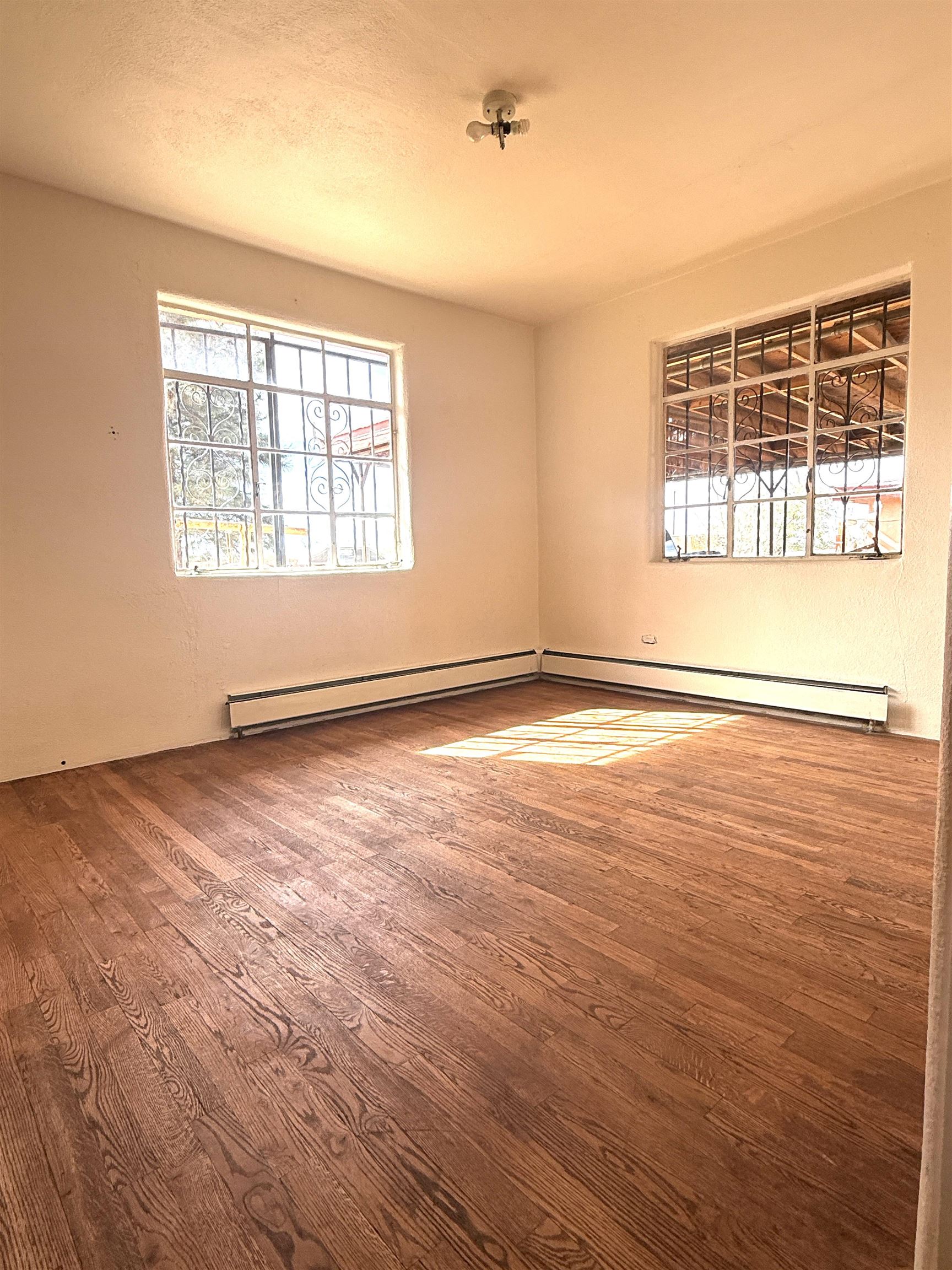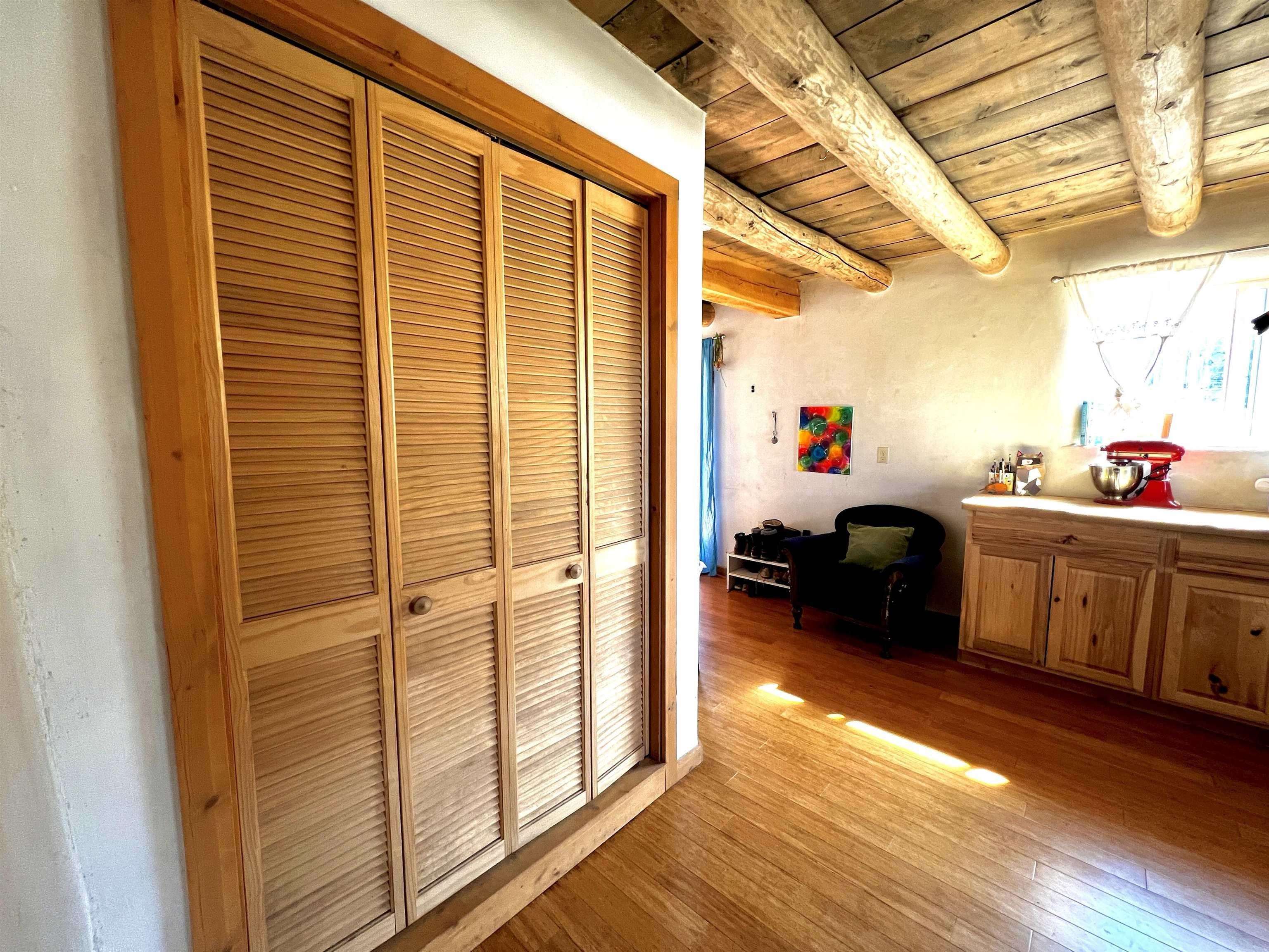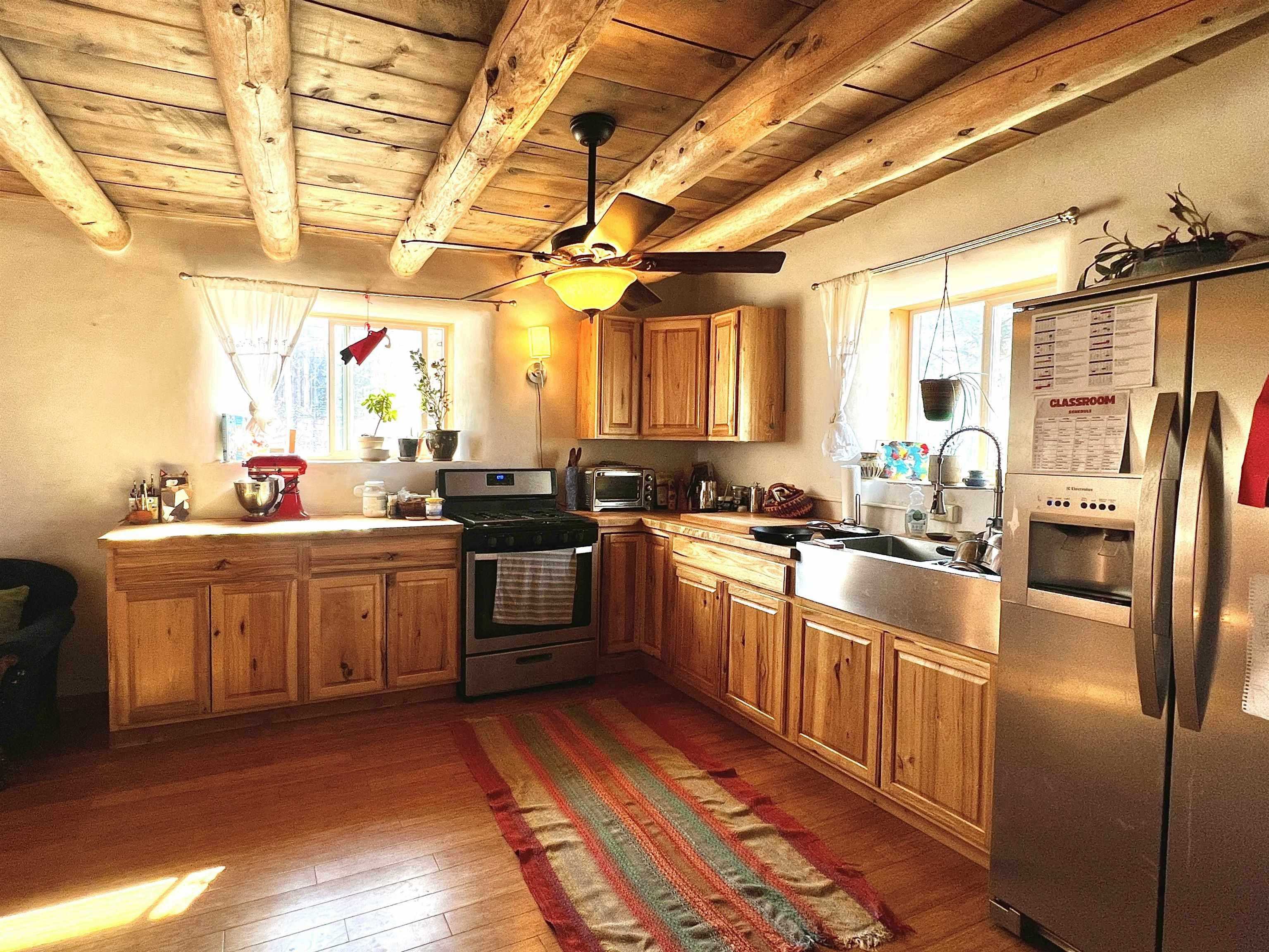 A rare opportunity to own two charming and recently remodeled adobe homes 1+miles from the Plaza, offering over 2,500 sq ft of combined living space, a basement and an attic. The 1950s bungalow style main house (1,400+ sq ft) features original hardwood floors throughout, colorful vintage accents, three bedrooms, one bath, two porches, and practical extras including a carport, basement, attic, and laundry. The eco friendly 1910s casita (1300 sq ft) offers two bedrooms, one bath, remodeled kitchen, bamboo floors, and a high-quality water catchment and filtration system. Cozy wood stoves warm both bedrooms. A deal scenario for a family with room to grow, long-term rental income, multi-generational living, or a flexible live-work space. Outdoors, you’ll find fruit trees, planting beds, storage sheds, and a spacious, secluded yard in a quiet setting that remains conveniently near town. Come see this truly exceptional mix of ease, practicality, and potential.