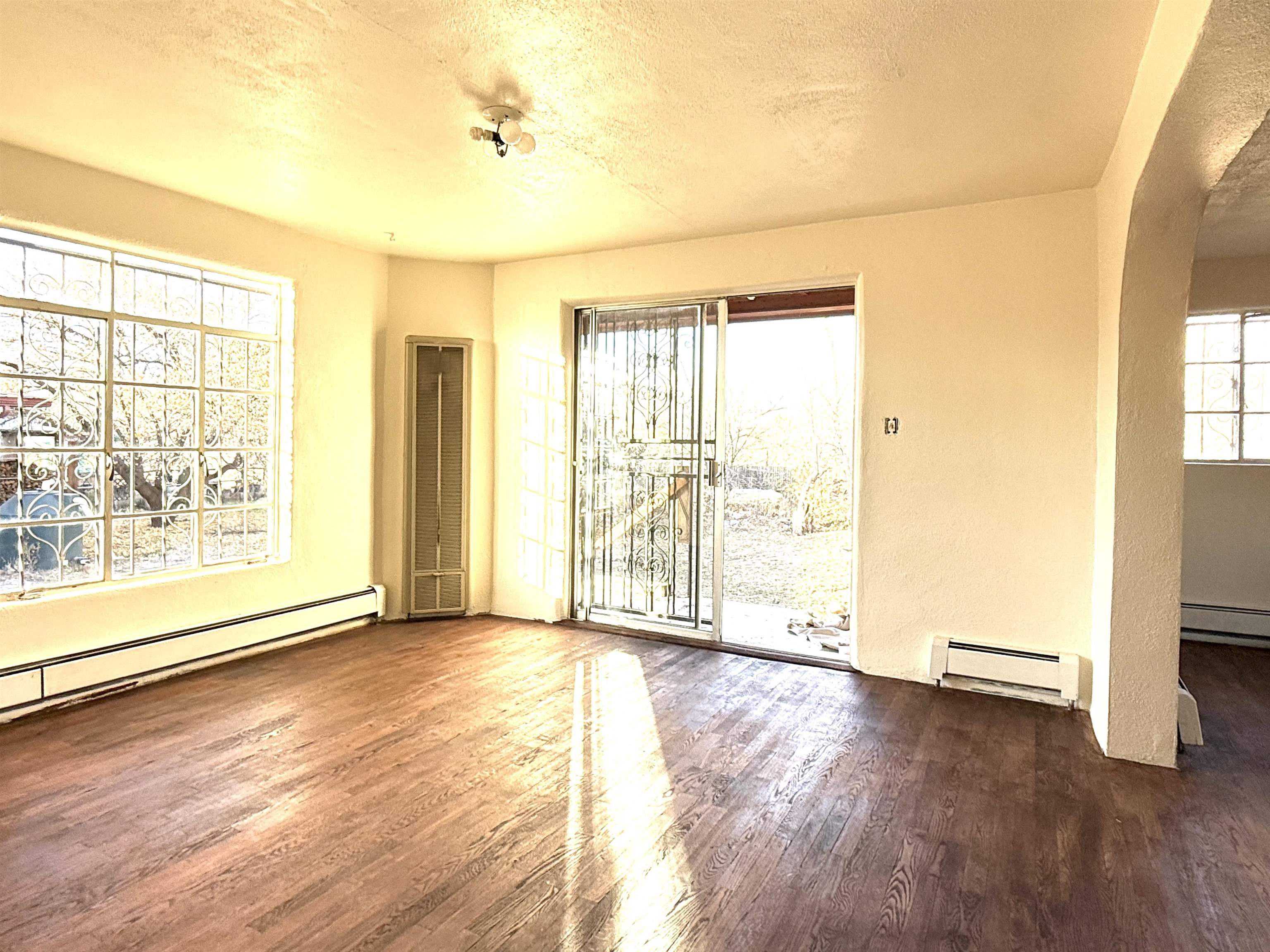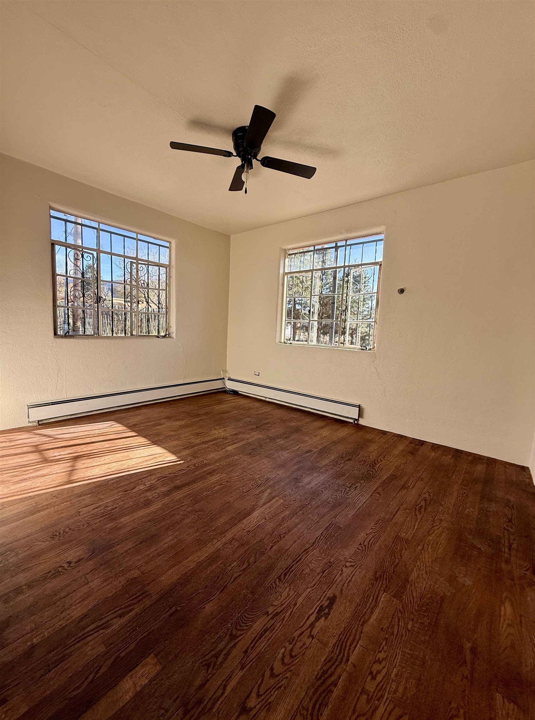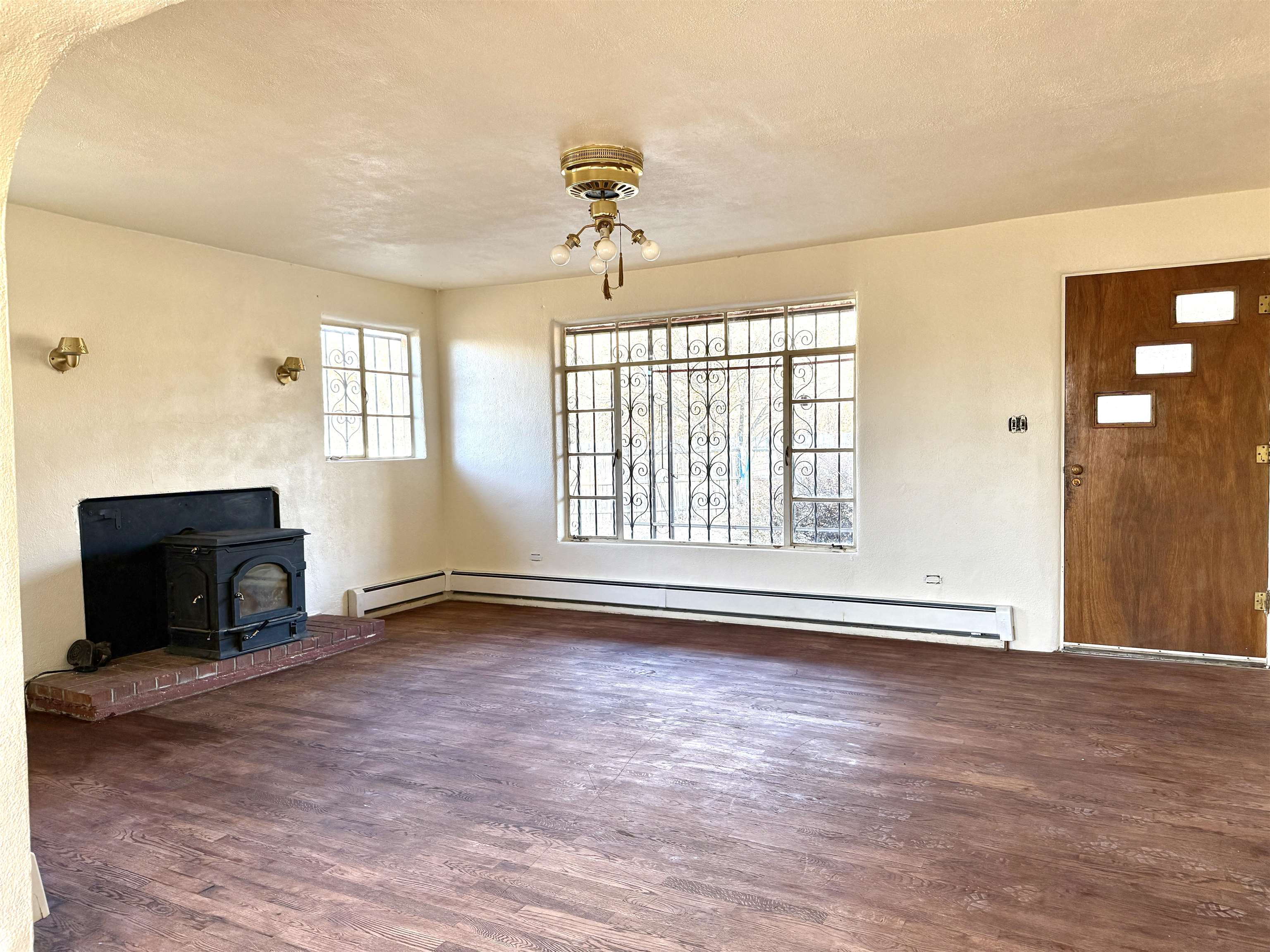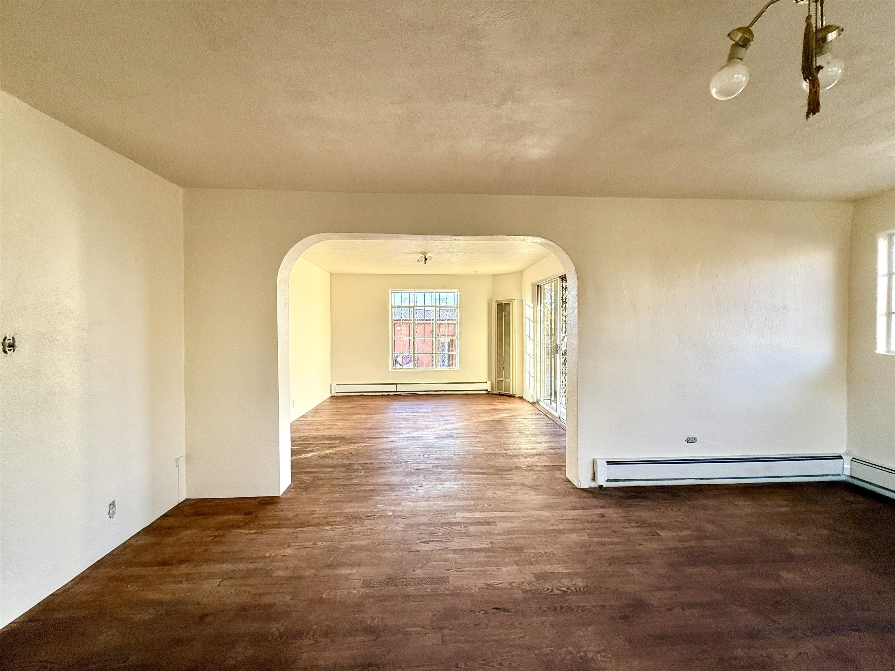A rare opportunity to own two charming and recently remodeled adobe homes 1+miles from the Plaza, offering over 2,500 sq ft of combined living space, a basement and an attic. The 1950s bungalow style main house (1,400+ sq ft) features original hardwood floors throughout, colorful vintage accents, three bedrooms, one bath, two porches, and practical extras including a carport, basement, attic, and laundry. The eco friendly 1910s casita (1300 sq ft) offers two bedrooms, one bath, remodeled kitchen, bamboo floors, and a high-quality water catchment and filtration system. Cozy wood stoves warm both bedrooms. A deal scenario for a family with room to grow, long-term rental income, multi-generational living, or a flexible live-work space. Outdoors, you’ll find fruit trees, planting beds, storage sheds, and a spacious, secluded yard in a quiet setting that remains conveniently near town. Come see this truly exceptional mix of ease, practicality, and potential.