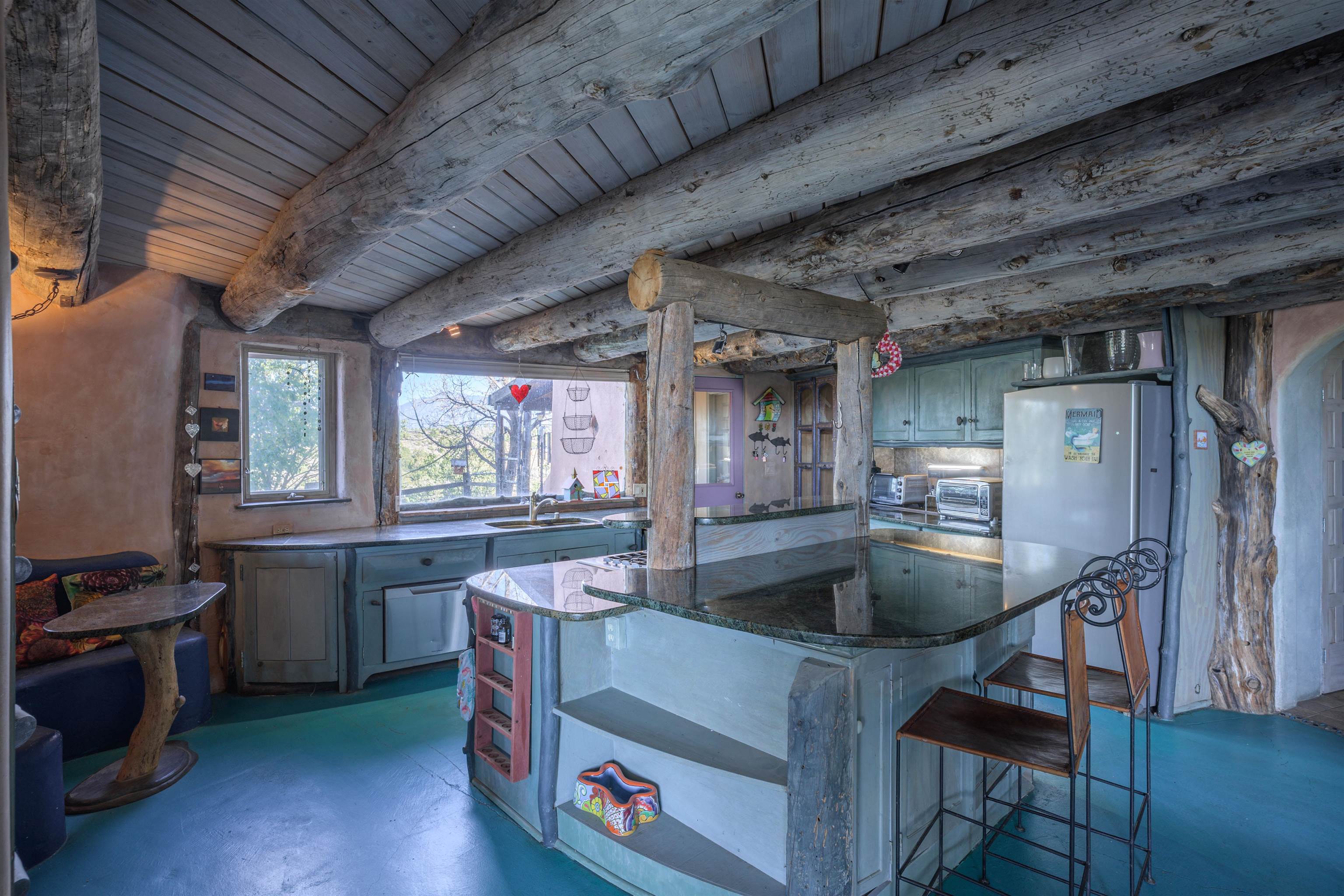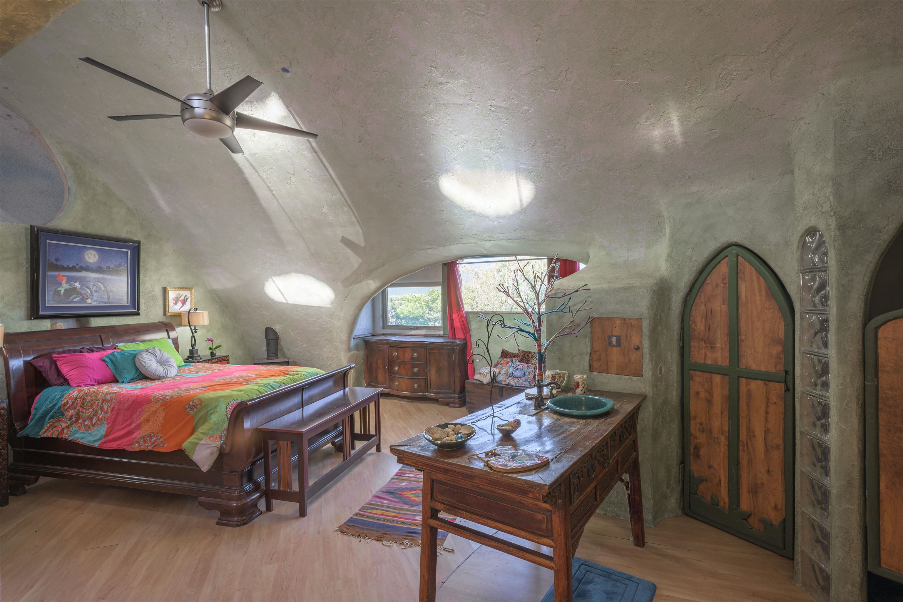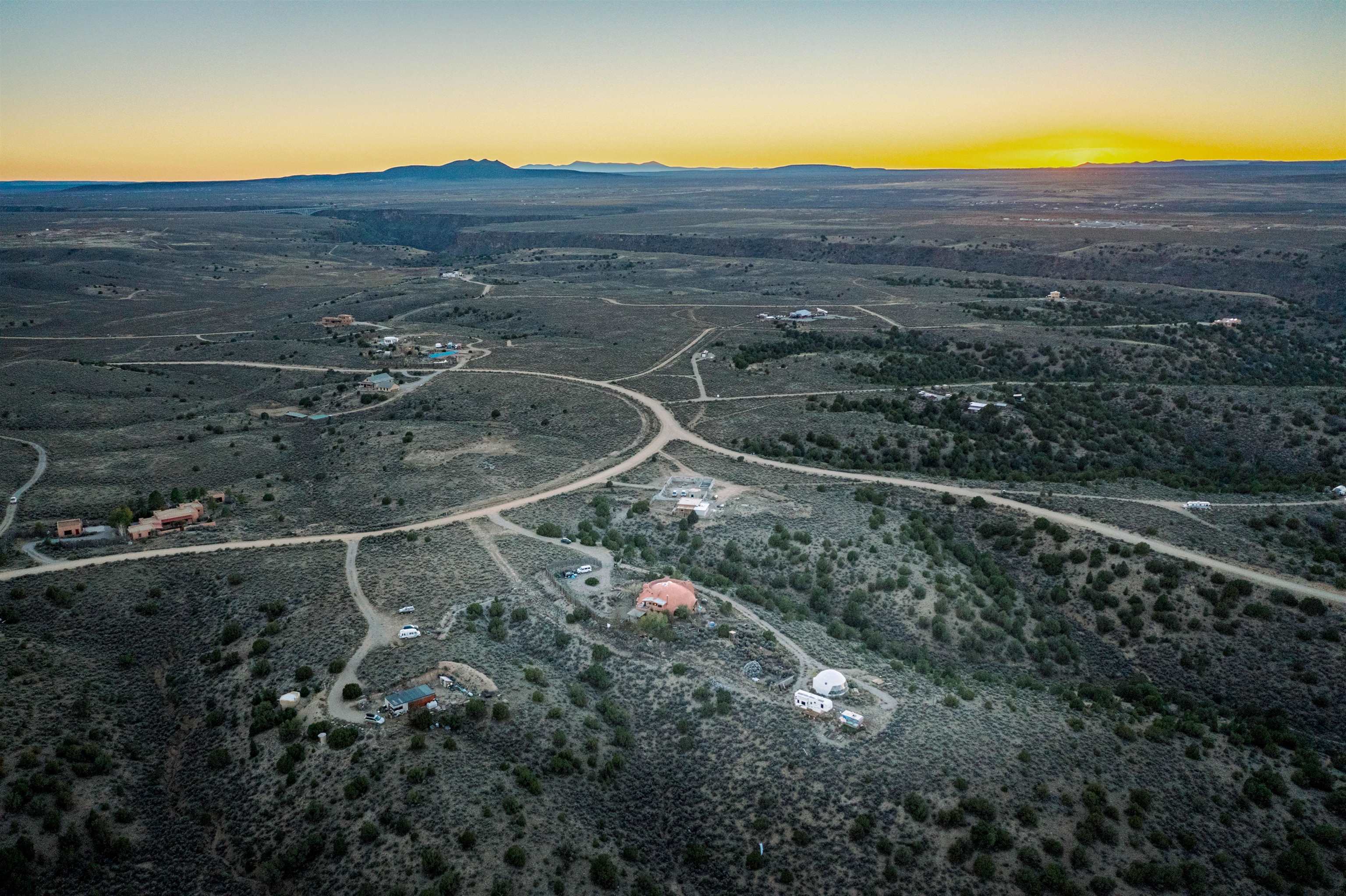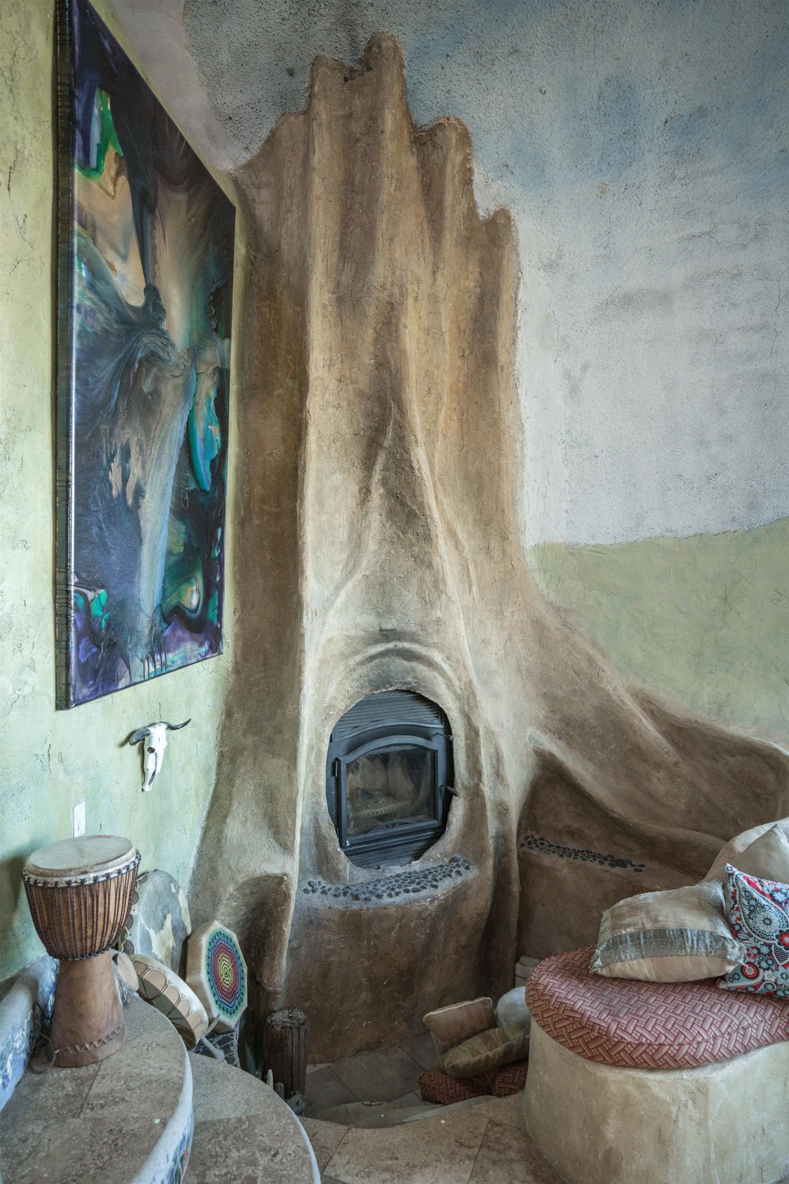 A Dreamy & Wondrous Masterpiece in Taos, New Mexico as Featured in Dwell Magazine, Homes.com, and more...Perched on five-plus pristine and private high-desert acres at the end of Tune Drive, you will discover "The Dreaming Dome," a dreamy and wondrous architectural masterpiece. Truly whimsical and delightfully outlandish in all the best ways, this structure—as featured on HGTV and in Parade Magazine as "The Most Beautiful House in America"—is more of a sculpture than your standard residence. Inspired by the rainforests of Costa Rica and the New Mexico alpine high-desert, this sustainable, monolithic designed dome includes a yoga hut in the backyard, engulfed by the most stunning views the region has to offer. Upon stepping inside this architectural wonder, you are greeted by a visual dreamland defined by 35-foot ceilings, hand-finished adobe-style walls in rich earth tones, hand-carved doors, travertine tile, luxurious stained-glass chandeliers, and high-end CUSTOM finish-work throughout. The spacious interior features vibrant mosaic paths, hand-painted murals, cedar trunk columns with hanging monkeys, toucans, and sloths, beside a romantic mystic tree wood-burning fireplace in the den with a black river rock bancito, and a dramatic painted sky ceiling flooded with circular skylights. The extra-large, half-moon juniper-framed window is as special as can be, offering equally incredible views and providing natural warmth and light from Mother Sun to compliment the radiant heated floors. The functional and stylish kitchen, just beyond the pond (now an atrium), includes Taos turquoise floors, soft green cabinets with marble countertops embedded with stainless steel appliances, a central island bar, beneath the traditional vigas beam ceiling. The adjacent dining room comfortably fits the family and offers another charming gathering area. The home provides ample and elegant space, possessing three distinctive bedrooms with three and a half eclectic bathrooms, including a private second-story primary ensuite straight out of a Disney movie, complete with a fireplace, and accessed by a dazzling sculpted vine staircase that leads up through your bedroom to a walk-in shower and access to a private hot tub deck—perfect for stargazing under the big NM sky. Outside, you will enjoy all of your time taking in the Land of Enchantment, tending to the garden under the cottonwood trees, and entertaining and bewildering your guests en su casa. Some of life's sweetest memories will be created here, while kids and furry friends roam freely in one of the fenced yards, accessible through a convenient double-doggie-door. Fresh H2O from your own 900-foot private well from the aquifer below is a major plus for day-to-day living, providing some of the best-tasting water you will find. As for the location, it is simply unbeatable for adventure and relaxation, situated close to the Rio Grande River, near natural hot springs, a jaunt from Taos Airport, and not far from the Historic Taos Plaza, world-class skiing and snowboarding at Taos Ski Valley, and endless hiking, biking, fishing, and bird watching trails. Even the wildlife will find their way to this magical wonderland while you lead a yoga class or mold pottery in the Yoga Dome, make bread in the blue horno, drink your morning coffee or evening wine, and experience the sweetest sunsets on our planet; and don't be surprised if an occasional hot air balloon emerges from the Gorge during a dreamy sunrise. This is custom luxury, eco-friendly, and fantasy, while submerged in nature, right here in Taos, New Mexico. Does it get any better? The answer very well might be no, so don't waste any time making this wonder of Taos, New Mexico your very own Reality.