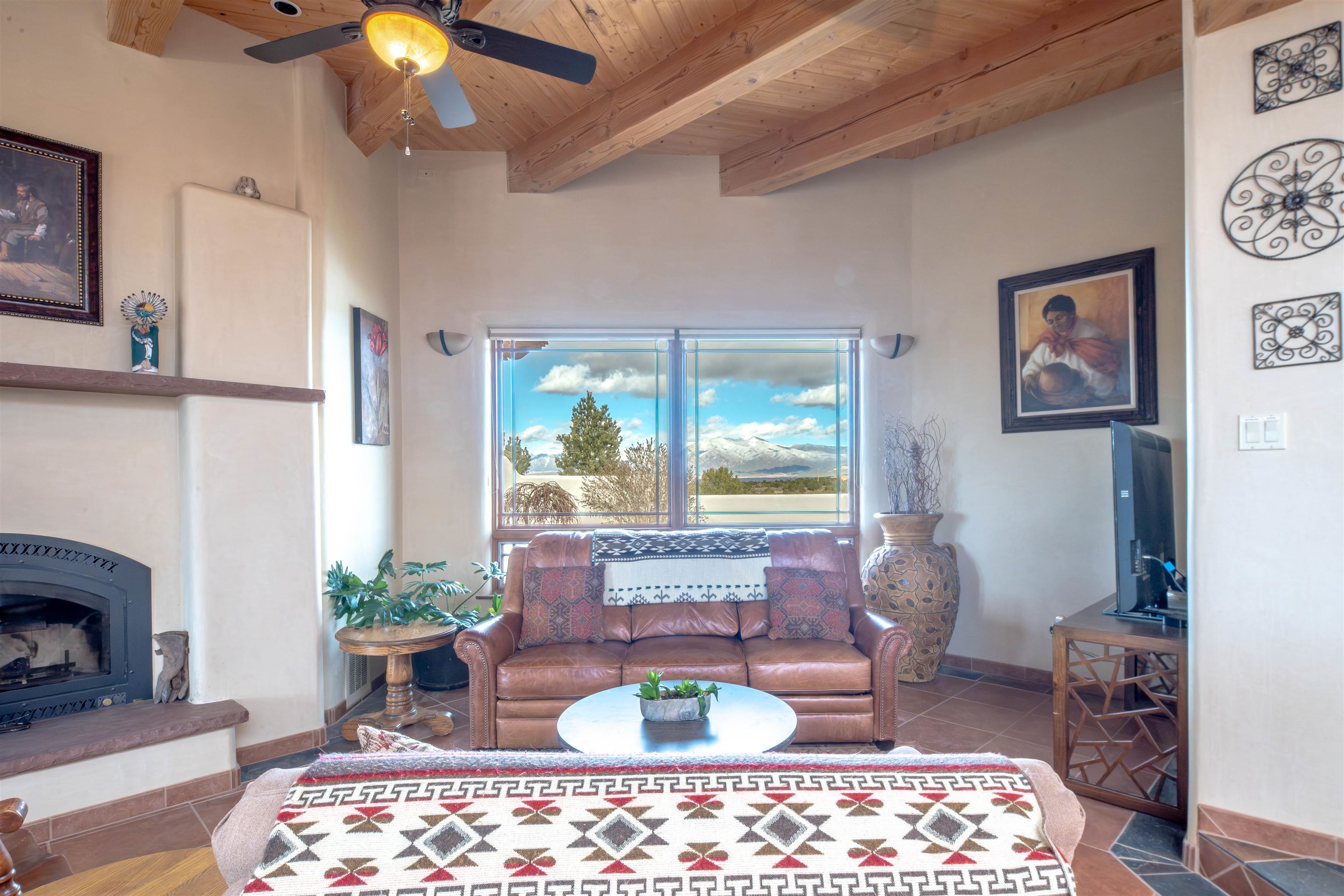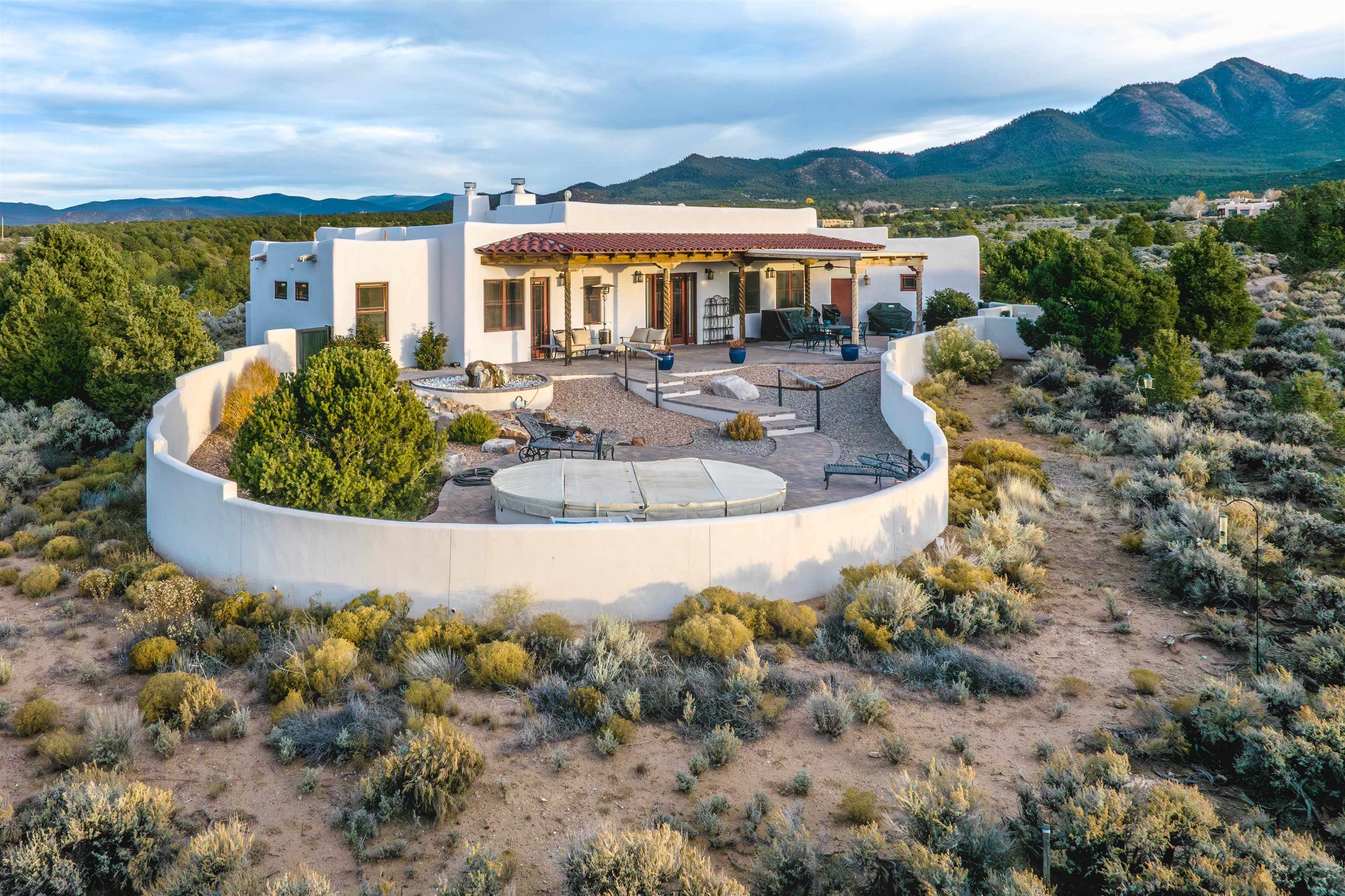 Welcome to one of the most breathtaking settings in northern New Mexico - a beautifully crafted 3-bedroom, 2.5-bath Rastra Block home on 10 pristine acres in the exclusive El Mirador neighborhood of the Taos Stakeout area. Designed and built by respected builder Mark Wilson, La Luz del Fuego (Fire Light) is a custom residence thoughtfully positioned to capture panoramic views of the Rio Grande Gorge, Taos Mountain, the Pedernal, Truchas Peaks, and the rolling foothills that make this region so iconic. Rastra Block construction ensures superb energy efficiency, staying warm in the winter and cool in the summer, while an upscale kitchen, open-concept living and dining areas, and well-designed split floor plan add to the home’s comfort and livability. The primary suite features its own fireplace and a spa-like bath. Outside, the transformation of the backyard into a true sanctuary is a masterpiece of design and craftsmanship. Enclosed by a beautifully finished stucco wall, this extraordinary outdoor living space features a custom 10-person hot tub/spa, a rock fountain with a faux stream and waterfall, extended portals for shaded dining, a custom staircase and railings, paver patios, elegant landscape lighting, drip irrigation, and Pentair remote-operated controls for the spa and water features. The result is a serene, private retreat that’s as stunning by day as it is magical at night. This property has been meticulously maintained and thoughtfully improved over the years, including a custom metal driveway gate, upgraded fiber internet, and front yard landscaping and irrigation. A full TPO roof replacement with redecking and warranties was completed in 2021, and a whole house restucco was completed in 2022. New tile flooring was completed in bedrooms two and three in 2023, and continued improvements in 2025 included a rebuilt flagstone walkway, spa system maintenance, and septic service. A rare offering in one of Taos’ most sought-after view corridors, this home blends exceptional construction, modern upgrades, and extraordinary outdoor living - all set against some of the most awe-inspiring scenery in New Mexico. This listing has an interior/exterior Matterport video and exterior drone video. Don't let this one pass you by.