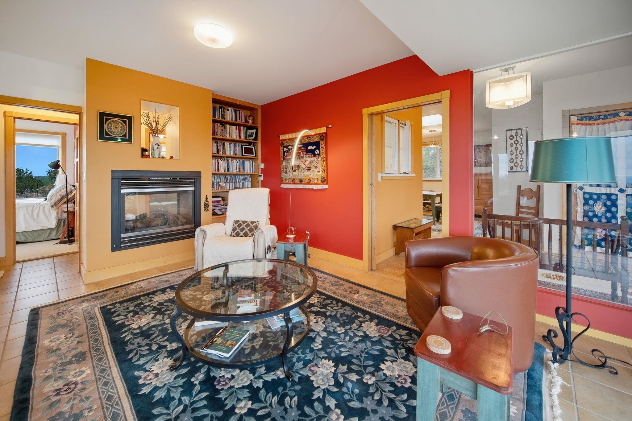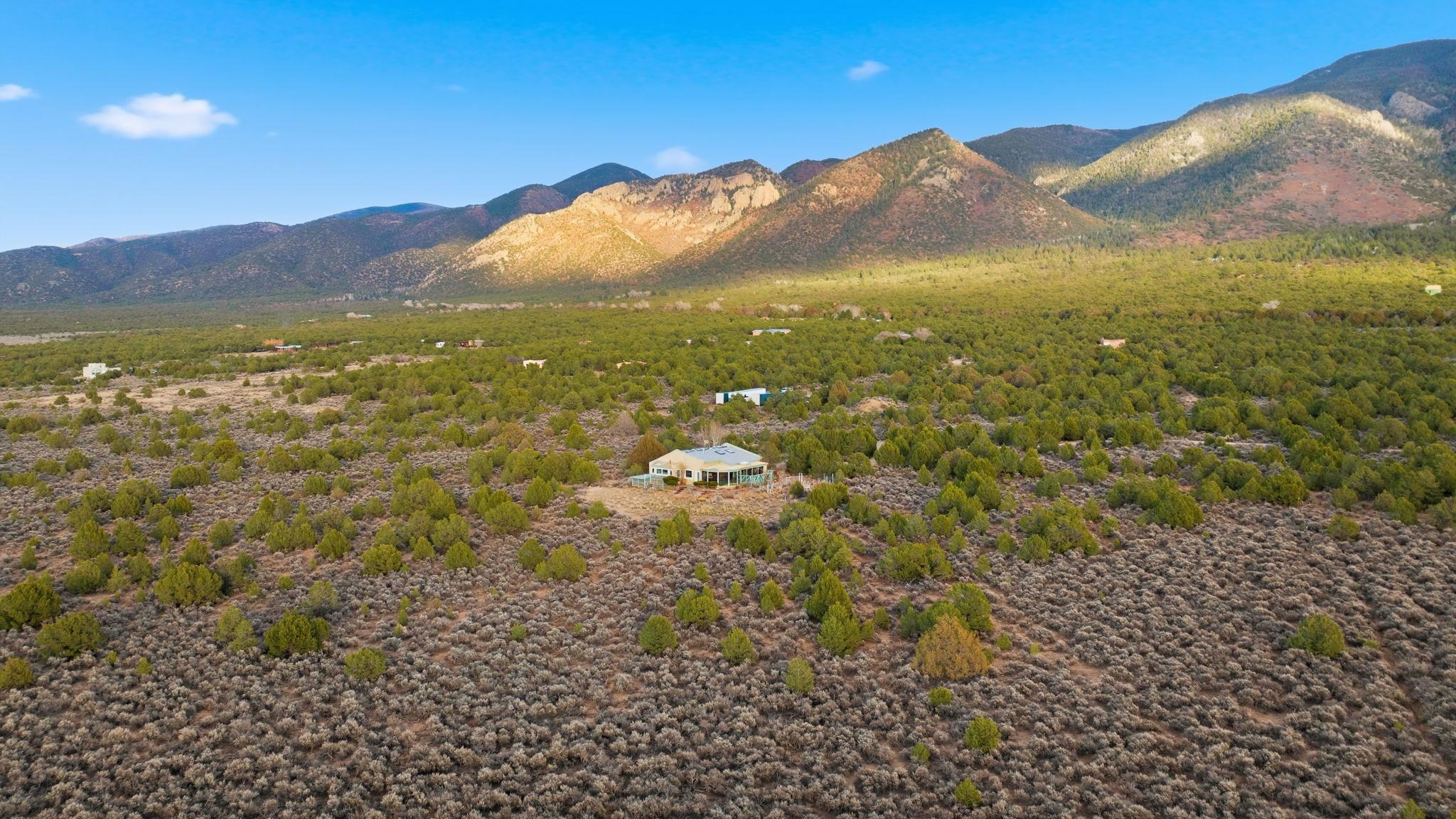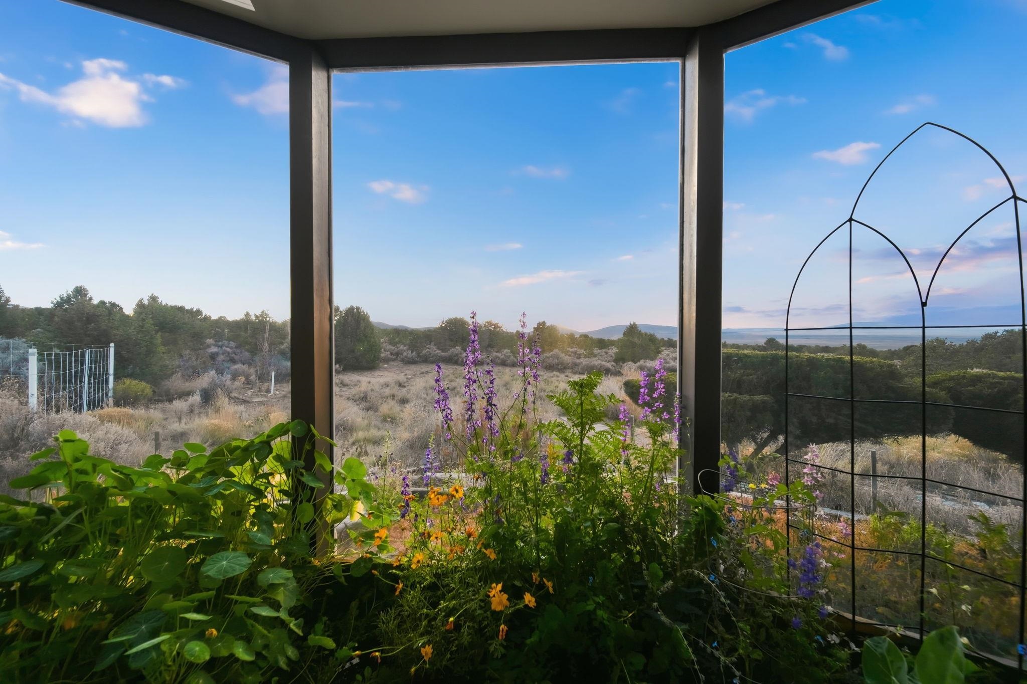 Light-Filled High Desert Sanctuary in El Rito/Latir ~ A true masterpiece of high desert architecture awaits at this stunning sanctuary, privately tucked at the end of a gated road on 5.78 acres in El Rito/Latir. Nestled in the foothills of the Sangre de Cristo Mountains, the vista encompasses the Northern Rio Grand National Heritage Area, Ute Mountain, San Antonio Mountain, Mt. Blanca in Colorado, and more ranges that offer the finest views Northern New Mexico has to offer. This architect-designed, custom 2-bedroom, 2-bath residence (2006) is defined by superior 2x6 construction and a focus on views and light. The sunroom and greenhouse provide exceptional passive solar gain while offering a space for winter food and summer flowers. Enjoy sunsets from the living room, and light from the twelve incredible skylights throughout the home that ensure every vaulted interior space is bathed in natural light. Impeccable craftsmanship and thoughtful care are evident inside, from the classy see-through living room fireplace and sophisticated recessed lighting to the fossil-filled travertine tile and artistic contemporary Southwestern finishes. The gourmet kitchen boasts handmade, German-inspired cabinetry, ample counter space, and top-tier energy-efficient stainless steel appliances, seamlessly integrating function and artistry. Thoughtful luxuries include extensive built-in bookcases, wool carpet, a Japanese soaking tub, and a dedicated, sun-drenched office. The practical features continue with an automatic-door one-car garage and a dual-fuel generator for reliable backup. Outside, a maintenance-free composite deck wraps half the home, ideal for sipping sunrise coffee or evening patio entertaining. The pristine, low-maintenance landscaping features local sculptures, perennials, an automatic sprinkler system, and an orchard protected by electric fencing. A handsome custom metal dog kennel accessible via the laundry room doggy door is perfect for your furry friends to play while you relax and absorb world-class sunsets and big, starry night skies near the Latir Peak Wilderness. This unique property is minutes from world-class skiing at Taos Ski Valley and Red River, the Rio Grande Wild Rivers Recreation Area, and the RCCLA Rio Costilla Park and Campground for superb hiking, fishing, and camping. The Kagyu Mila Guru Stupa is just around the corner for meditation and prayer, downtown Taos is a lovely drive South for shopping and gourmet dining, and Colorado nature or Denver amenities are an easy outlet North. This is your chance to own a piece of New Mexico magic at your very own high desert mountain sanctuary.