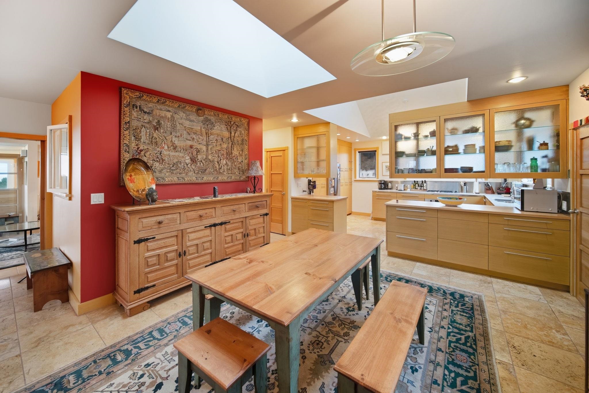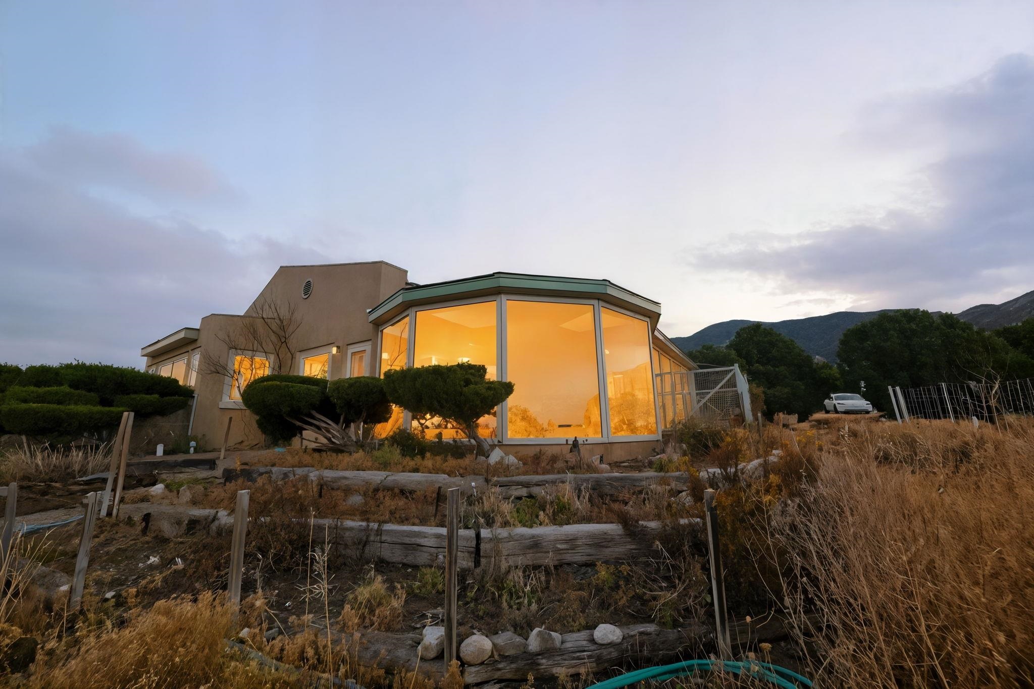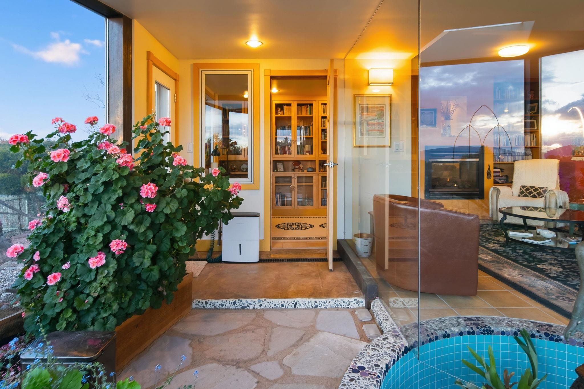 Light-Filled High Desert Sanctuary in El Rito/Latir ~ A true masterpiece of high desert architecture awaits at this stunning sanctuary, privately tucked at the end of a gated road on 5.78 acres in El Rito/Latir. Nestled in the foothills of the Sangre de Cristo Mountains, the vista encompasses the Northern Rio Grand National Heritage Area, Ute Mountain, San Antonio Mountain, Mt. Blanca in Colorado, and more ranges that offer the finest views Northern New Mexico has to offer. This architect-designed, custom 2-bedroom, 2-bath residence (2006) is defined by superior 2x6 construction and a focus on views and light. The sunroom and greenhouse provide exceptional passive solar gain while offering a space for winter food and summer flowers. Enjoy sunsets from the living room, and light from the twelve incredible skylights throughout the home that ensure every vaulted interior space is bathed in natural light. Impeccable craftsmanship and thoughtful care are evident inside, from the classy see-through living room fireplace and sophisticated recessed lighting to the fossil-filled travertine tile and artistic contemporary Southwestern finishes. The gourmet kitchen boasts handmade, German-inspired cabinetry, ample counter space, and top-tier energy-efficient stainless steel appliances, seamlessly integrating function and artistry. Thoughtful luxuries include extensive built-in bookcases, wool carpet, a Japanese soaking tub, and a dedicated, sun-drenched office. The practical features continue with an automatic-door one-car garage and a dual-fuel generator for reliable backup. Outside, a maintenance-free composite deck wraps half the home, ideal for sipping sunrise coffee or evening patio entertaining. The pristine, low-maintenance landscaping features local sculptures, perennials, an automatic sprinkler system, and an orchard protected by electric fencing. A handsome custom metal dog kennel accessible via the laundry room doggy door is perfect for your furry friends to play while you relax and absorb world-class sunsets and big, starry night skies near the Latir Peak Wilderness. This unique property is minutes from world-class skiing at Taos Ski Valley and Red River, the Rio Grande Wild Rivers Recreation Area, and the RCCLA Rio Costilla Park and Campground for superb hiking, fishing, and camping. The Kagyu Mila Guru Stupa is just around the corner for meditation and prayer, downtown Taos is a lovely drive South for shopping and gourmet dining, and Colorado nature or Denver amenities are an easy outlet North. This is your chance to own a piece of New Mexico magic at your very own high desert mountain sanctuary.