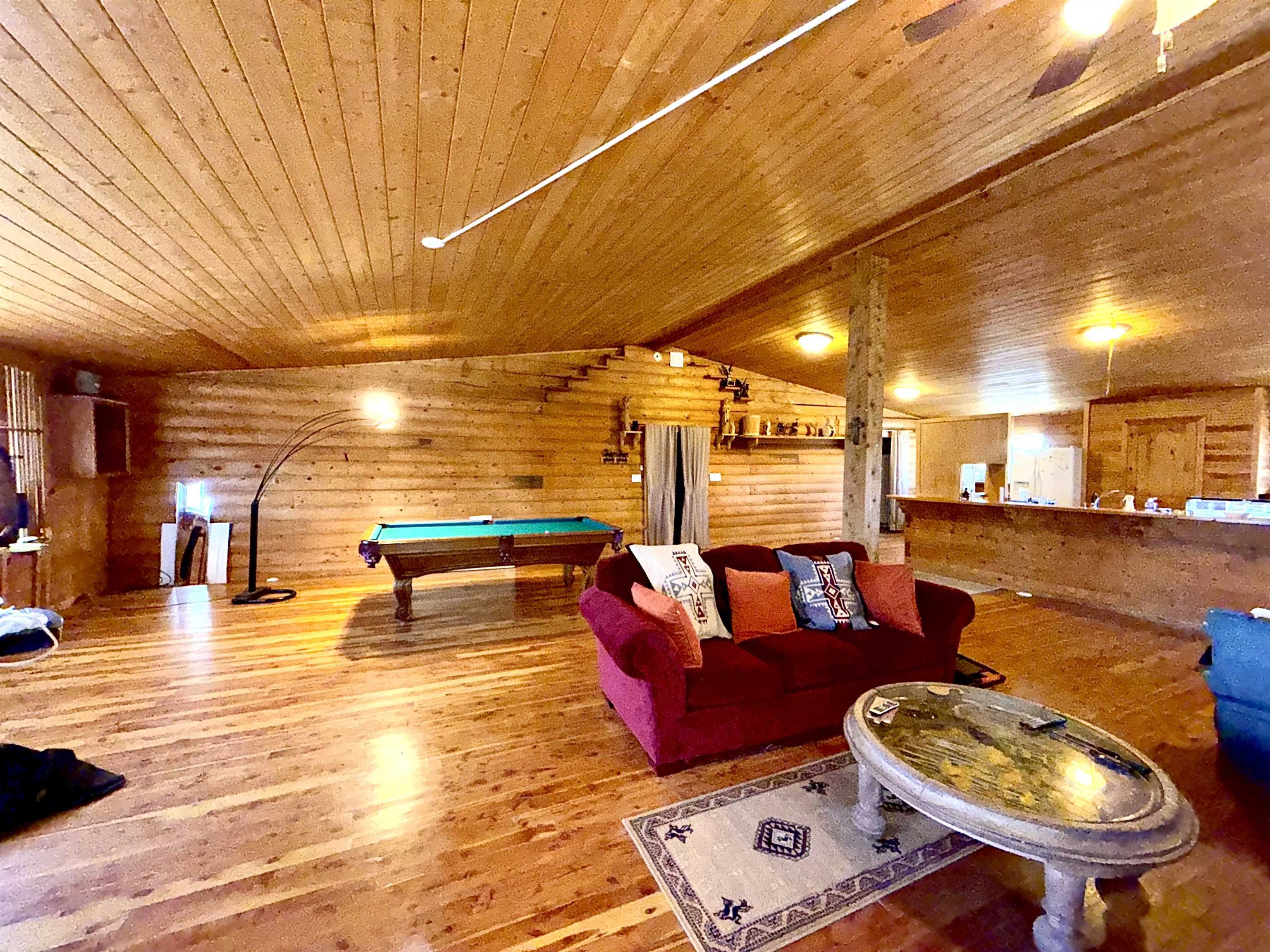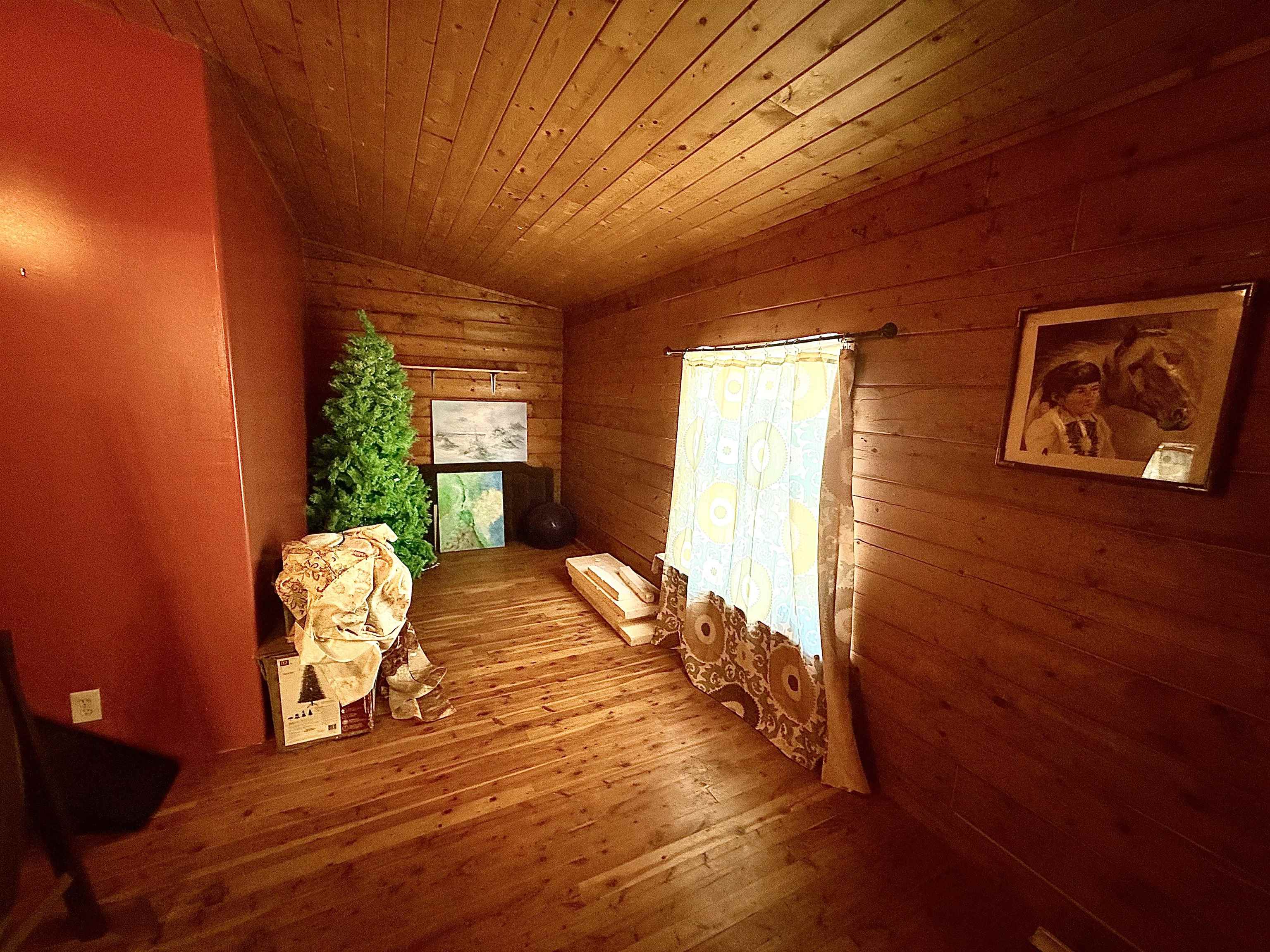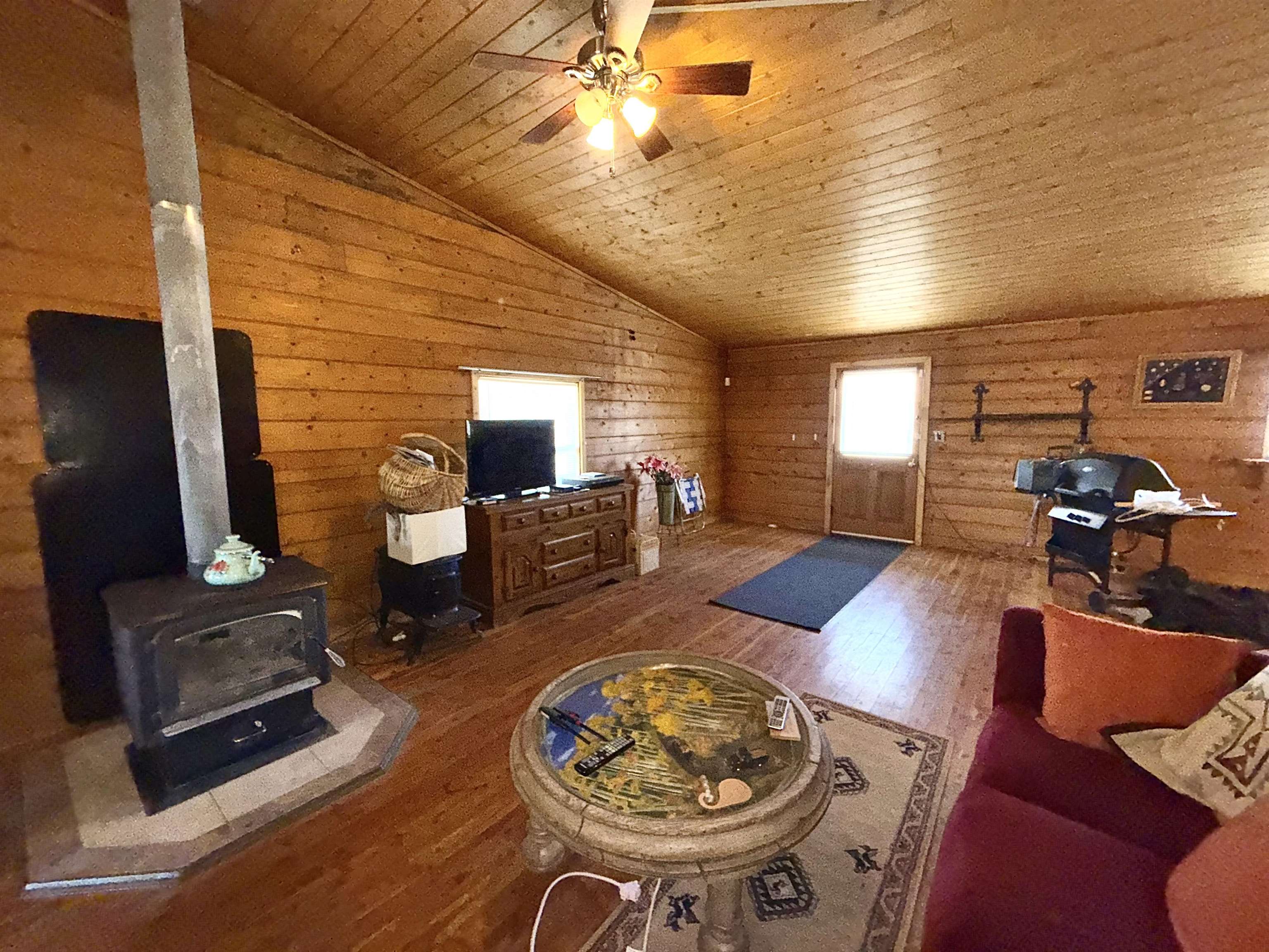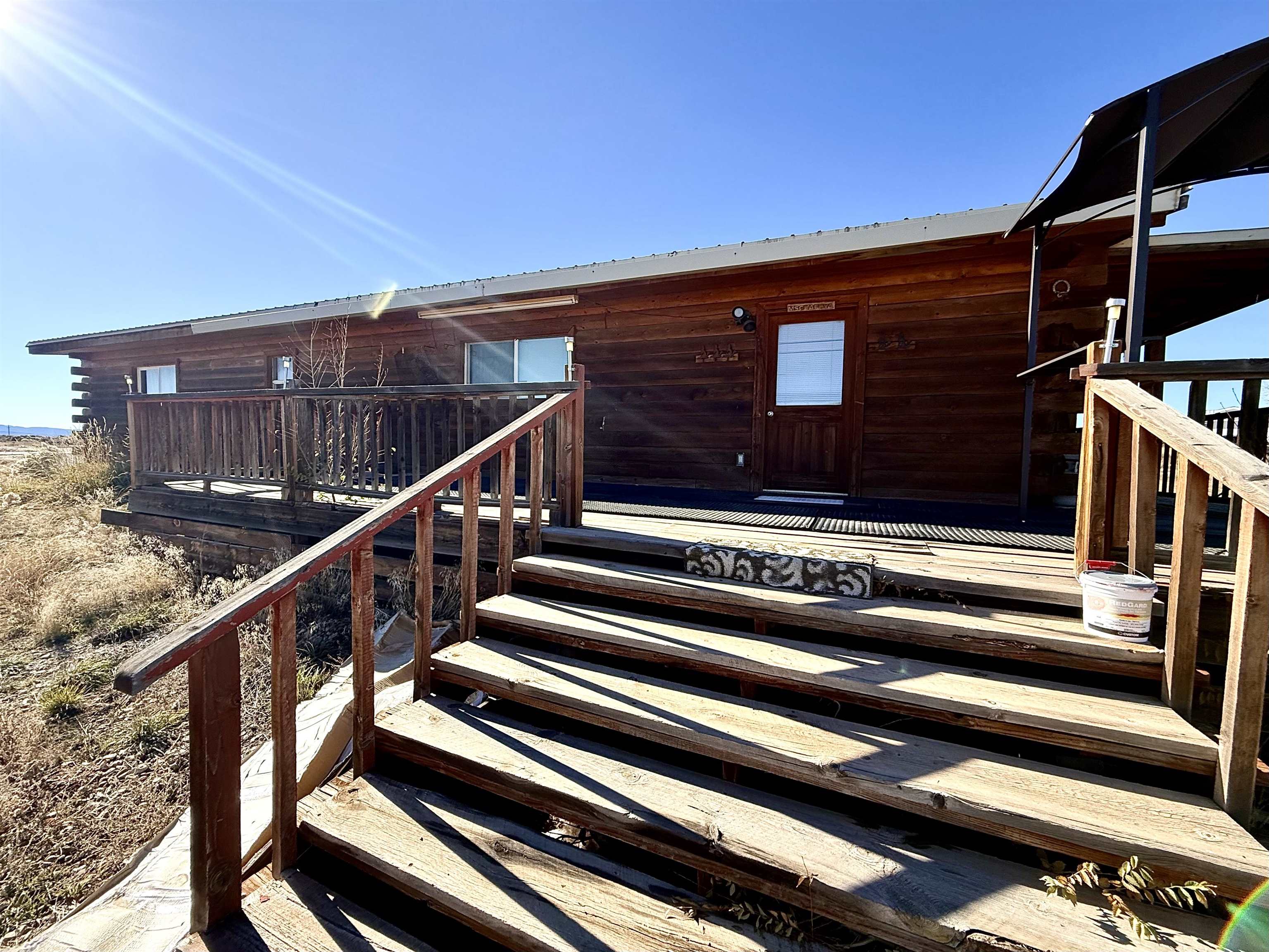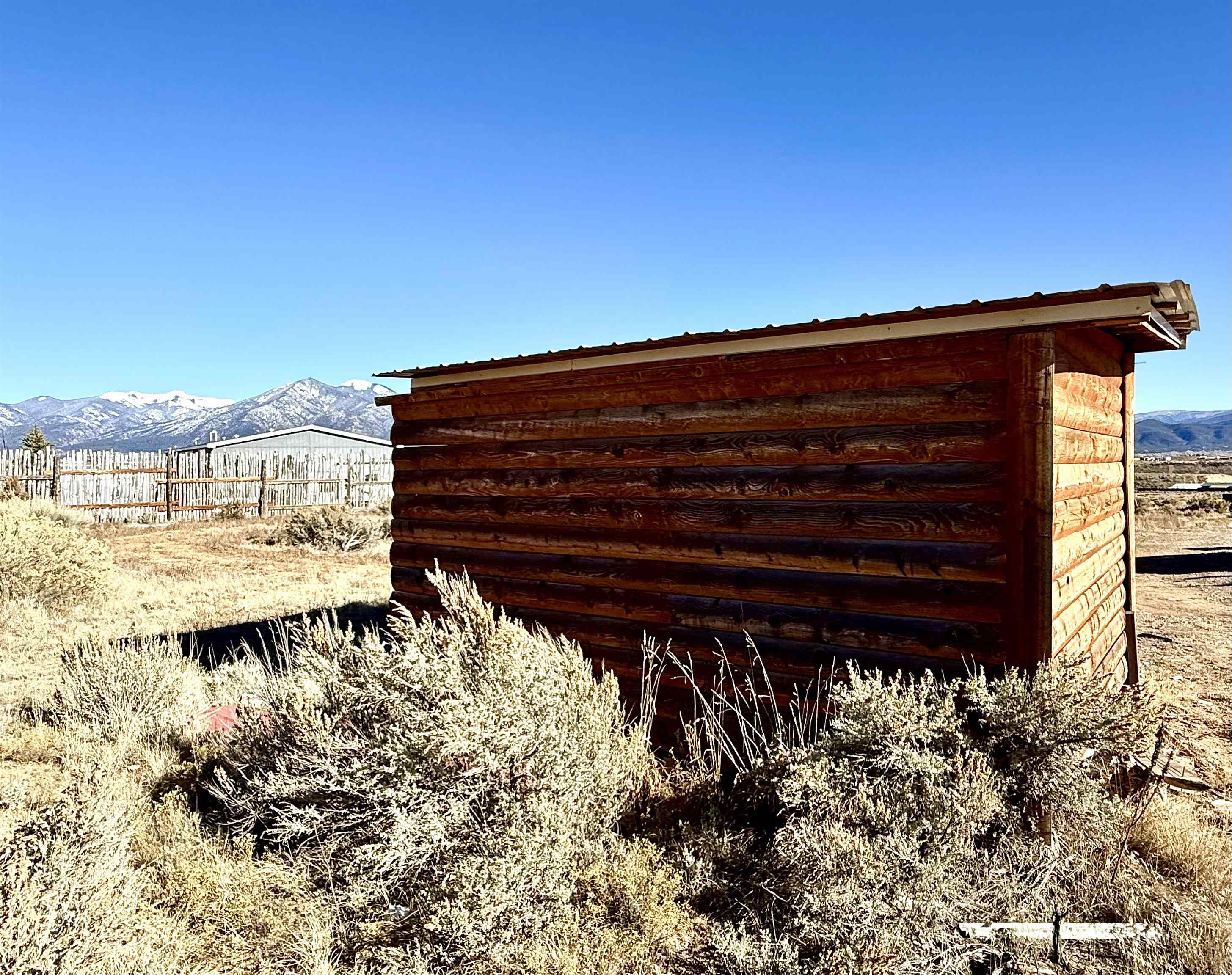 Charming log cabin with tons of character! Holds heat very nicely in the winter and stays cool in the summer. The master bedroom and living room have electric radiant heat and the 2nd and 3rd bedrooms have electric baseboards. There’s a wood stove and a third source of heat in the main living area - a space heater mounted to the ceiling. A nice, big open concept with so much square footage that an extra room could even be added if need be. A massive 2,700 square feet and a shed for storage outside. The home has a wrap around deck from the east to the north side and a covered porch at the north entrance. Perfect for BBQing, gatherings or watching the sunset on the mountains. A beautiful view from the porch and plenty of space to store wood for the winter. Some fencing on the north side but more fencing could be added to the entire property. Electrical outlets installed into the floor all over the home to easily decorate for Christmas or to create a reading nook with ambiance lights. Wood floors throughout, tongue and groove ceilings throughout most of the home and huge closets in each room! The master bedroom has a closet big enough to hold two twin size beds! Lots of room and immense amounts of character with the log cabin. Not far from town (14 minutes), the ski valley (32 minutes), Colorado (1 hour), or Santa Fe (1 hour, 26 minutes).