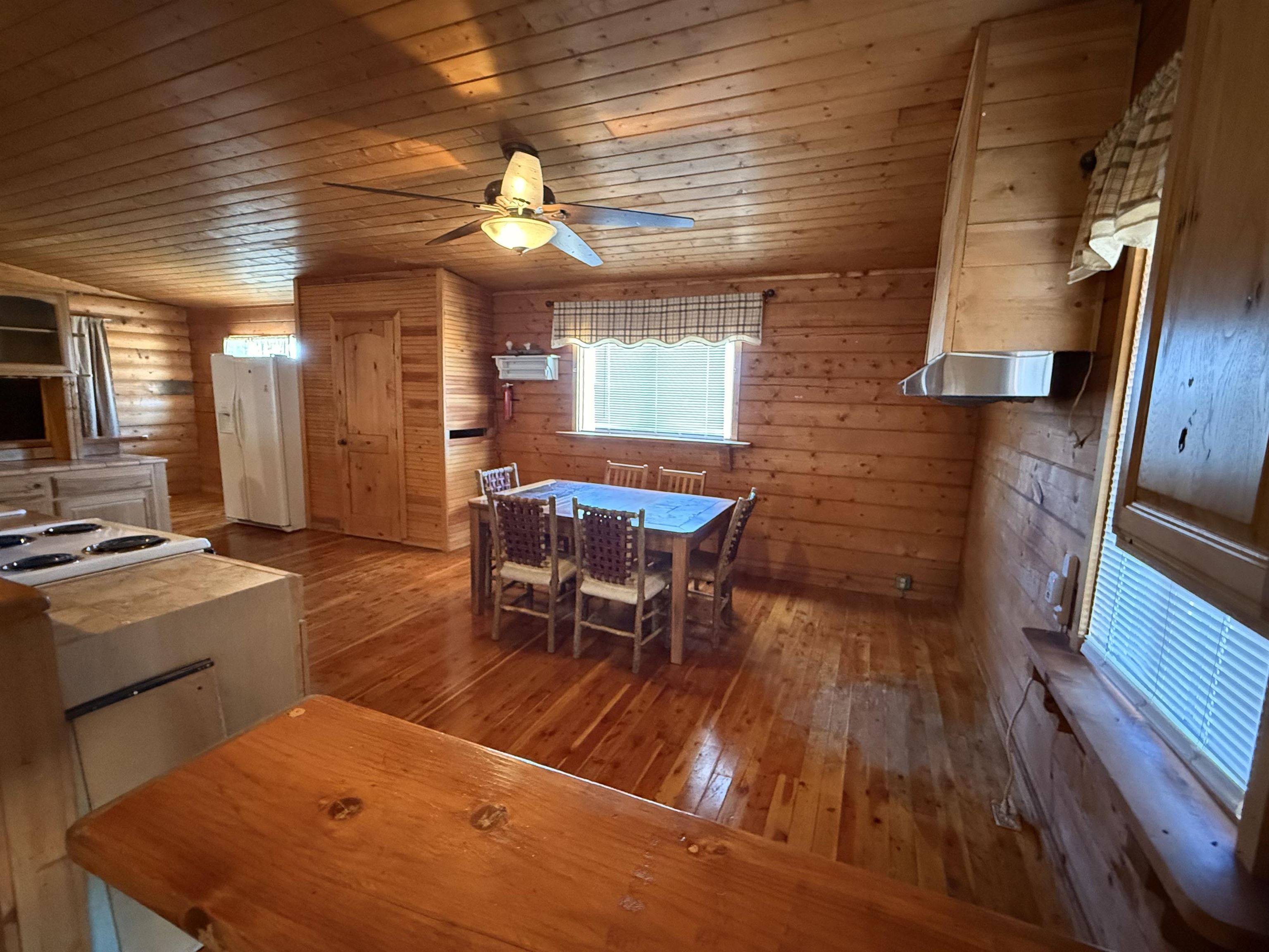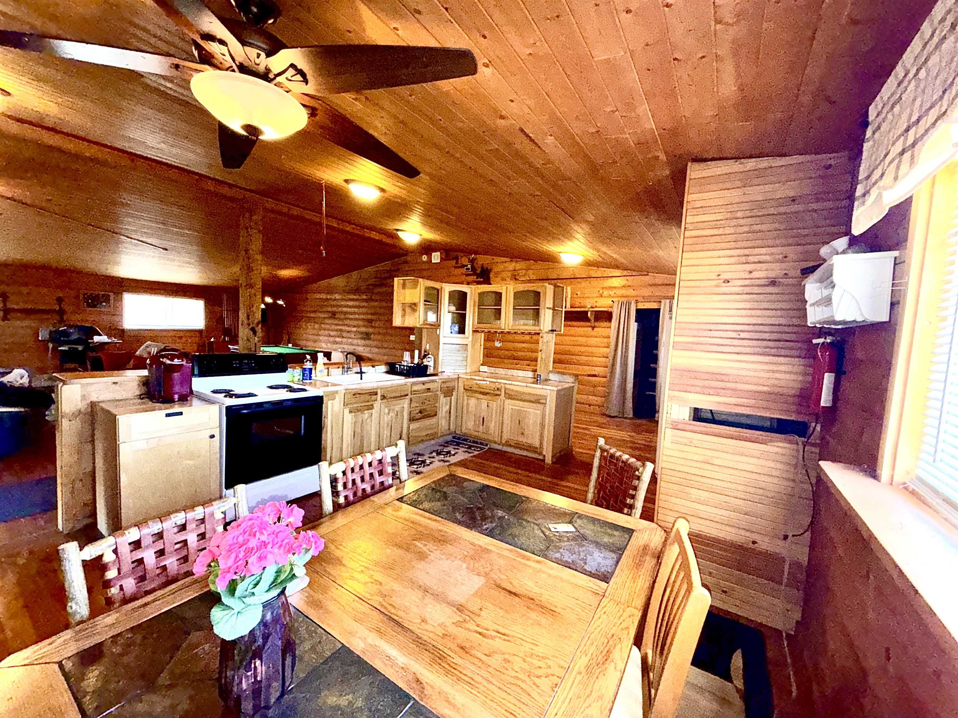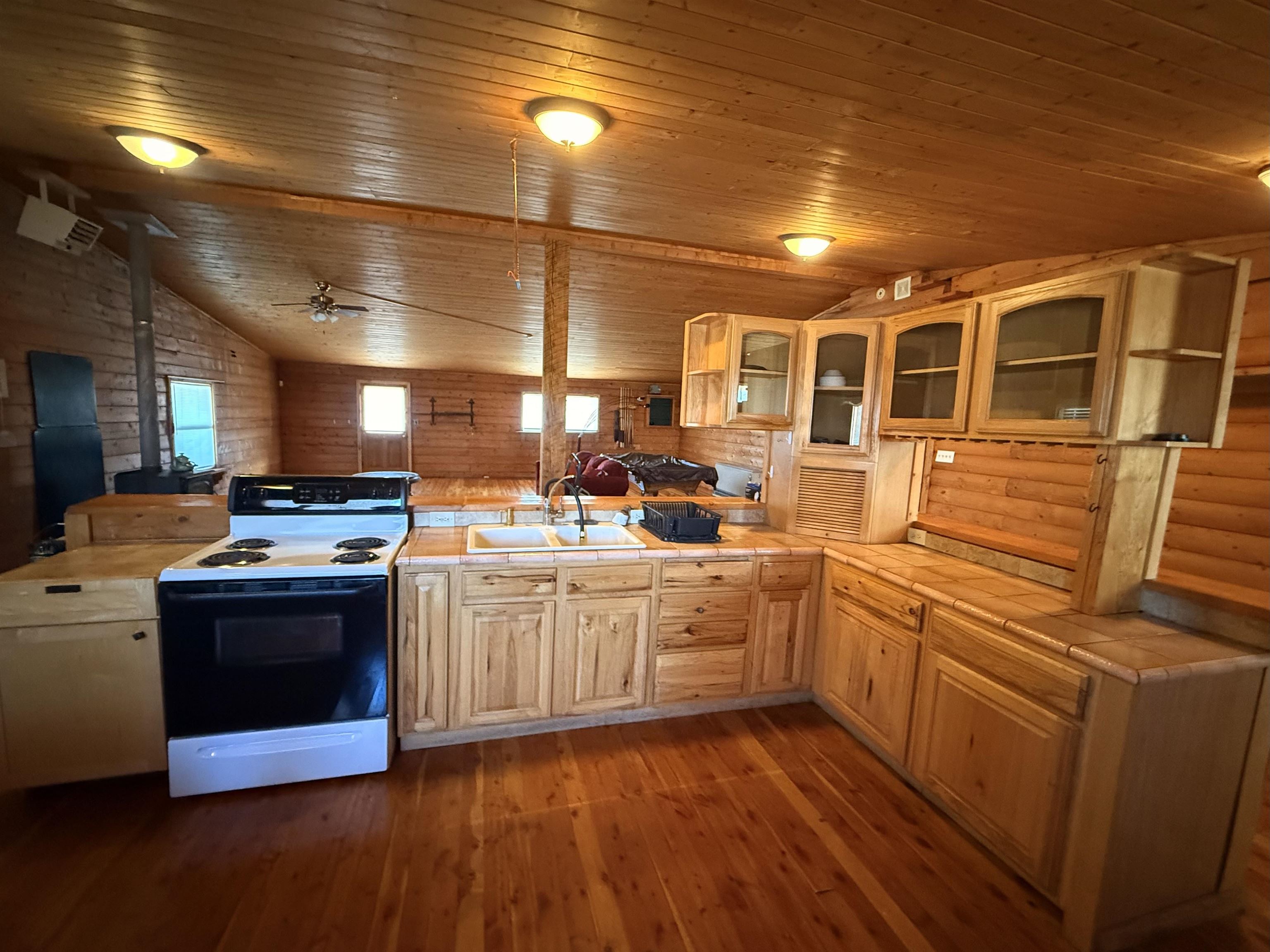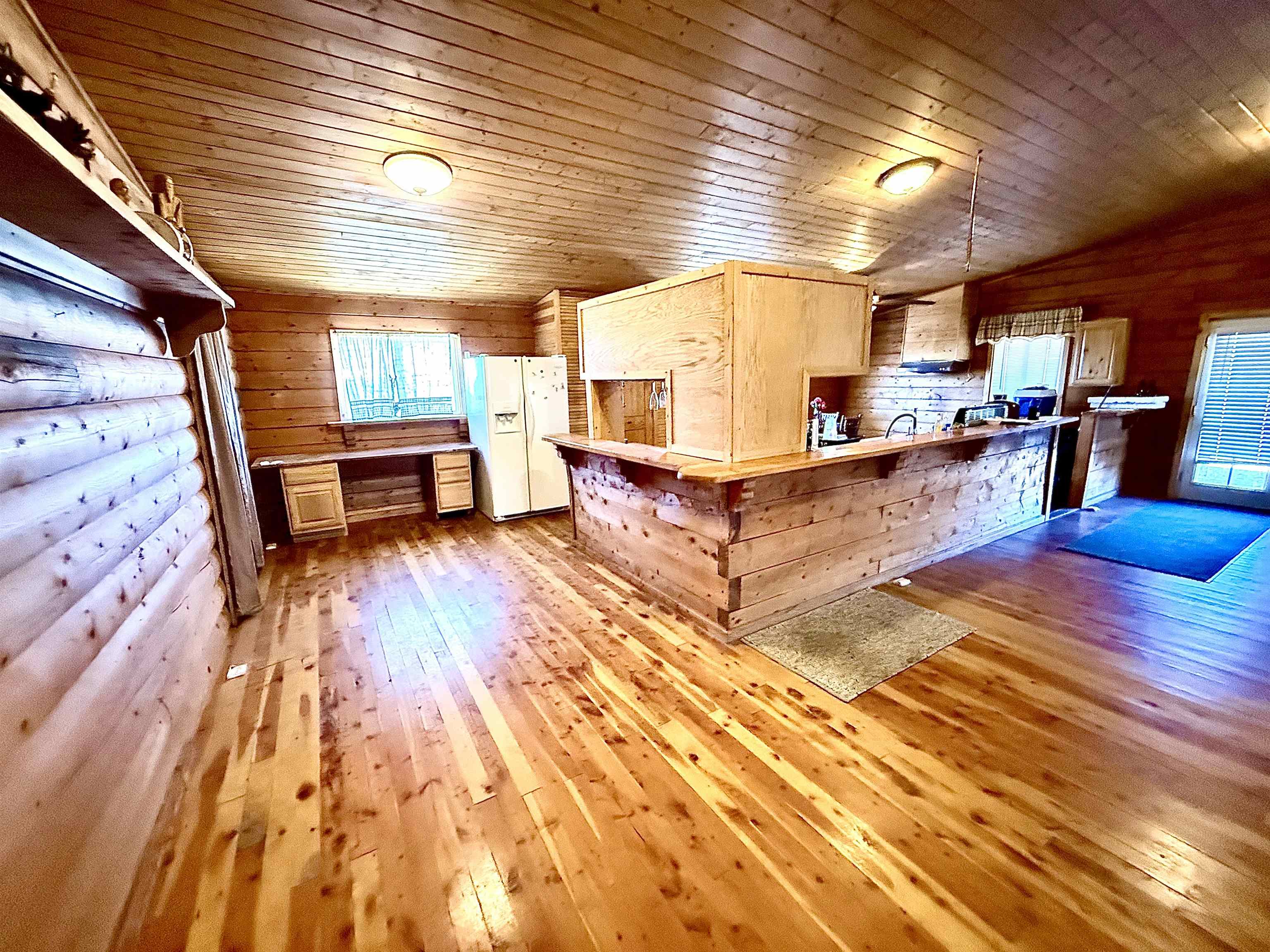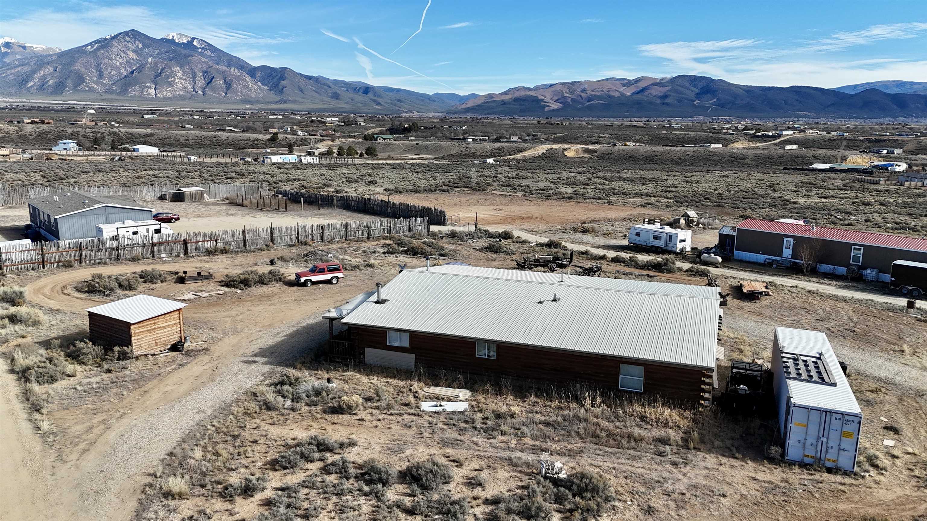 Charming log cabin with tons of character! Holds heat very nicely in the winter and stays cool in the summer. The master bedroom and living room have electric radiant heat and the 2nd and 3rd bedrooms have electric baseboards. There’s a wood stove and a third source of heat in the main living area - a space heater mounted to the ceiling. A nice, big open concept with so much square footage that an extra room could even be added if need be. A massive 2,700 square feet and a shed for storage outside. The home has a wrap around deck from the east to the north side and a covered porch at the north entrance. Perfect for BBQing, gatherings or watching the sunset on the mountains. A beautiful view from the porch and plenty of space to store wood for the winter. Some fencing on the north side but more fencing could be added to the entire property. Electrical outlets installed into the floor all over the home to easily decorate for Christmas or to create a reading nook with ambiance lights. Wood floors throughout, tongue and groove ceilings throughout most of the home and huge closets in each room! The master bedroom has a closet big enough to hold two twin size beds! Lots of room and immense amounts of character with the log cabin. Not far from town (14 minutes), the ski valley (32 minutes), Colorado (1 hour), or Santa Fe (1 hour, 26 minutes).