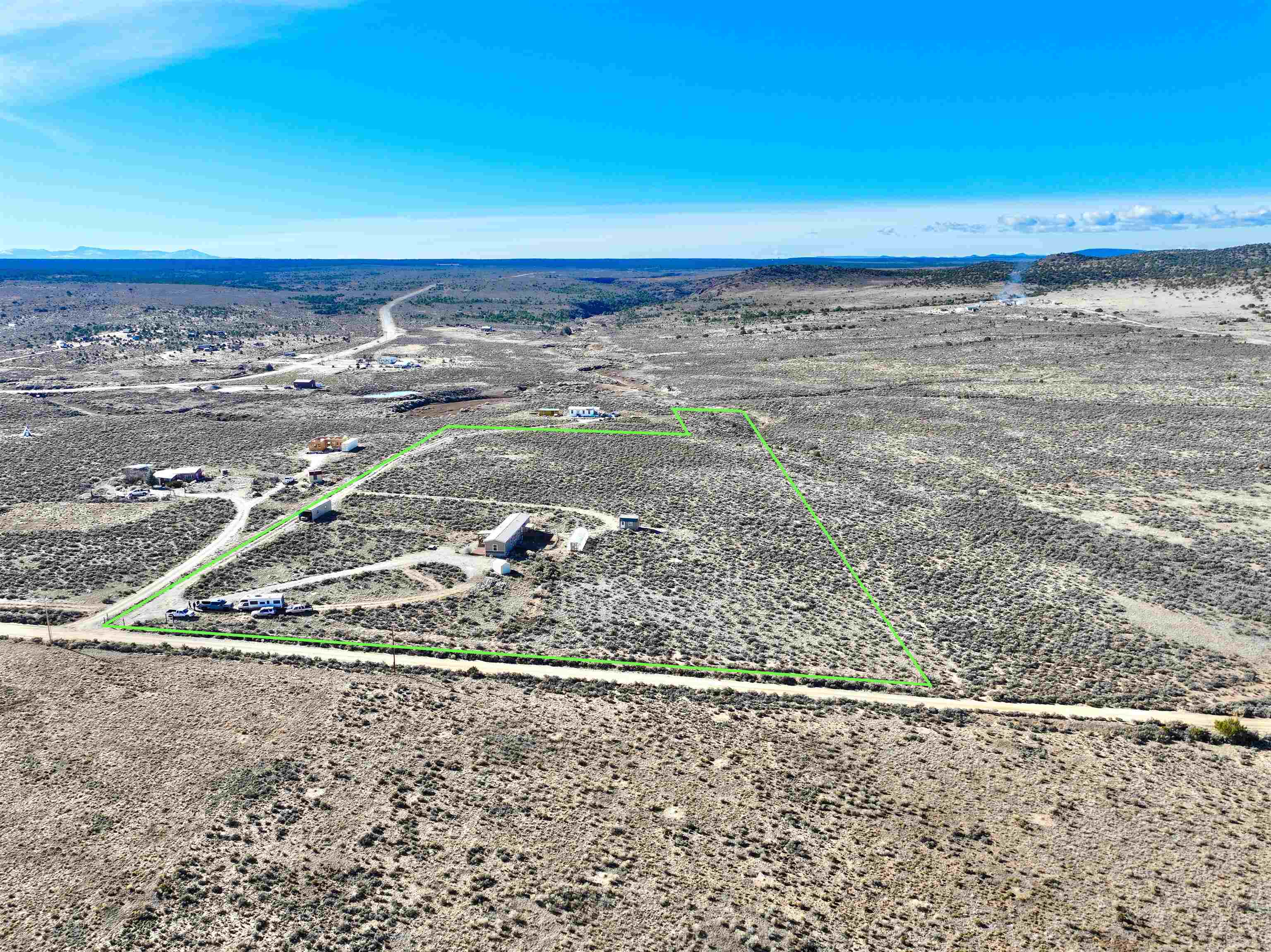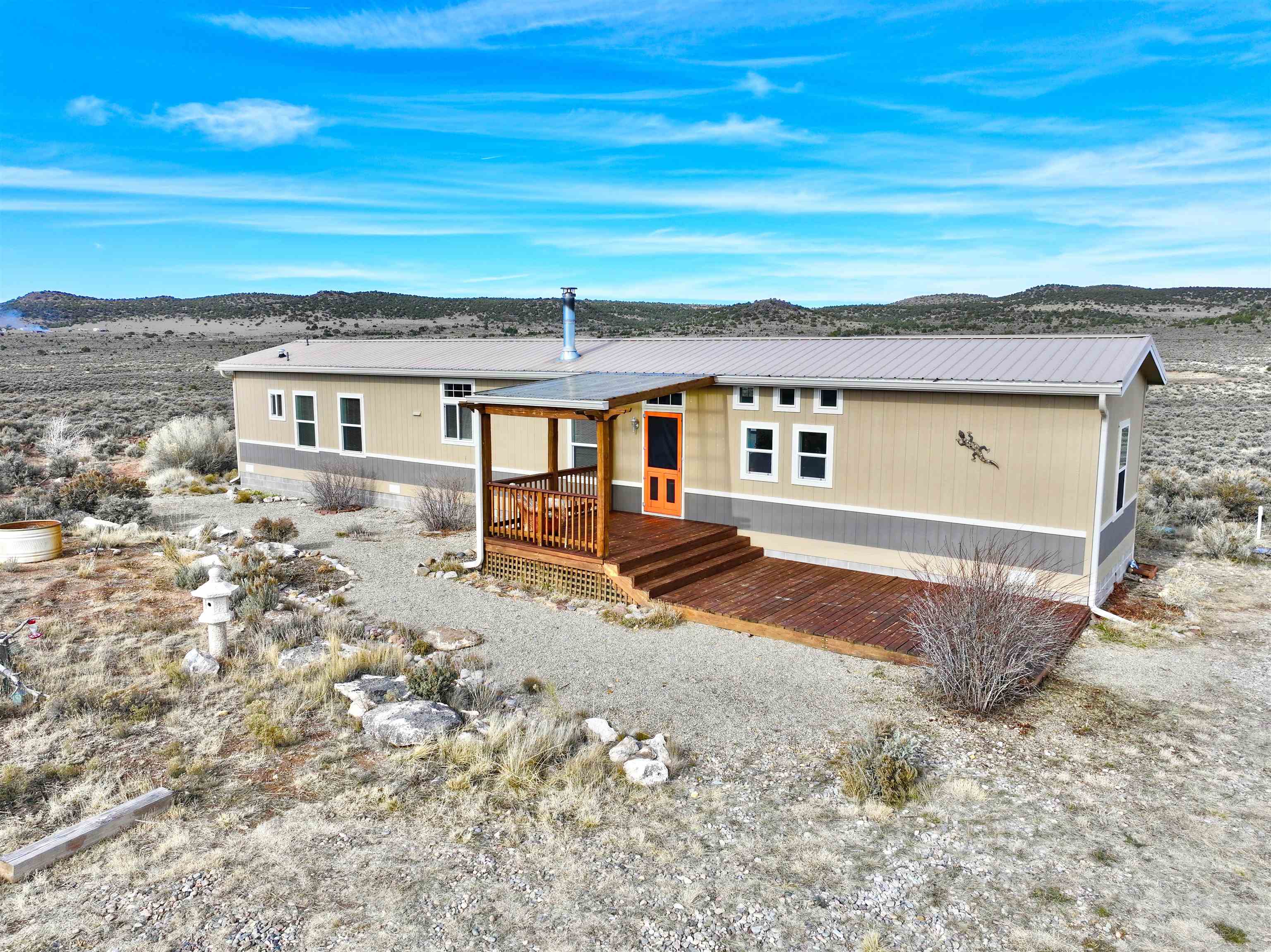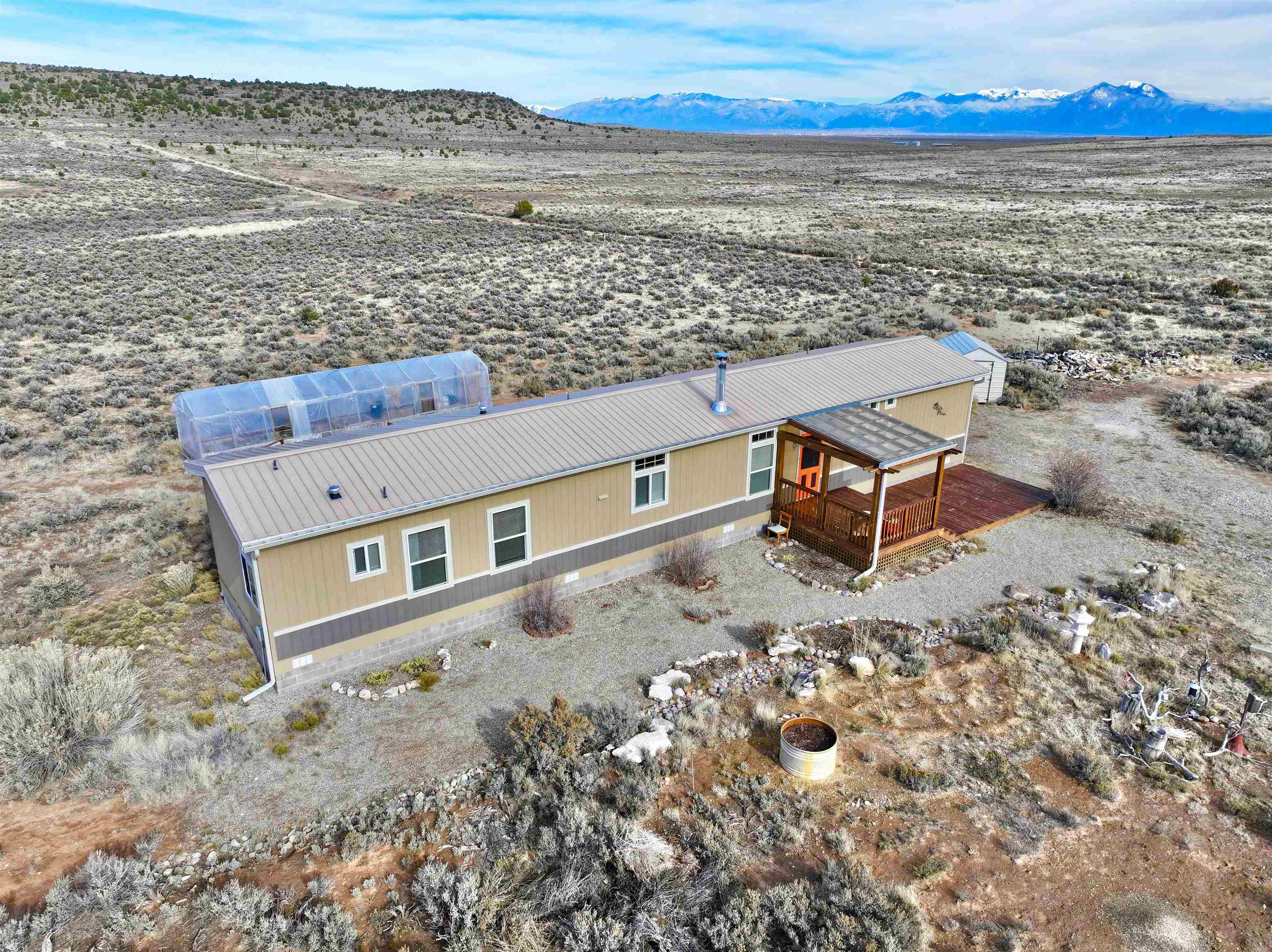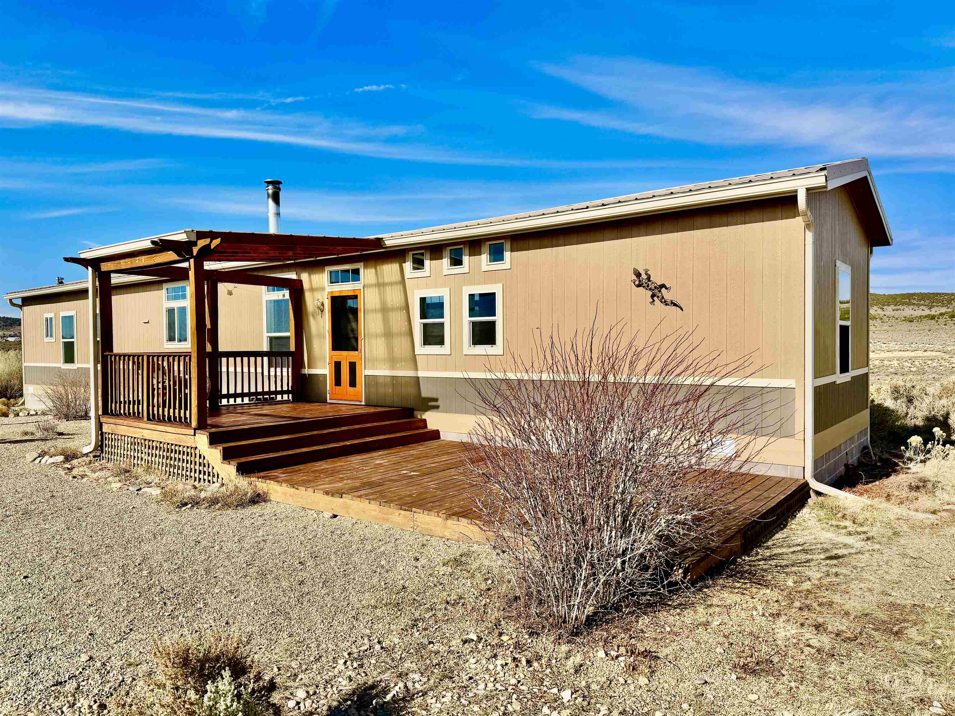 Seller offering a 5,000 credit to buyer. A spacious and picturesque home nestled amidst the serene landscapes of Carson, New Mexico, awaits your discovery. Only a short drive off the highway, this meticulously maintained 1175 square foot, two-bedroom, two-bathroom manufactured home is situated on a substantial 10-acre lot at the southernmost slope of Tres Orejas Mountain. The property boasts a convenient two-car carport and shed, providing ample storage space or the potential for a studio or workshop. Surrounded by tranquility, the property is home to the enchanting sounds of birdsong and the occasional sighting of wildlife. The western section of the property leads to a breathtaking canyon. This spectacular property has hiking trails nearby the lot that offer an array of adventures and unforgettable memories to be made. The expansive front yard is overlooked by a charming south-facing deck and covered porch, inviting you to unwind and enjoy breathtaking sunsets and endless skies. The home’s interior exudes a modern ambiance, featuring beautifully executed texture walls, tile and Purgo-style flooring. It is equipped with modern appliances, high-quality windows, and comprehensive up-fittings. The house is heated by forced air and complemented by a wood-burning stove. A north-facing deck adds a touch of elegance to the backyard, where you may encounter sightings of deer, elk, coyotes, and other wildlife. The property is securely fenced at its boundaries with barbed wire, and additional coyote fencing is strategically placed in the back yard. Within proximity, you will find the vibrant community of Ojo Caliente and its renowned hot springs, conveniently located just 16 miles away. Additionally, the Rio Grande Gorge Bridge, Taos Junction Bridge, and Rio Grande access are situated within a short distance, approximately 12, 6.1, and 6 miles respectively. The property is conveniently situated approximately 30 minutes from the iconic Taos Plaza, offering easy access to the town’s attractions and amenities. Don’t miss out on this extraordinary opportunity to experience the cozy charm of this remarkable home nestled amidst the breathtaking beauty of Carson, New Mexico. Home is anchored, title is deactivated and is being assessed as real property.